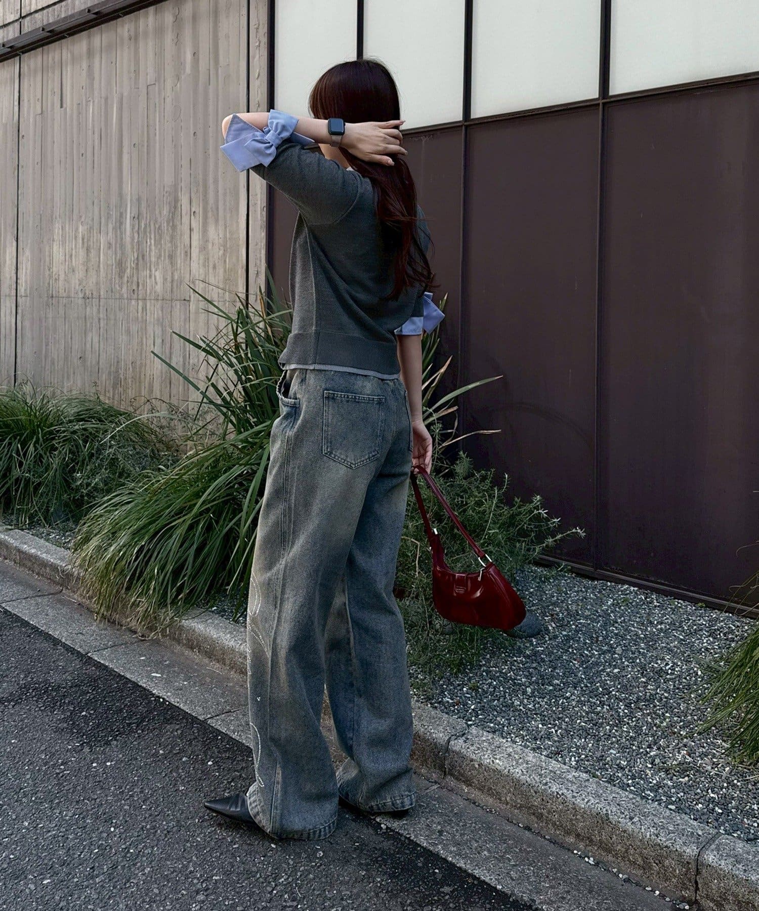 ・ストンと落ちるワイドシルエットで、カジュアルながらもこなれた印象に