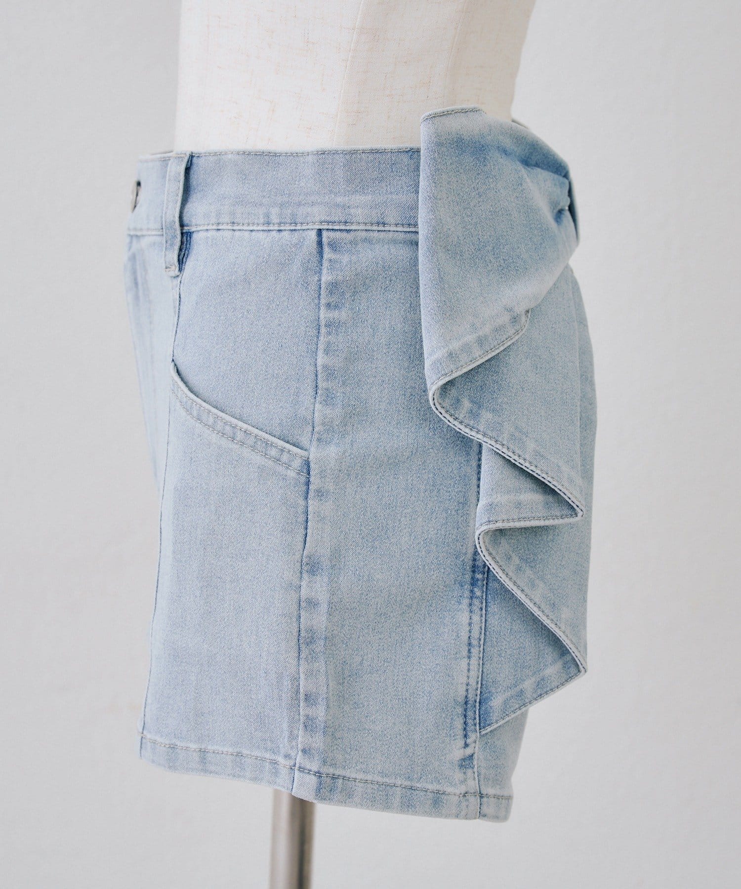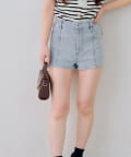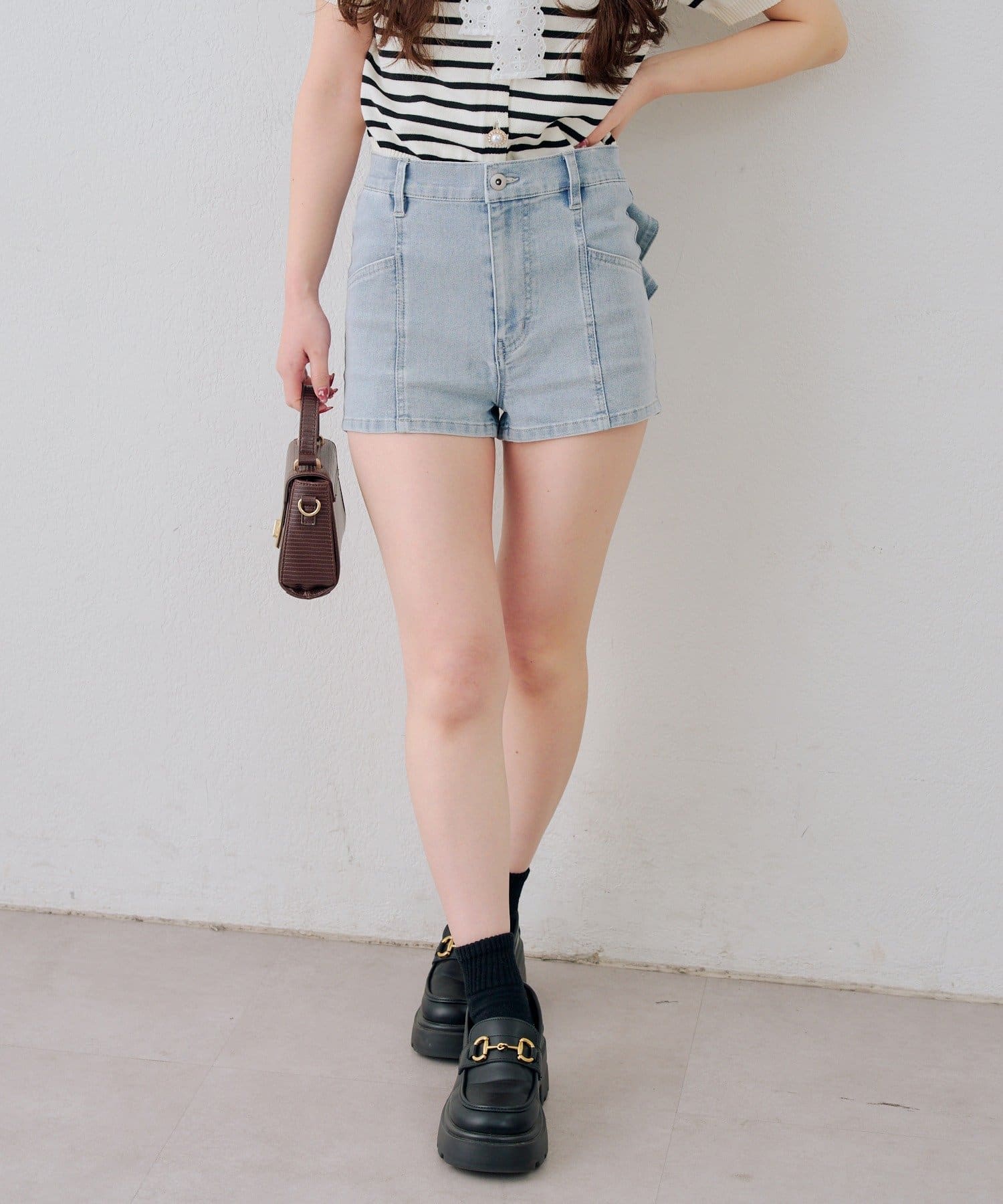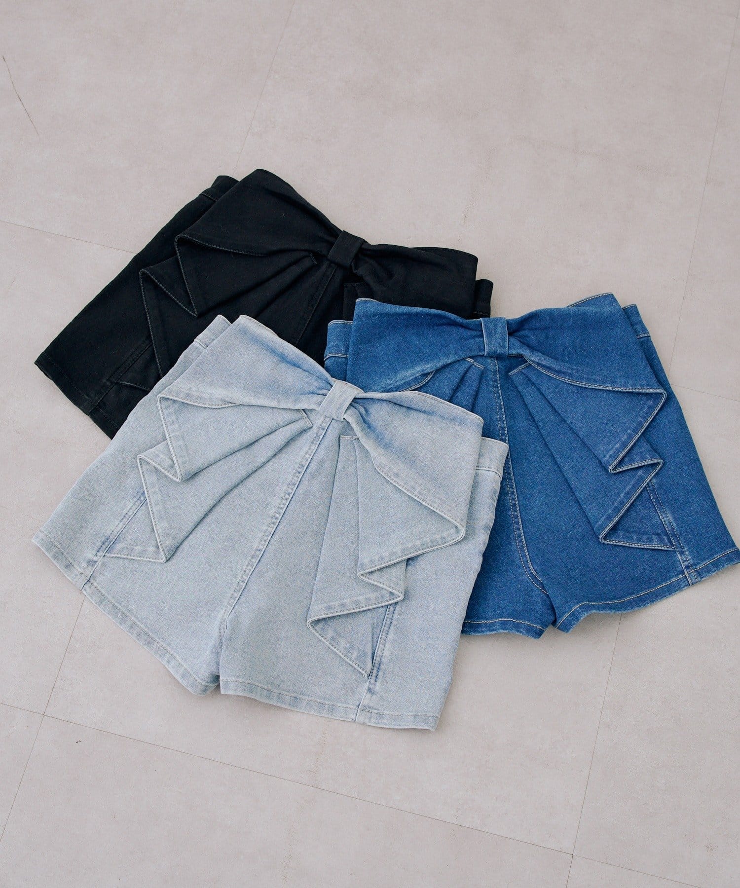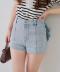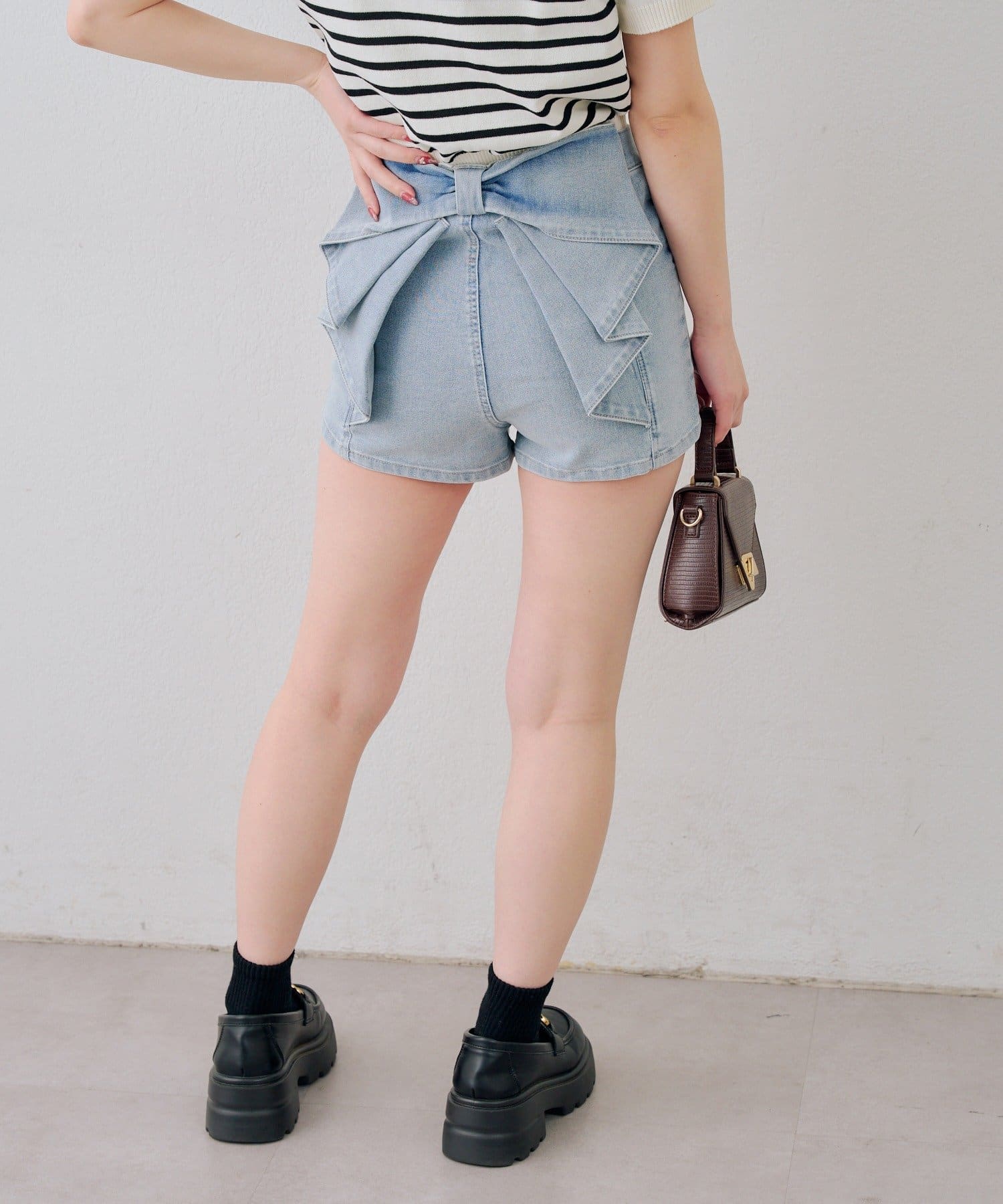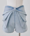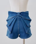 ・バックスタイルに視線集中!大胆なリボンが大人可愛いデニムショートパンツ