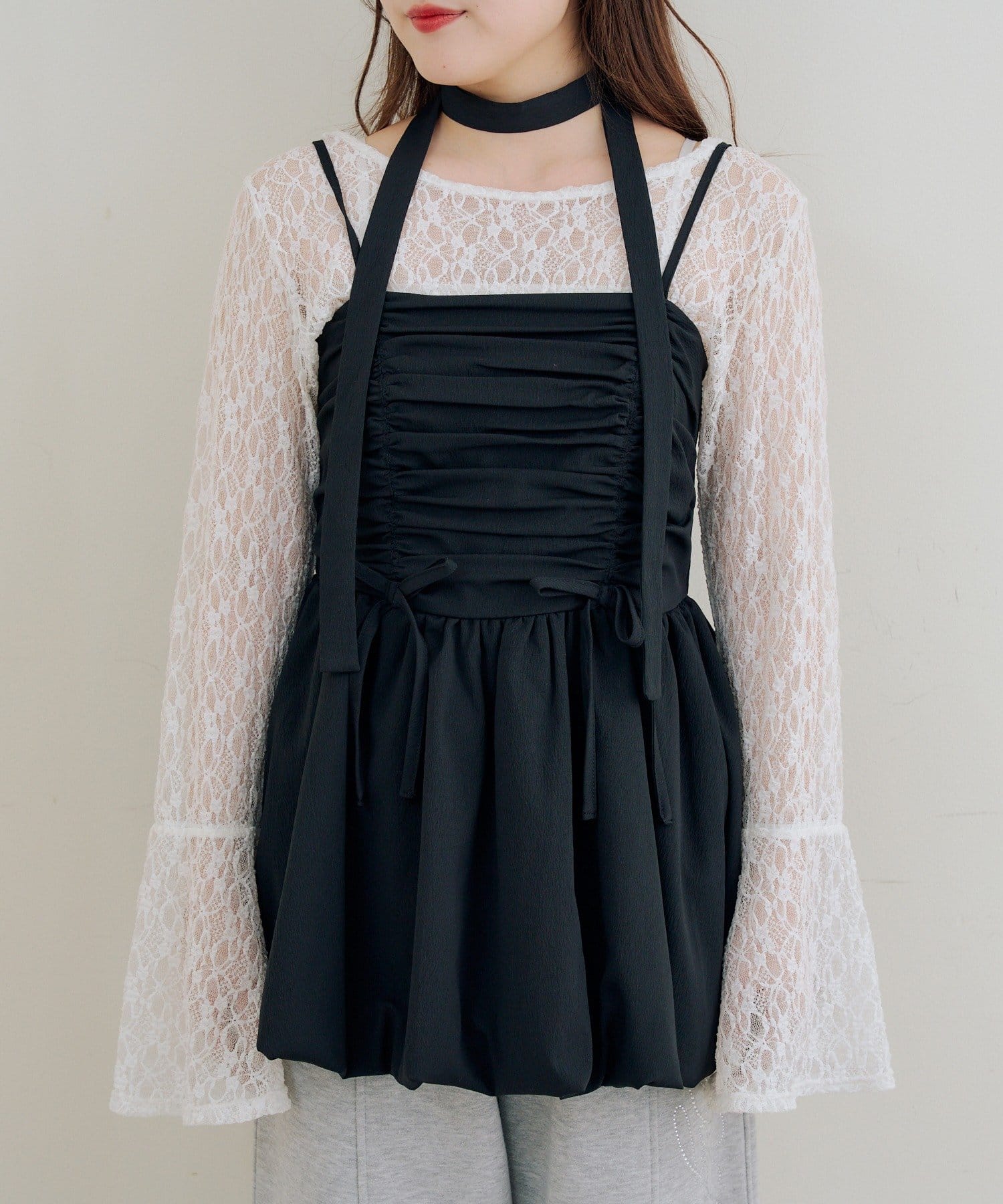 ・ふわっと立体感のあるバルーンシルエットが可愛いキャミチュニック