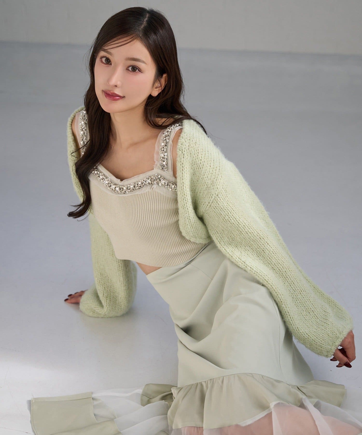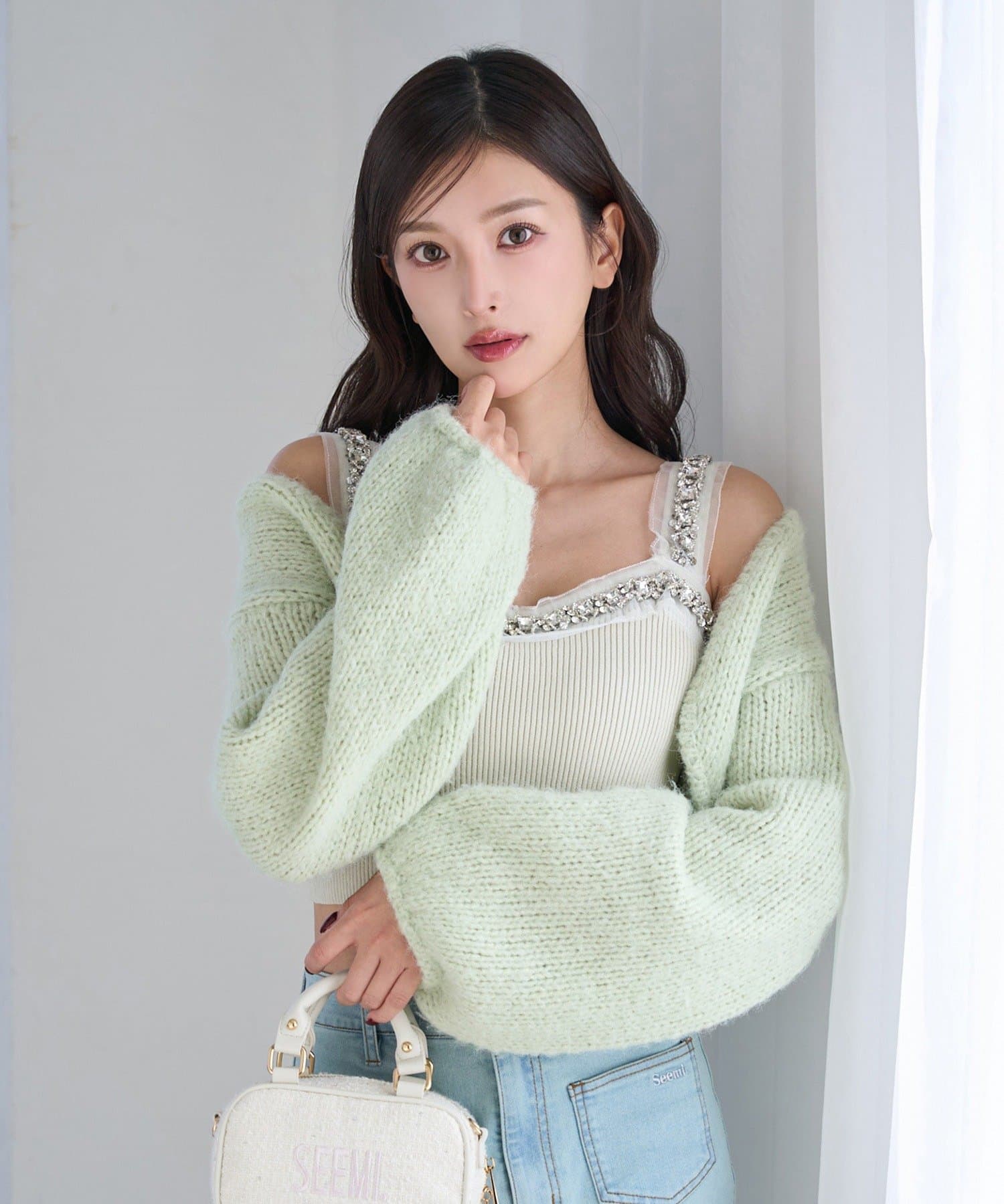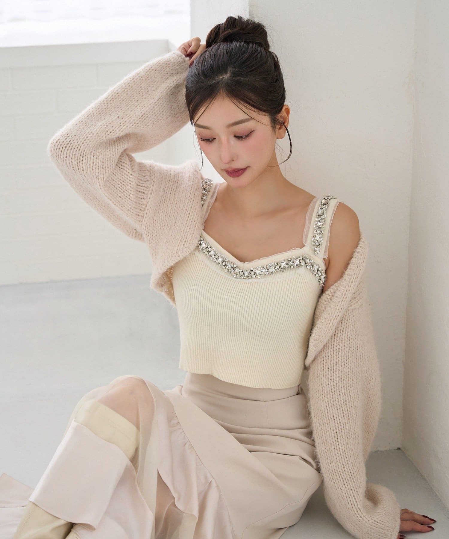 品番 0961050010 素材 カーデ:ポリエステル100% キャミソール:レーヨン43% ポリエステル41% ナイロン16%