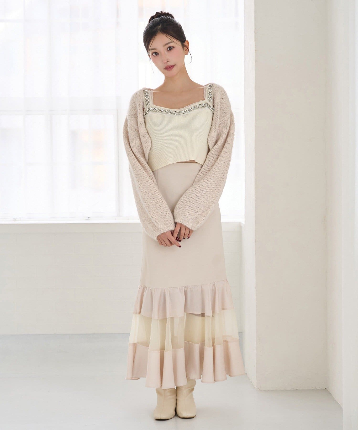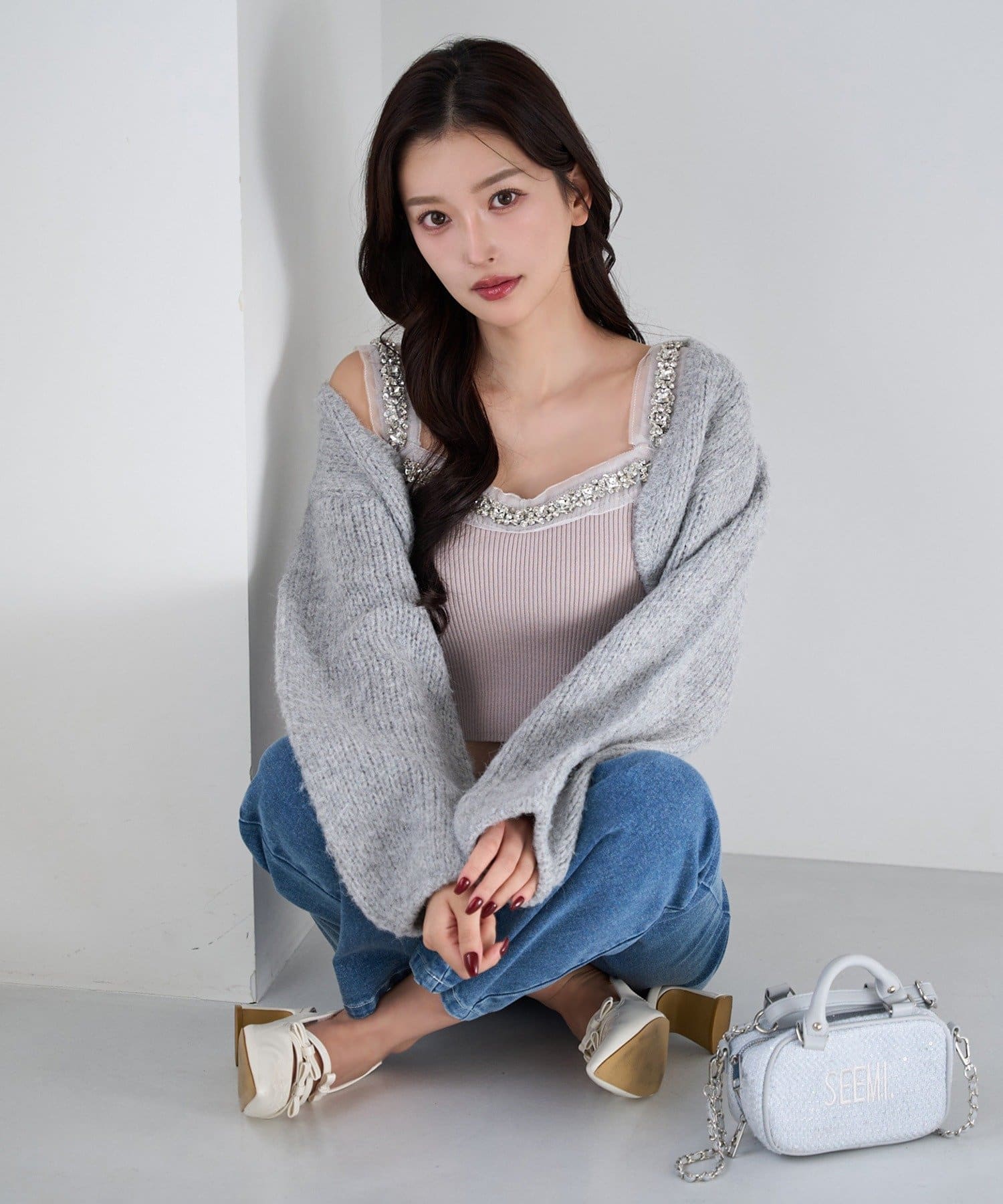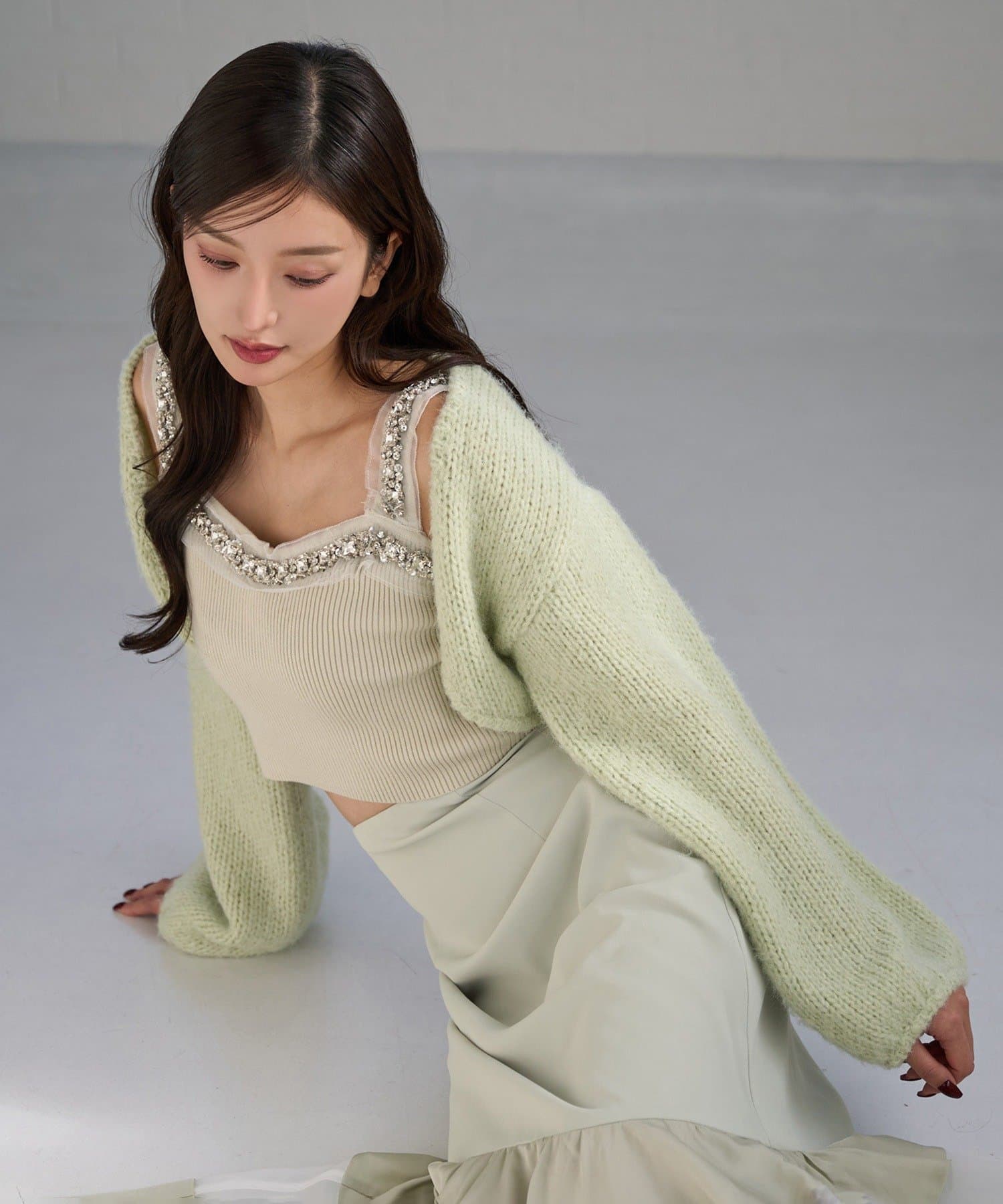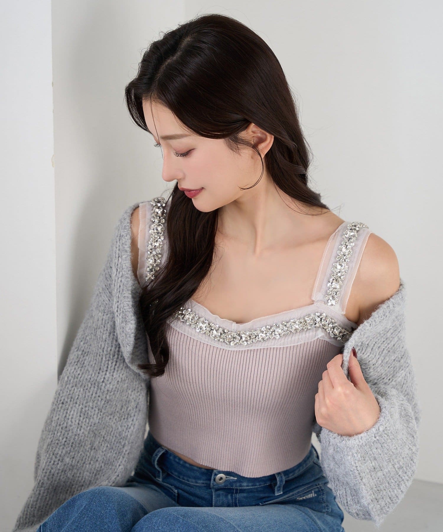 品番 0961050010 素材 カーデ:ポリエステル100% キャミソール:レーヨン43% ポリエステル41% ナイロン16%