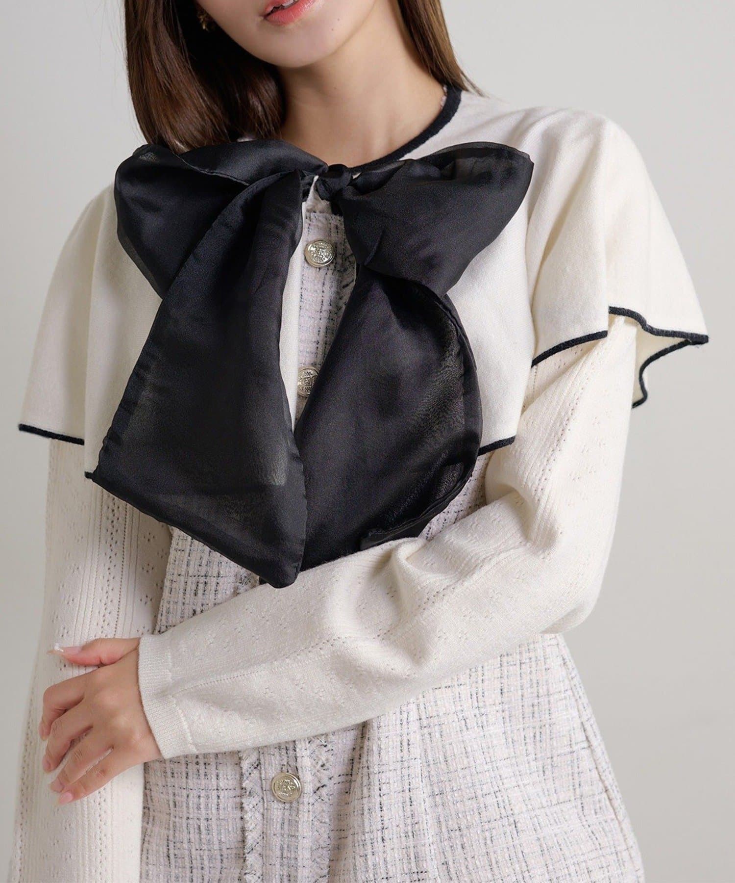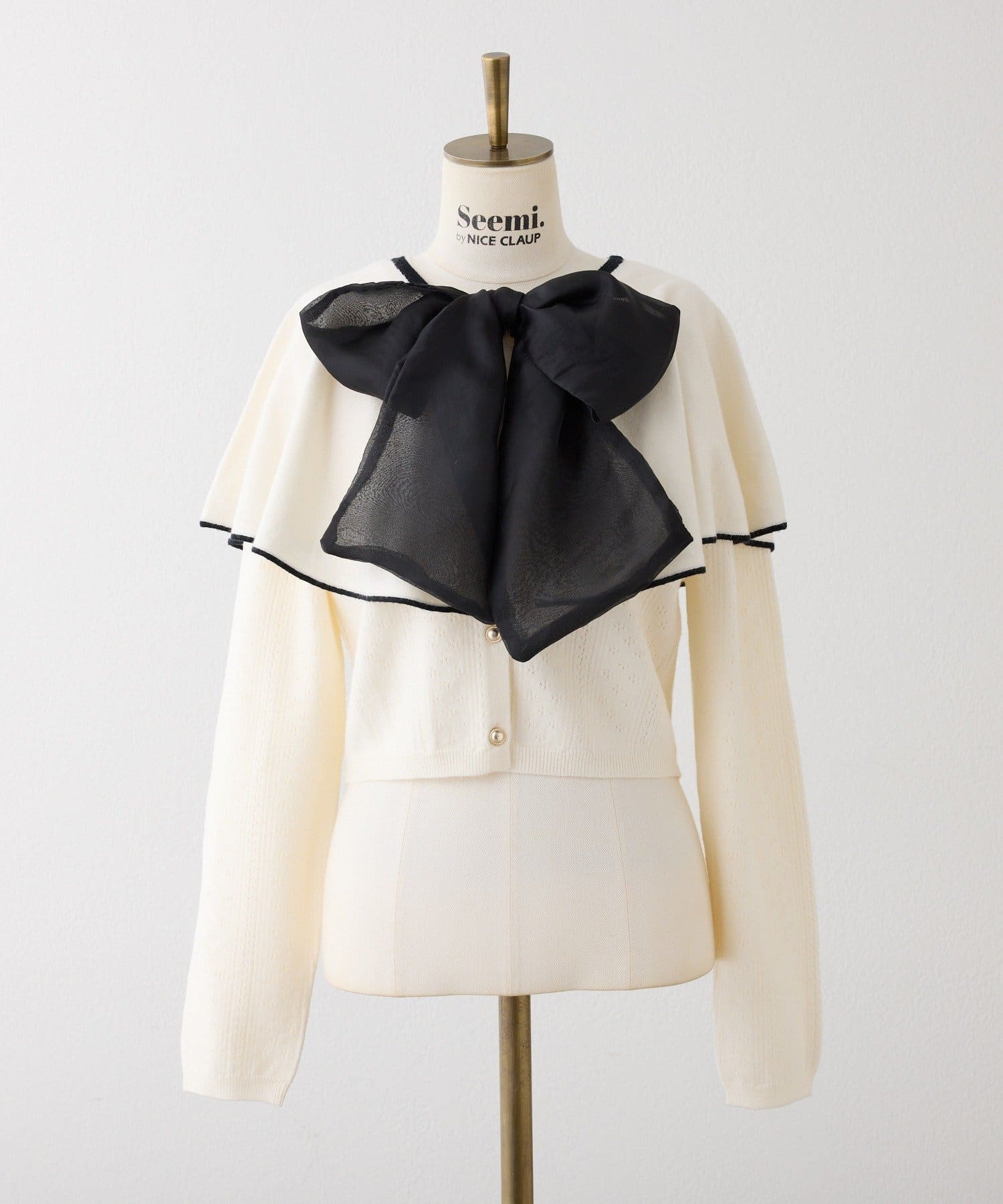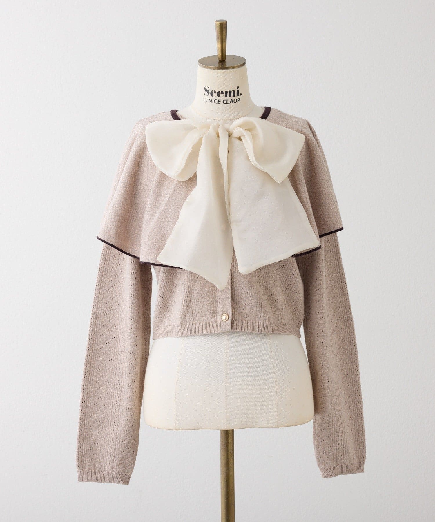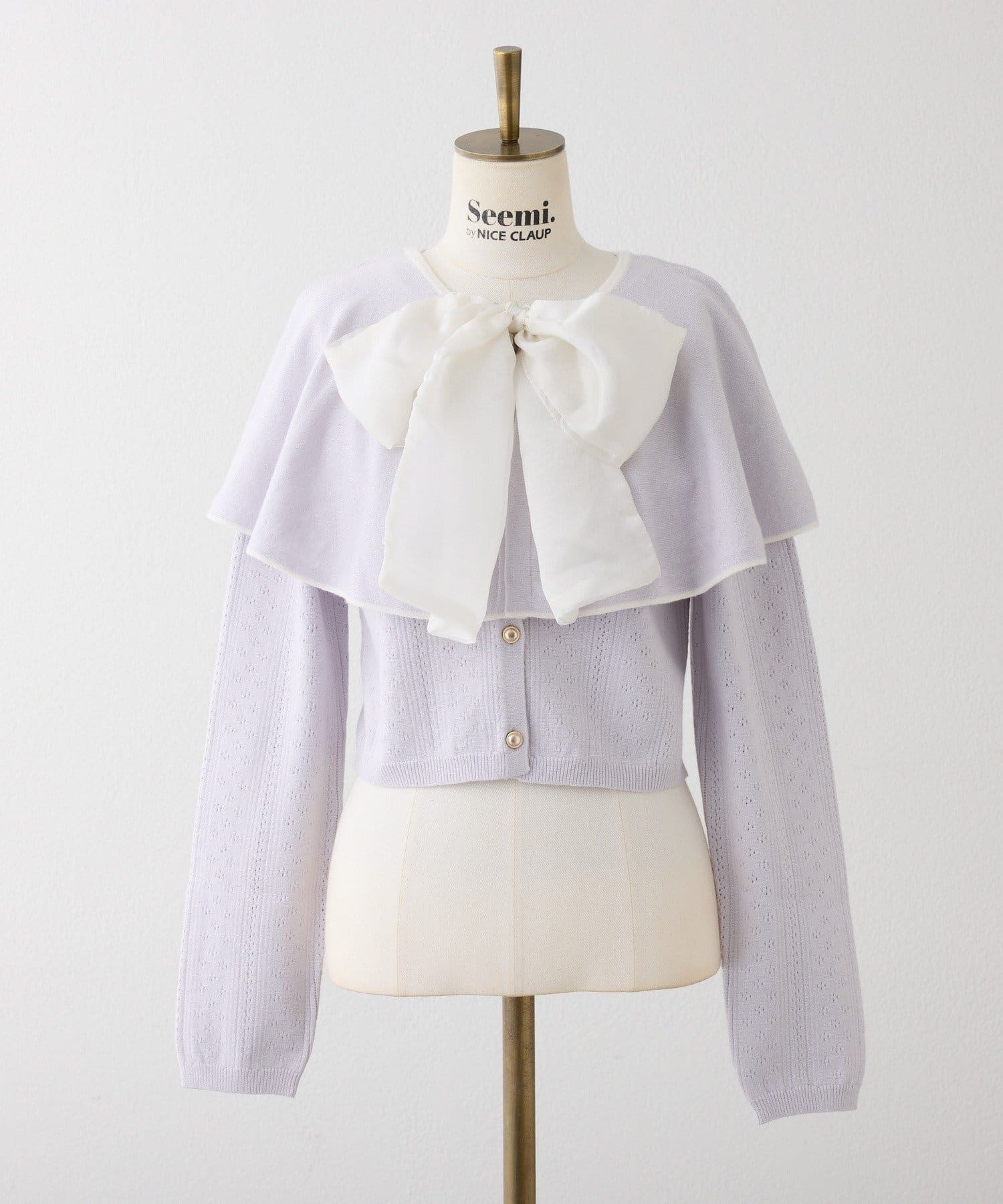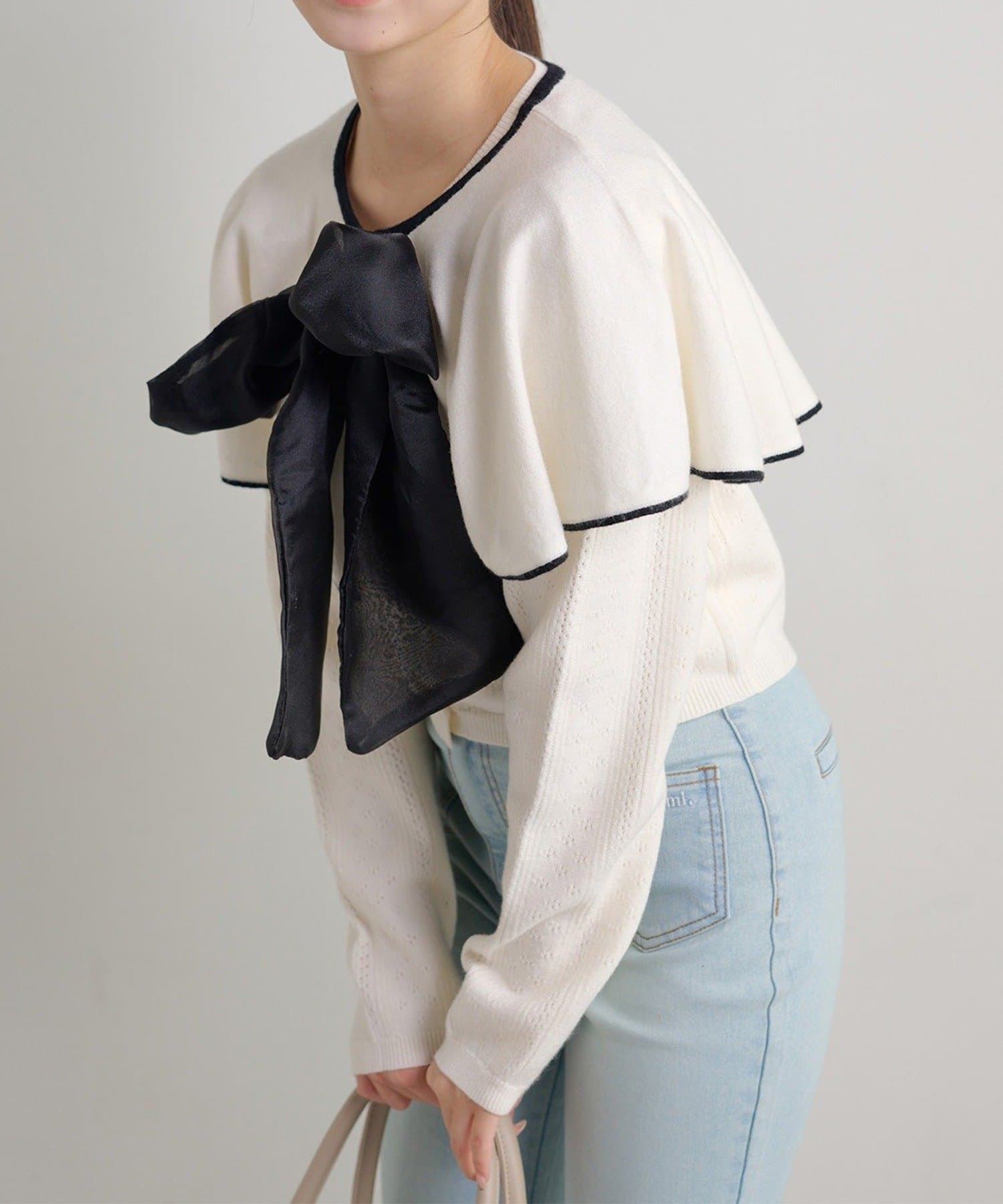 【Seemi.】【ケープ取り外し可能】ボウタイアイレットカーディガン