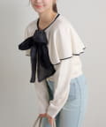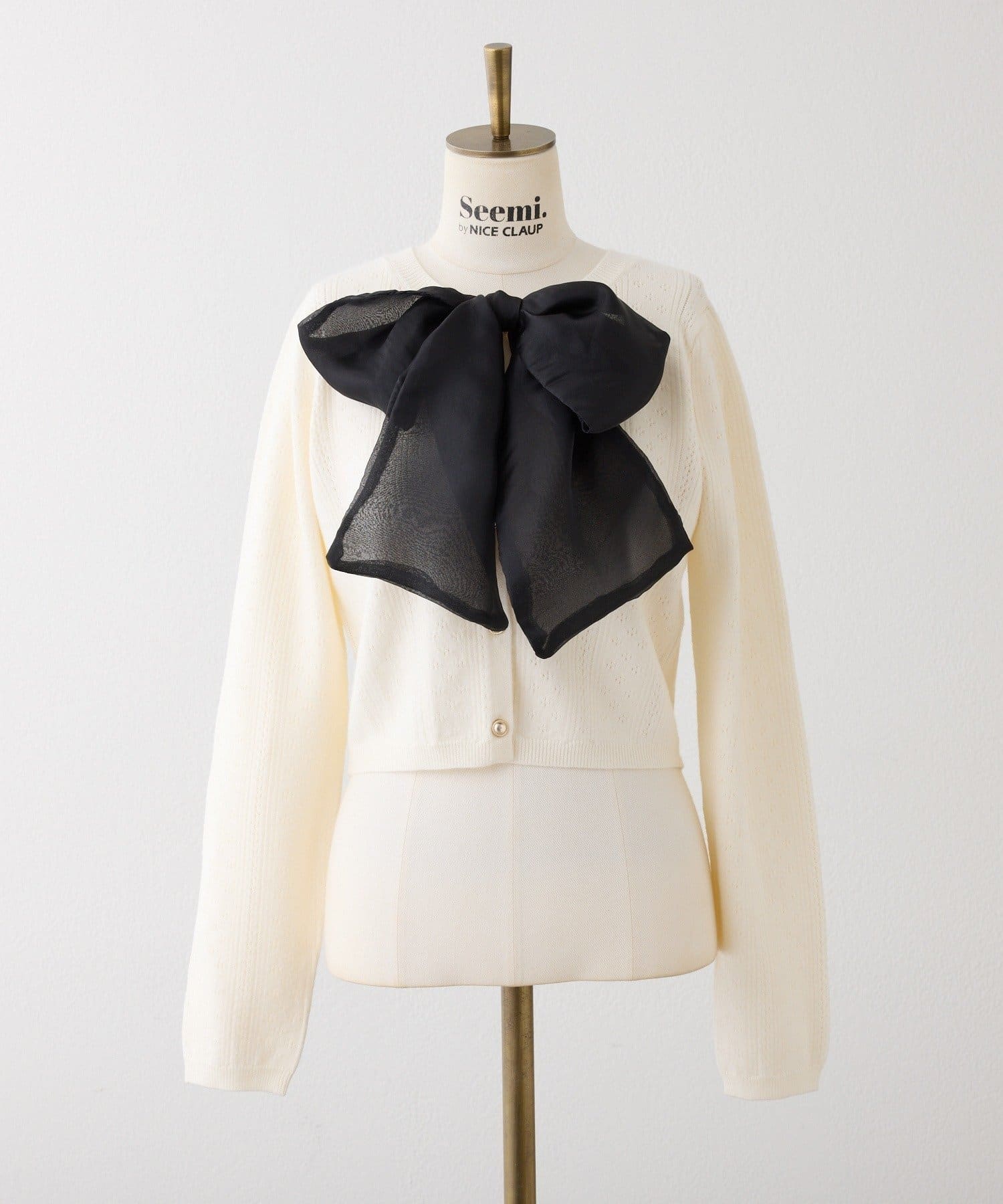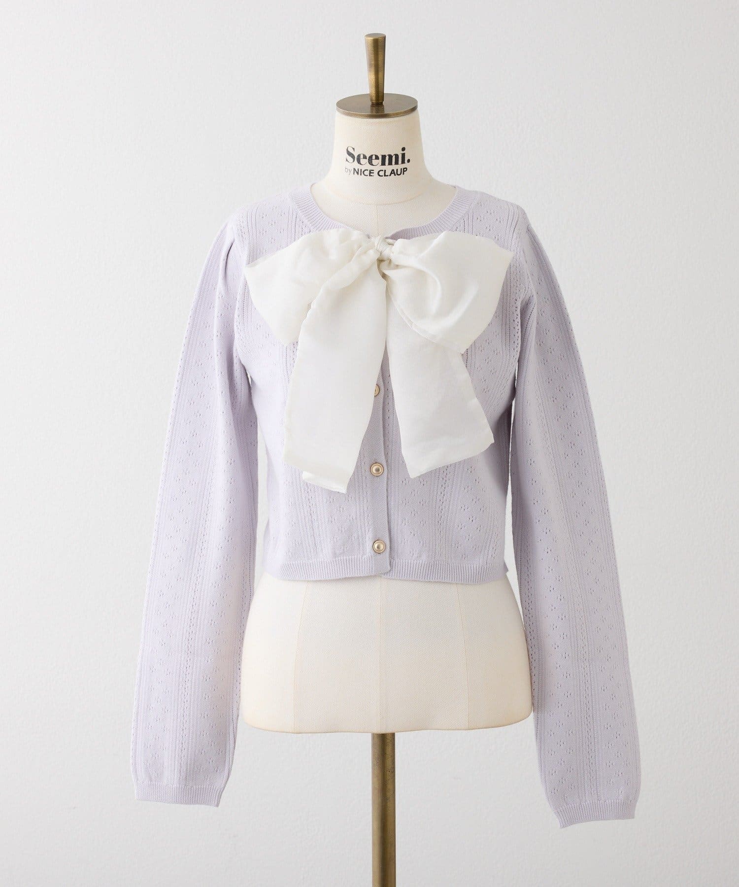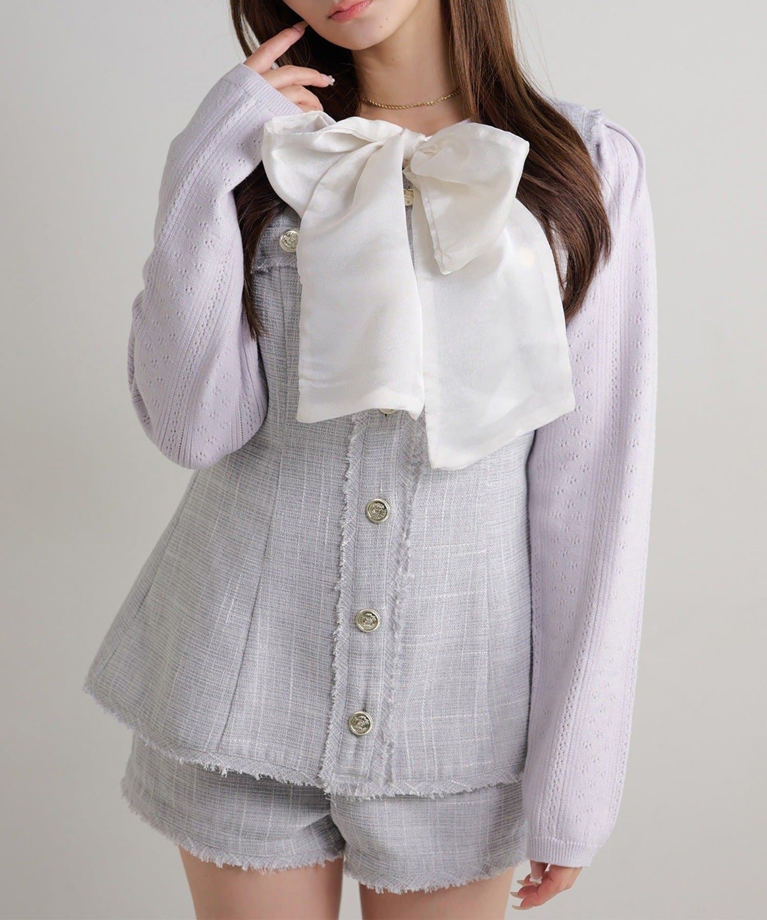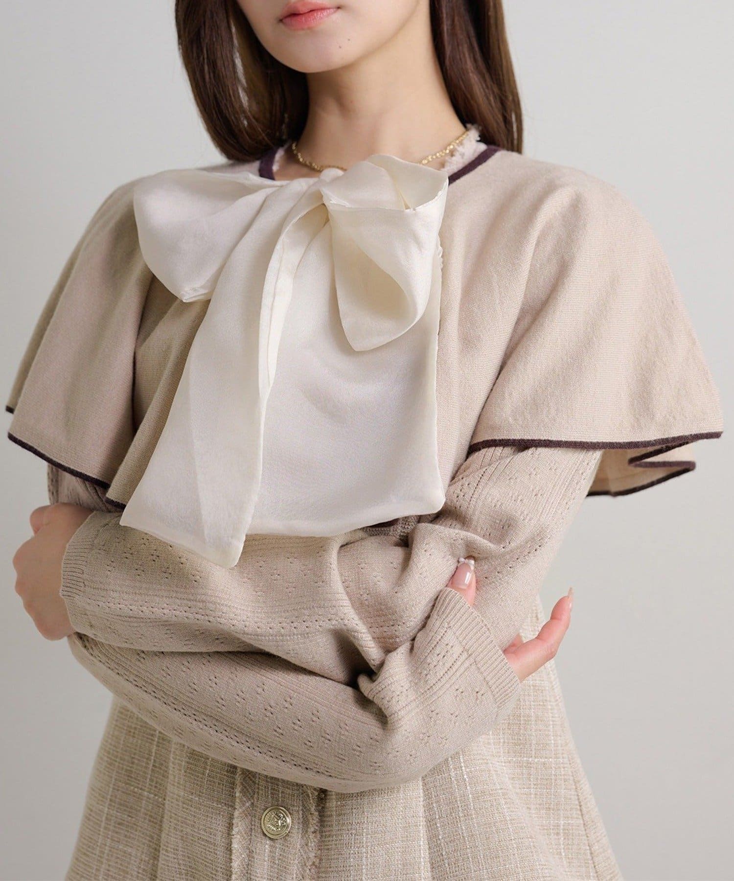 【Seemi.】【ケープ取り外し可能】ボウタイアイレットカーディガン