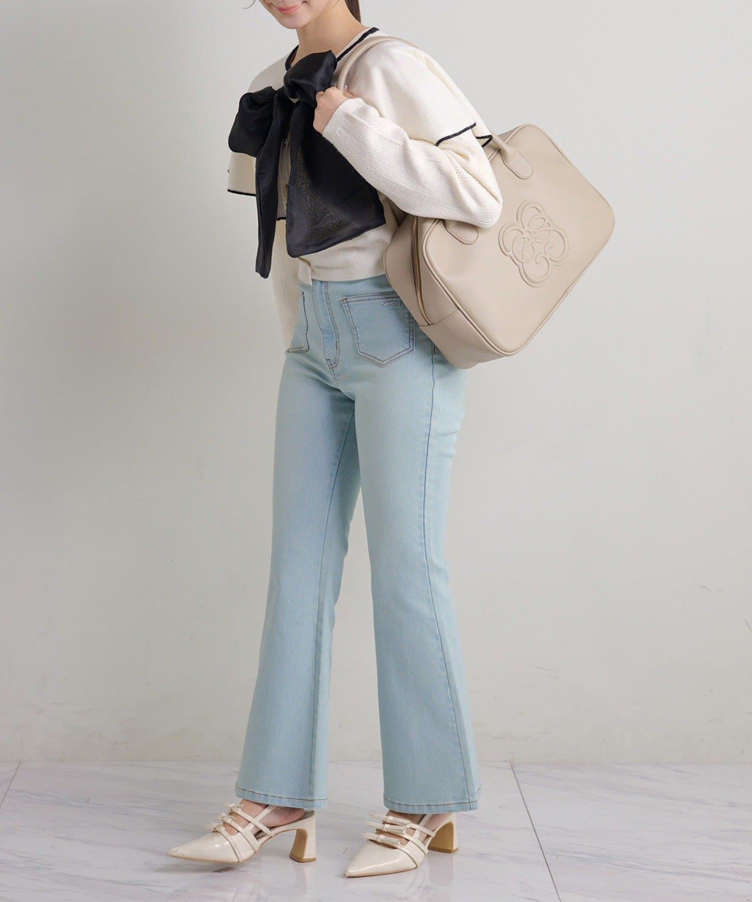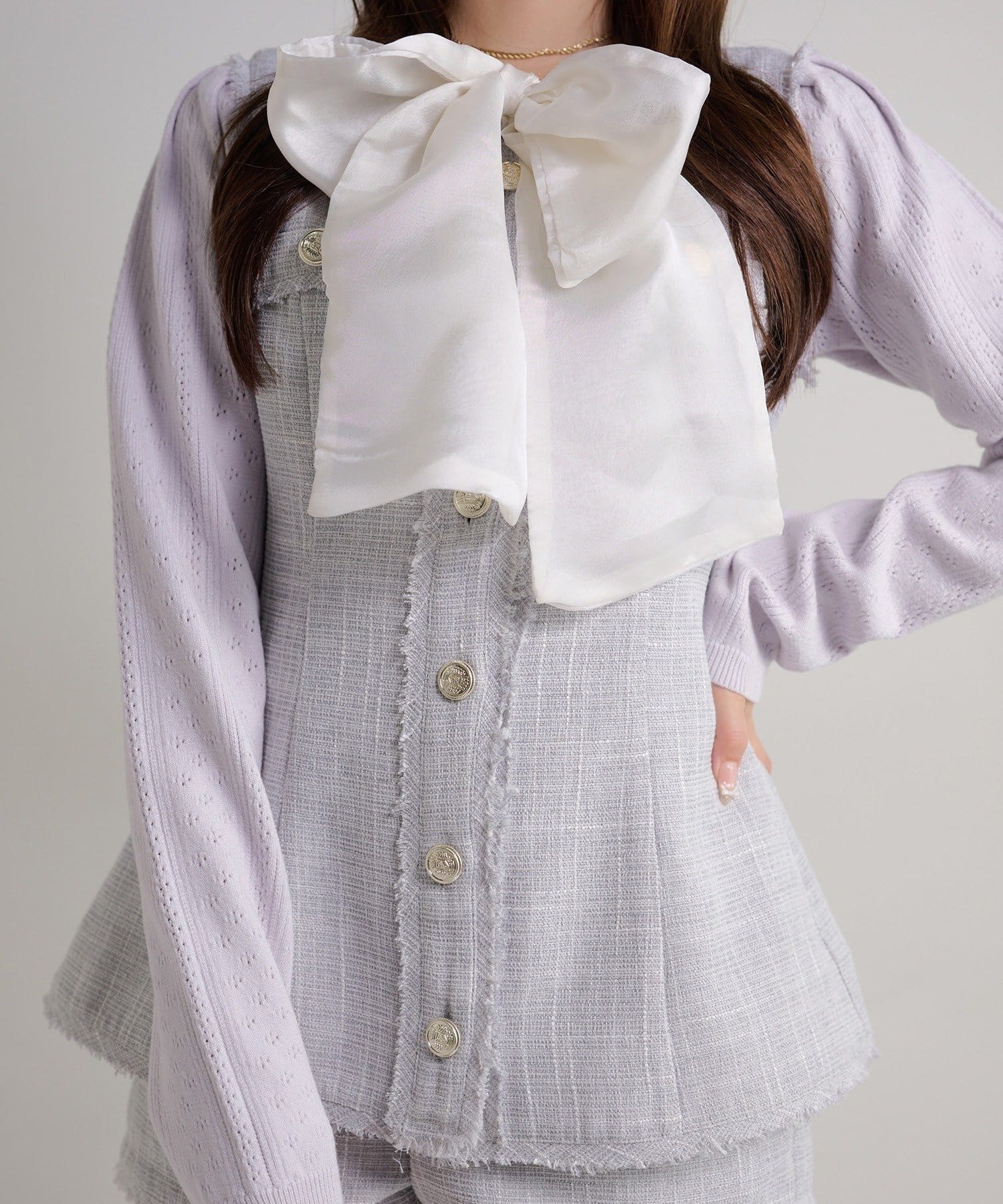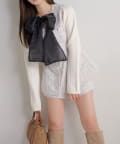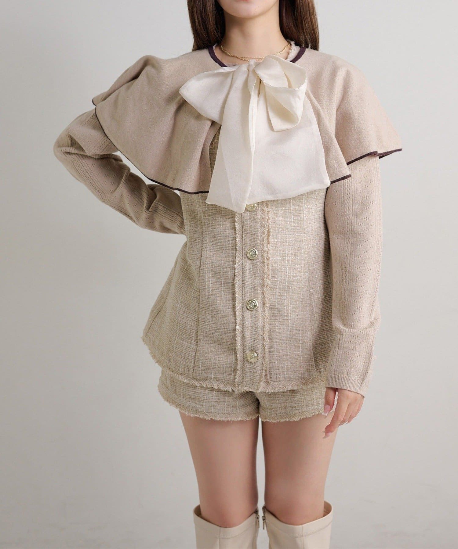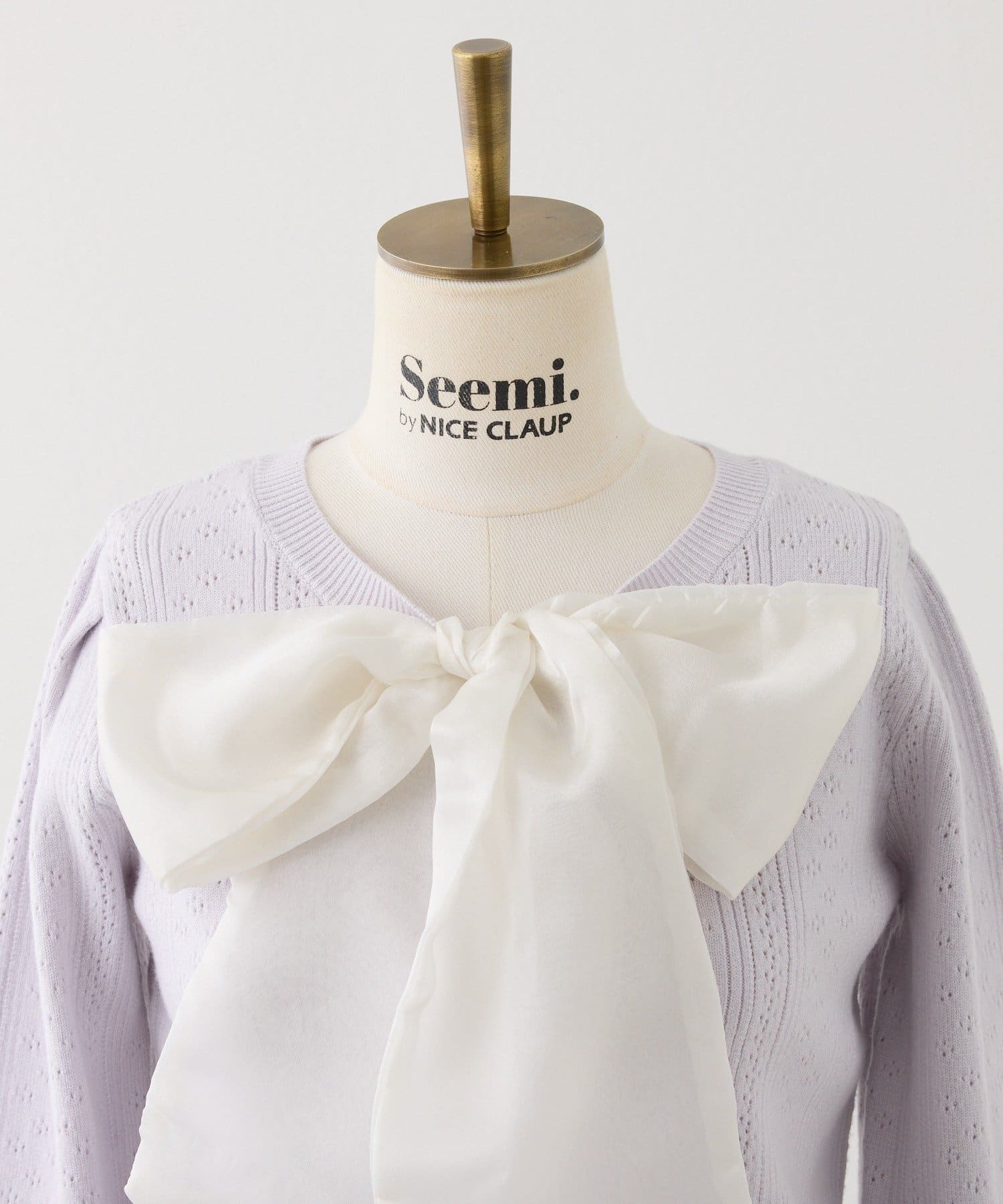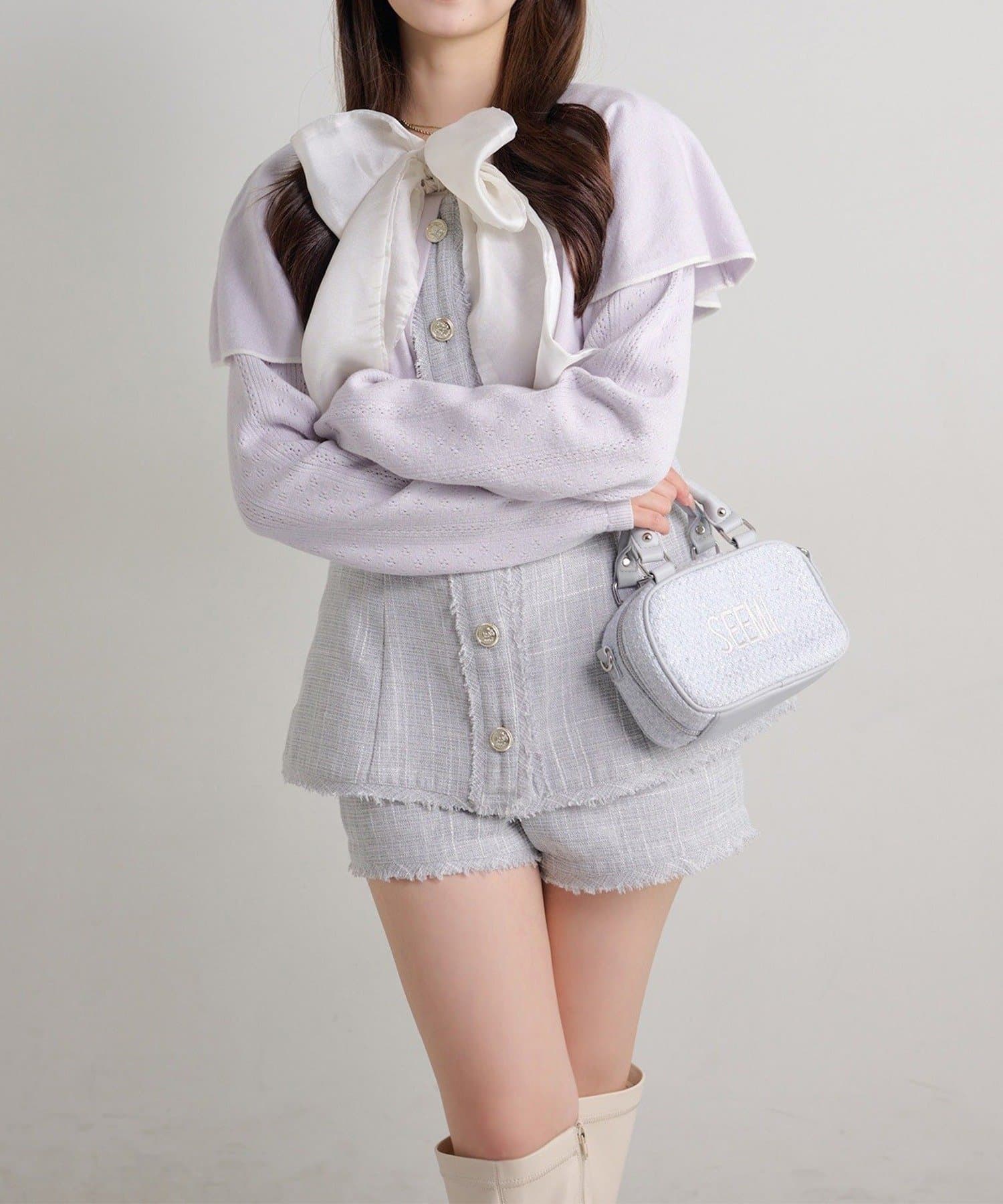 【Seemi.】【ケープ取り外し可能】ボウタイアイレットカーディガン