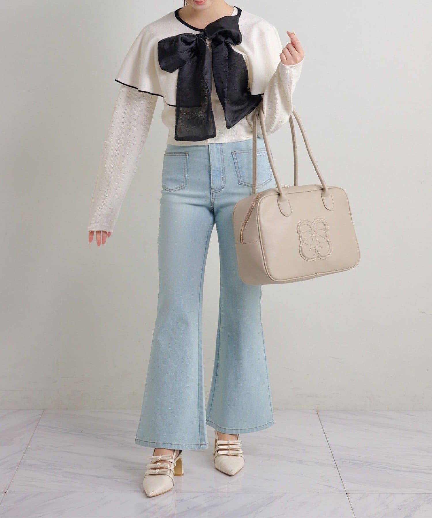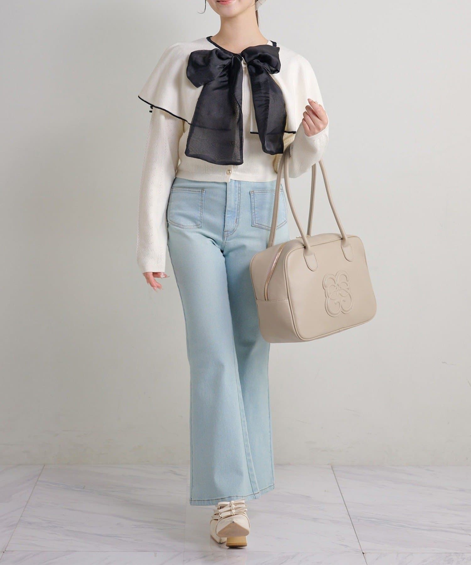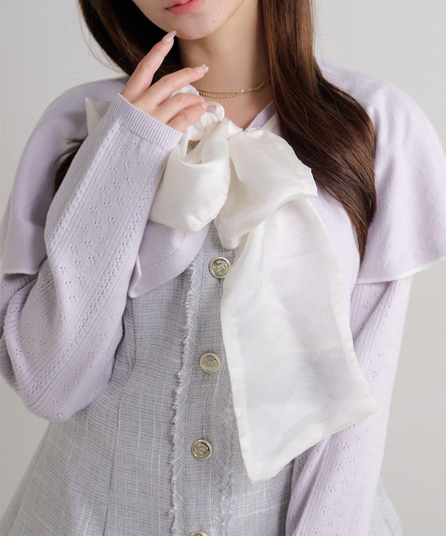 • NICE CLAUP / OLIVE des OLIVE OUTLET(ナイスクラップ  / オリーブ デ オリーブ アウトレット) 【Seemi.】【ケープ取り外し可能】ボウタイアイレットカーディガン