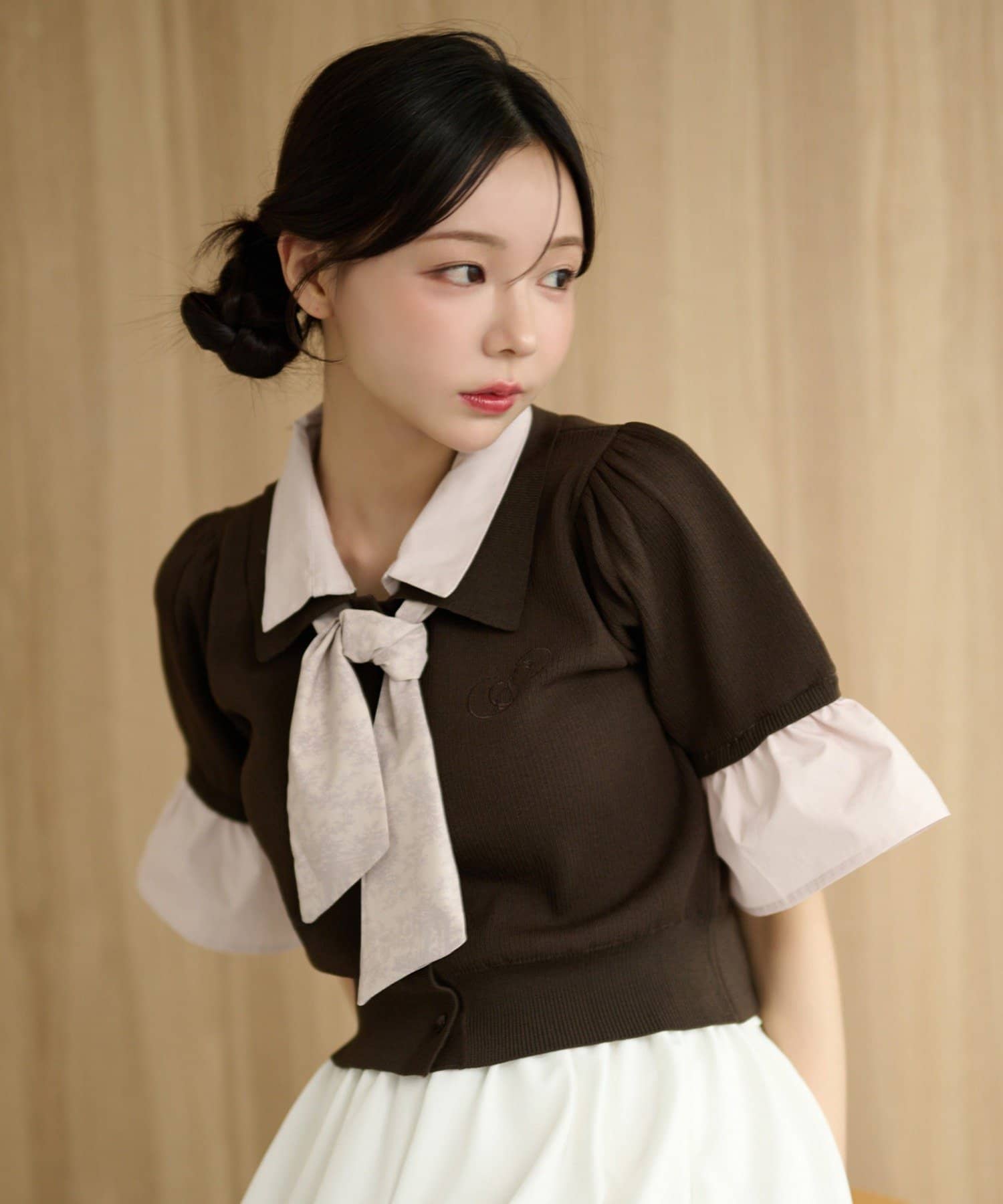 【ブラウン】本体:レーヨン64% ポリエステル30% ナイロン6% 別地:コットン100%