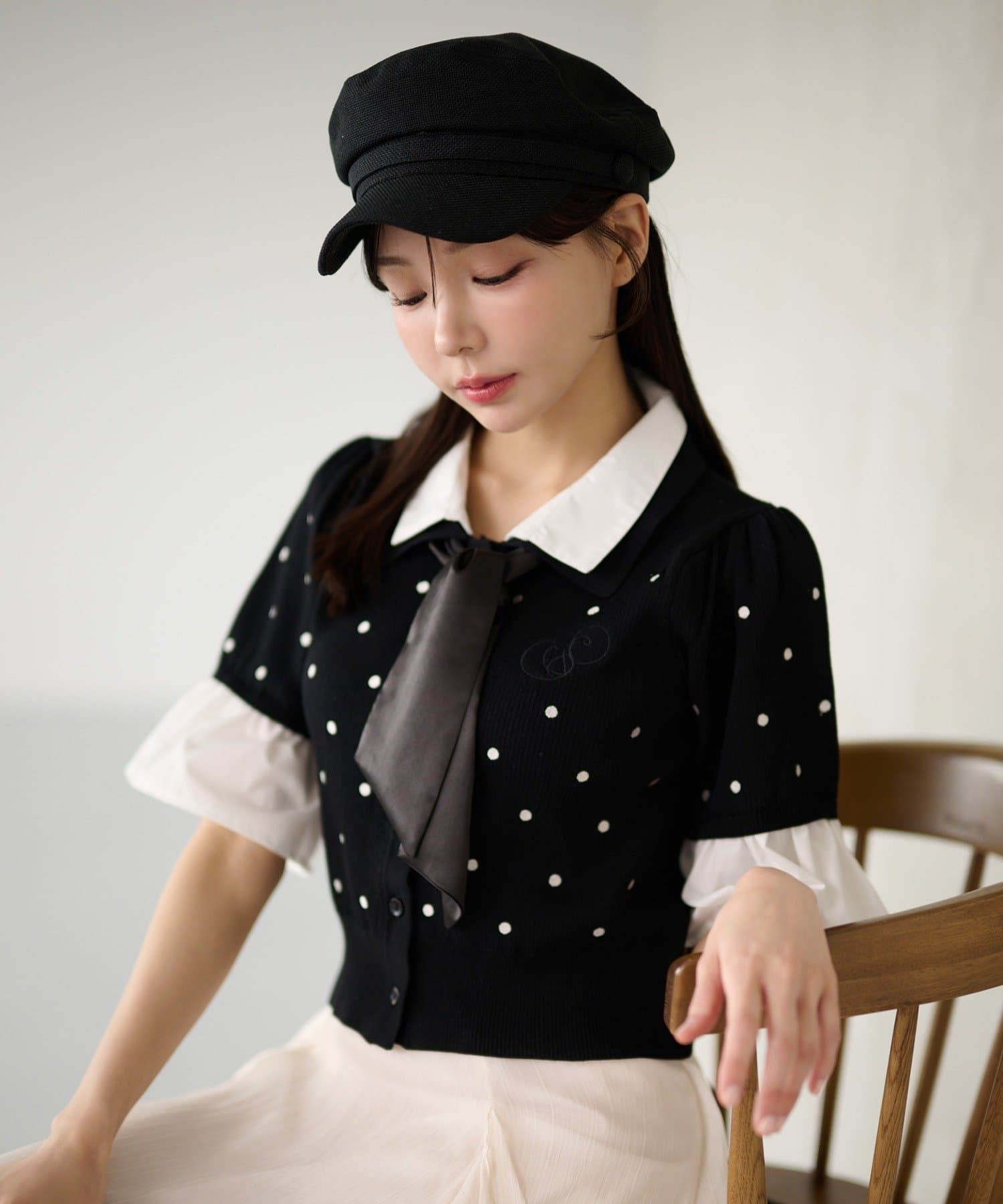 TOP > Seemi.by NICE CLAUP > レディース > トップス > ニット/セーター > 刺しゅう入り配色襟ニット
