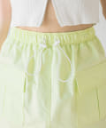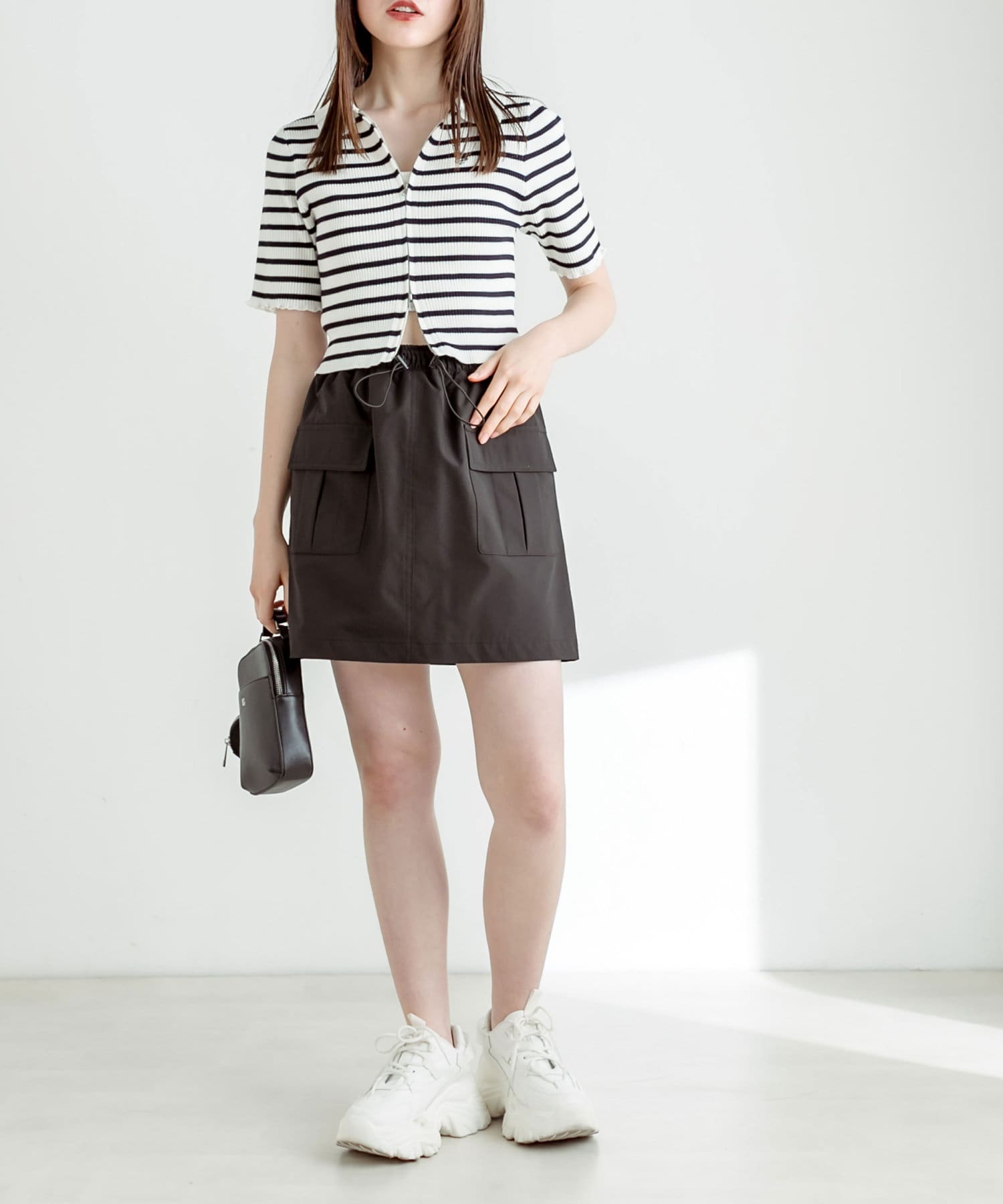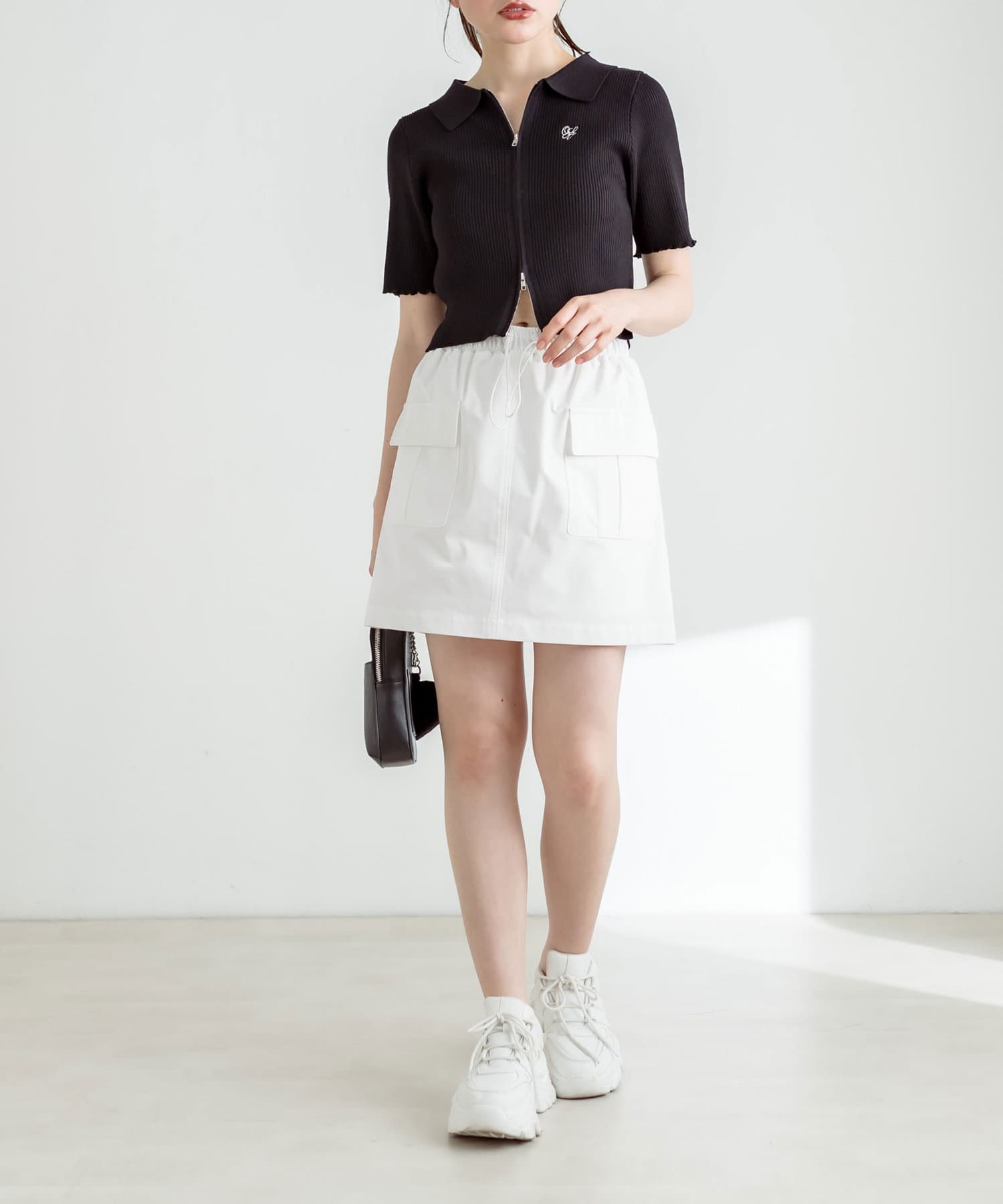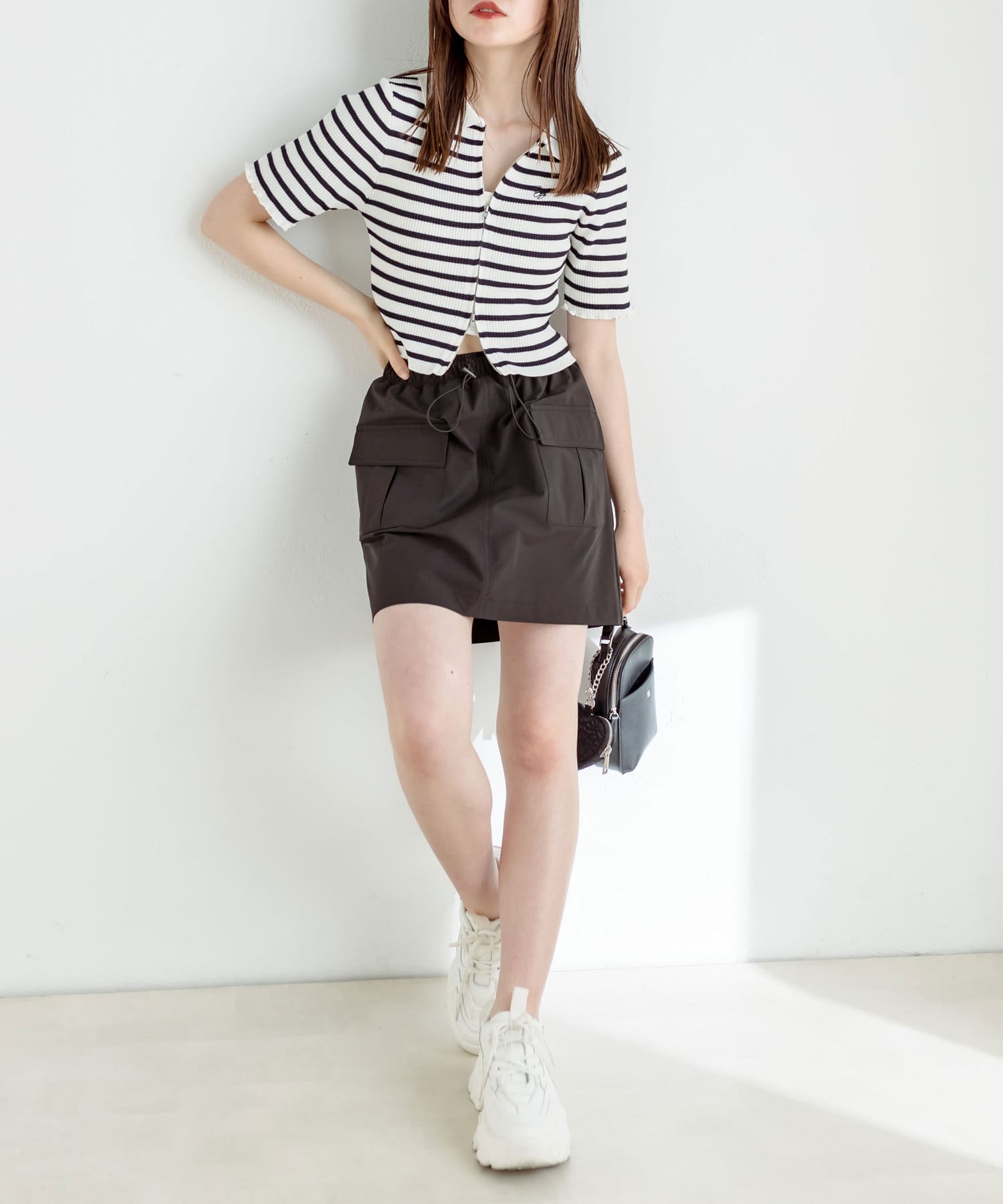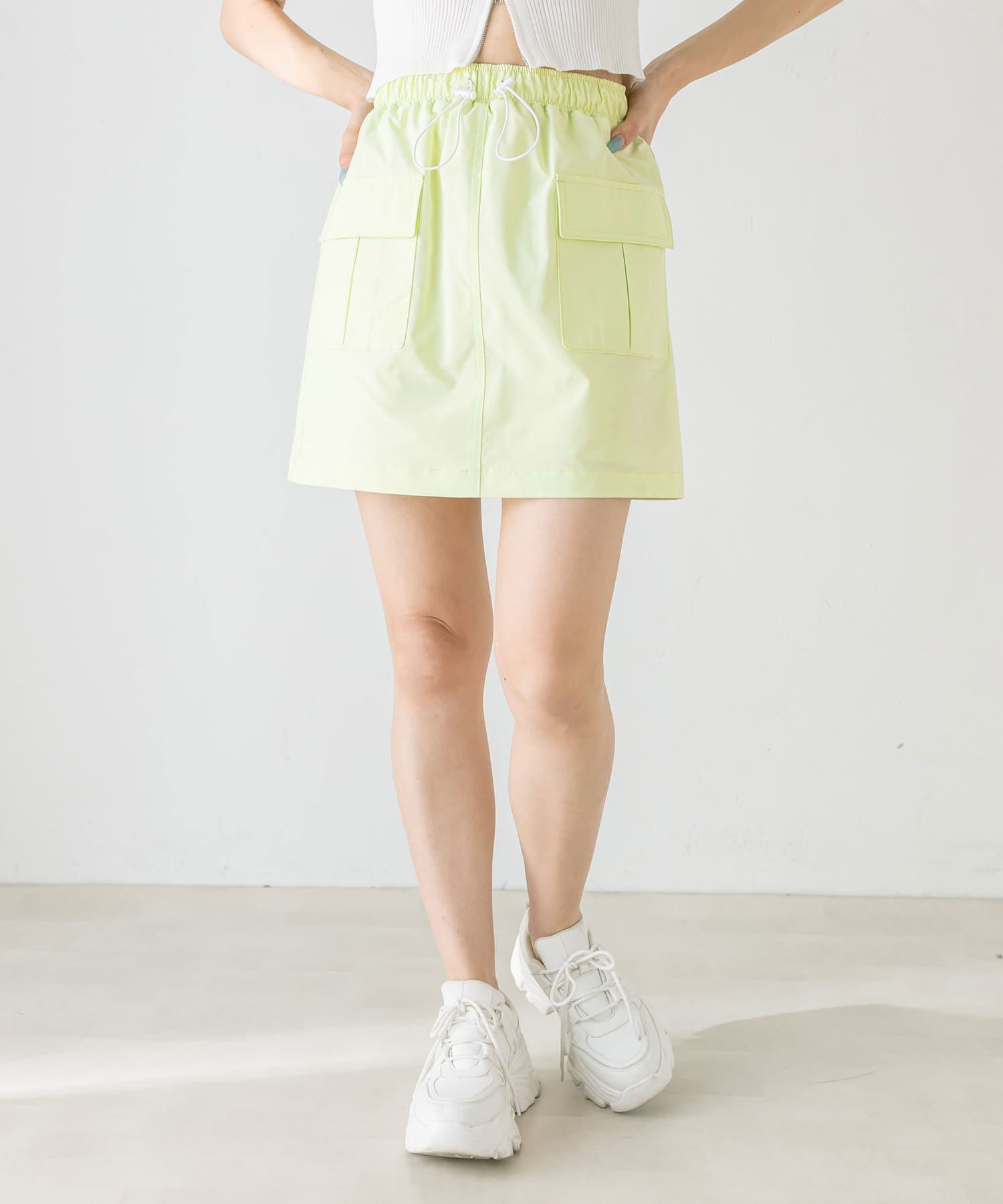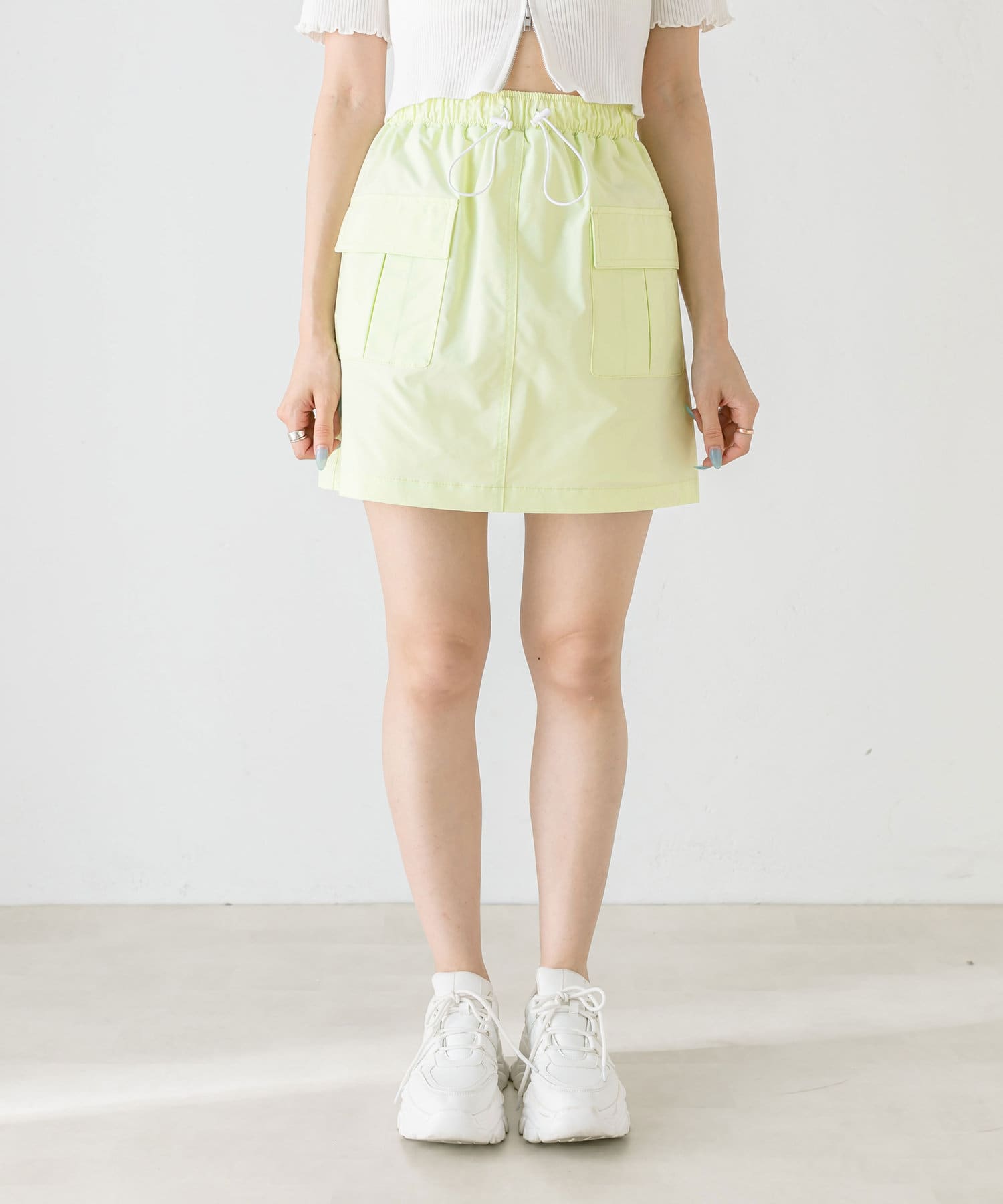 ・カジュアルな印象のカーゴスカートですが、つるんとした素材でカジュアルすぎずガーリーに着ていただけます。