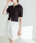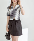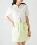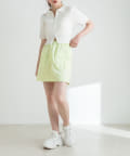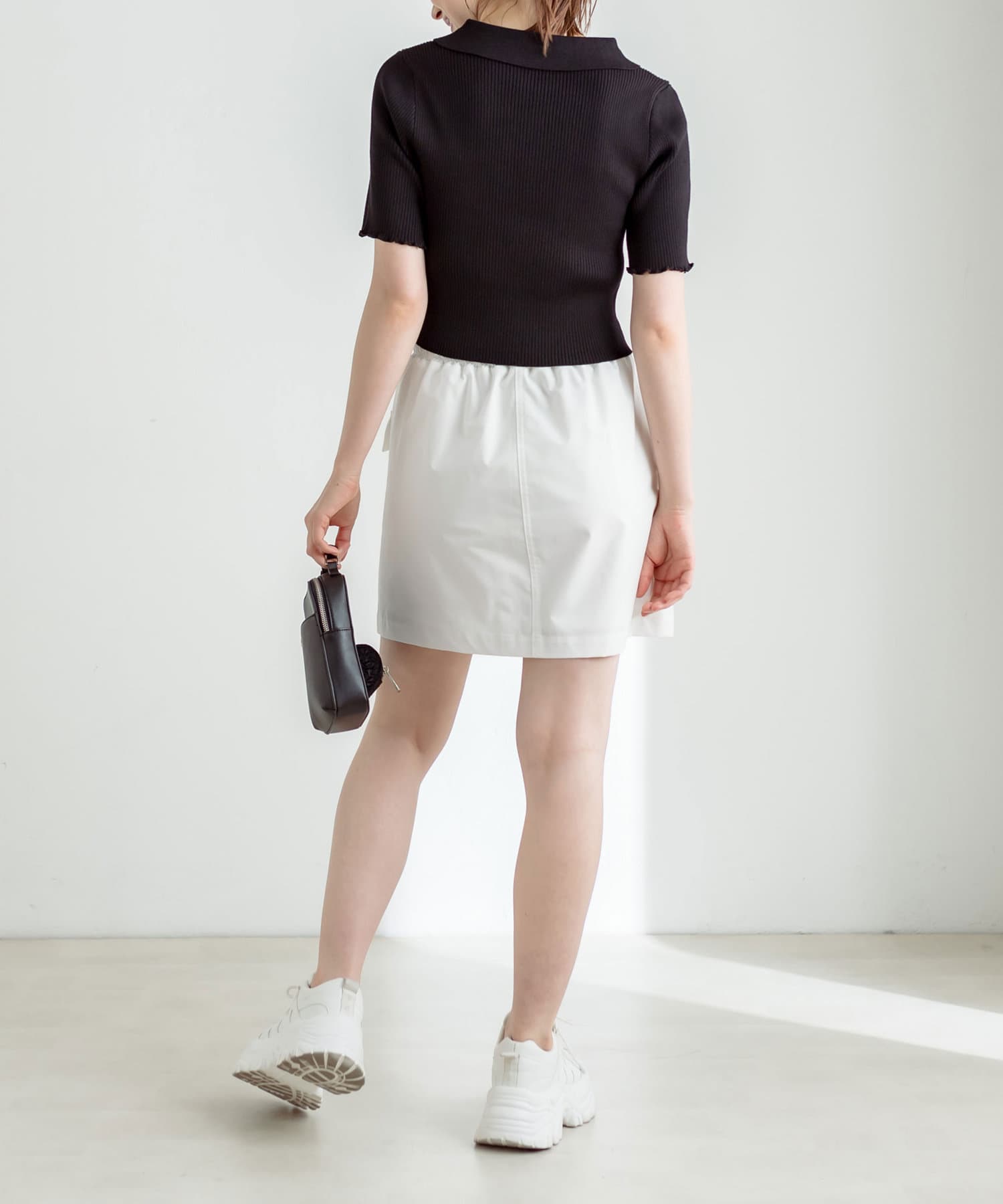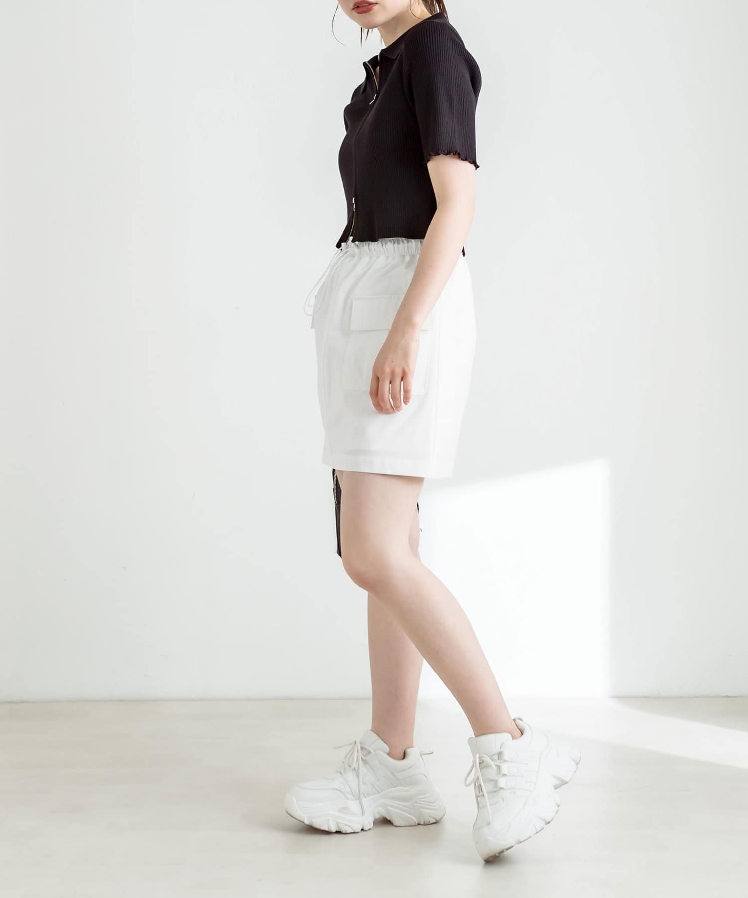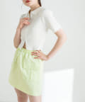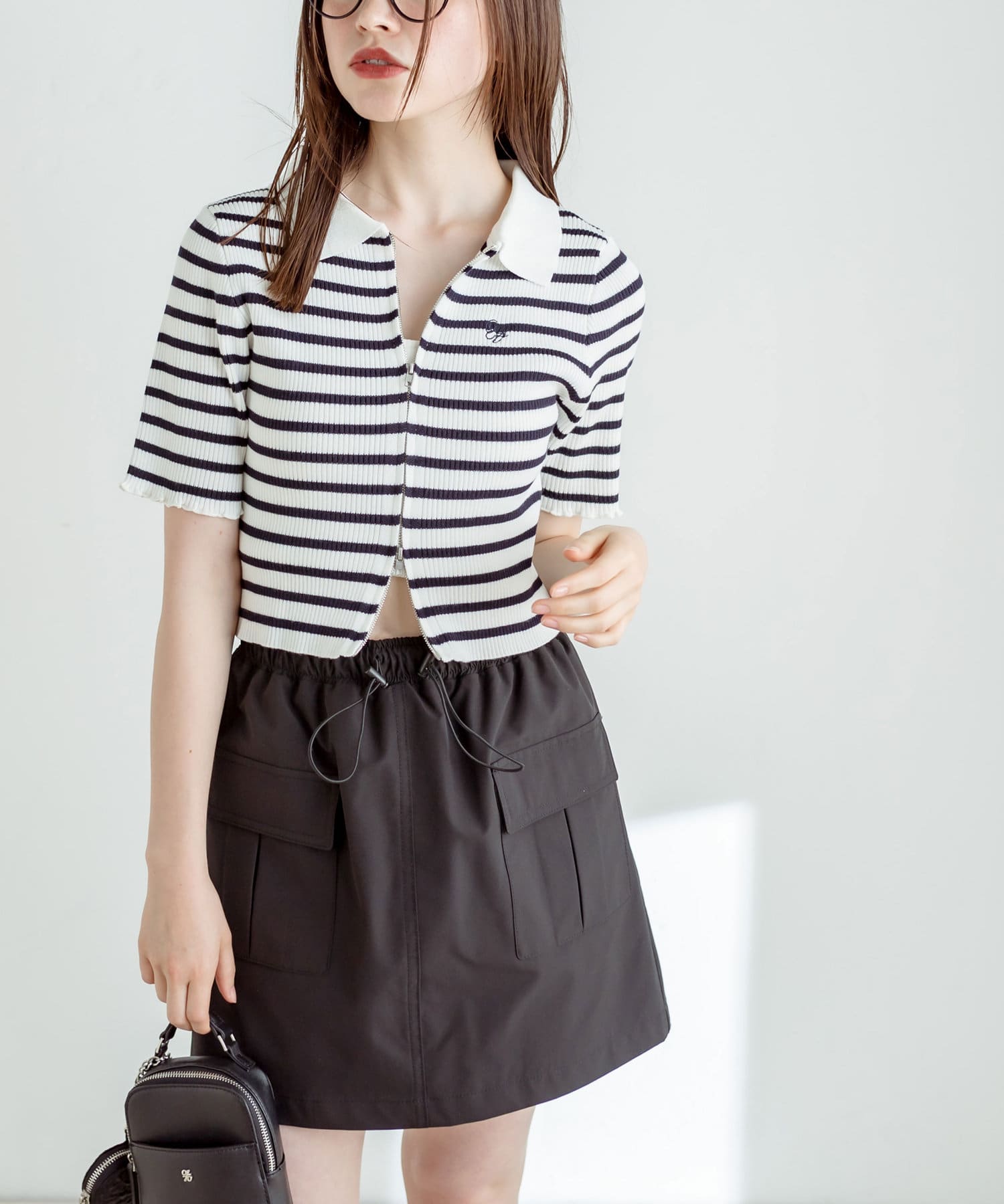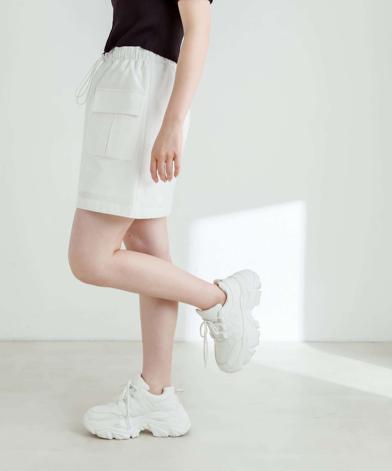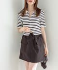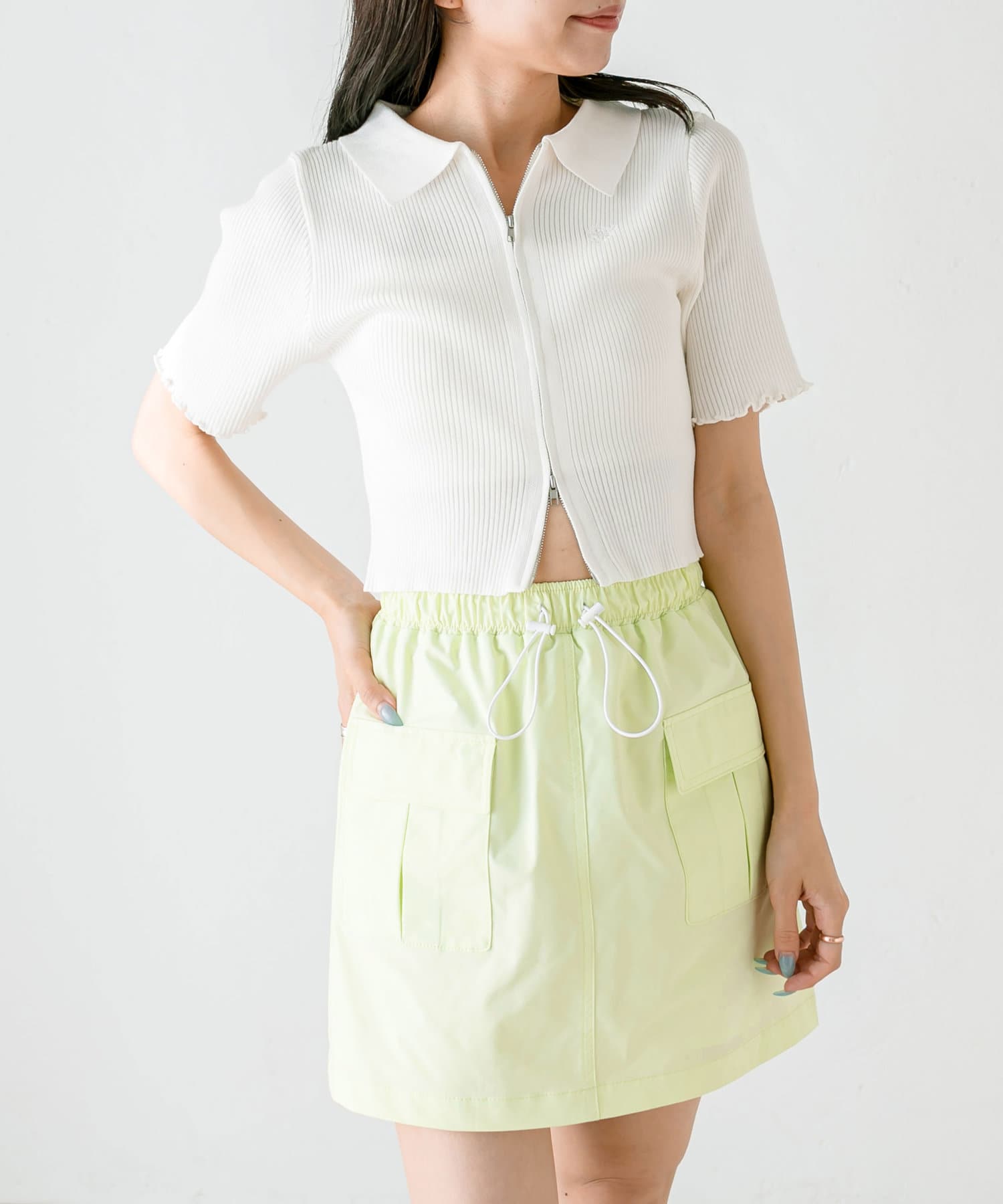・カジュアルな印象のカーゴスカートですが、つるんとした素材でカジュアルすぎずガーリーに着ていただけます。