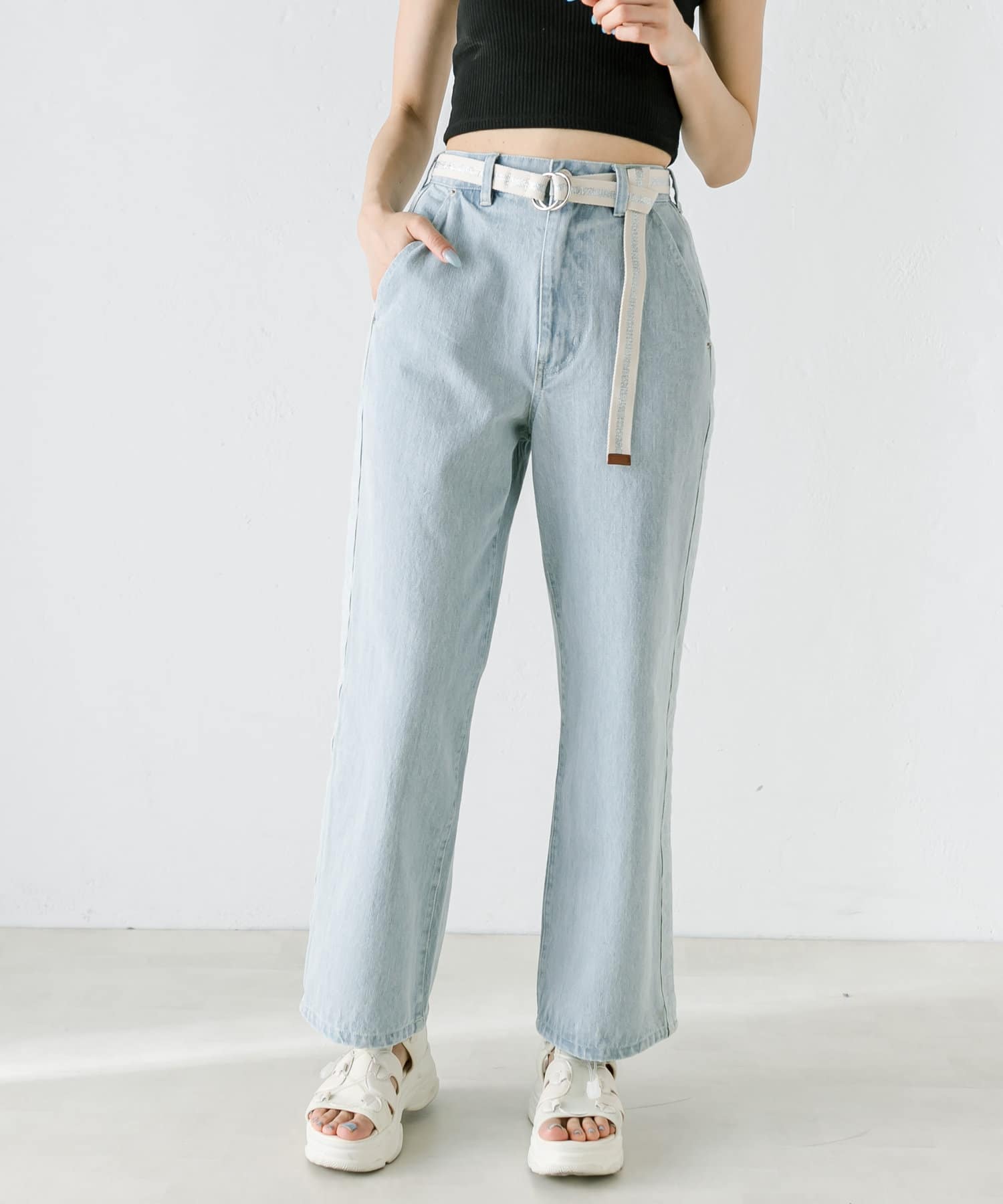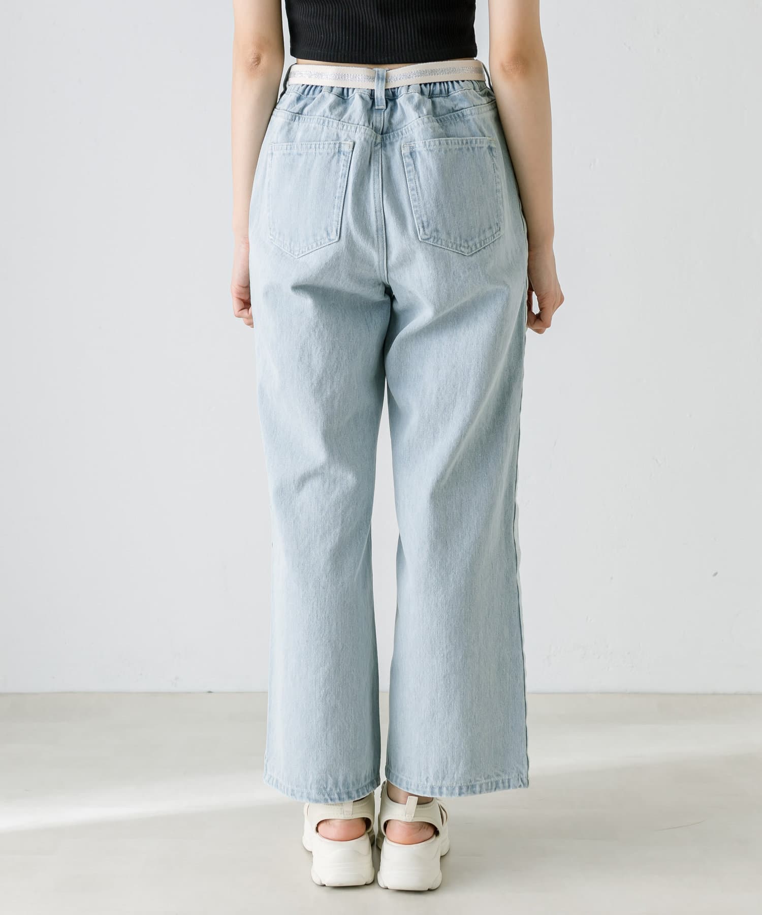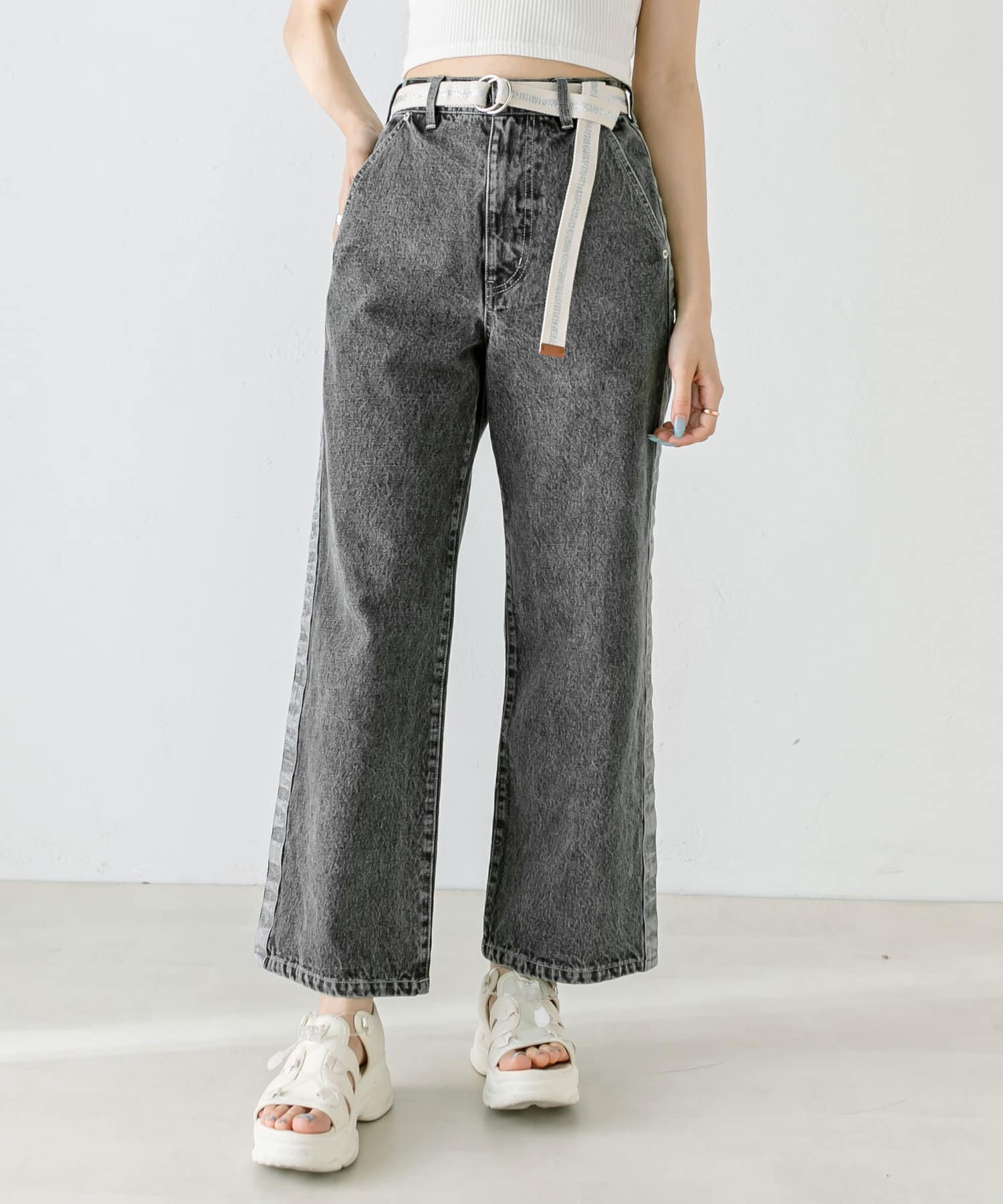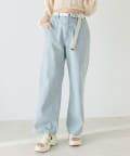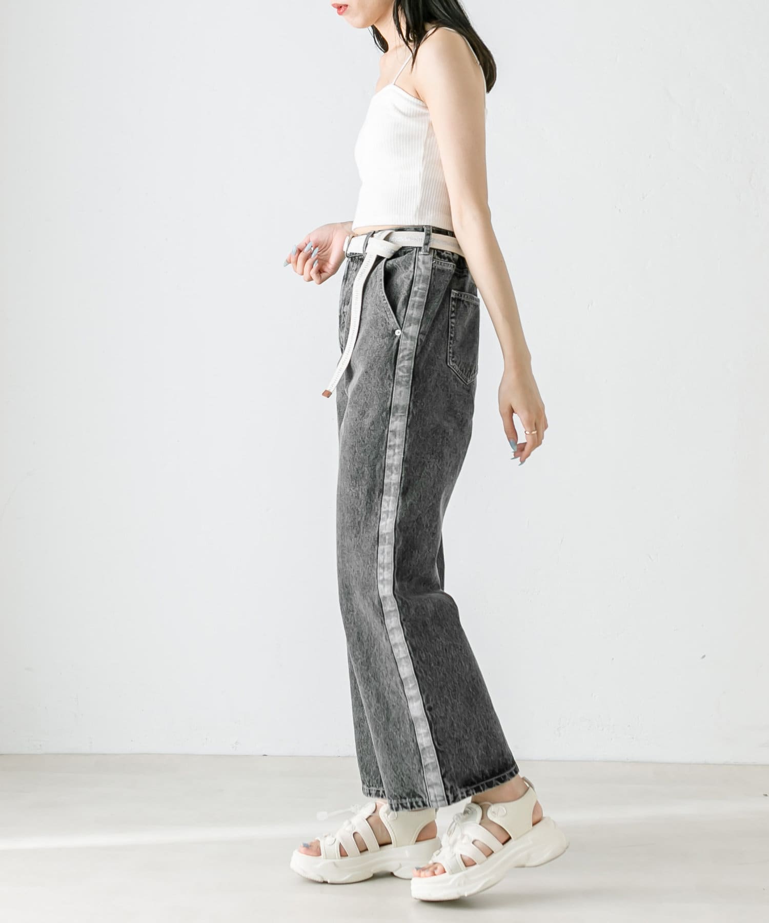 【S/Mサイズあり】ベルト付きサイドラインデニムパンツ