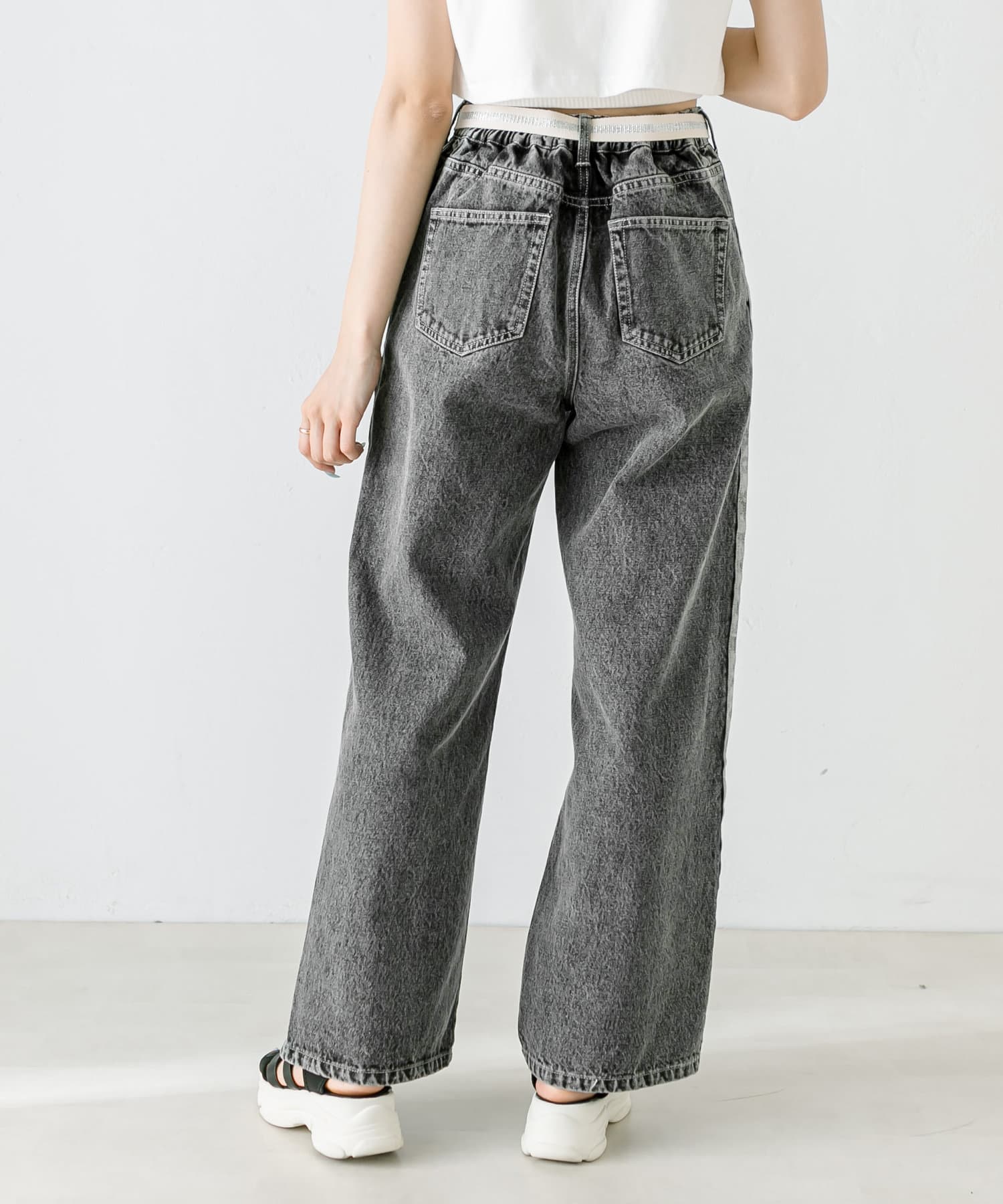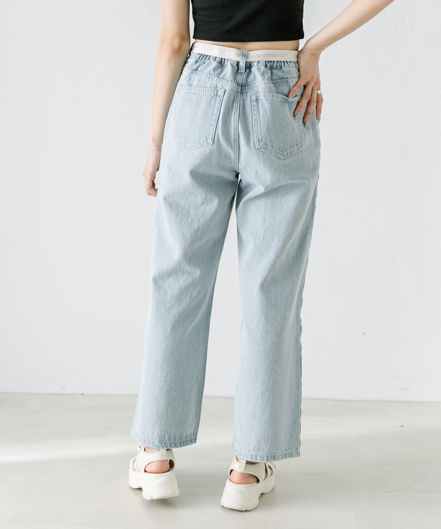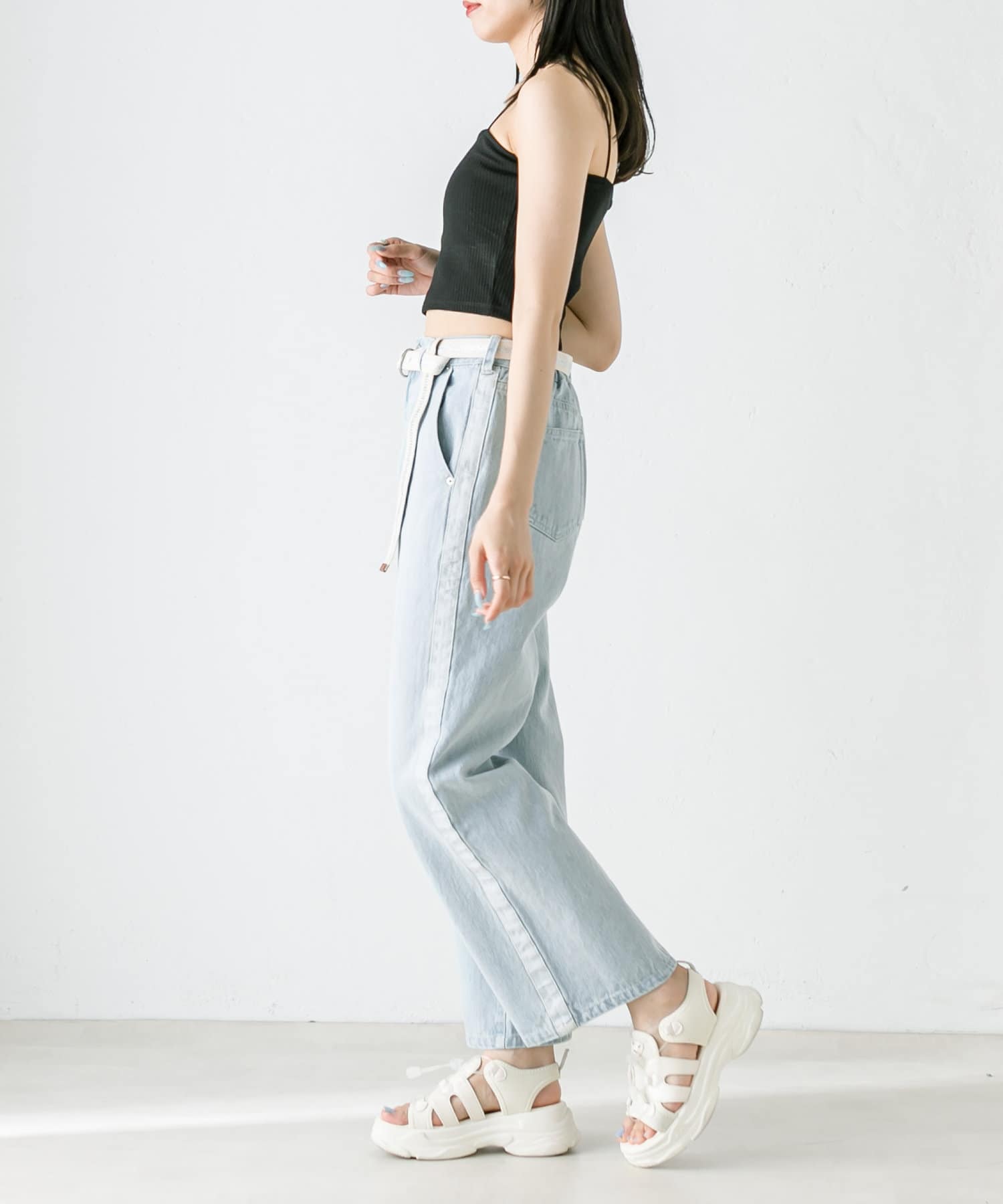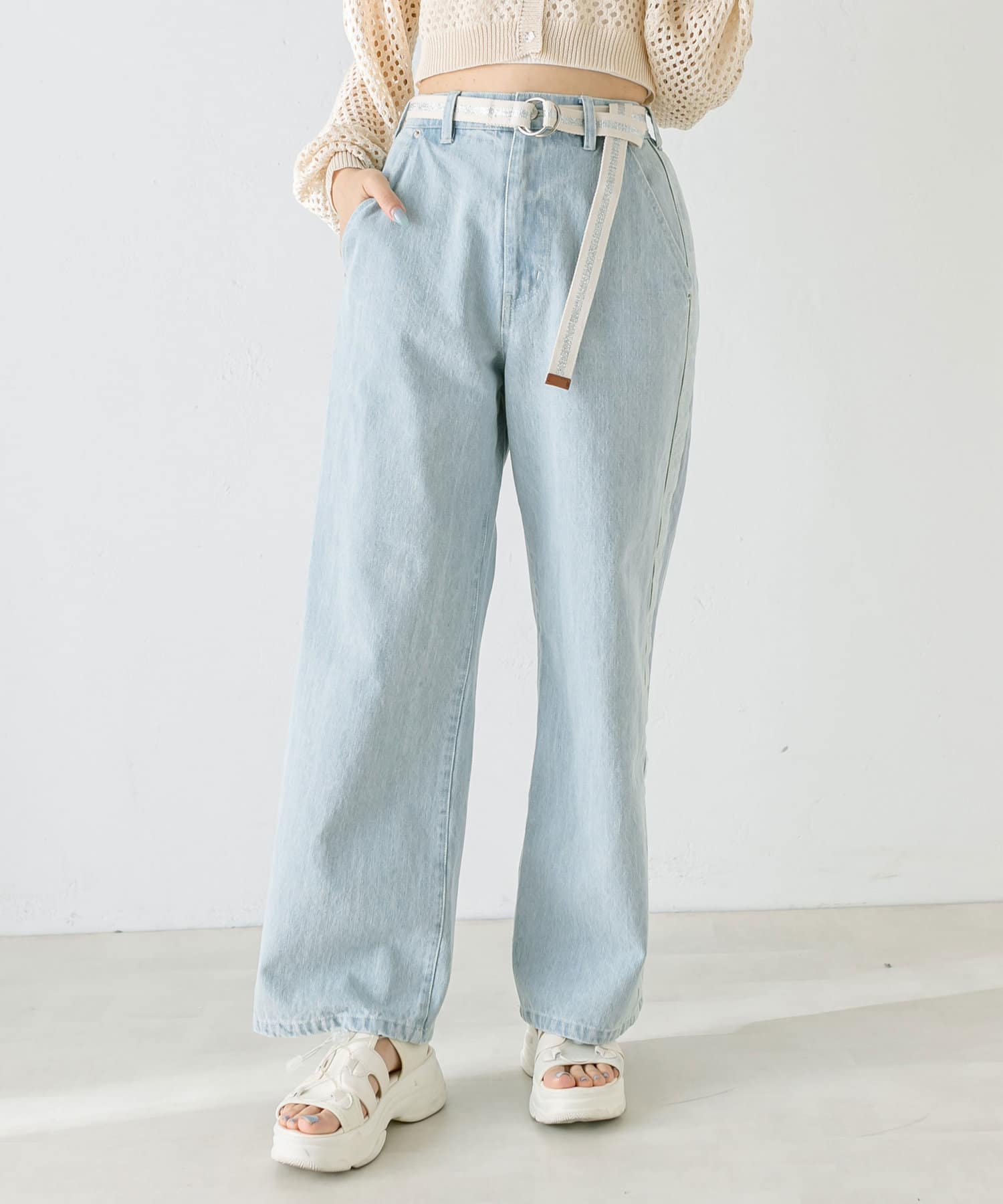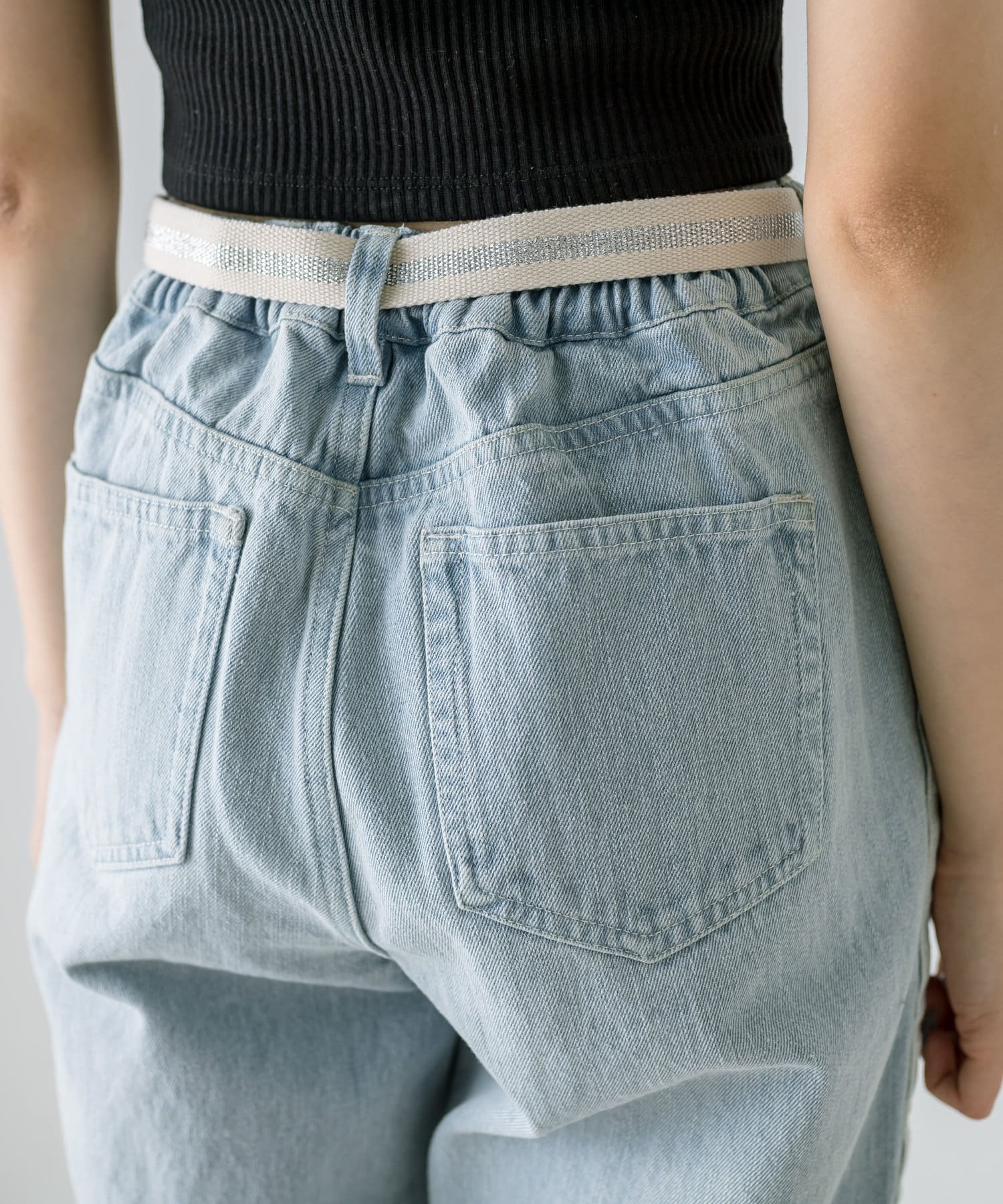 【S/Mサイズあり】ベルト付きサイドラインデニムパンツ