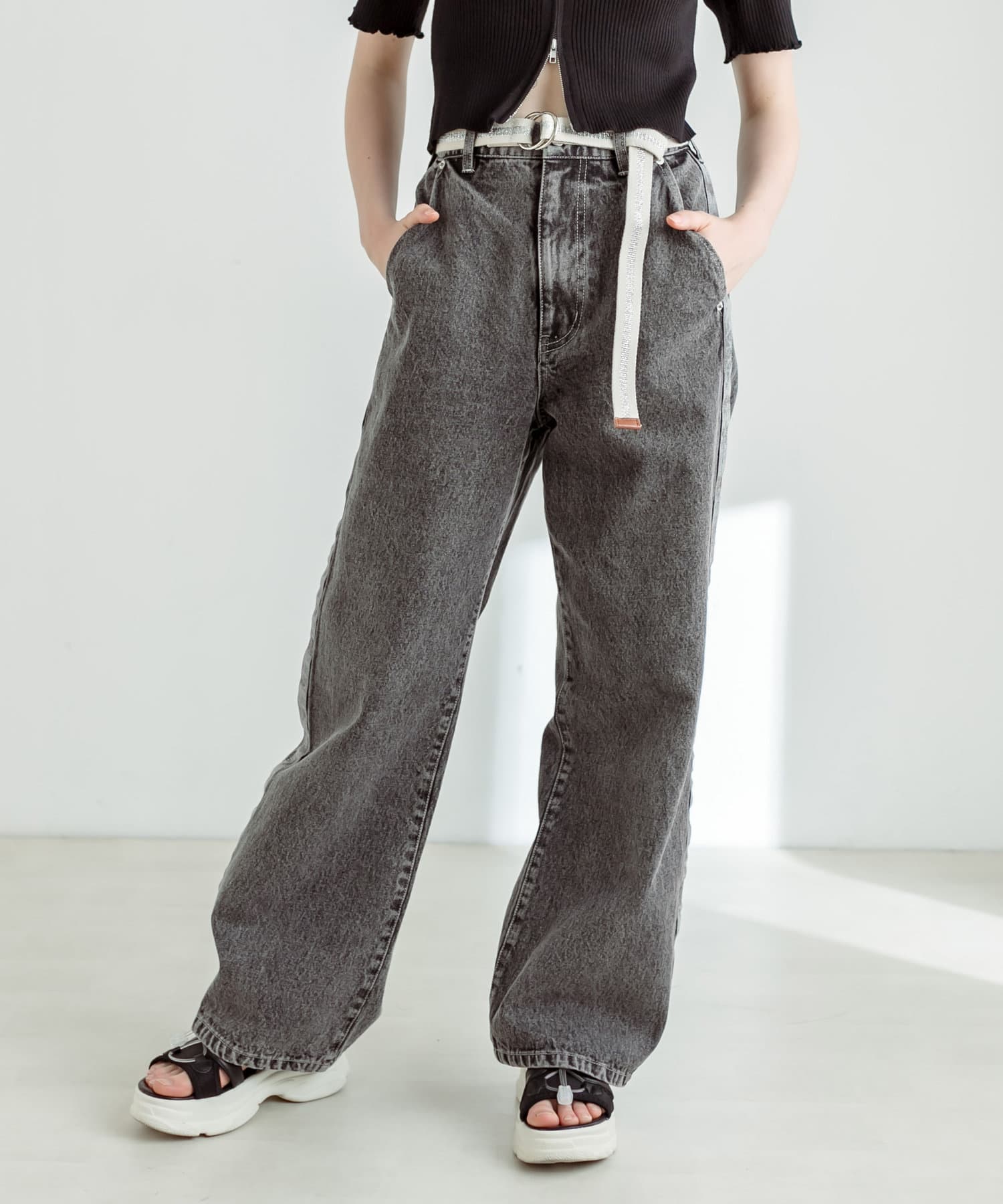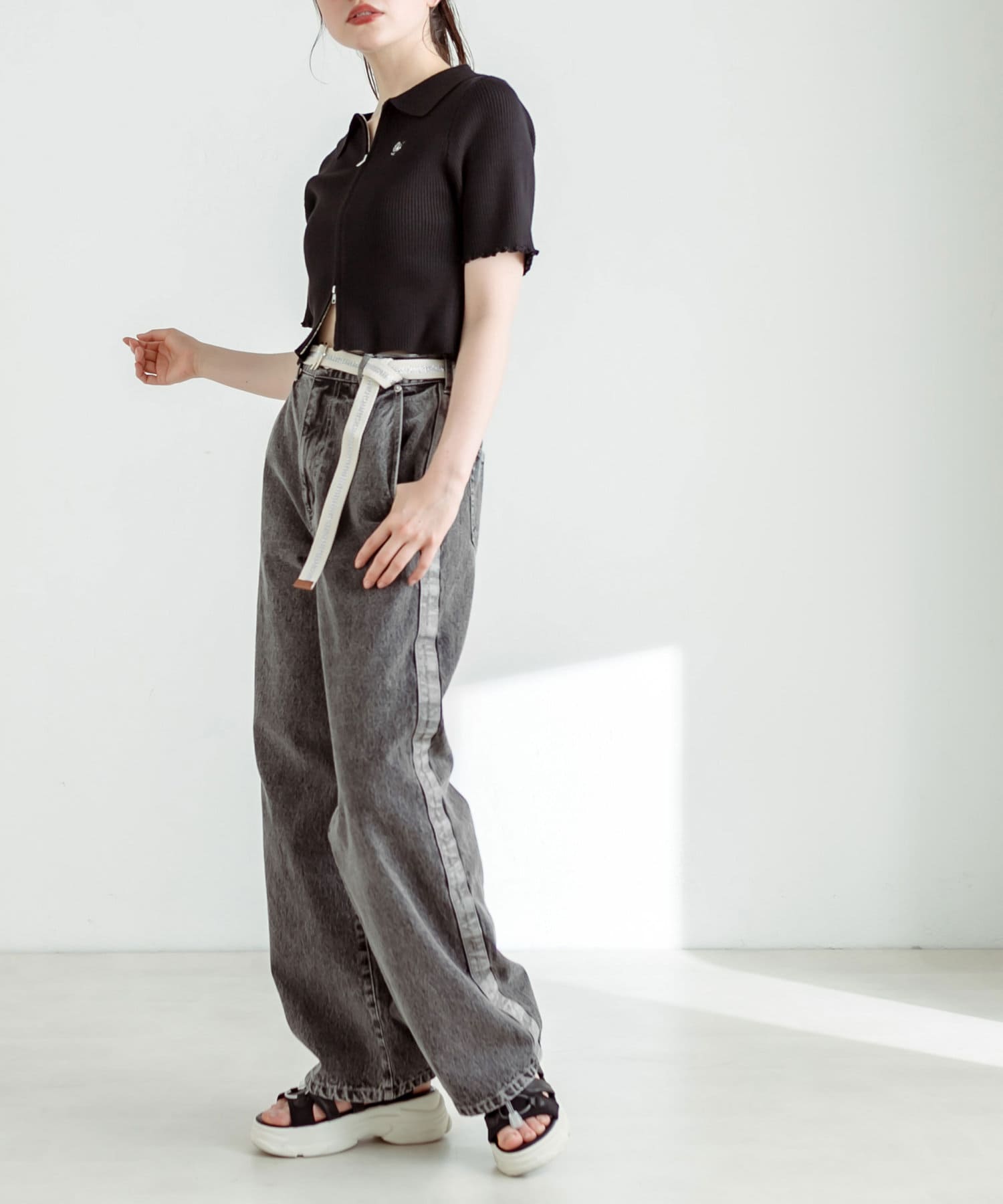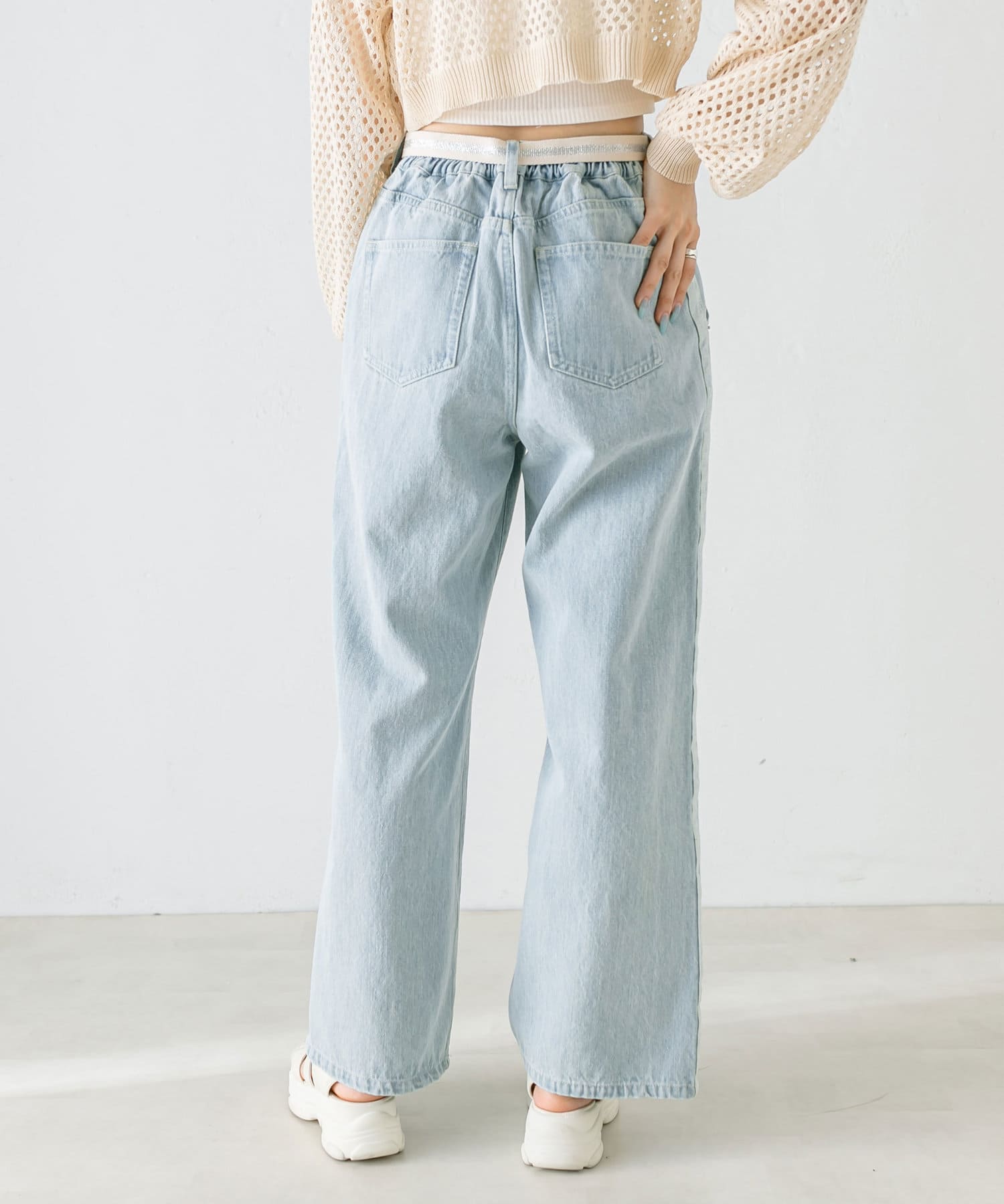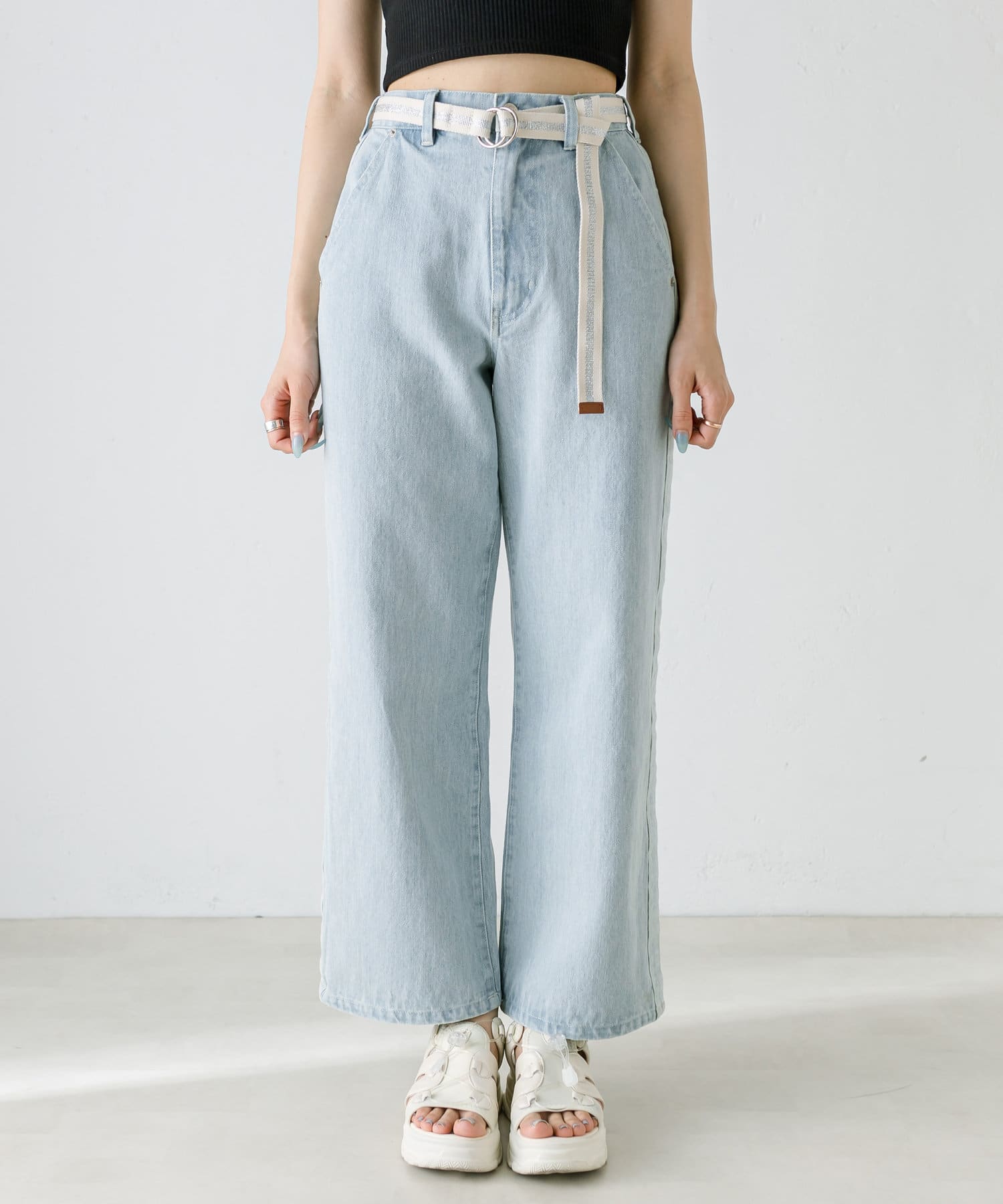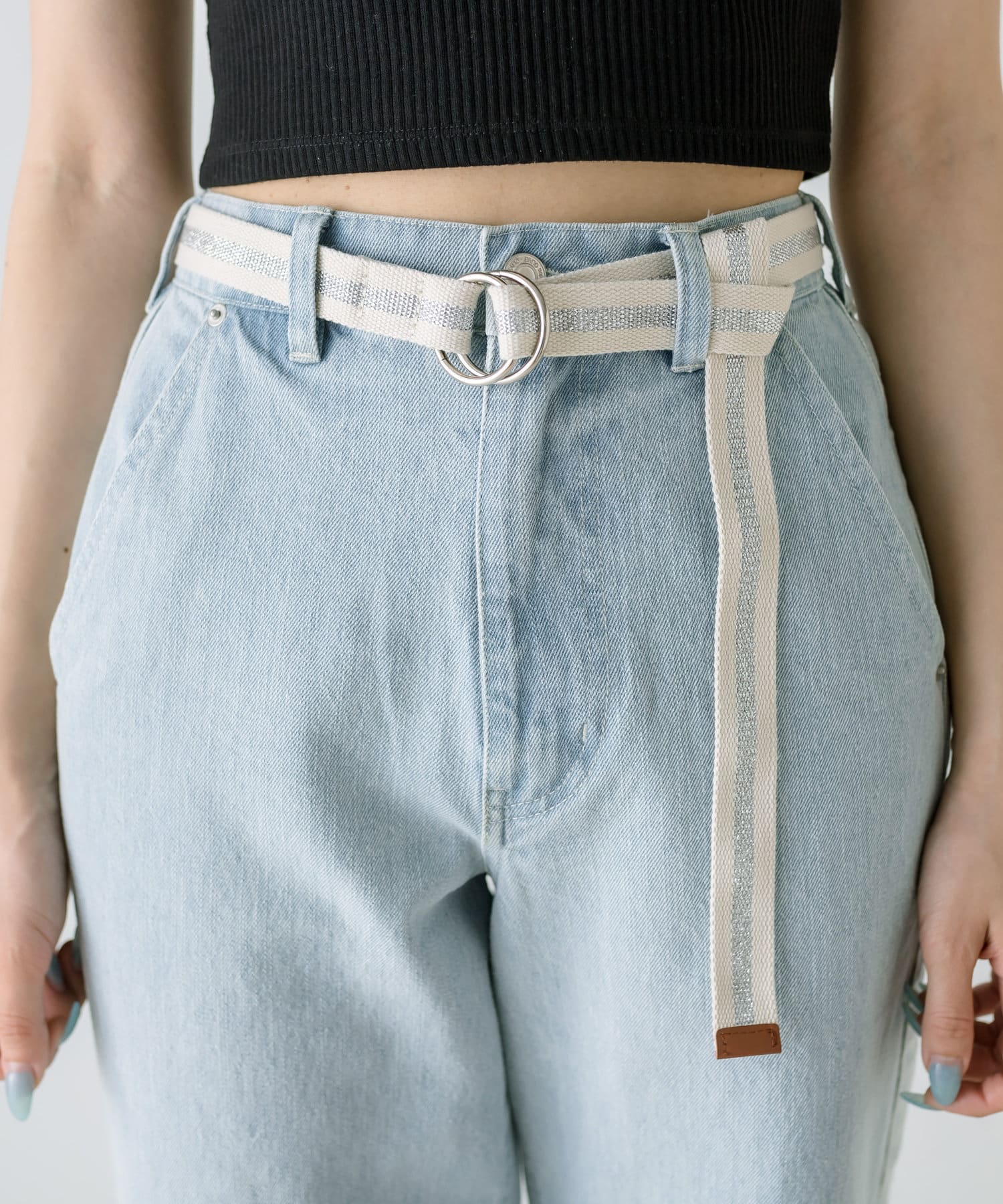 【S/Mサイズあり】ベルト付きサイドラインデニムパンツ