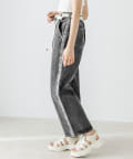・サイドラインにデニムの裏側を使用し、さりげないデザインで挑戦しやすいラインパンツ。