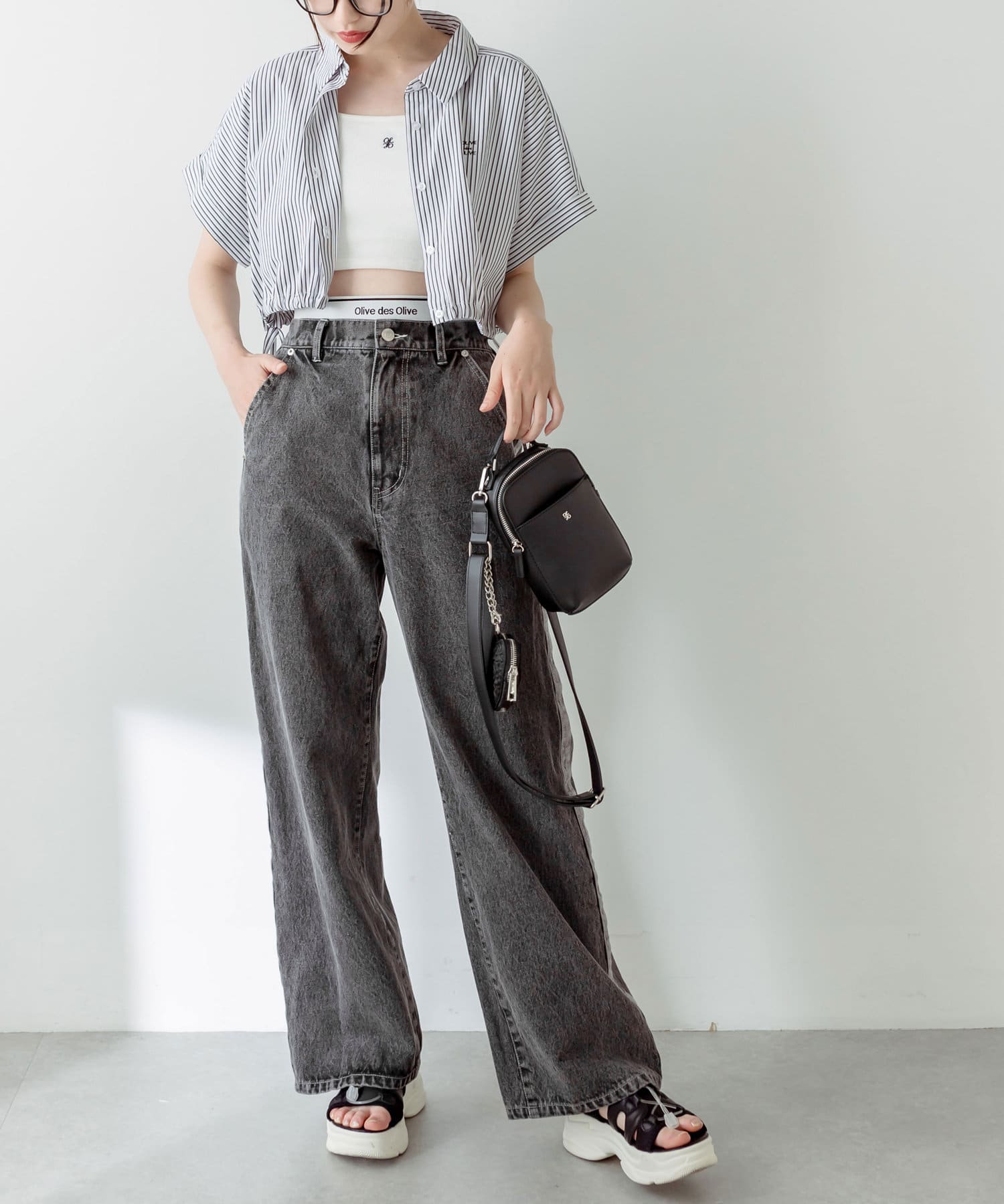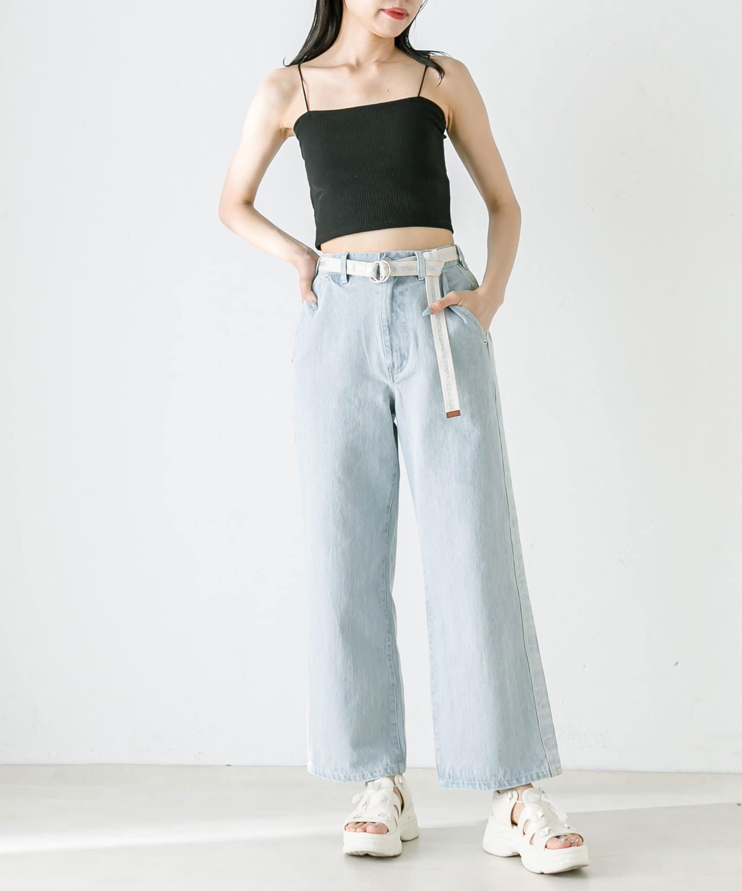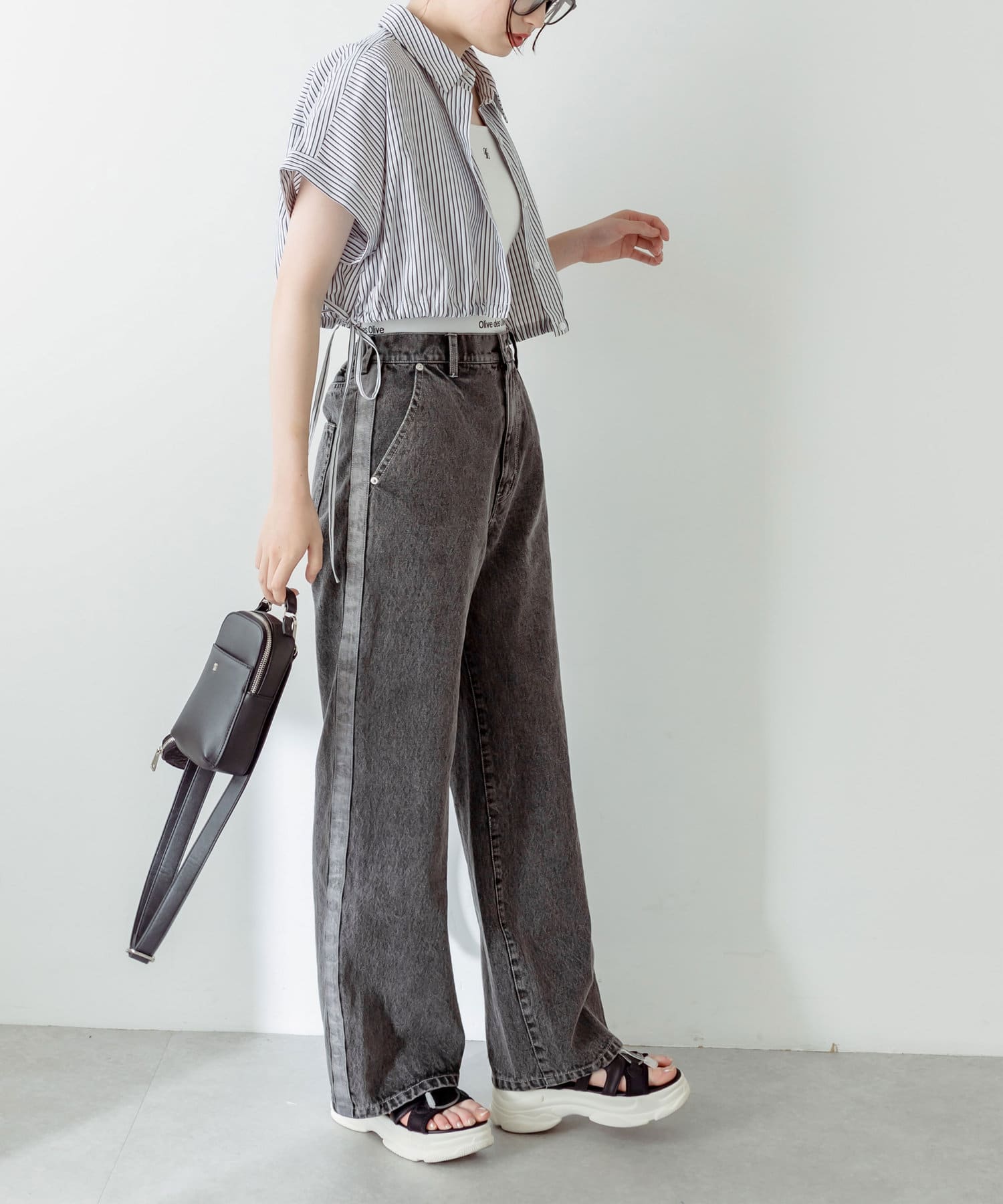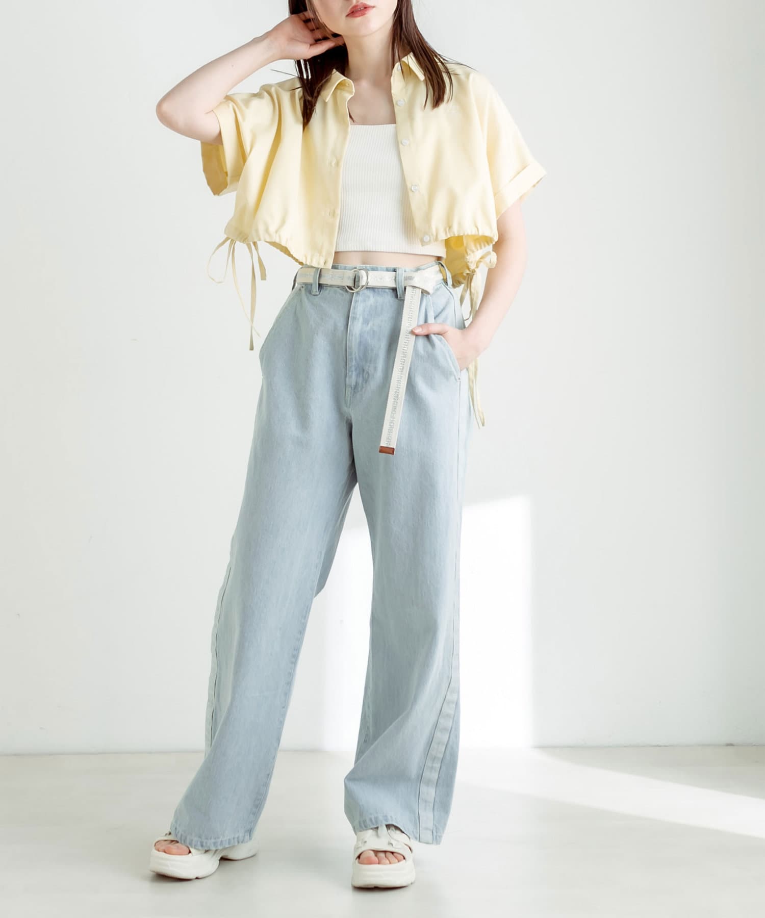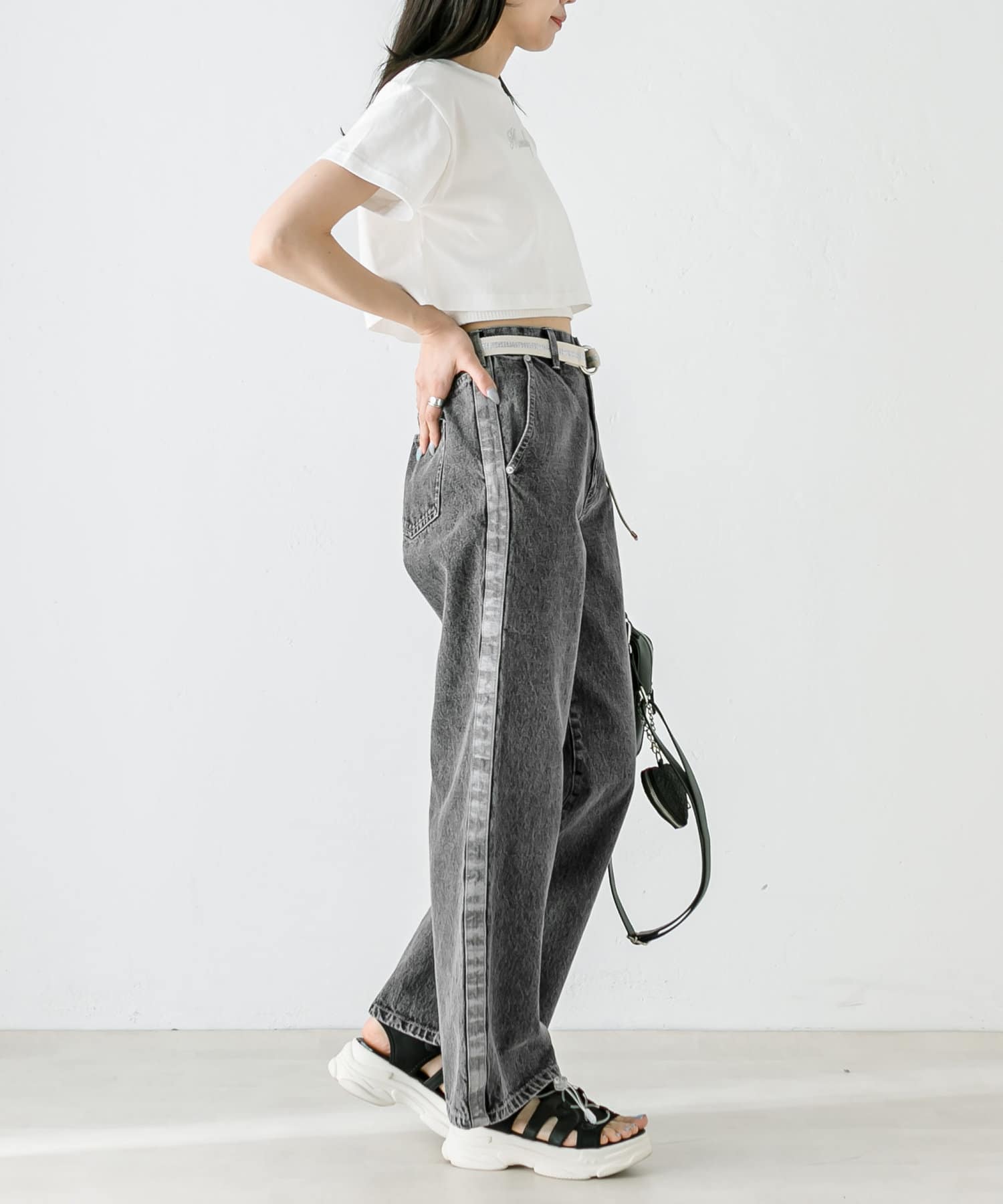 ・トップスはクロップド丈のTシャツやシャツなどコンパクトなものがおすすめ。