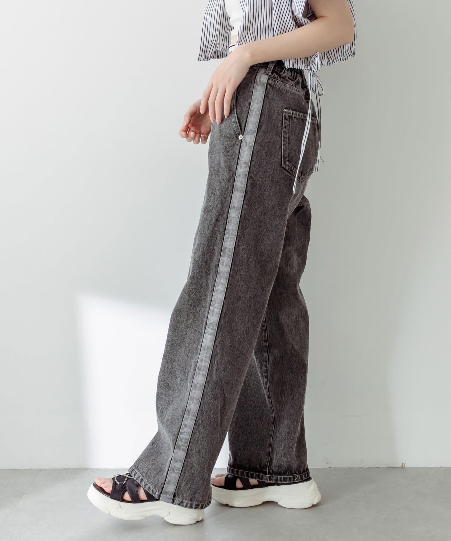 トレンドライクなライン入りデニムパンツ