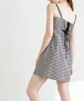 ・後ろはゴムでバストはリボンを結んで調節可能。サイドはファスナー付き。
