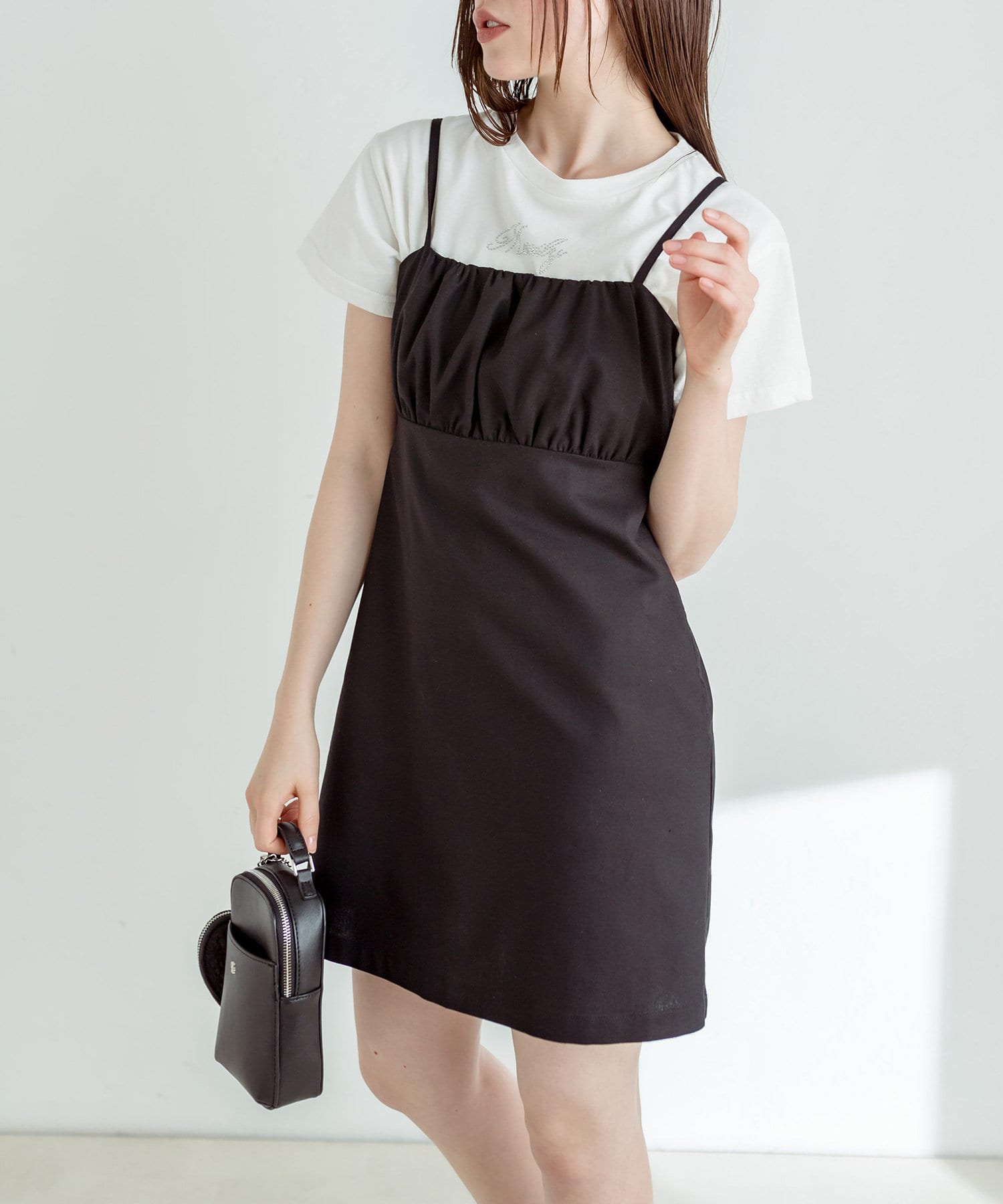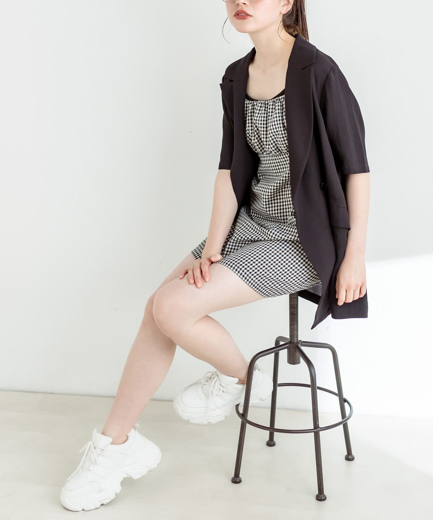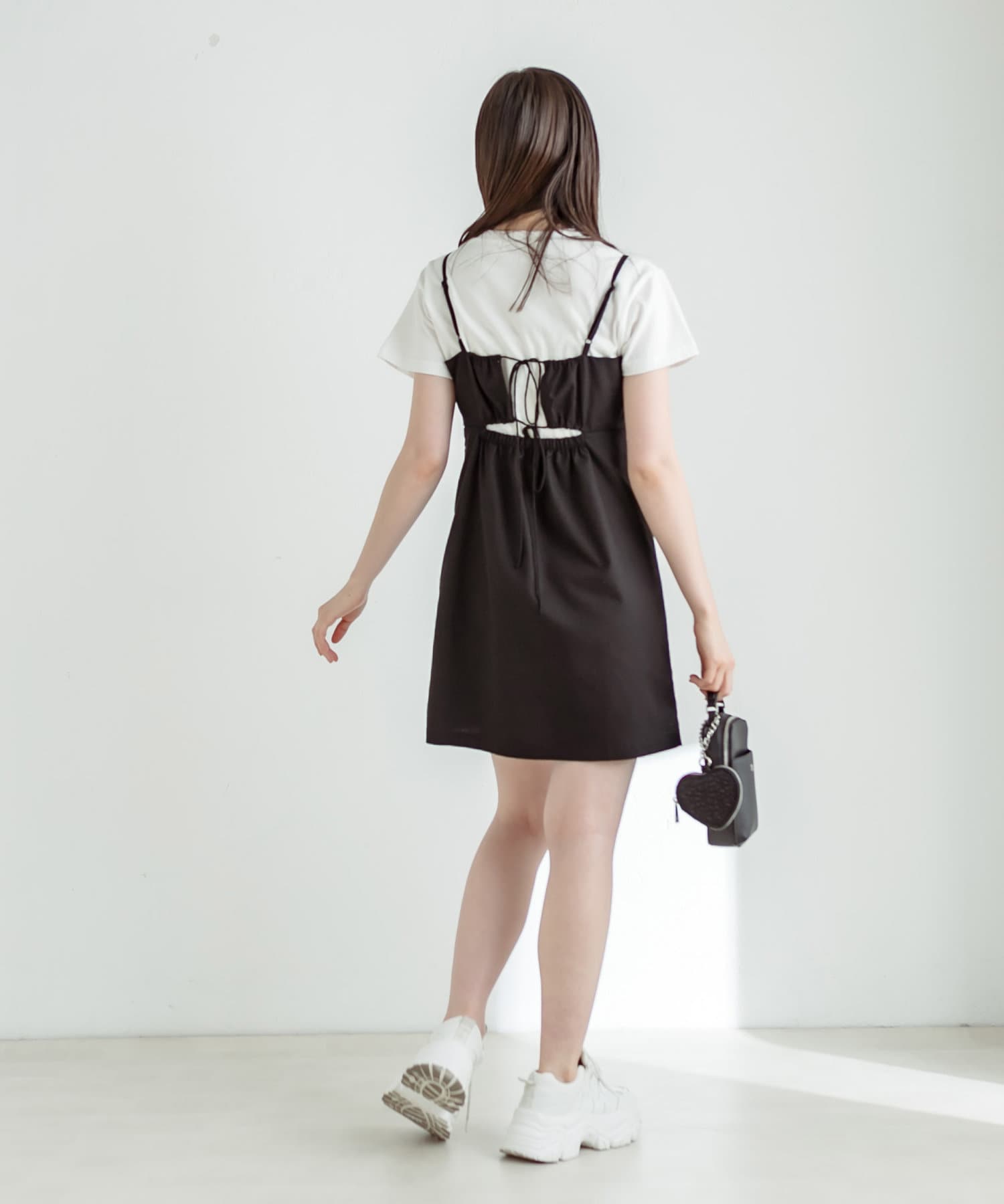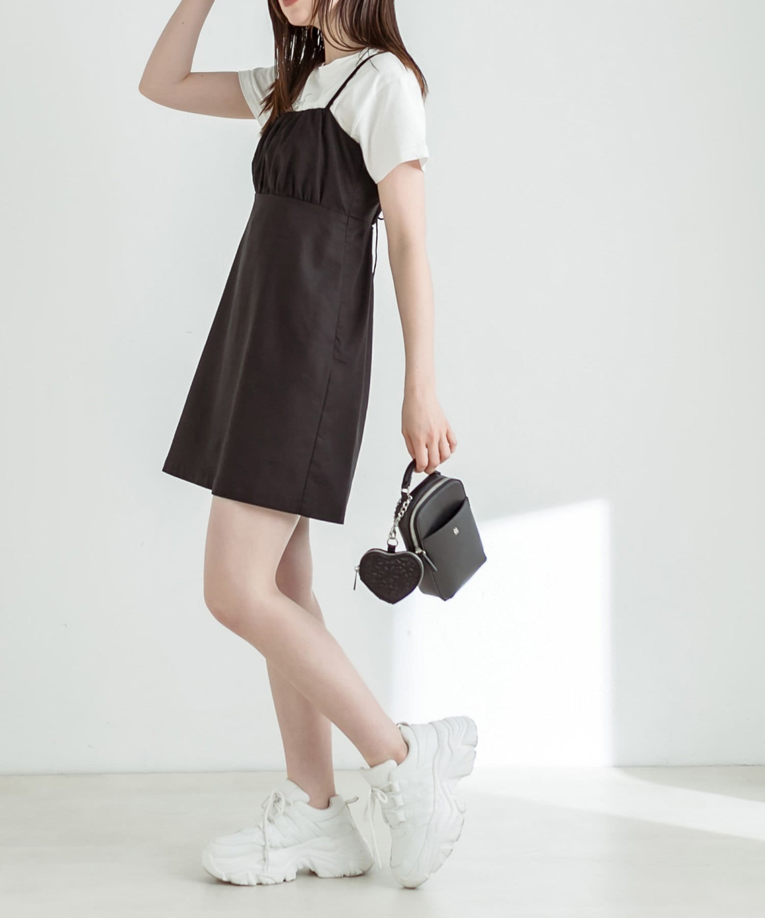 ・ミニが苦手な方はパンツを合わせたり、肌見せが苦手な方はTシャツ、タンクをレイヤードをしても◎