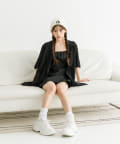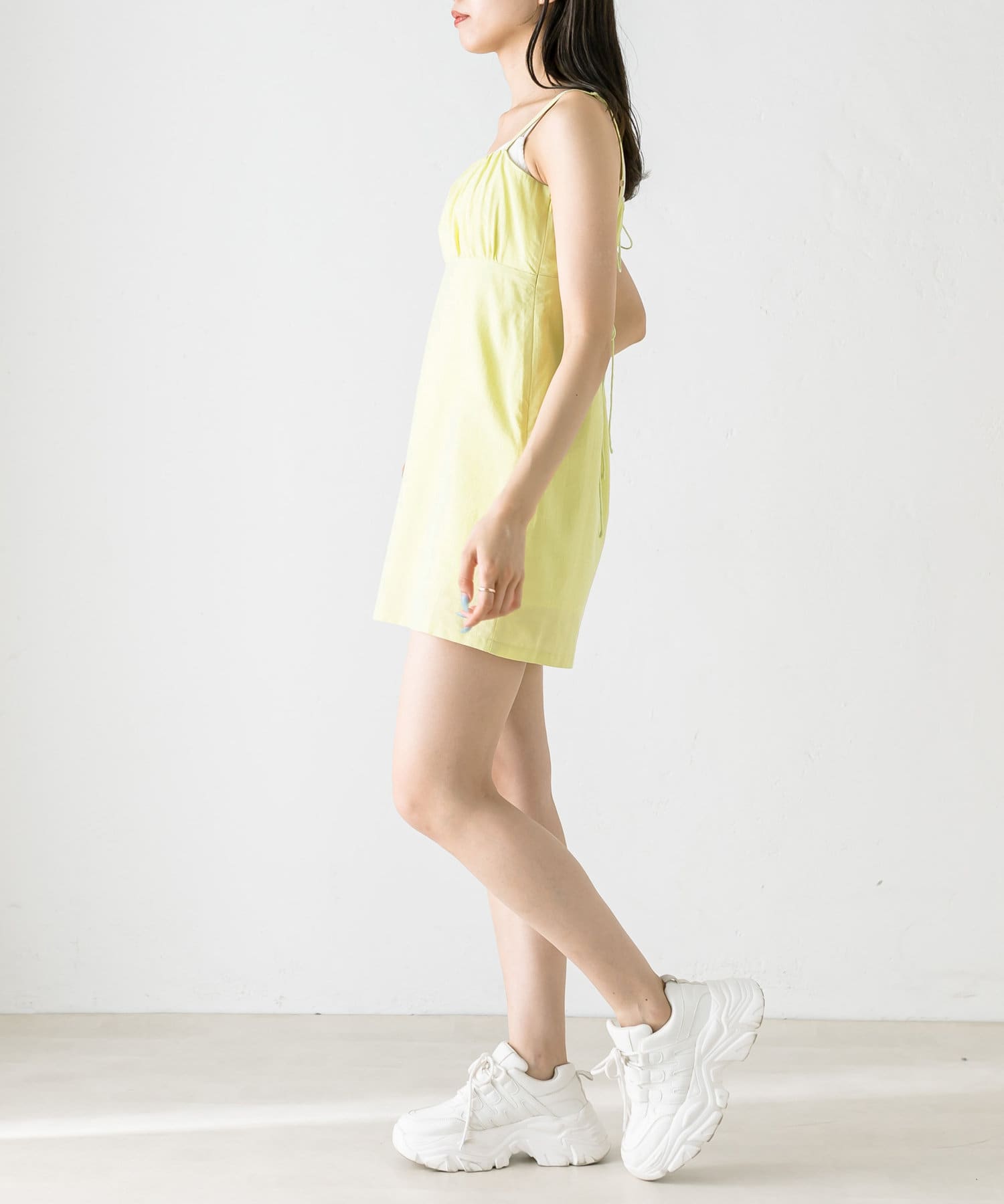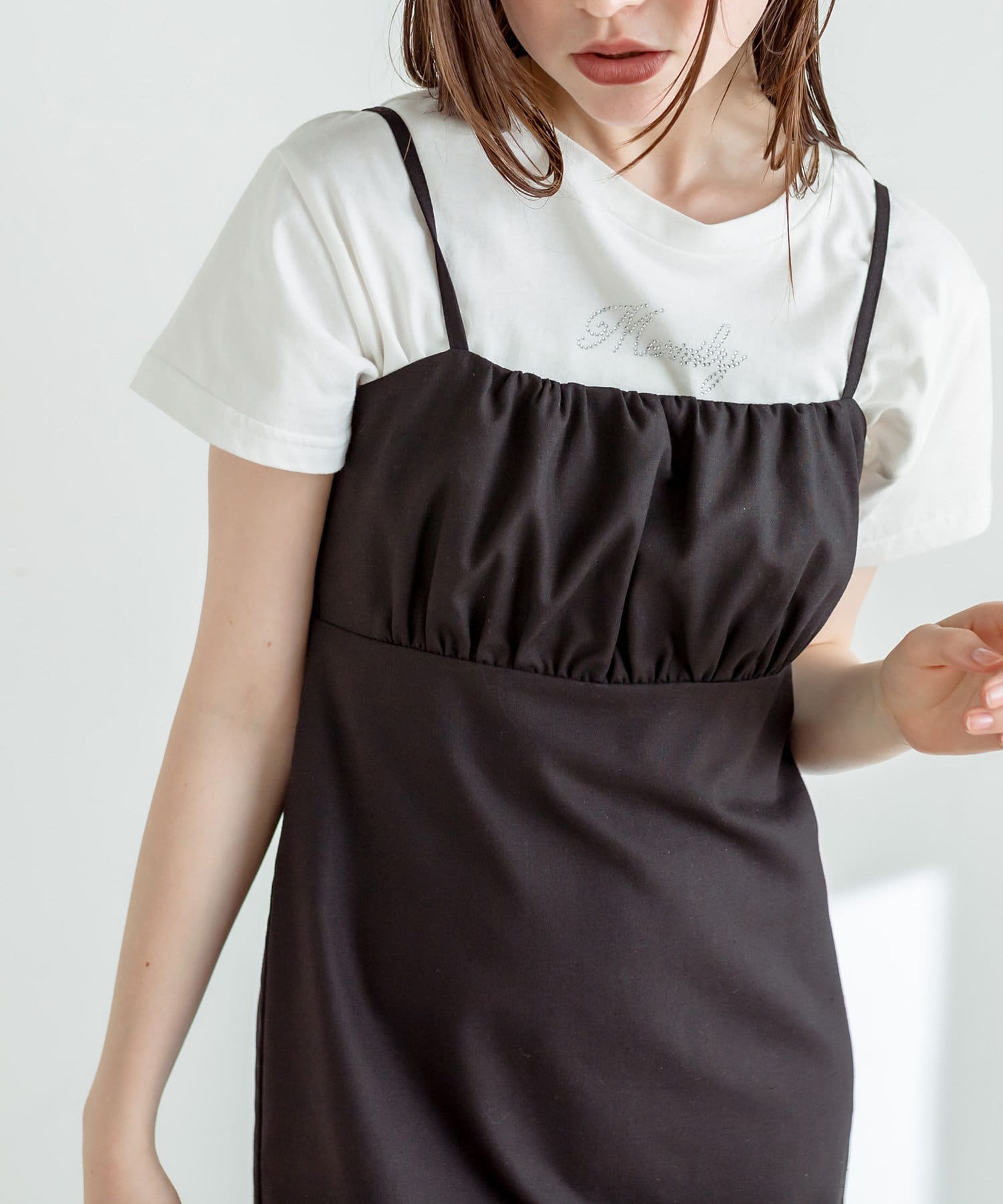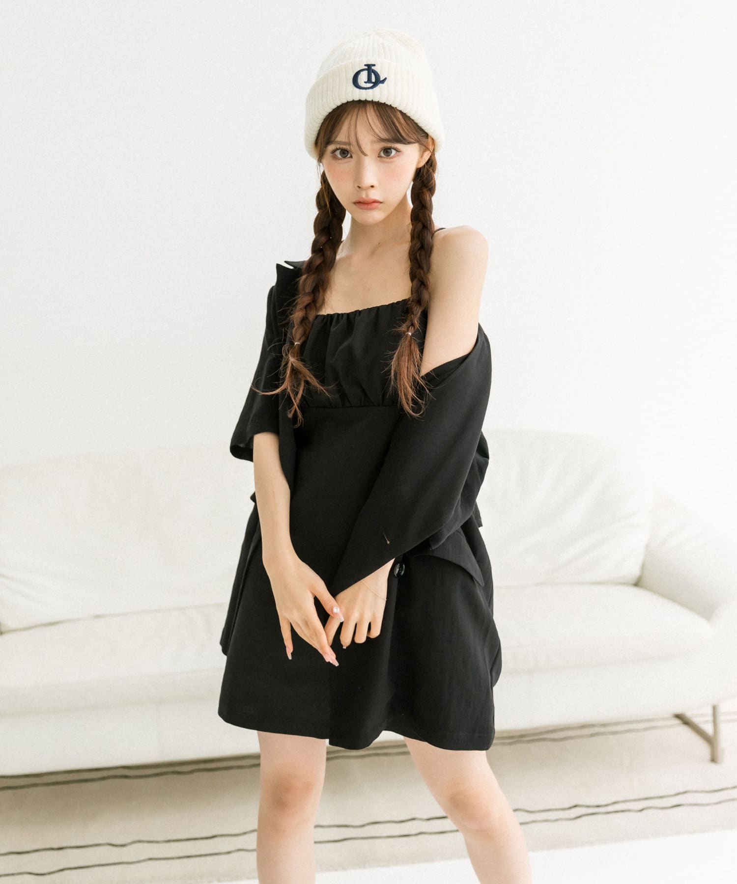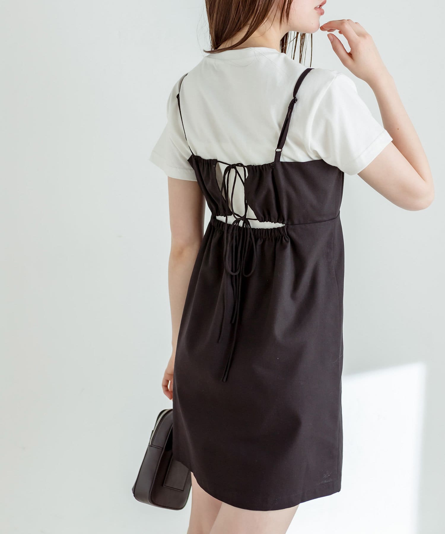 ・ミニが苦手な方はパンツを合わせたり、肌見せが苦手な方はTシャツ、タンクをレイヤードをしても◎
