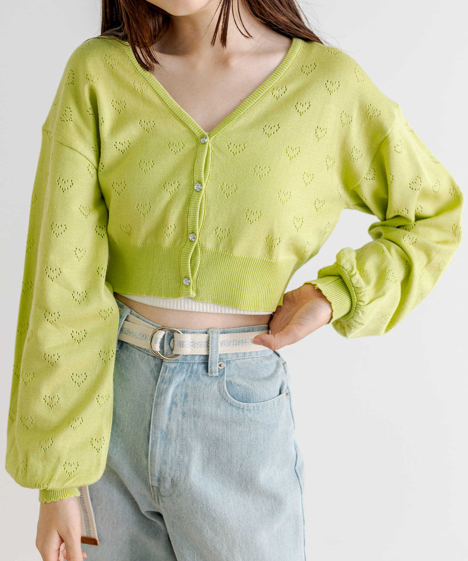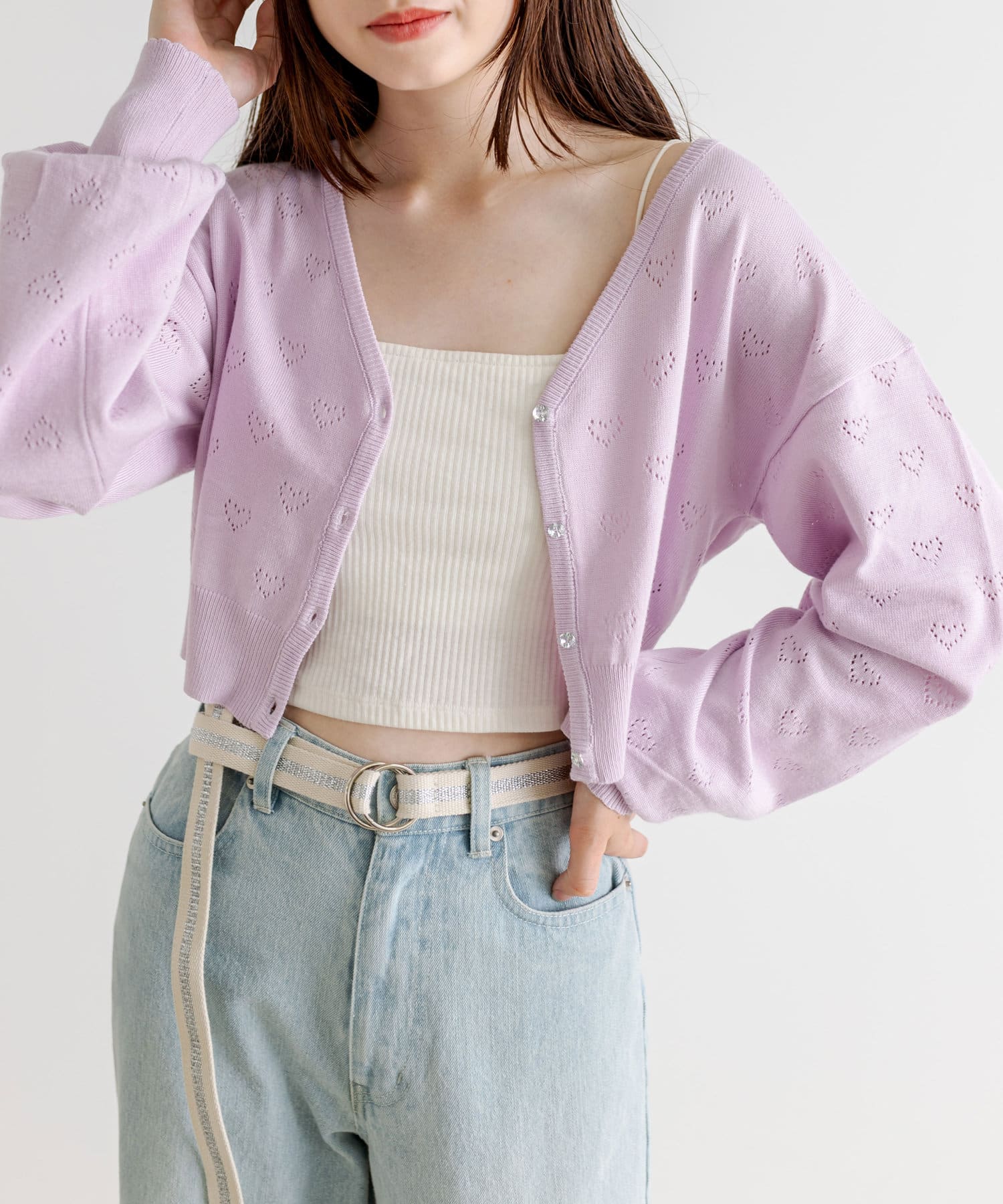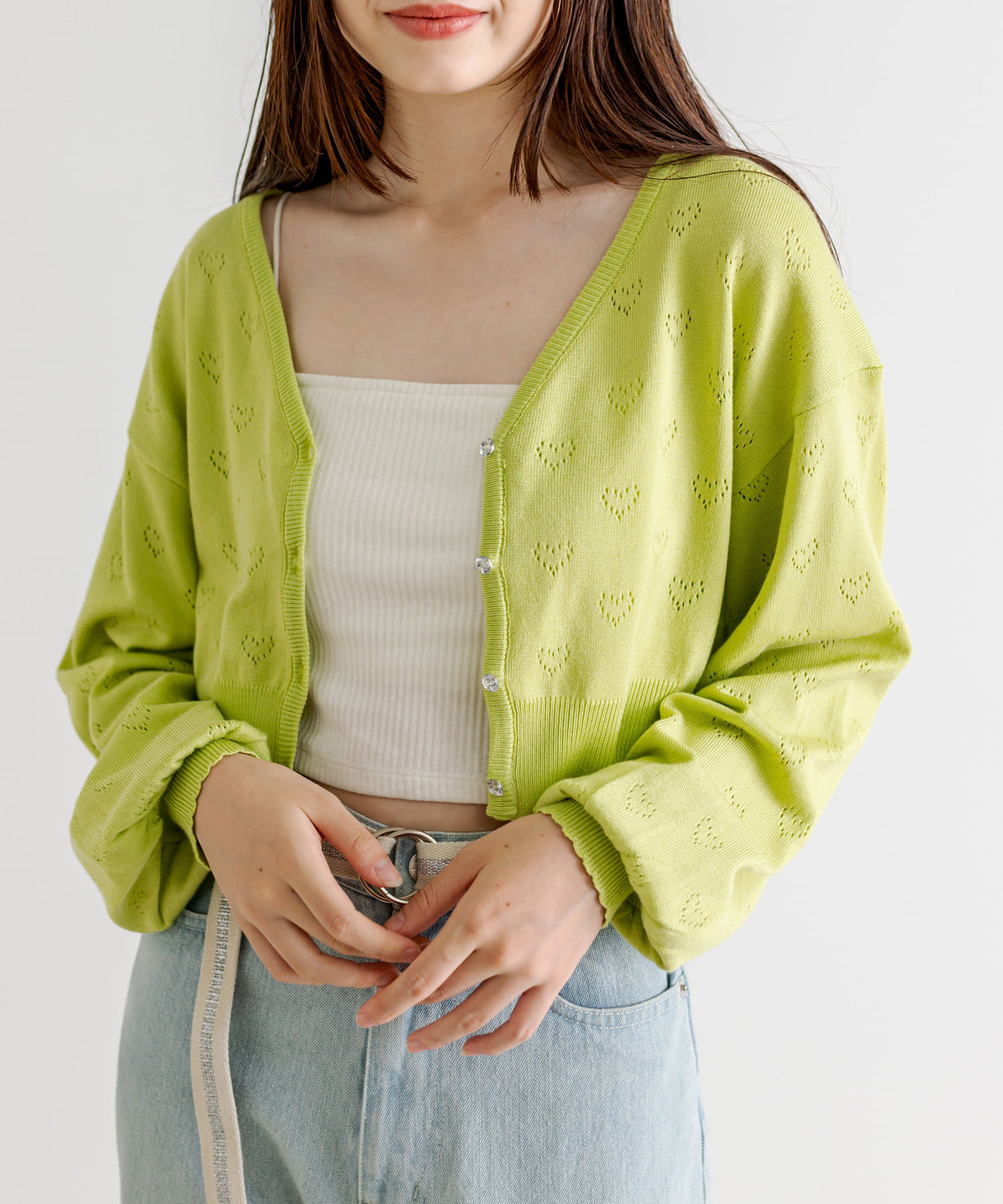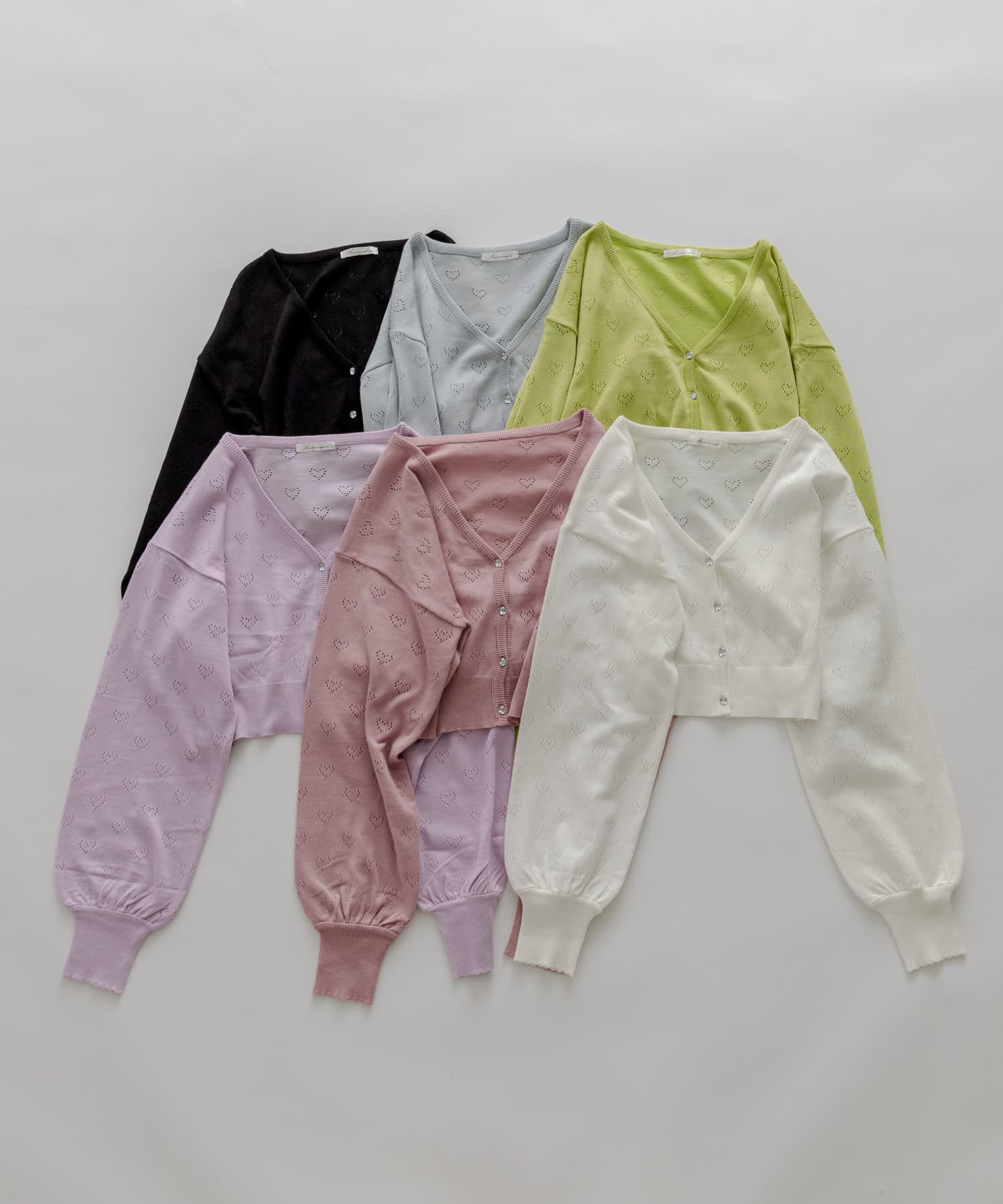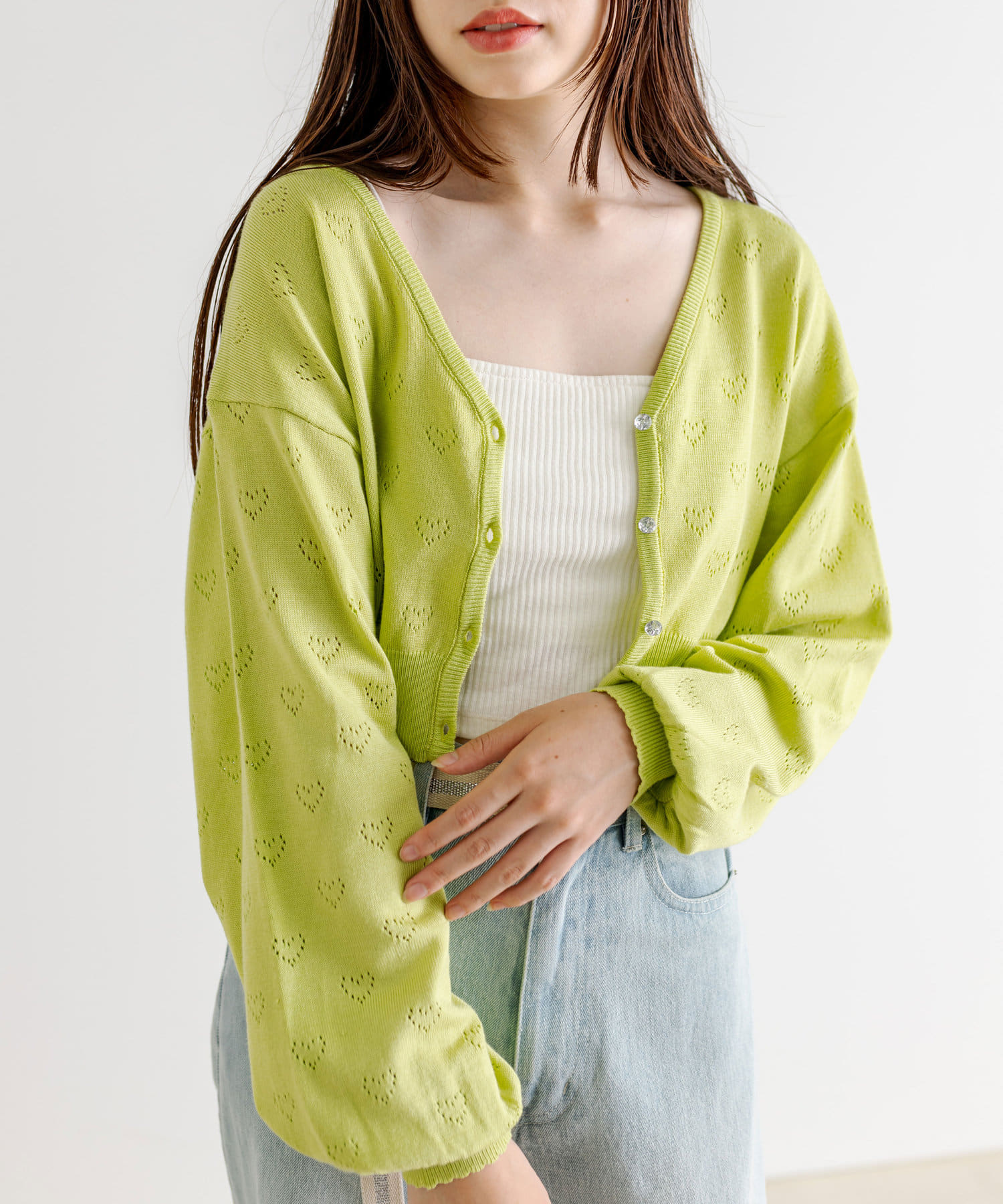 推しカラーコーデが楽しめる!ハート透かしカーディガン