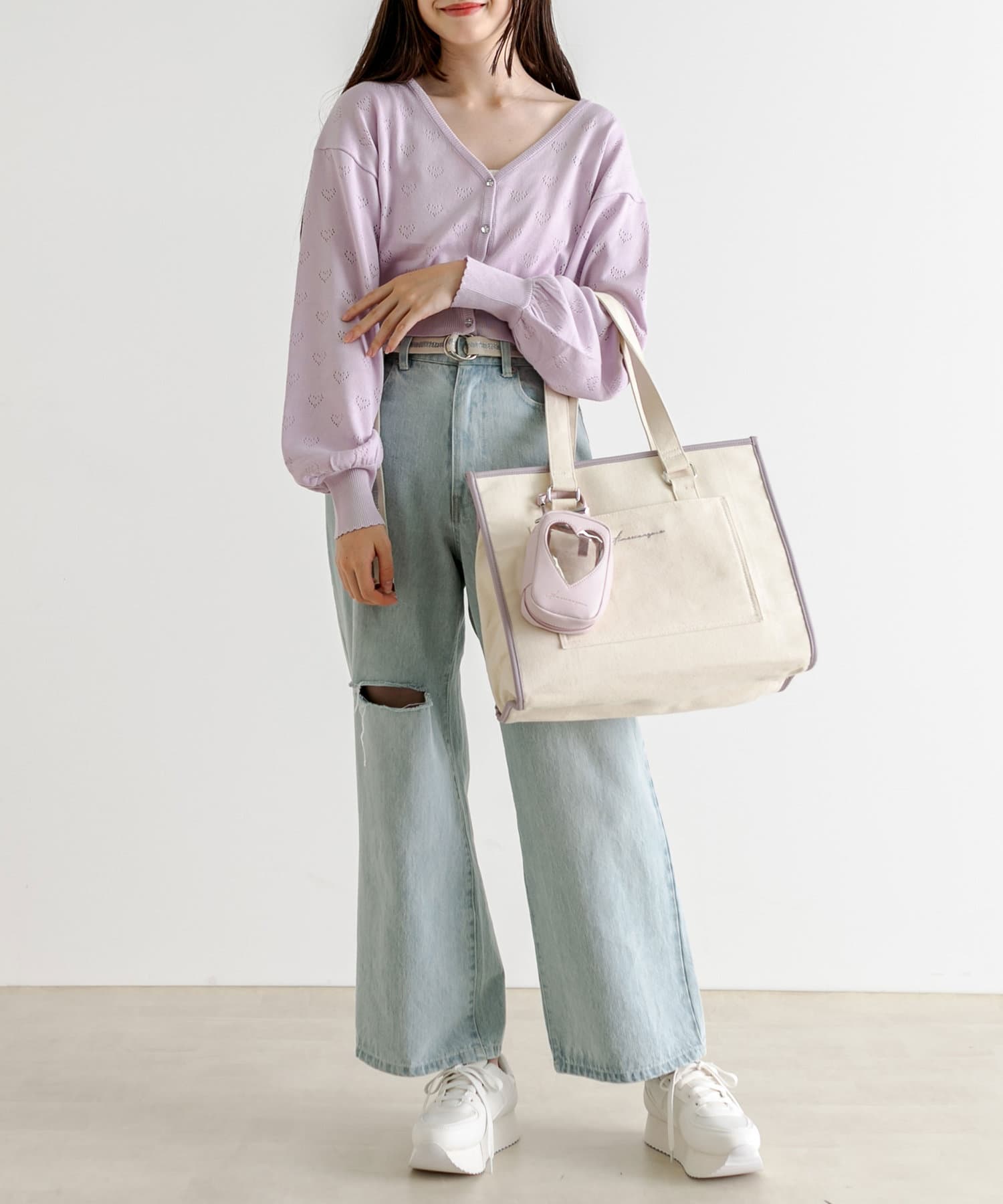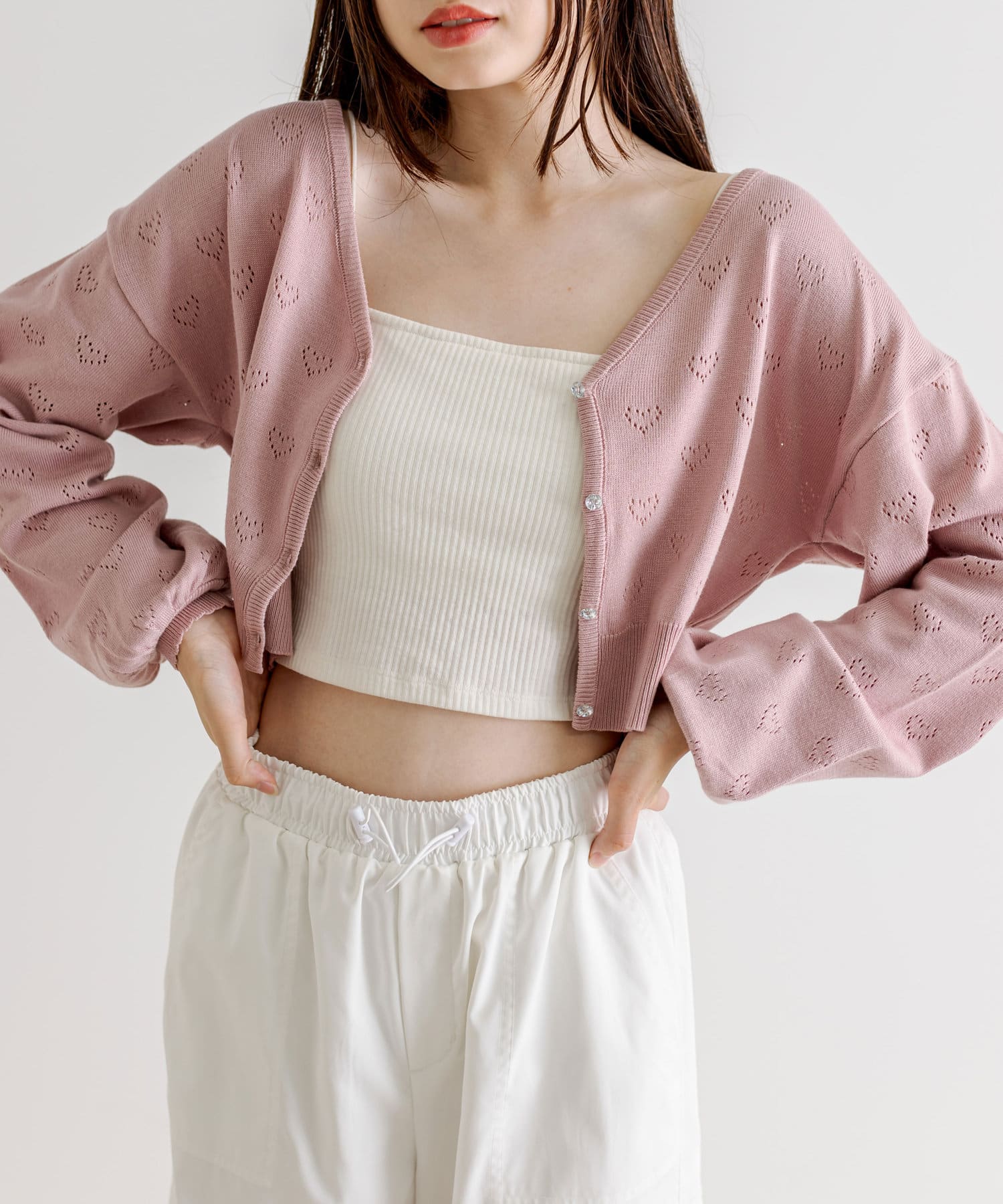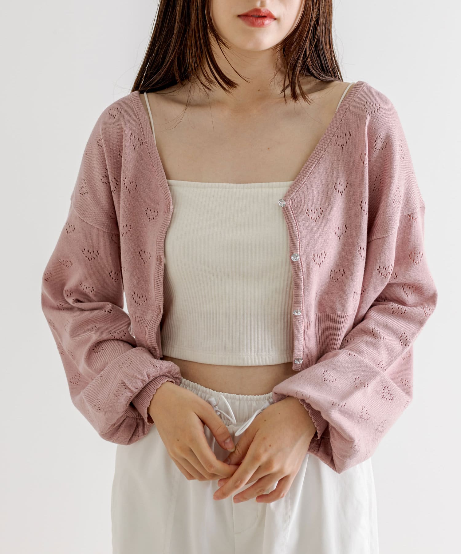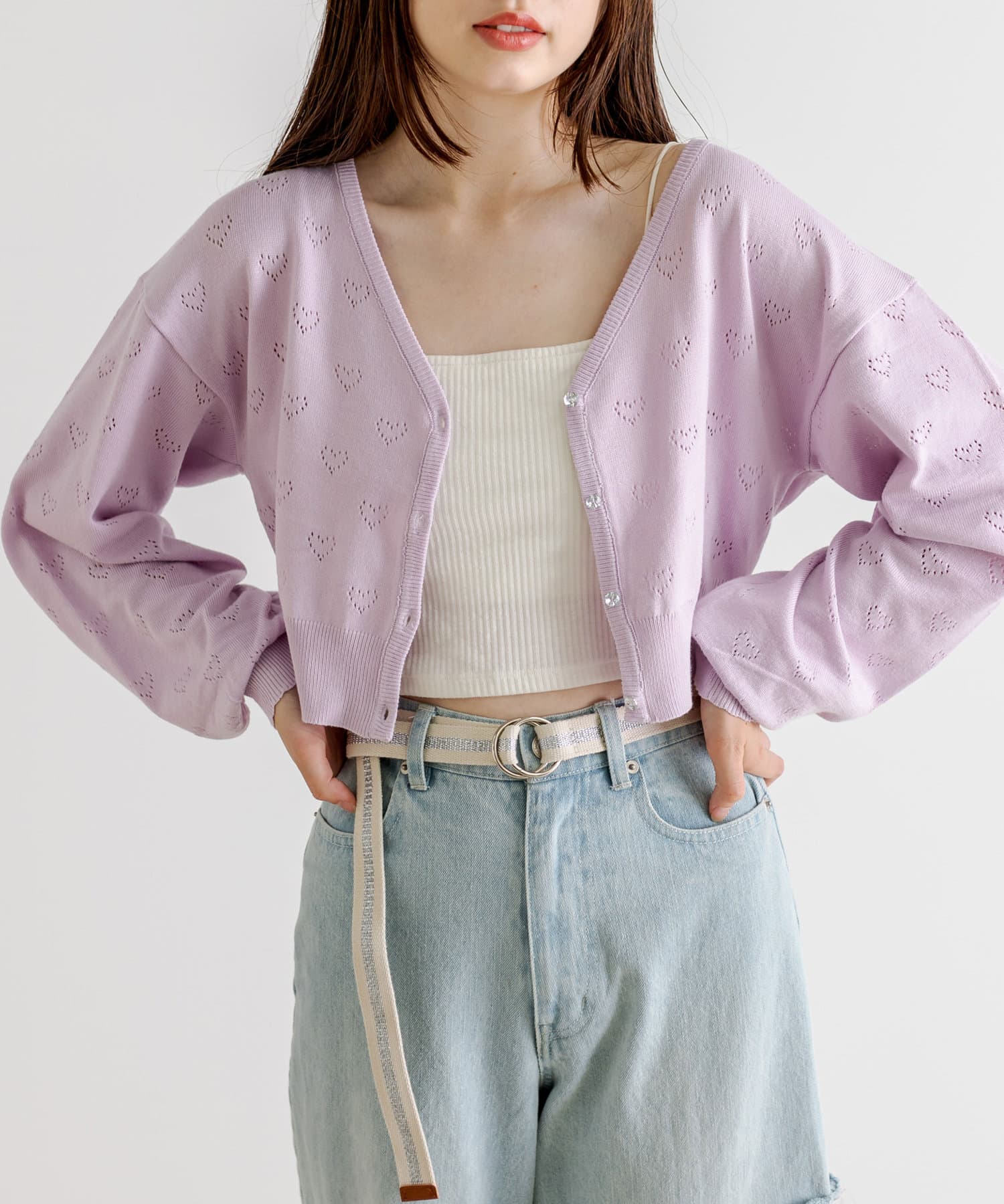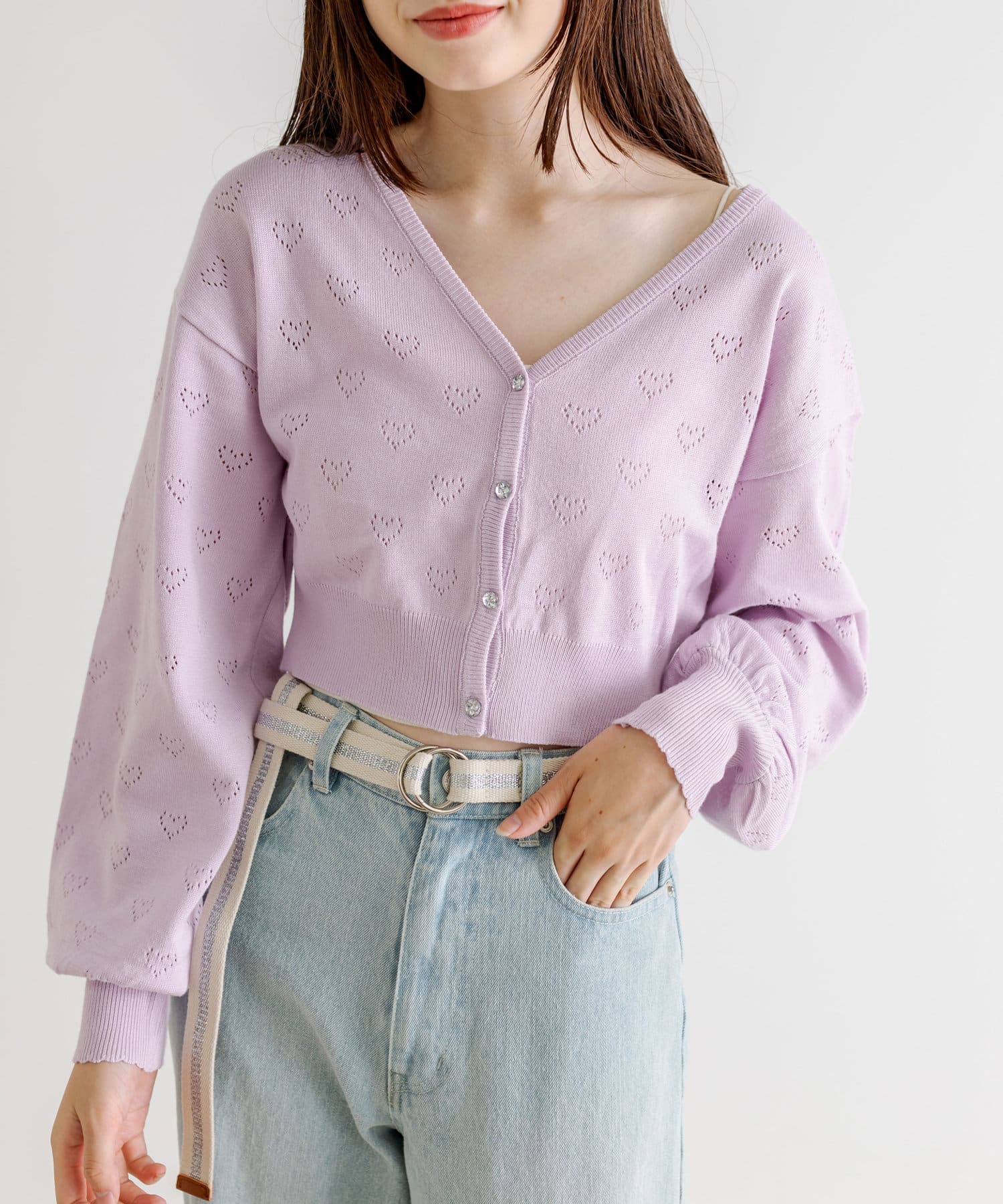 推しカラーコーデが楽しめる!ハート透かしカーディガン