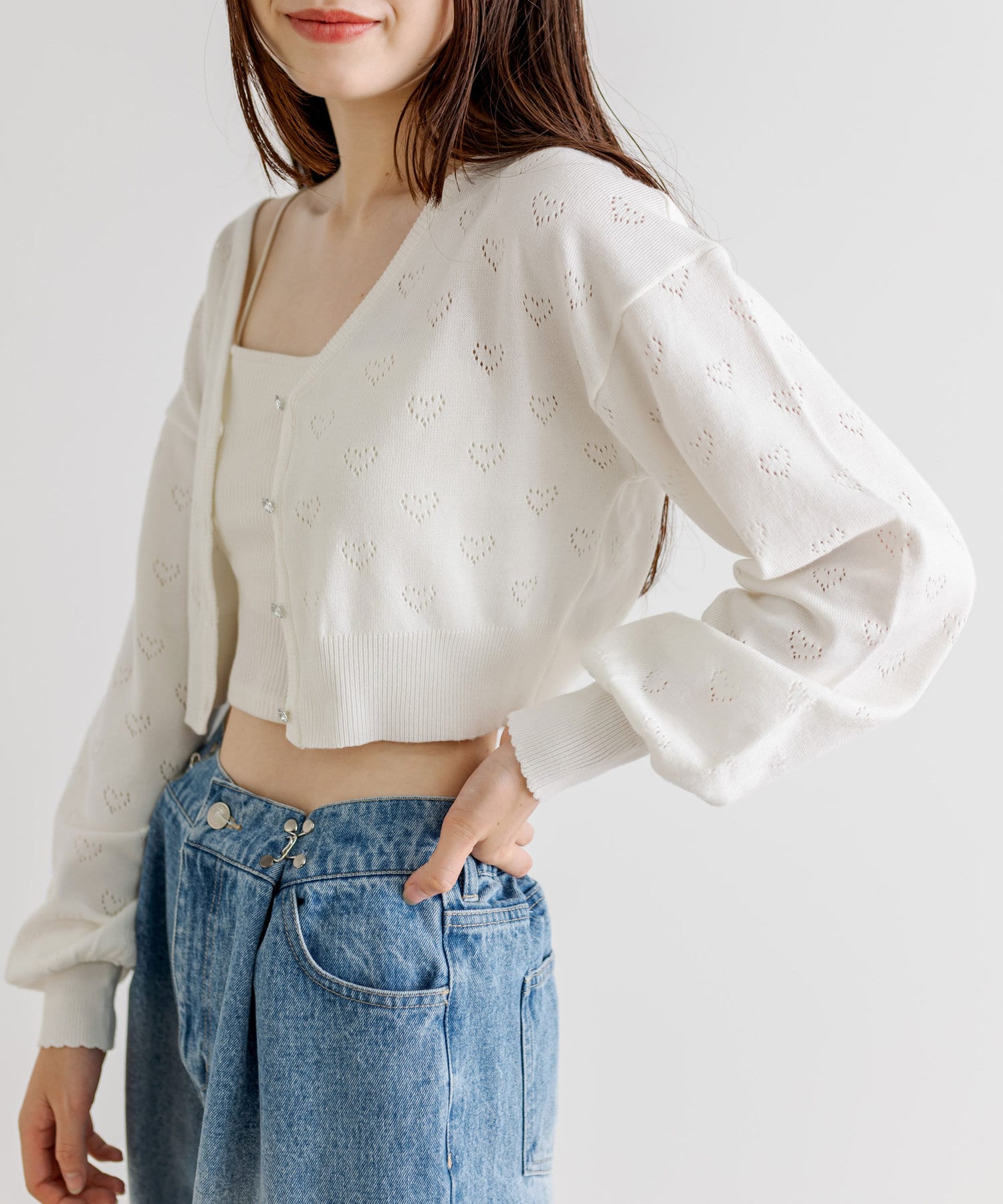 【ANNIVERSARY】Aimerianejoieハート透かしカーディガン