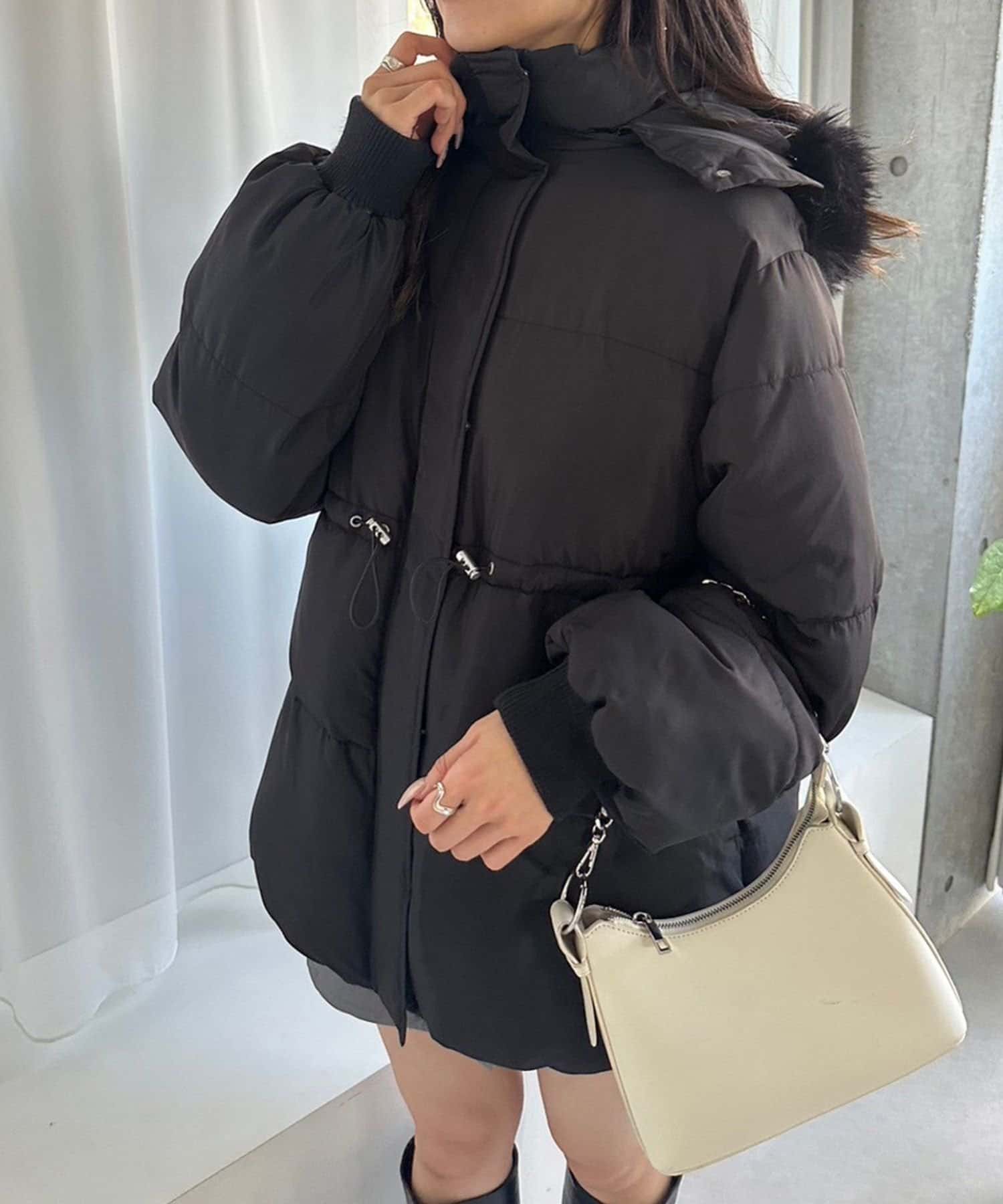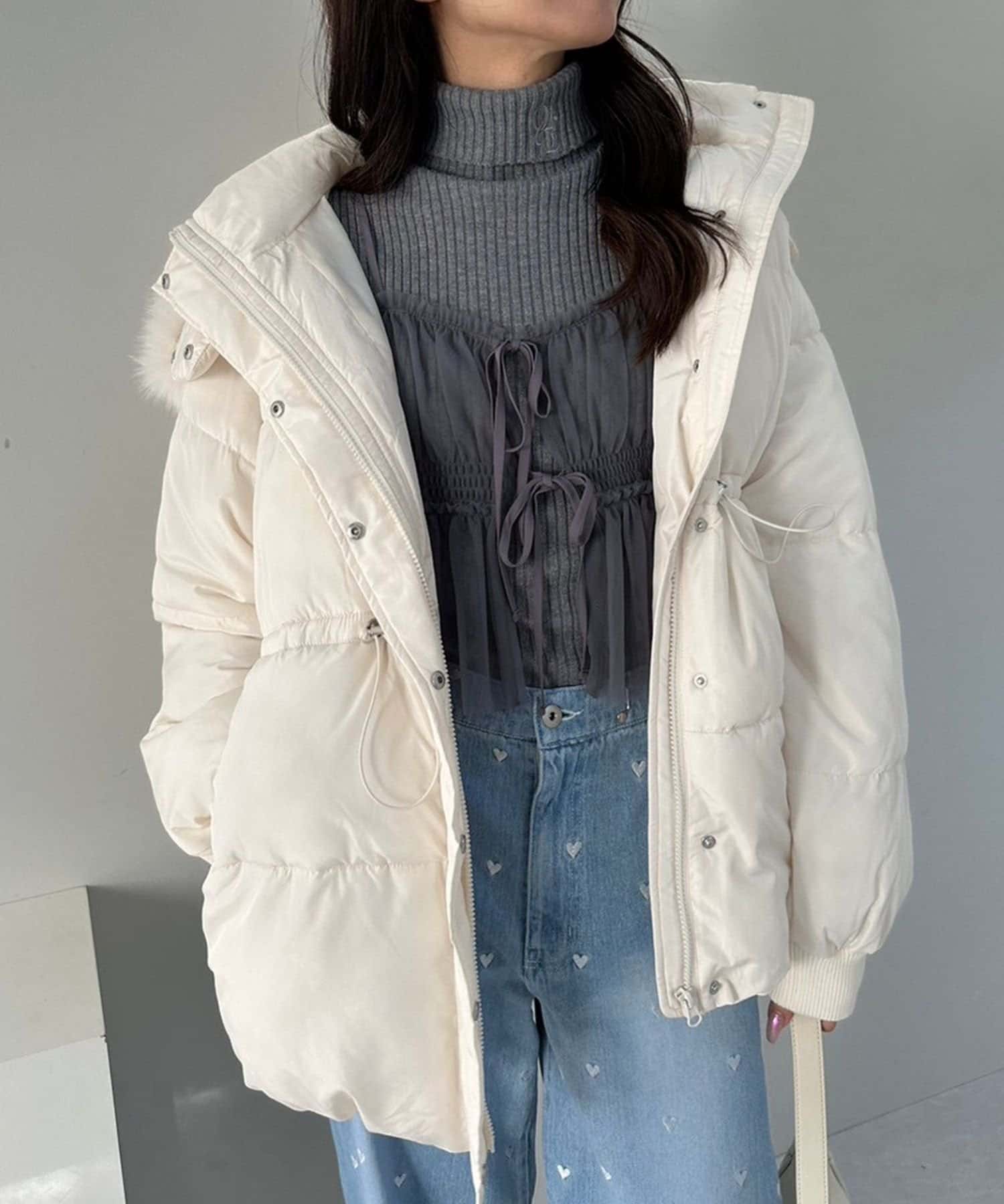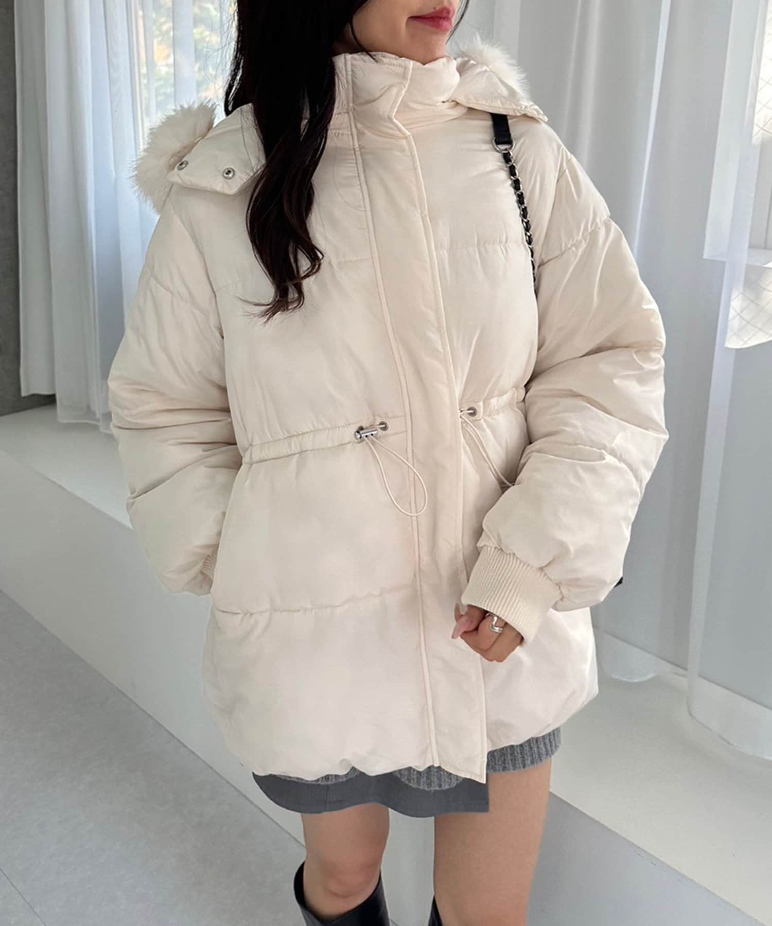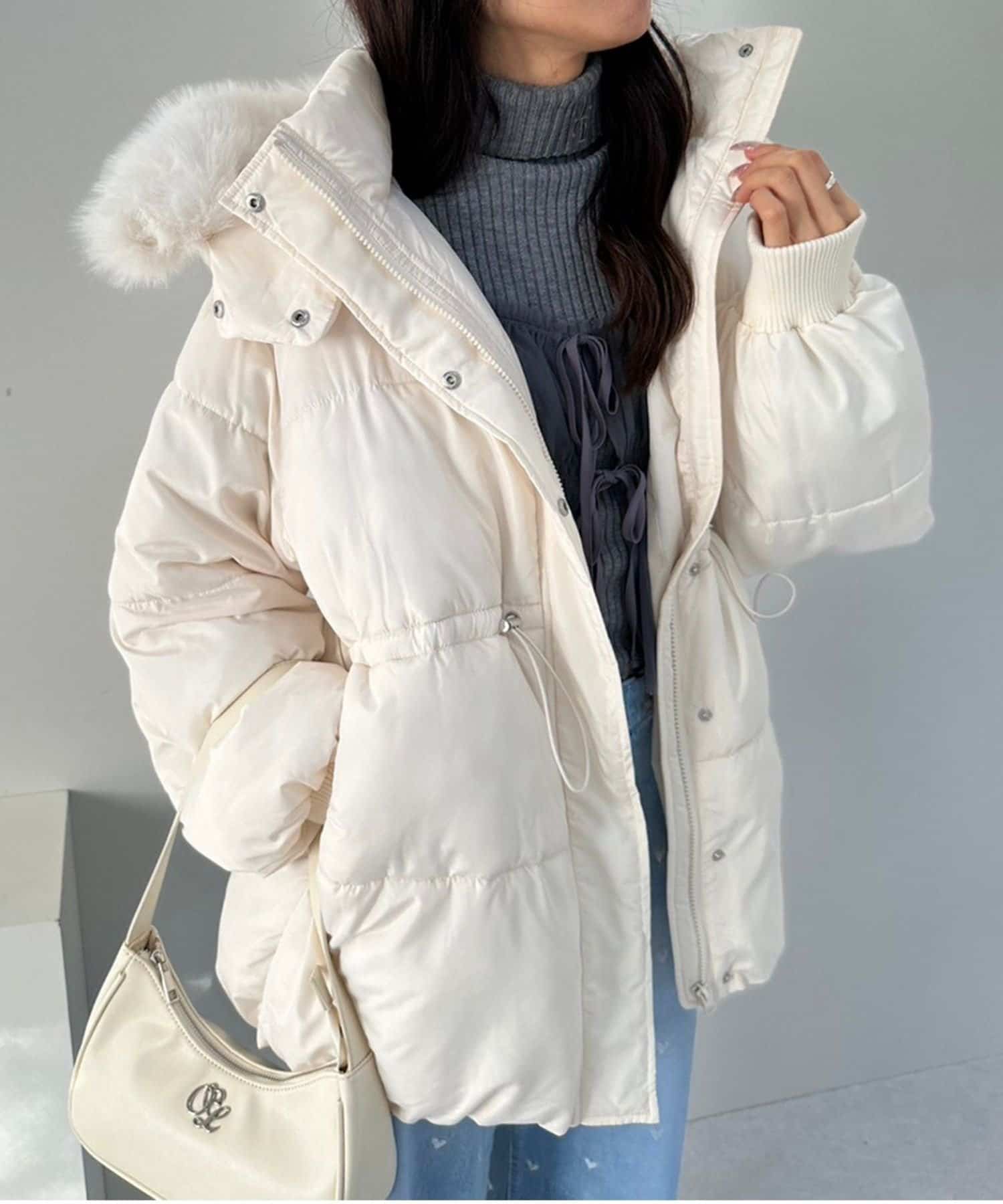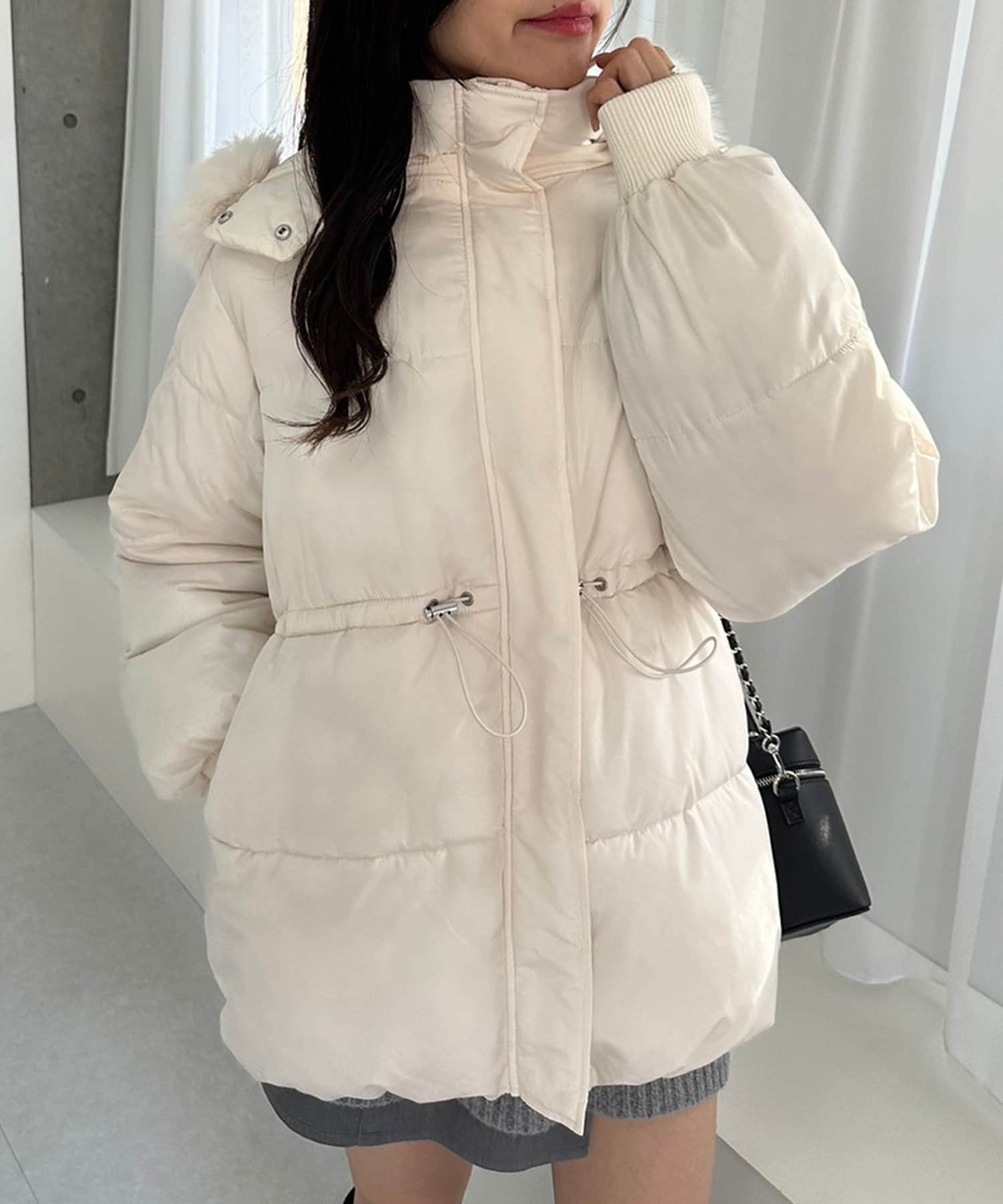 ・フードはファスナーで簡単に取り外し可能。ファーもお好みで取り外しでき、コーデの幅が広がります。