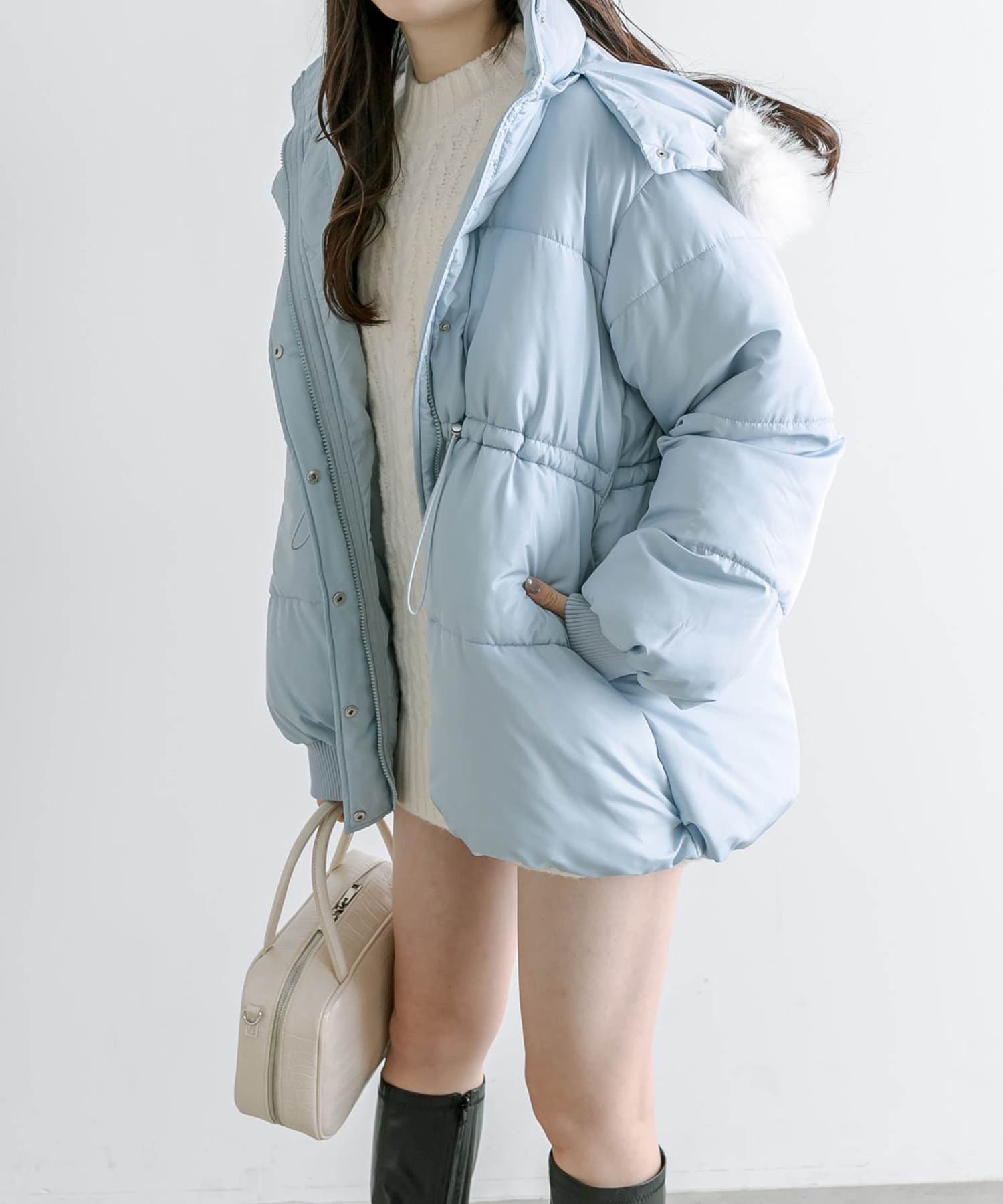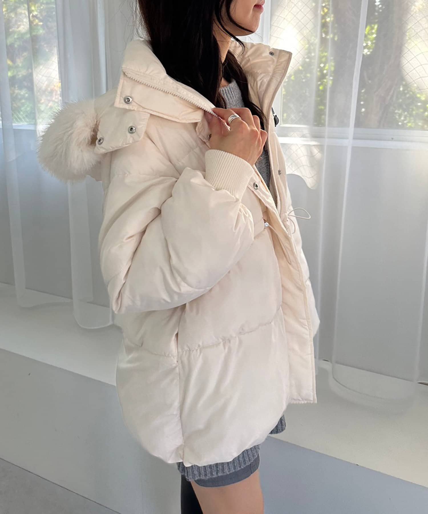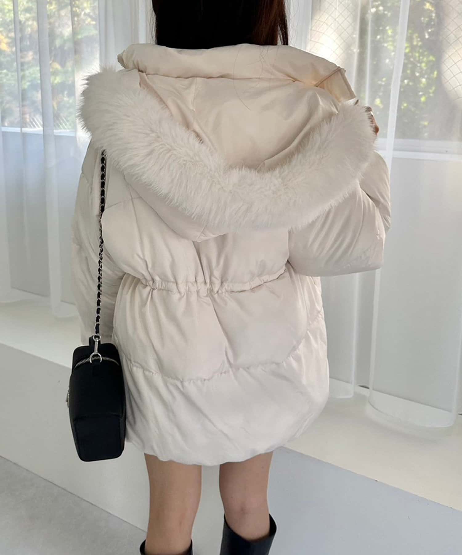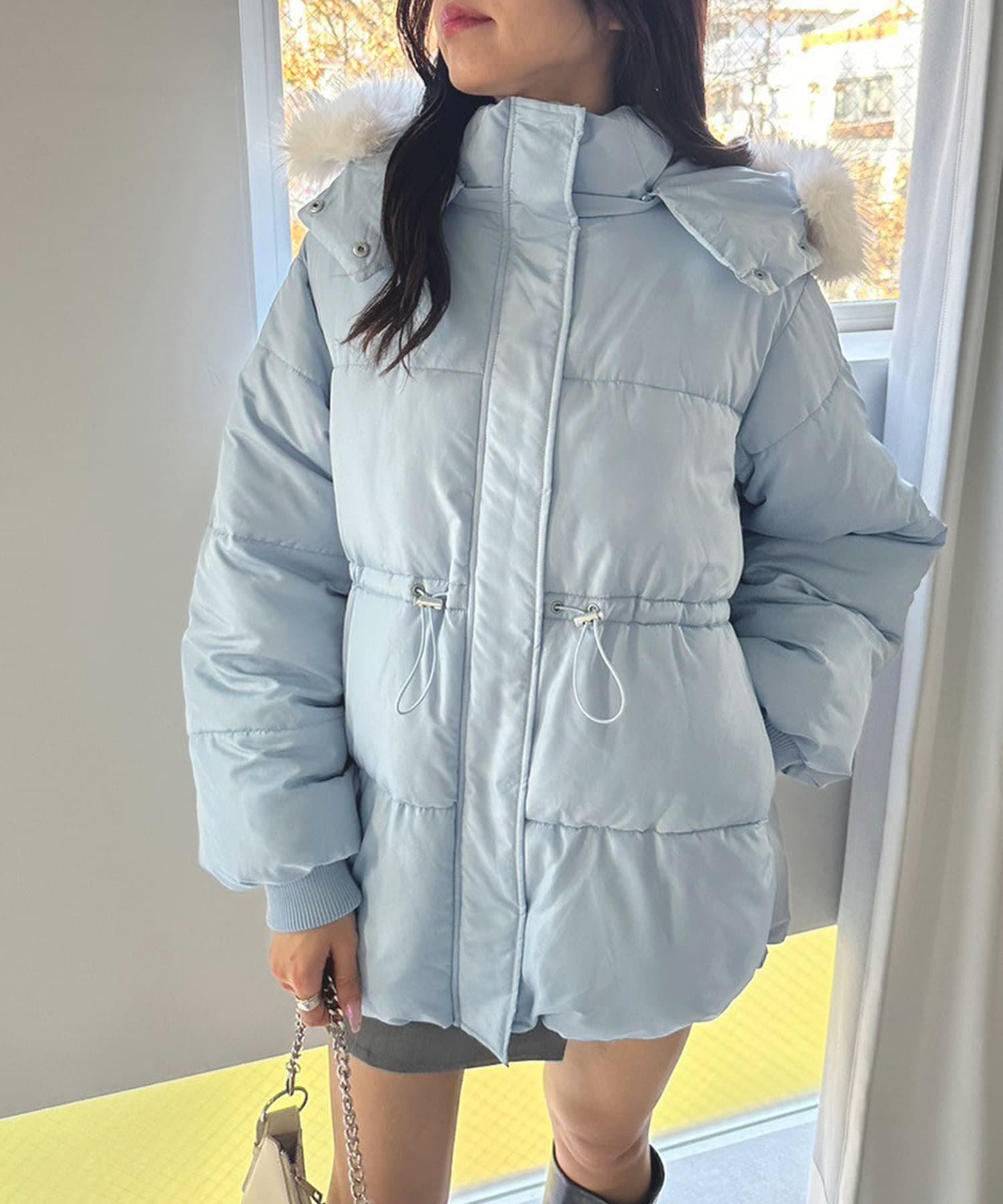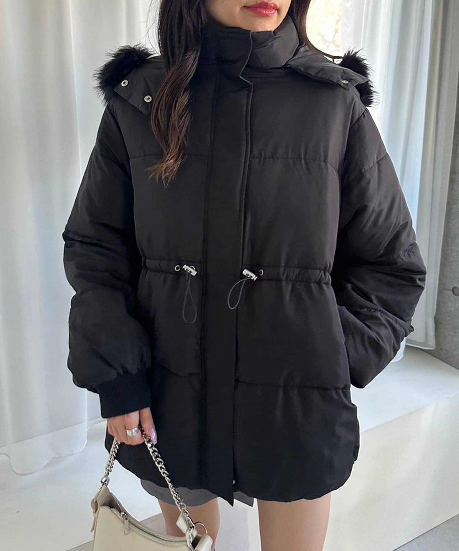 ・フードはファスナーで簡単に取り外し可能。ファーもお好みで取り外しでき、コーデの幅が広がります。
