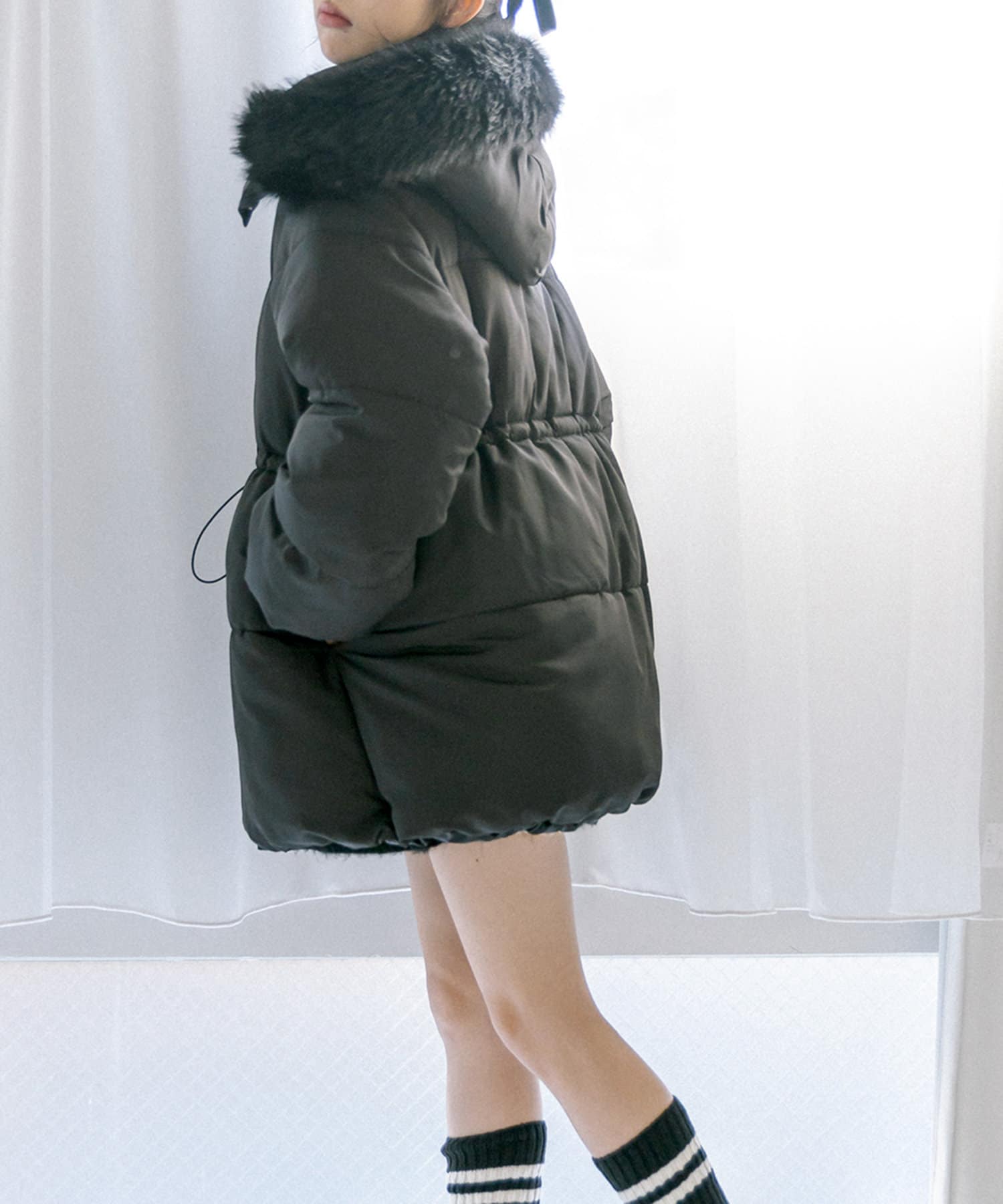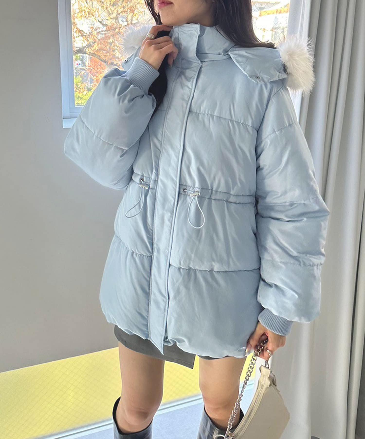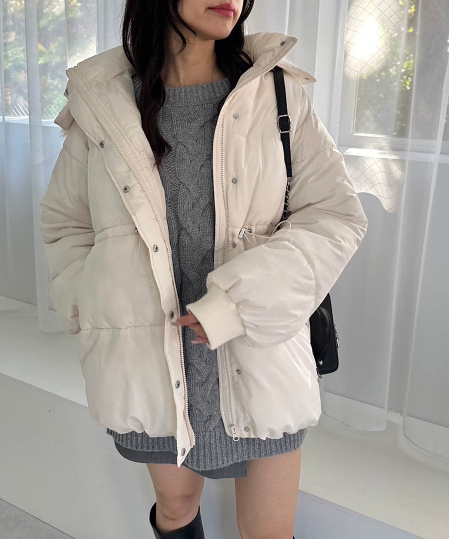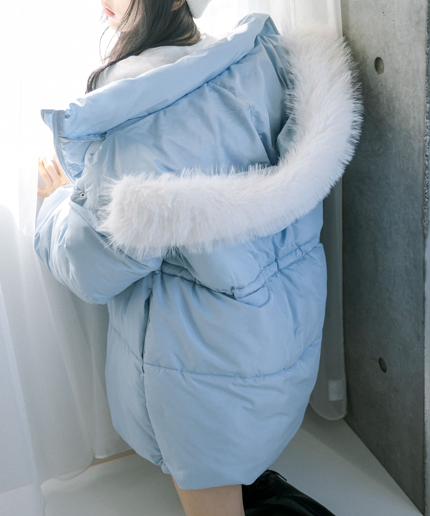・フードはファスナーで簡単に取り外し可能。ファーもお好みで取り外しでき、コーデの幅が広がります。