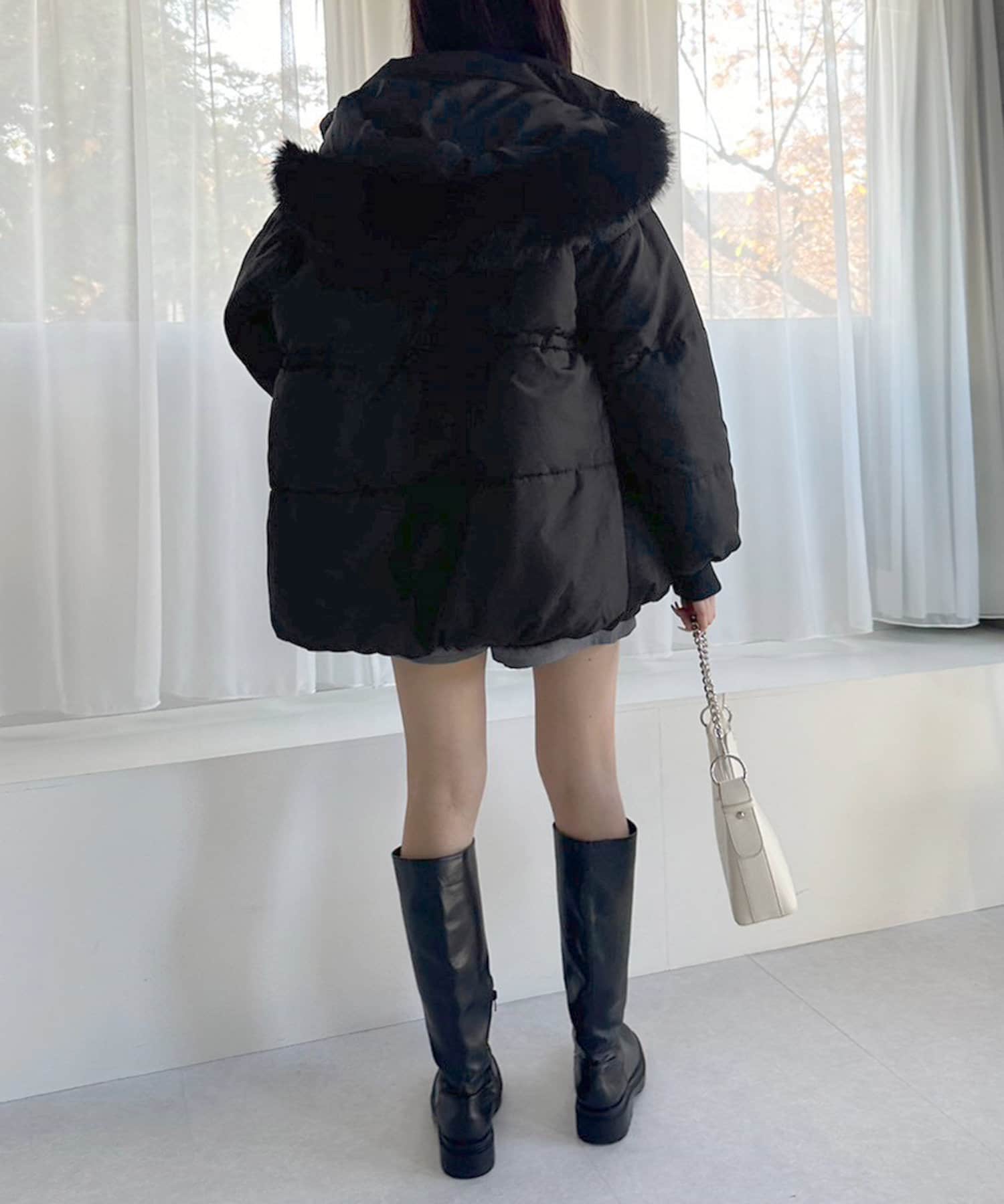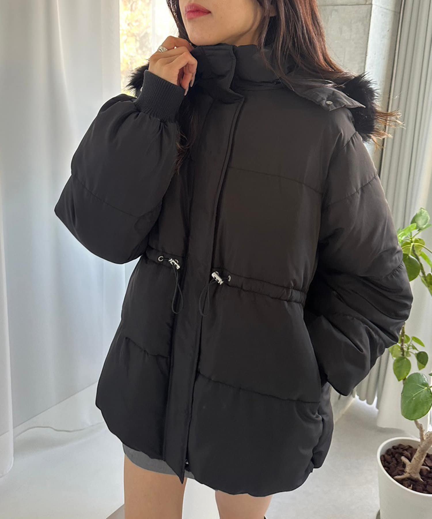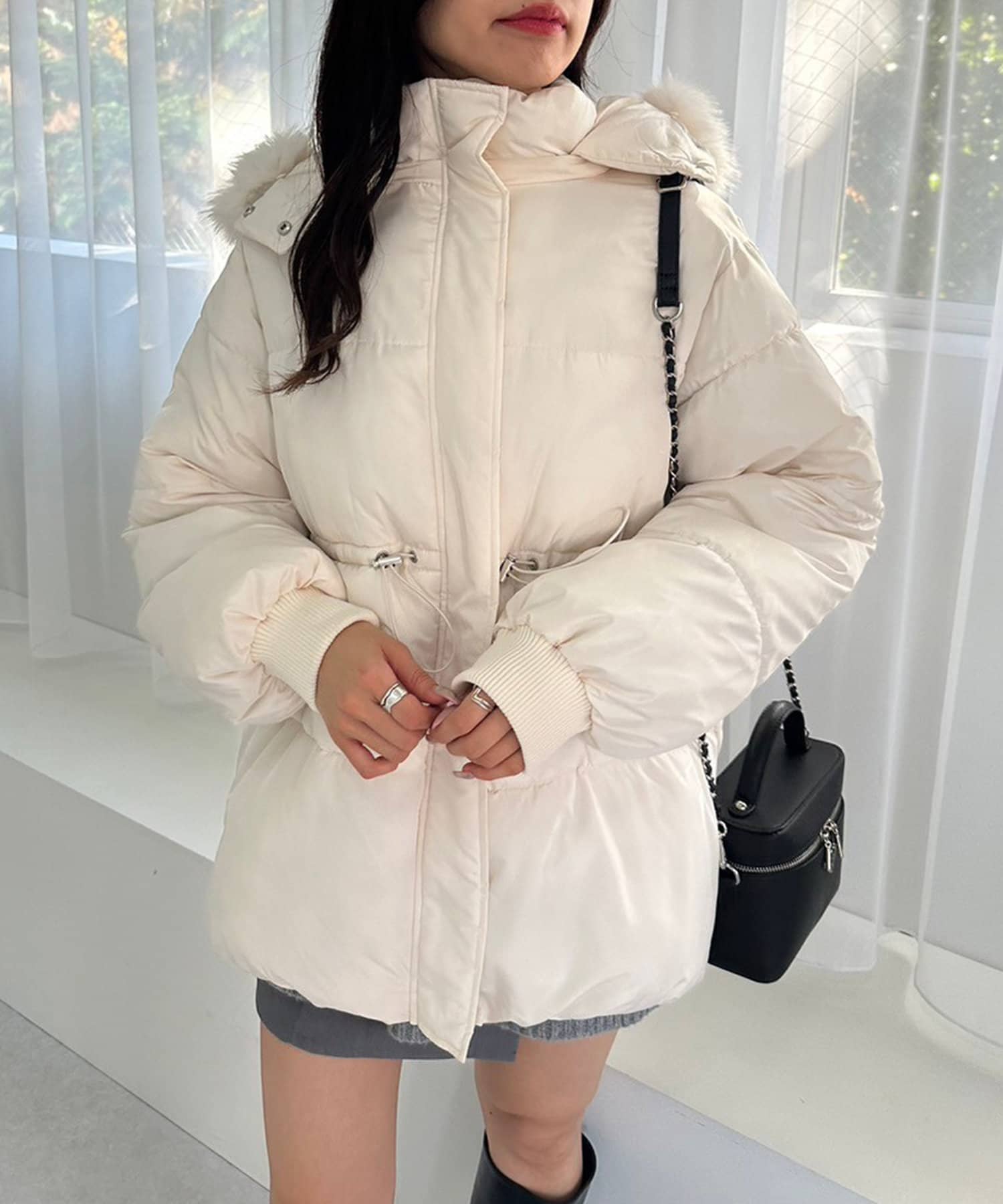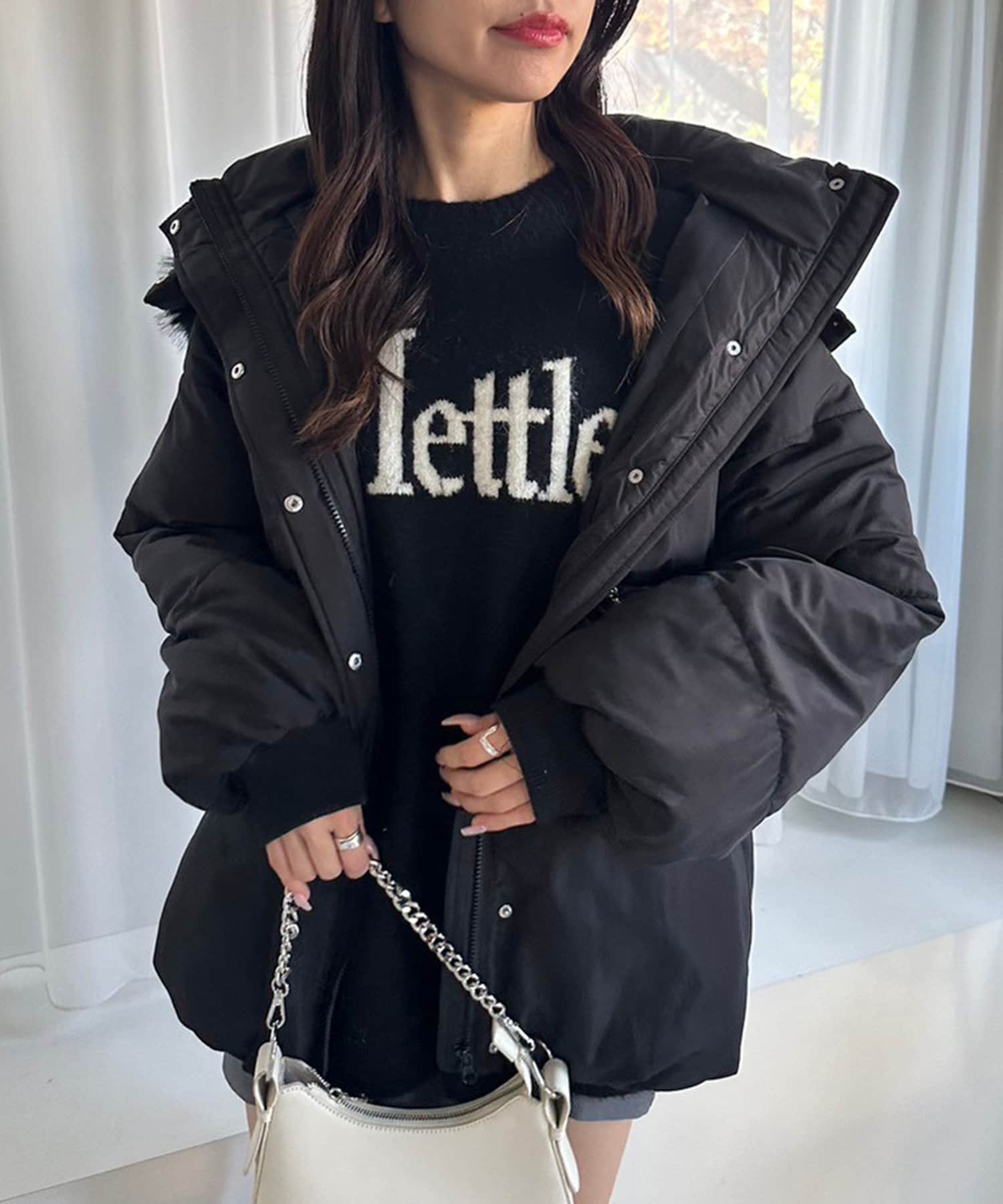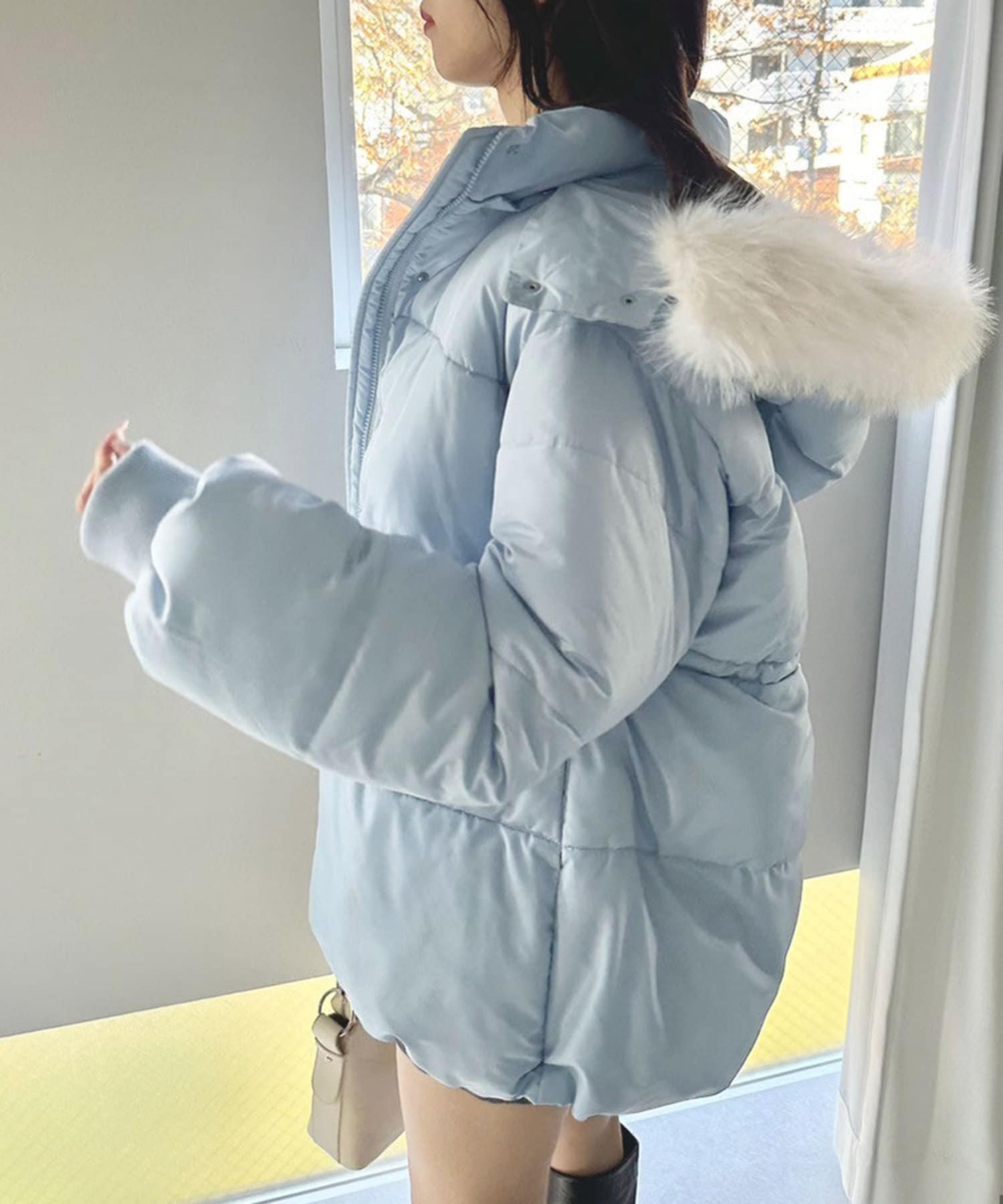 ・フードはファスナーで簡単に取り外し可能。ファーもお好みで取り外しでき、コーデの幅が広がります。