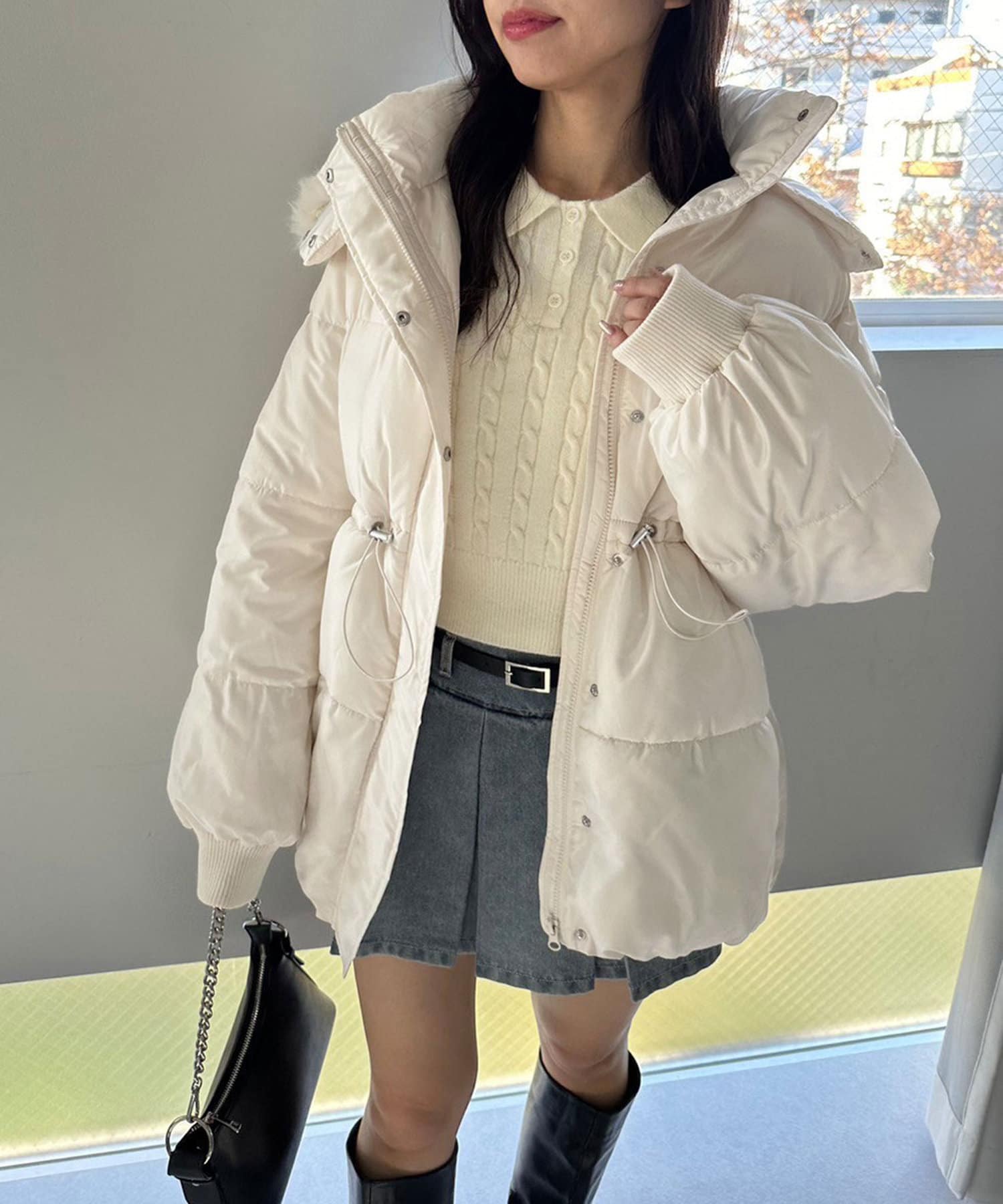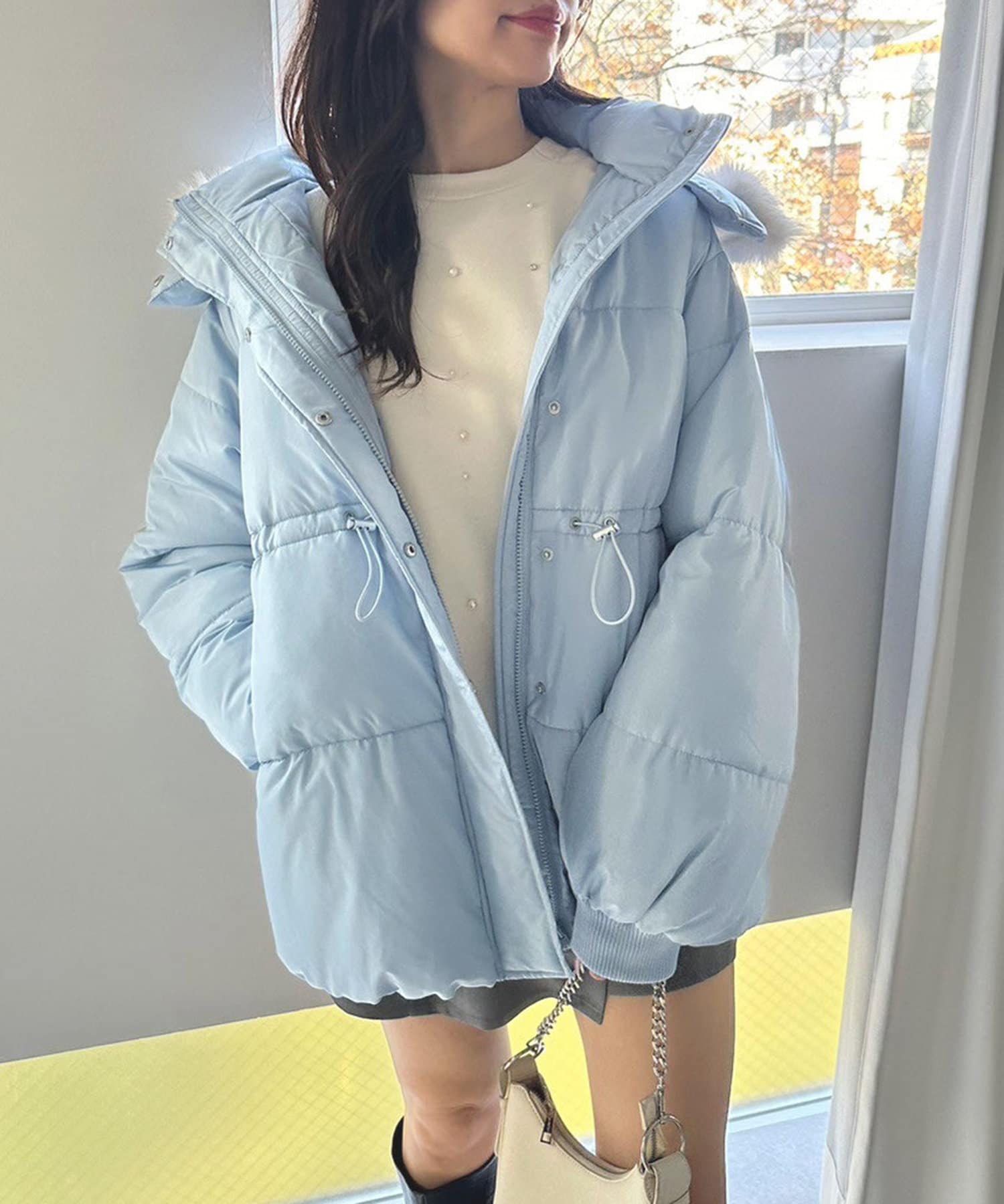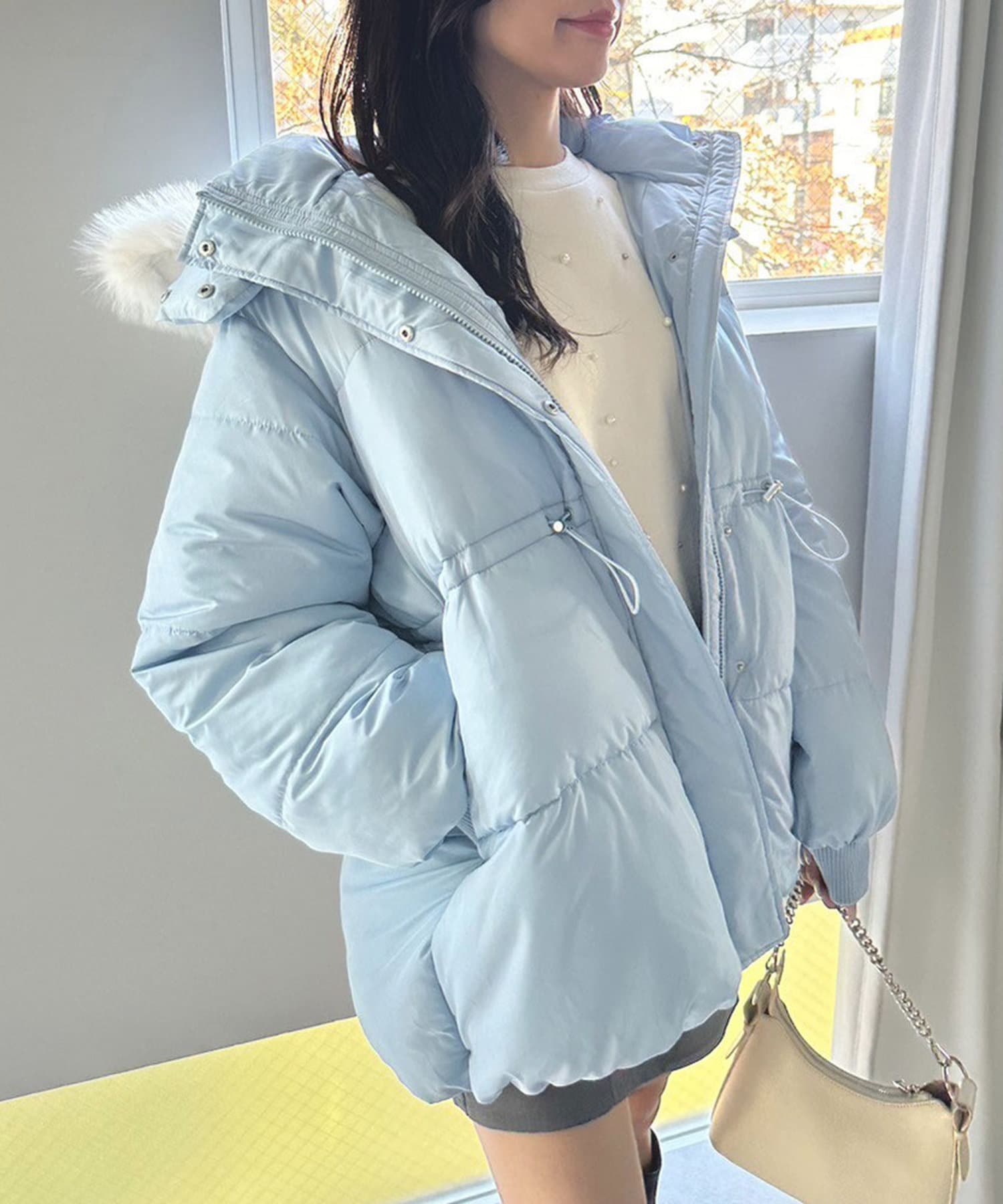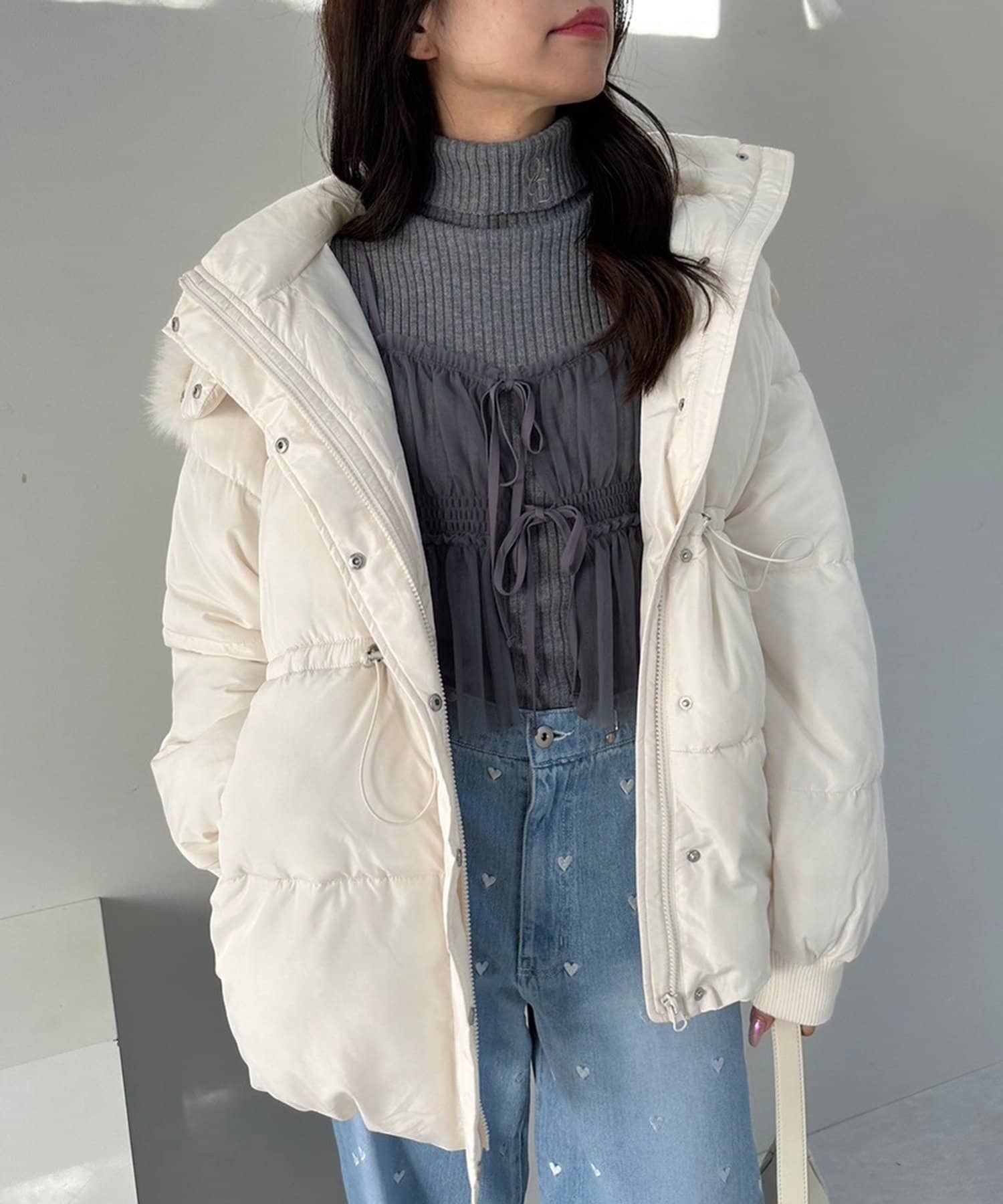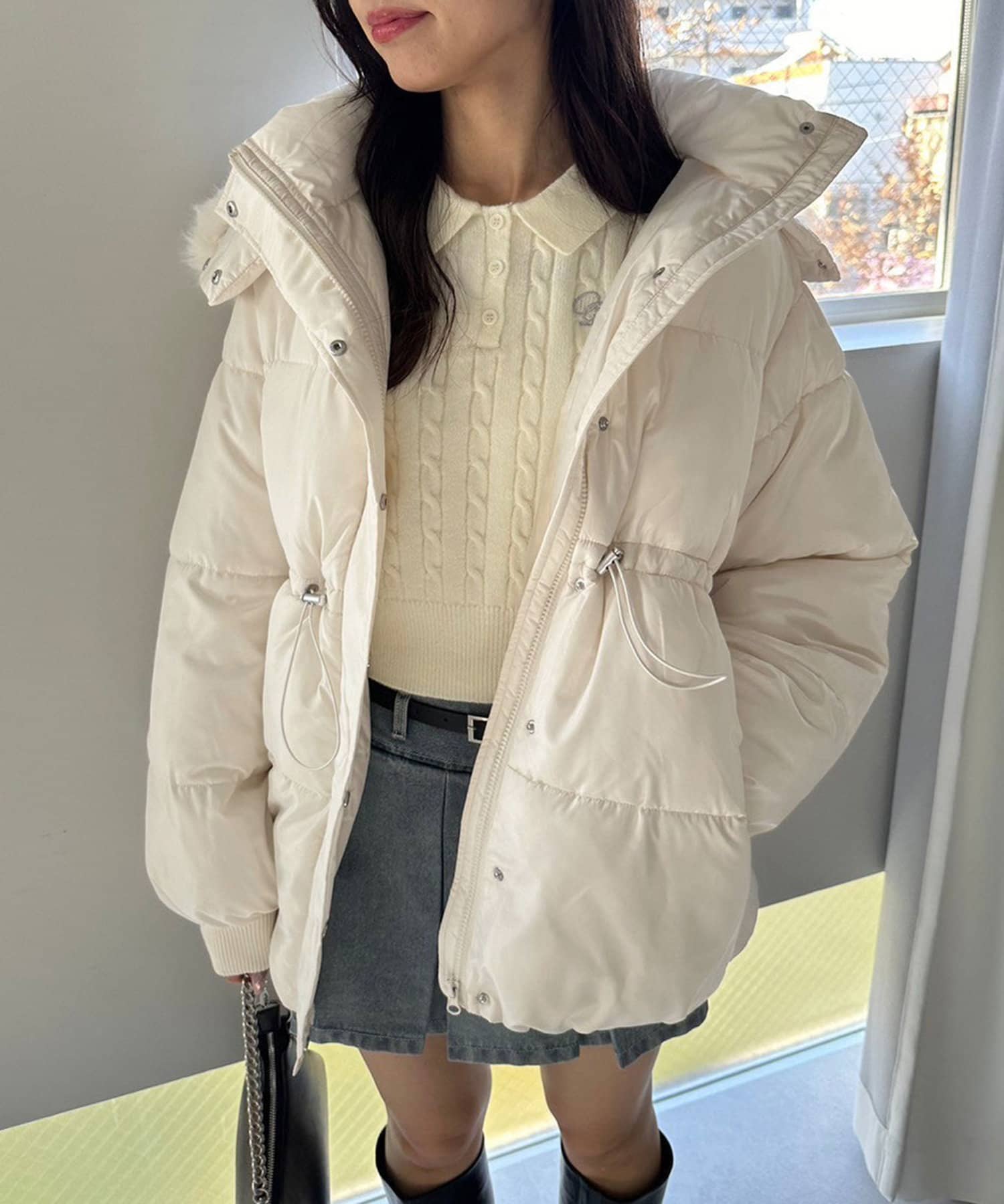 ・フードはファスナーで簡単に取り外し可能。ファーもお好みで取り外しでき、コーデの幅が広がります。