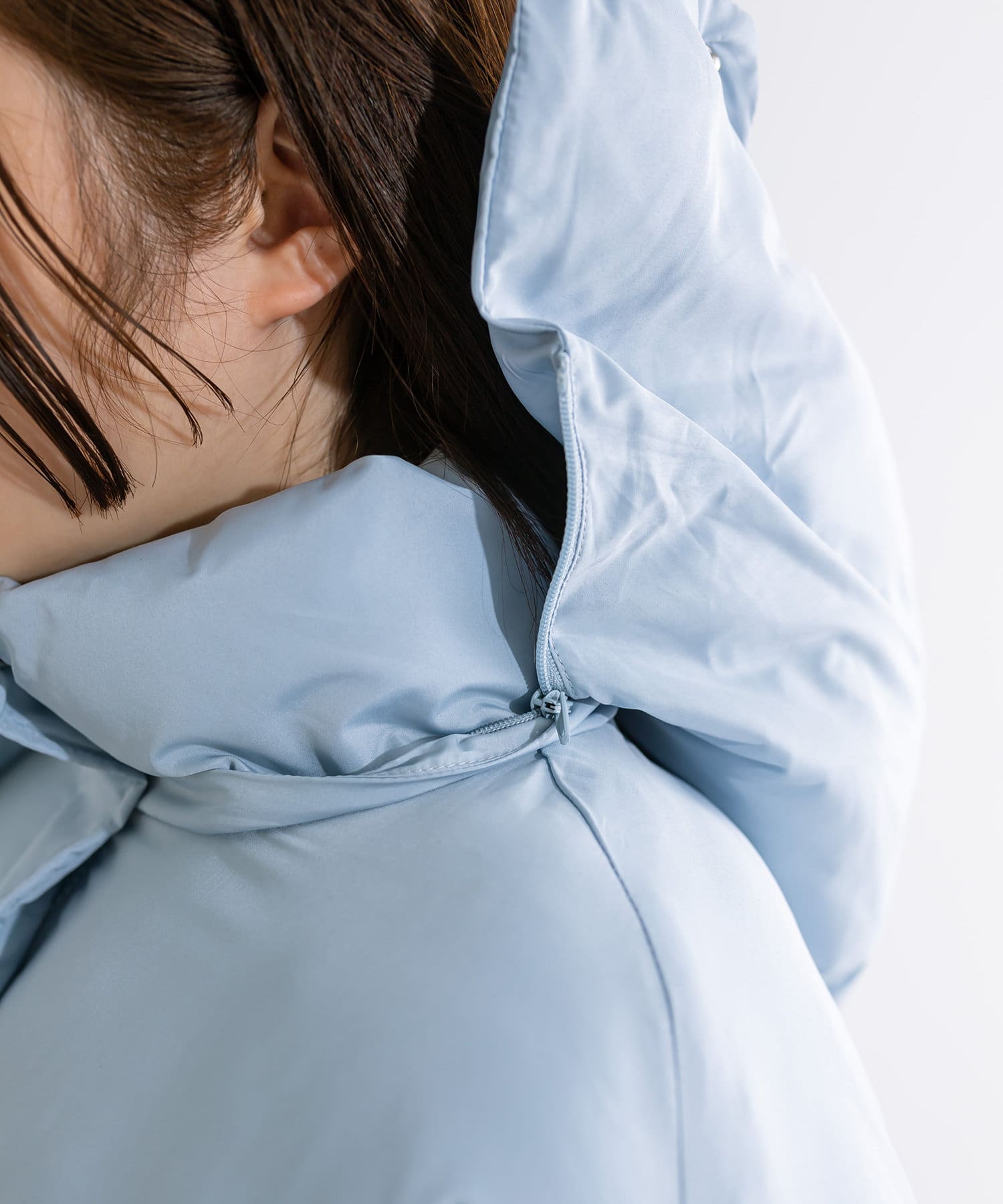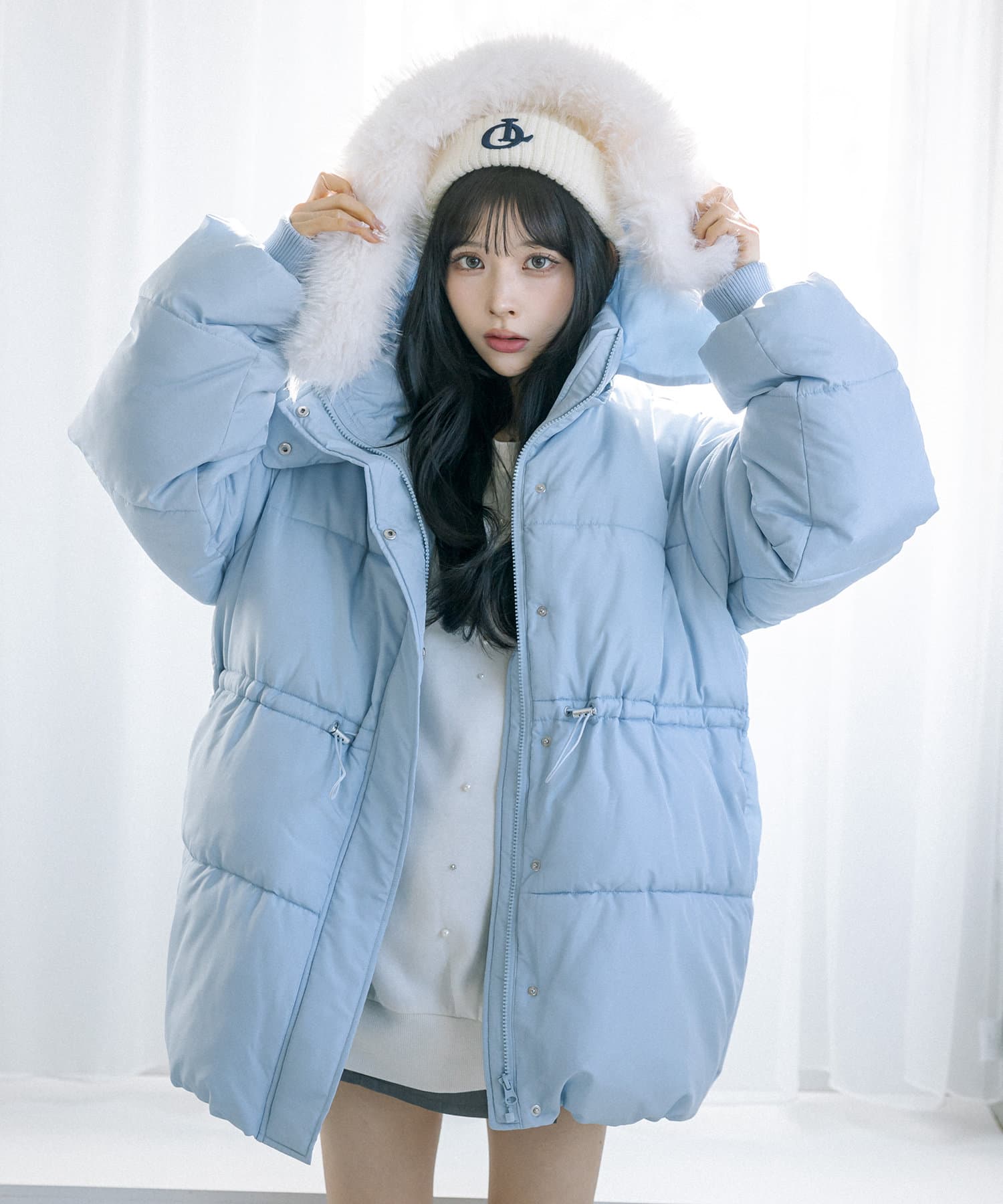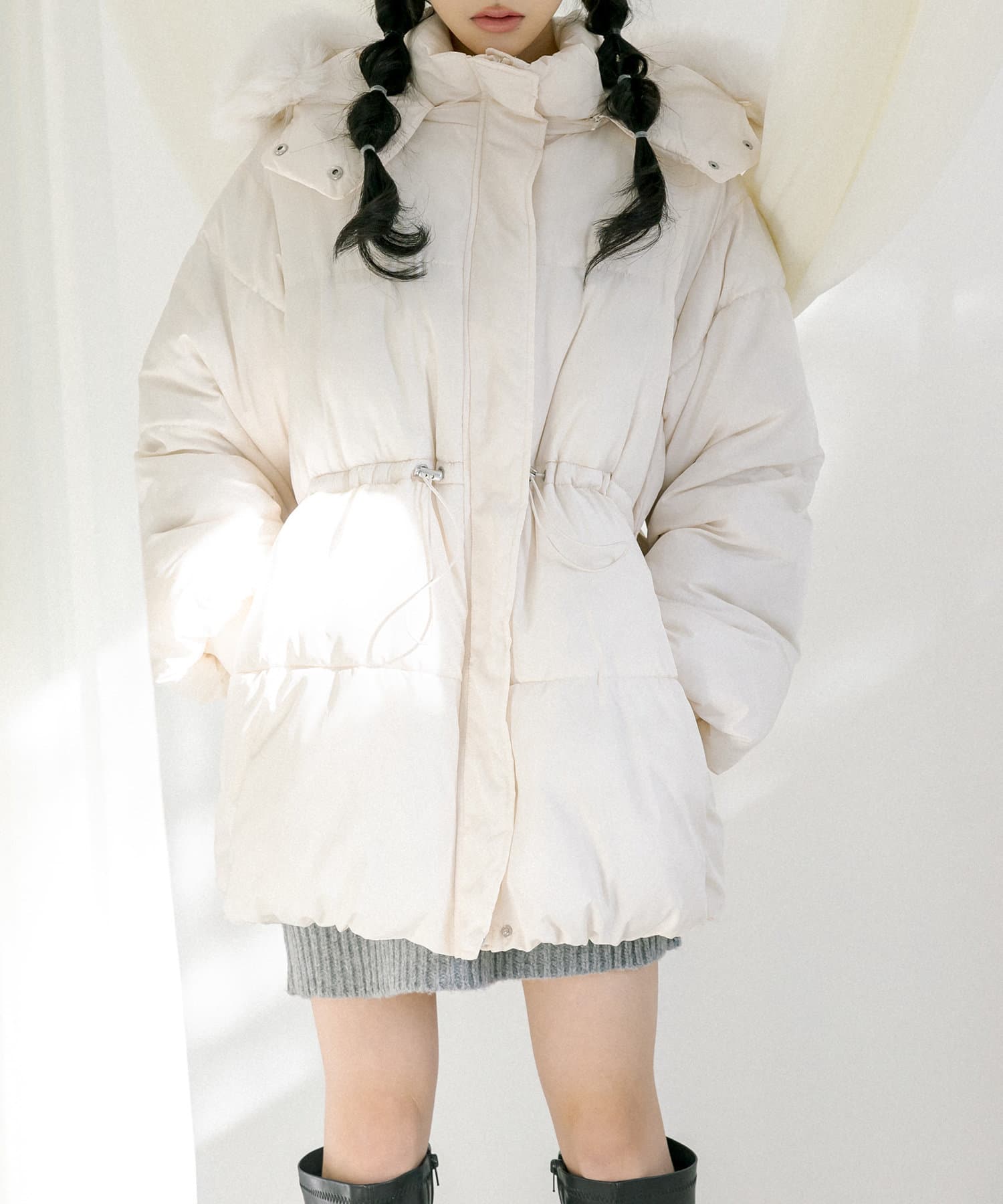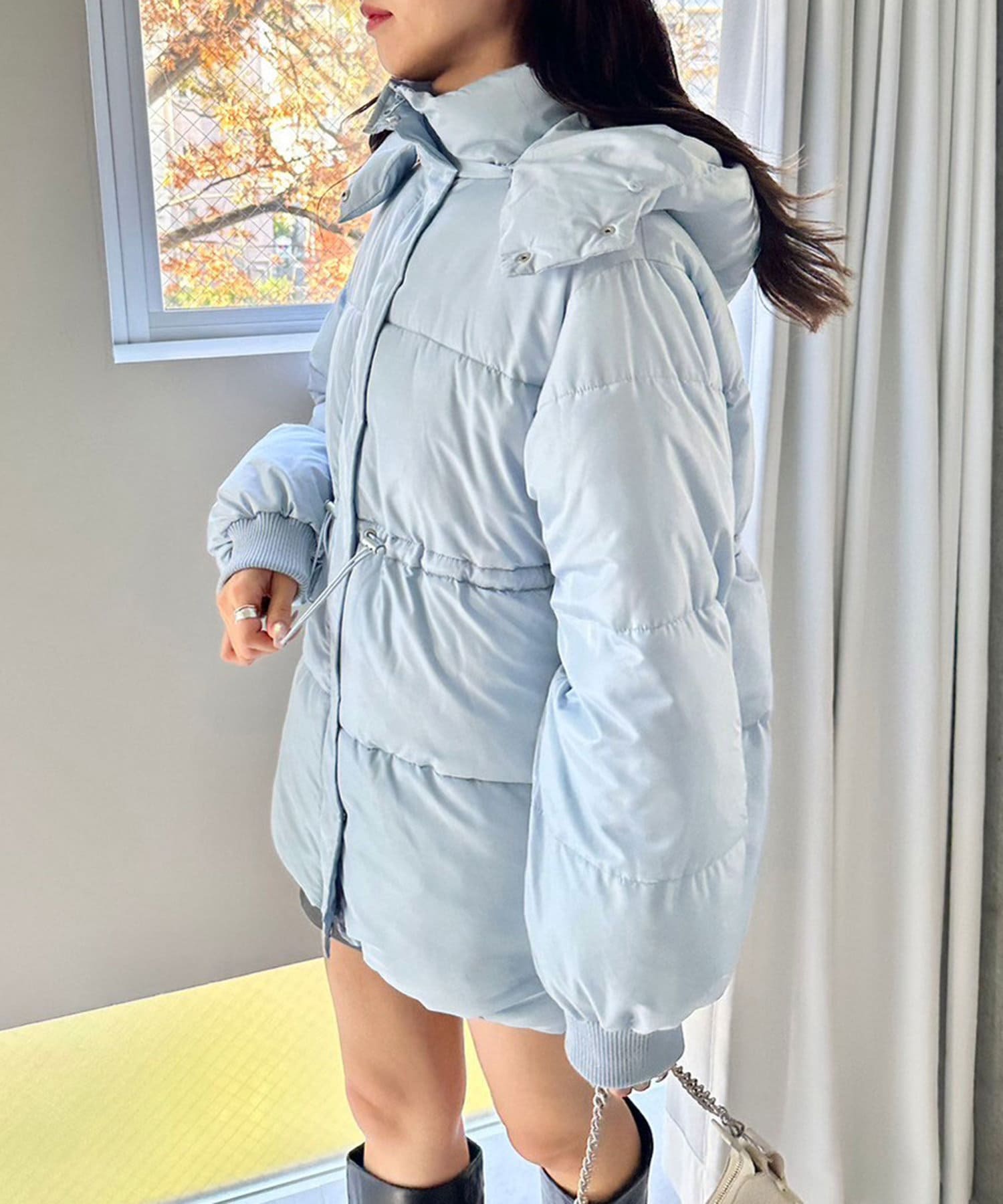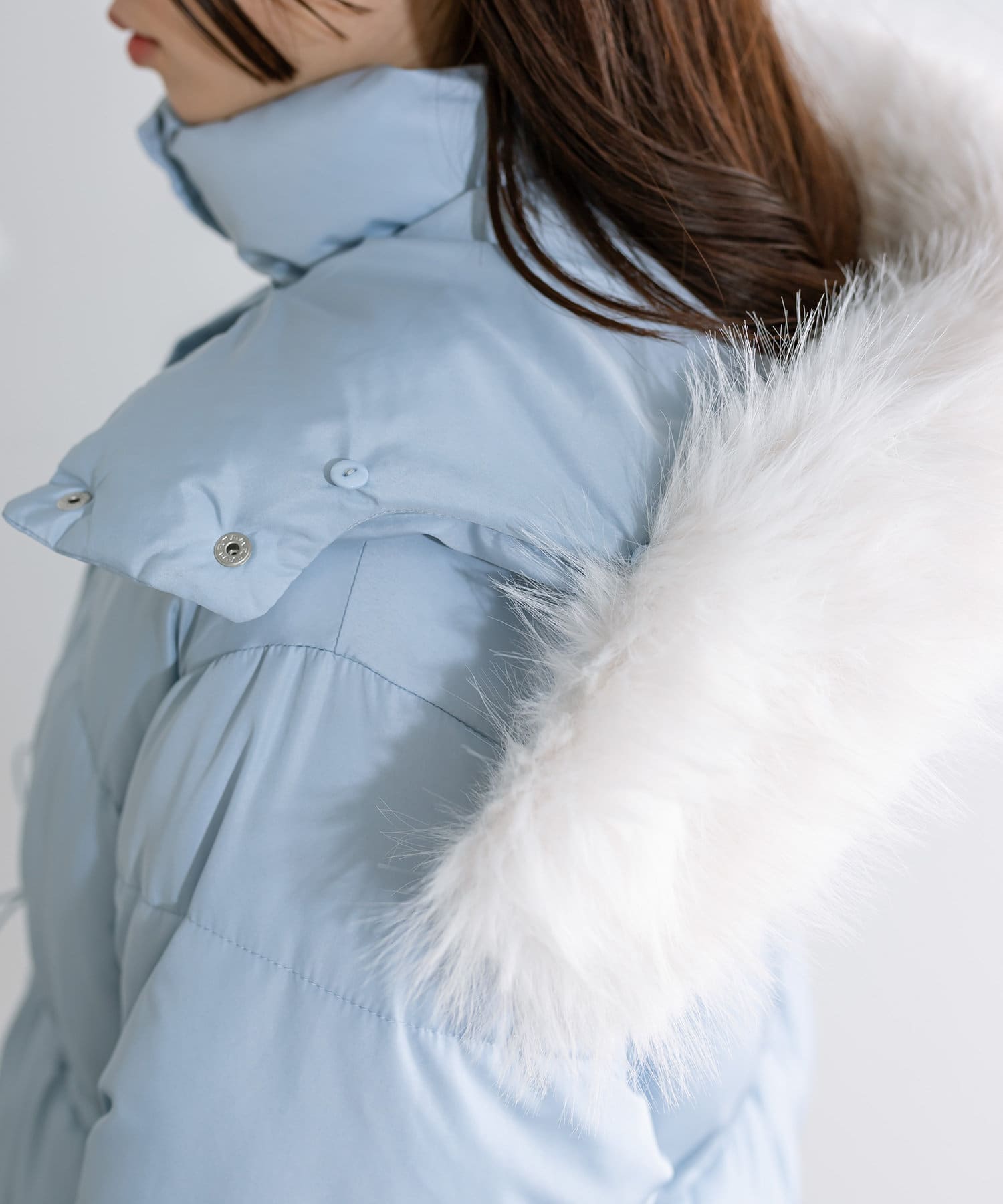 ・フードはファスナーで簡単に取り外し可能。ファーもお好みで取り外しでき、コーデの幅が広がります。