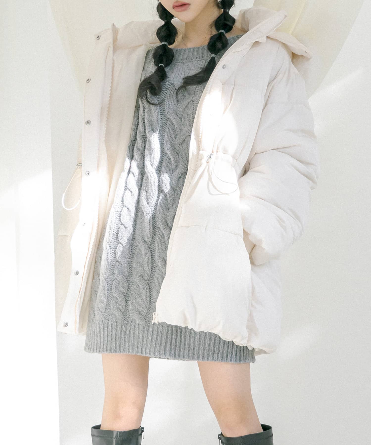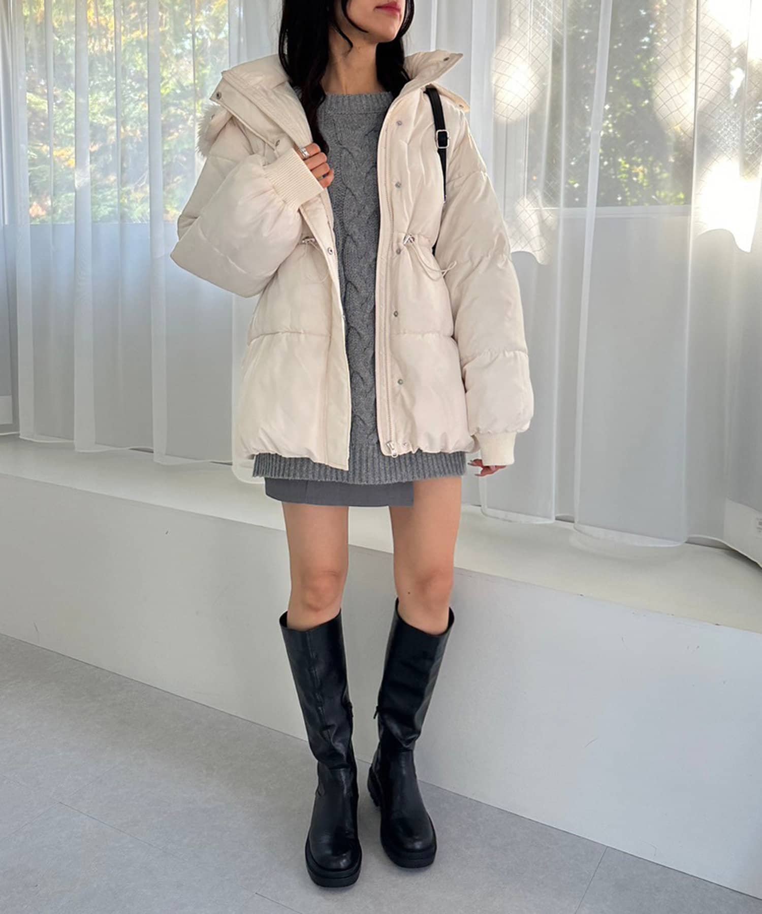 ・ミニ丈のニットワンピとのコーデがイチオシ。