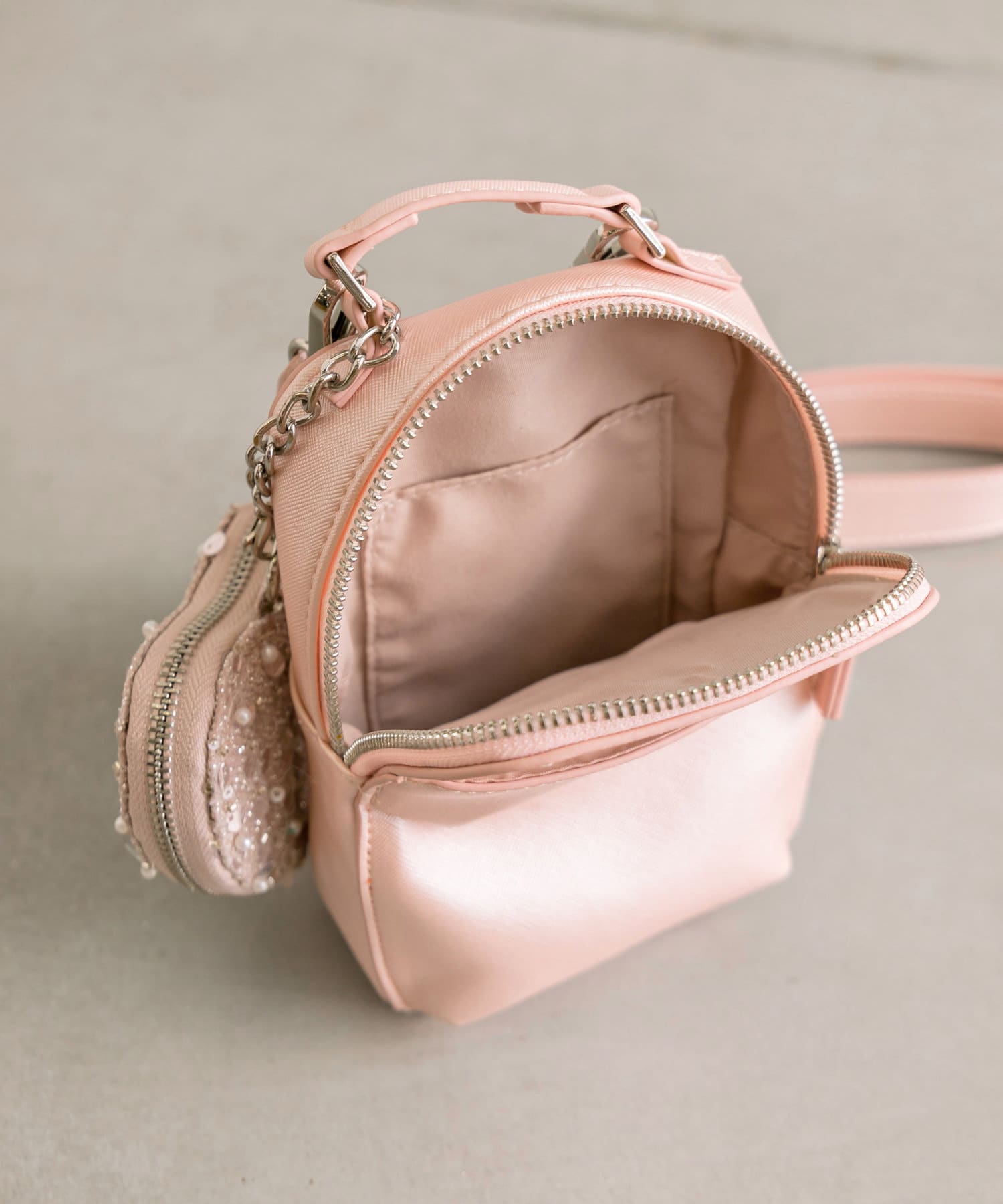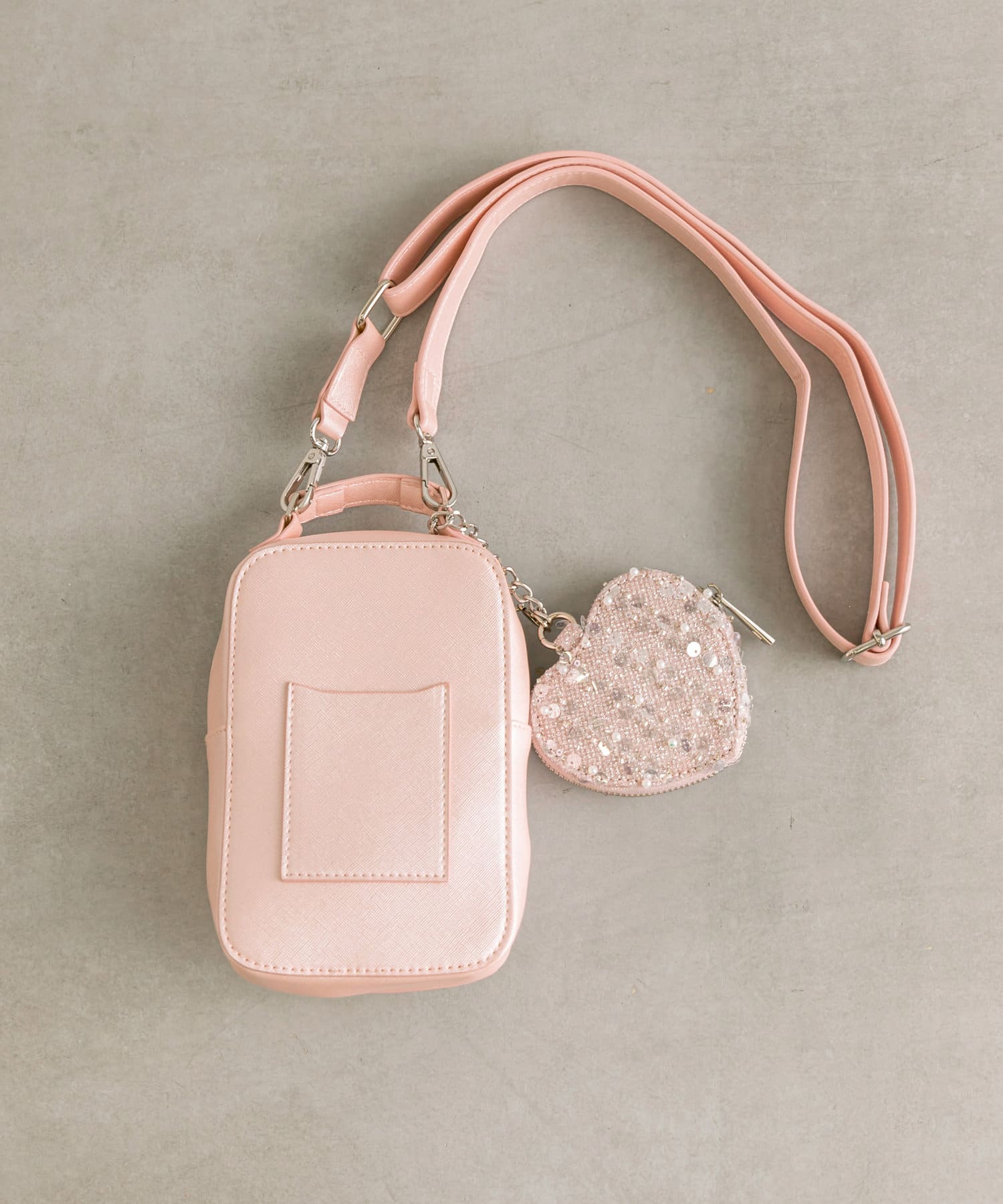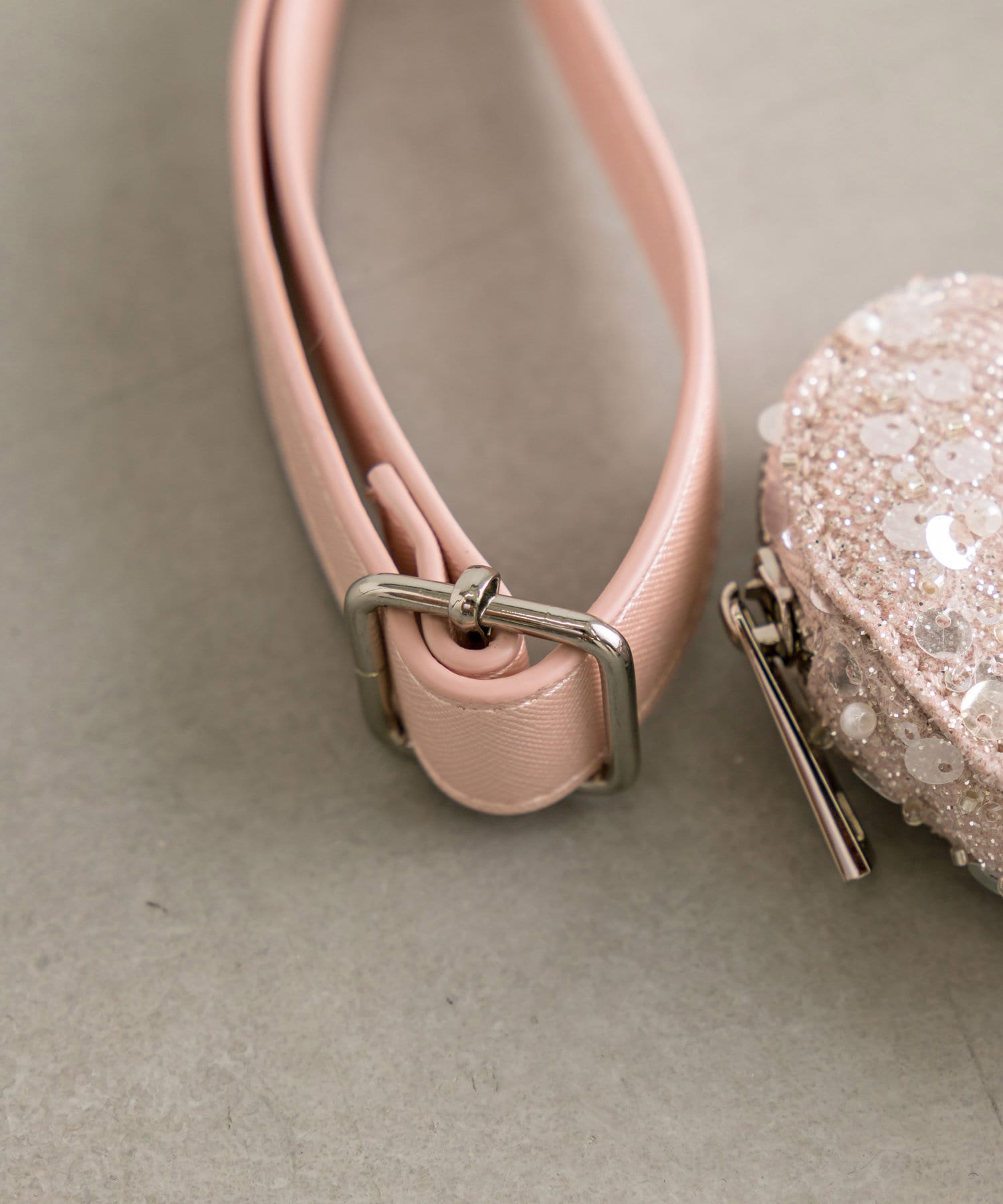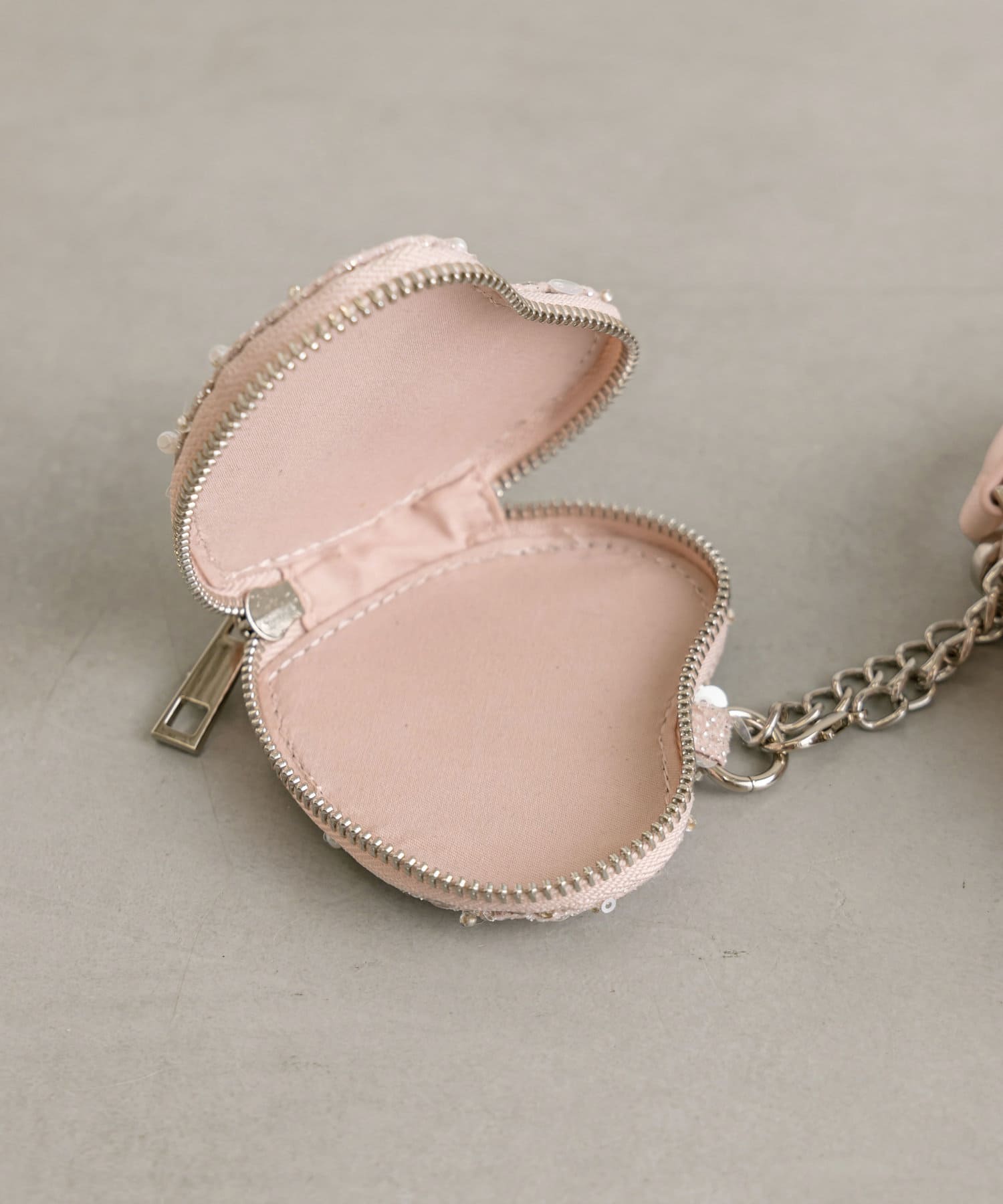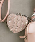 ・ハートポーチはスパンコール、ラメ、パールの生地が可愛い素材。コーデのワンポイントに。