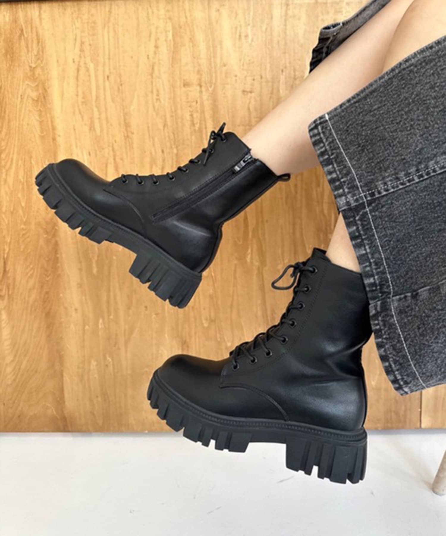 【S/M/Lサイズ展開】タンクソールレースアップショートブーツ
