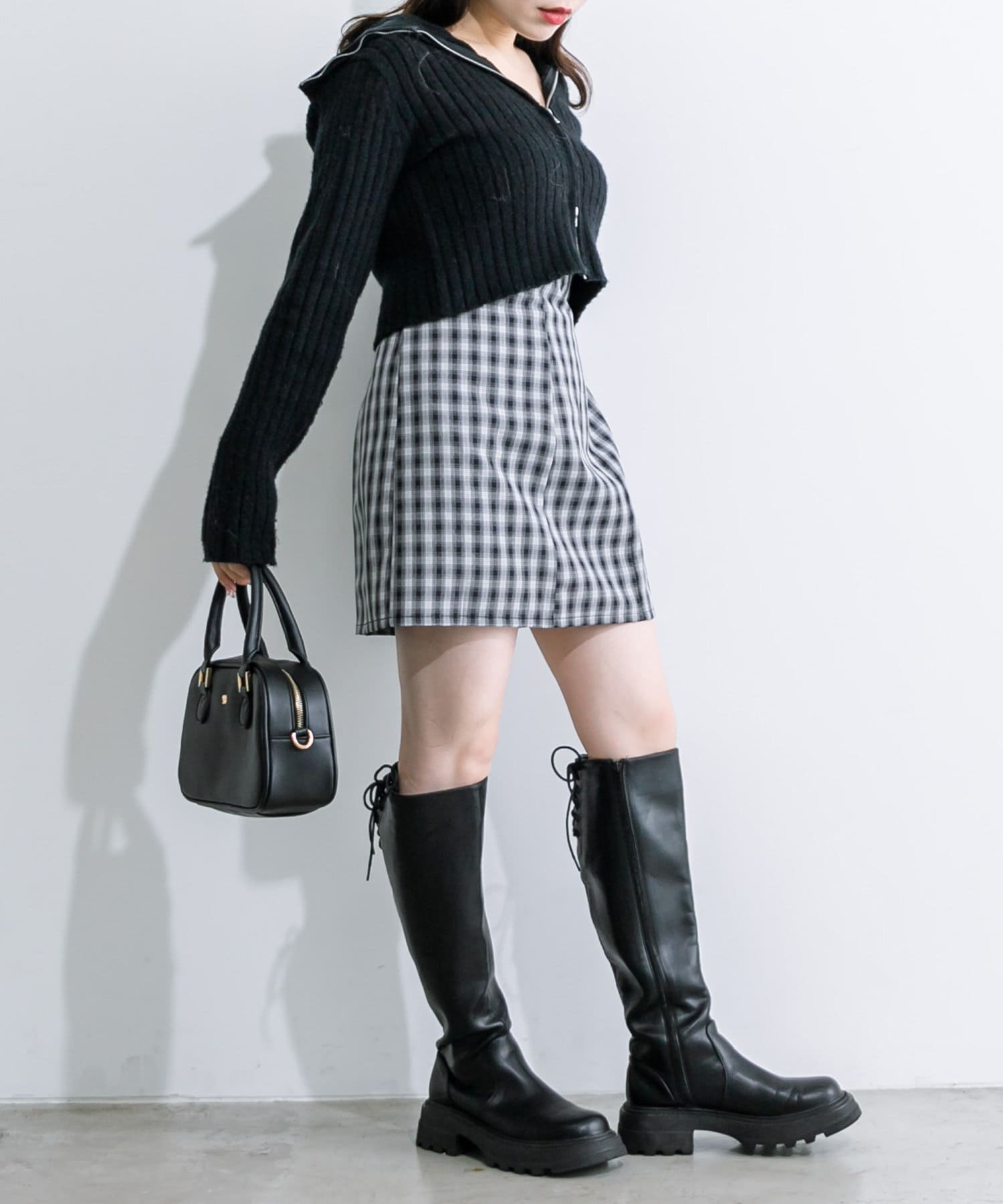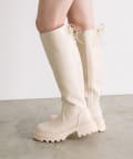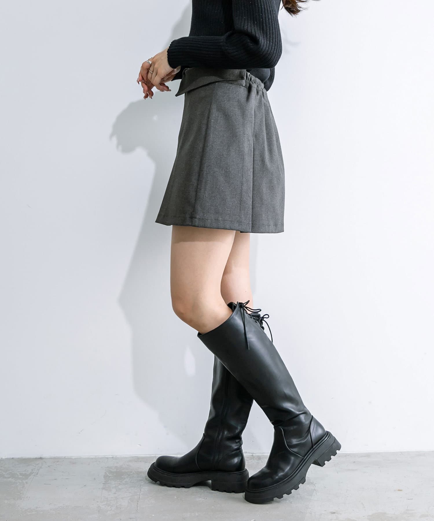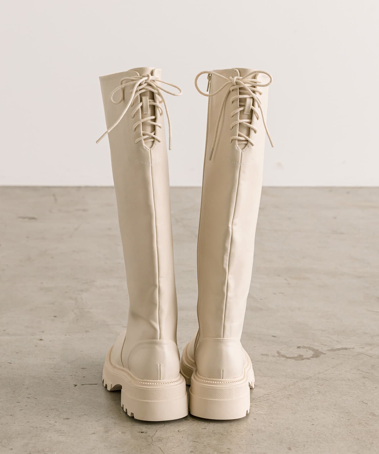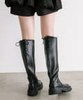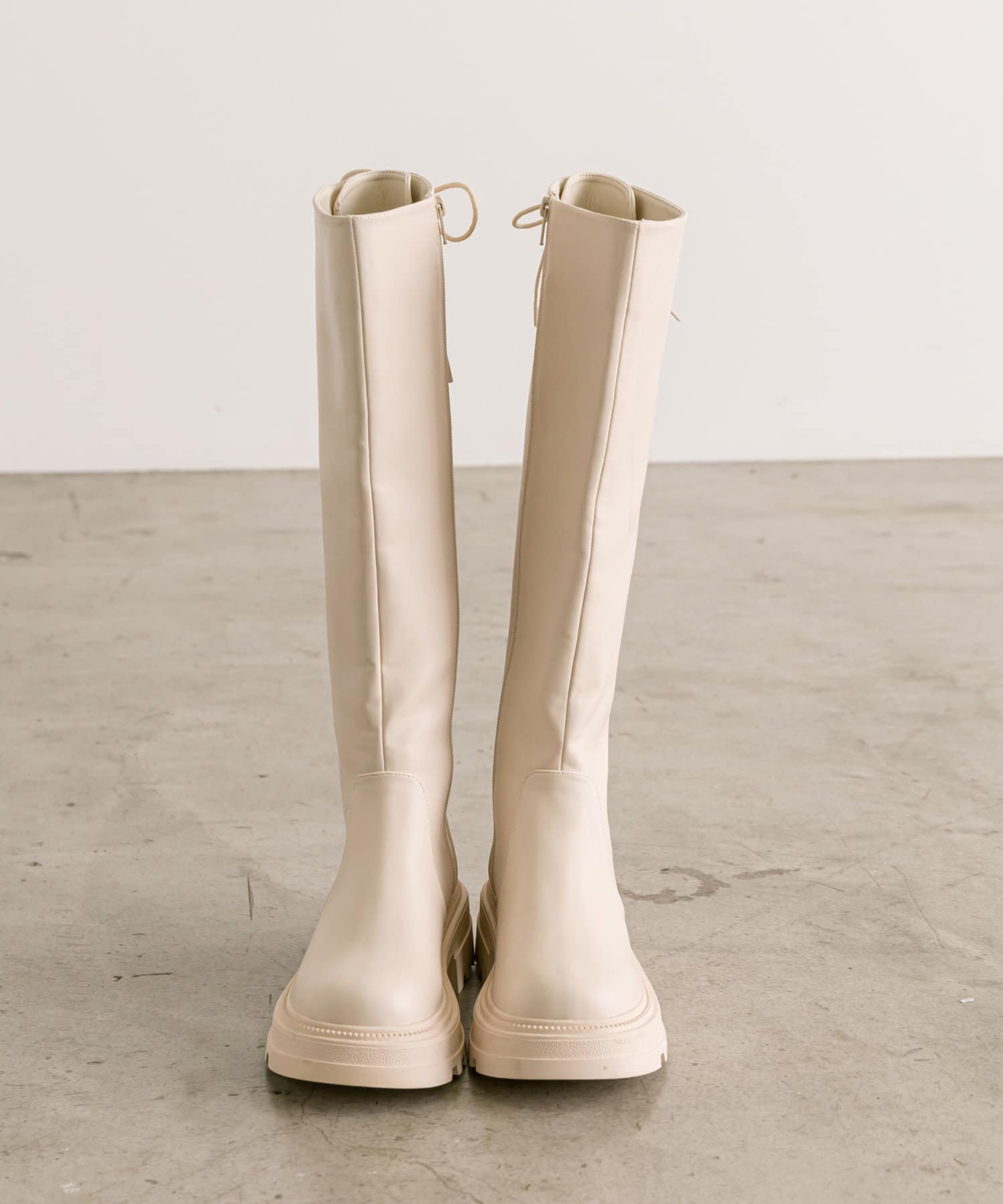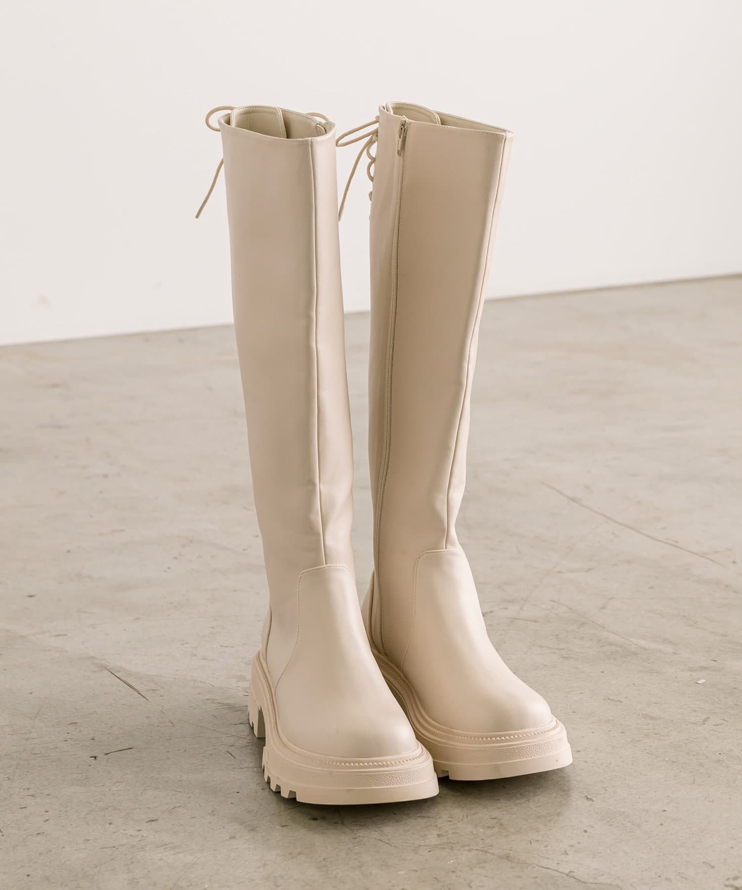 秋服、秋コーデ、冬服、冬コーデ、ロングブーツ、厚底シューズ、厚底ブーツ、タンクソール、韓国ファッション、韓国コーデ、バックリボン、レースアップ