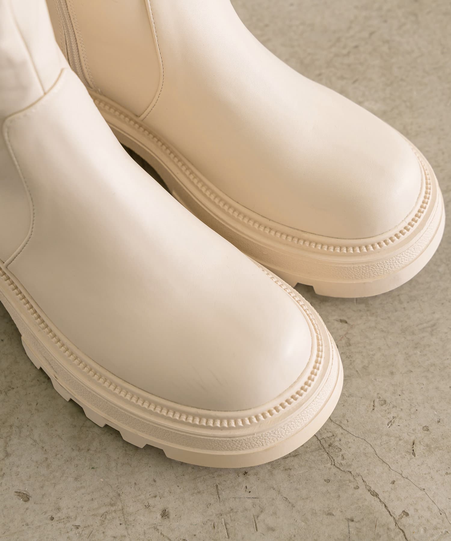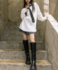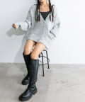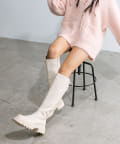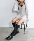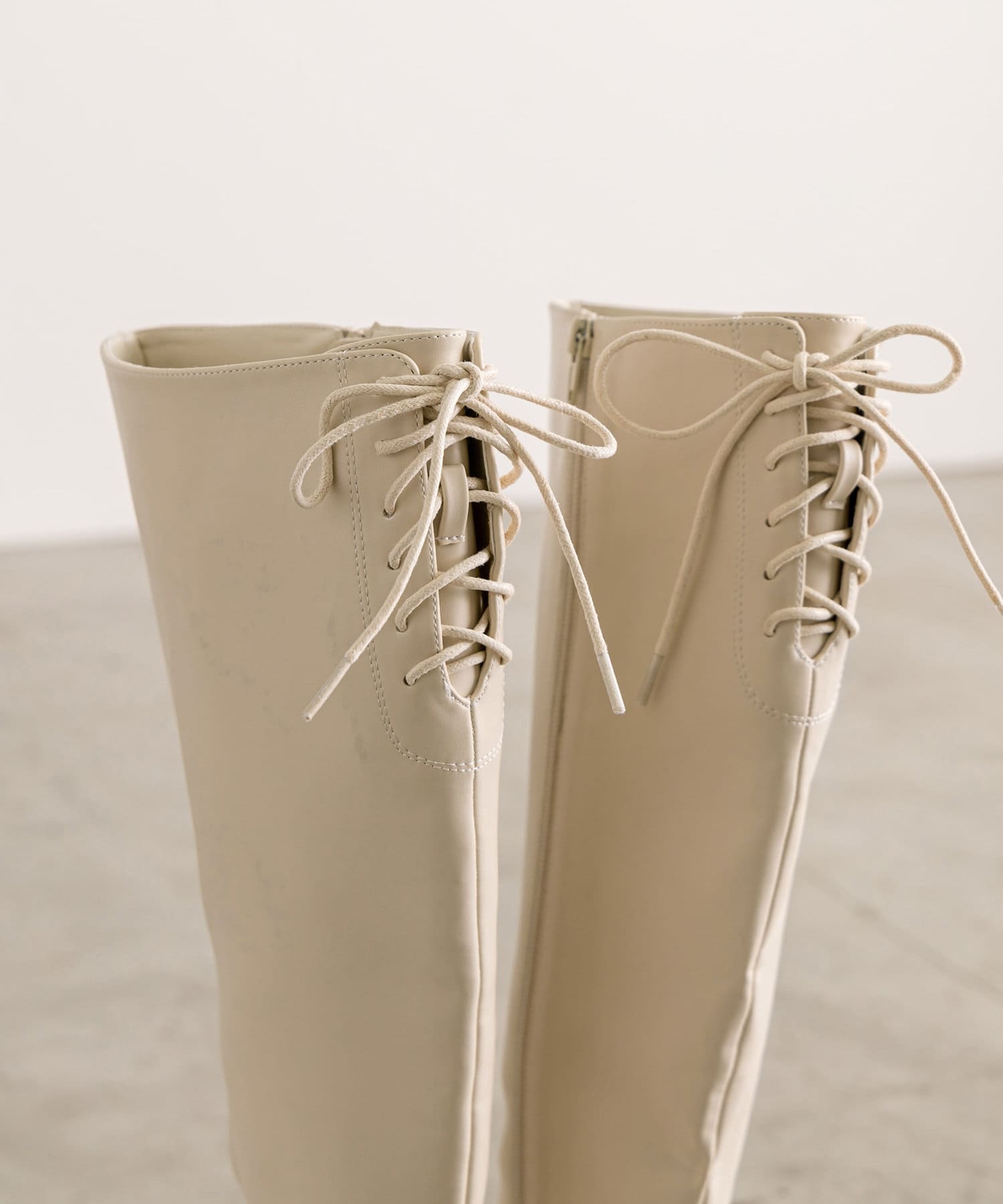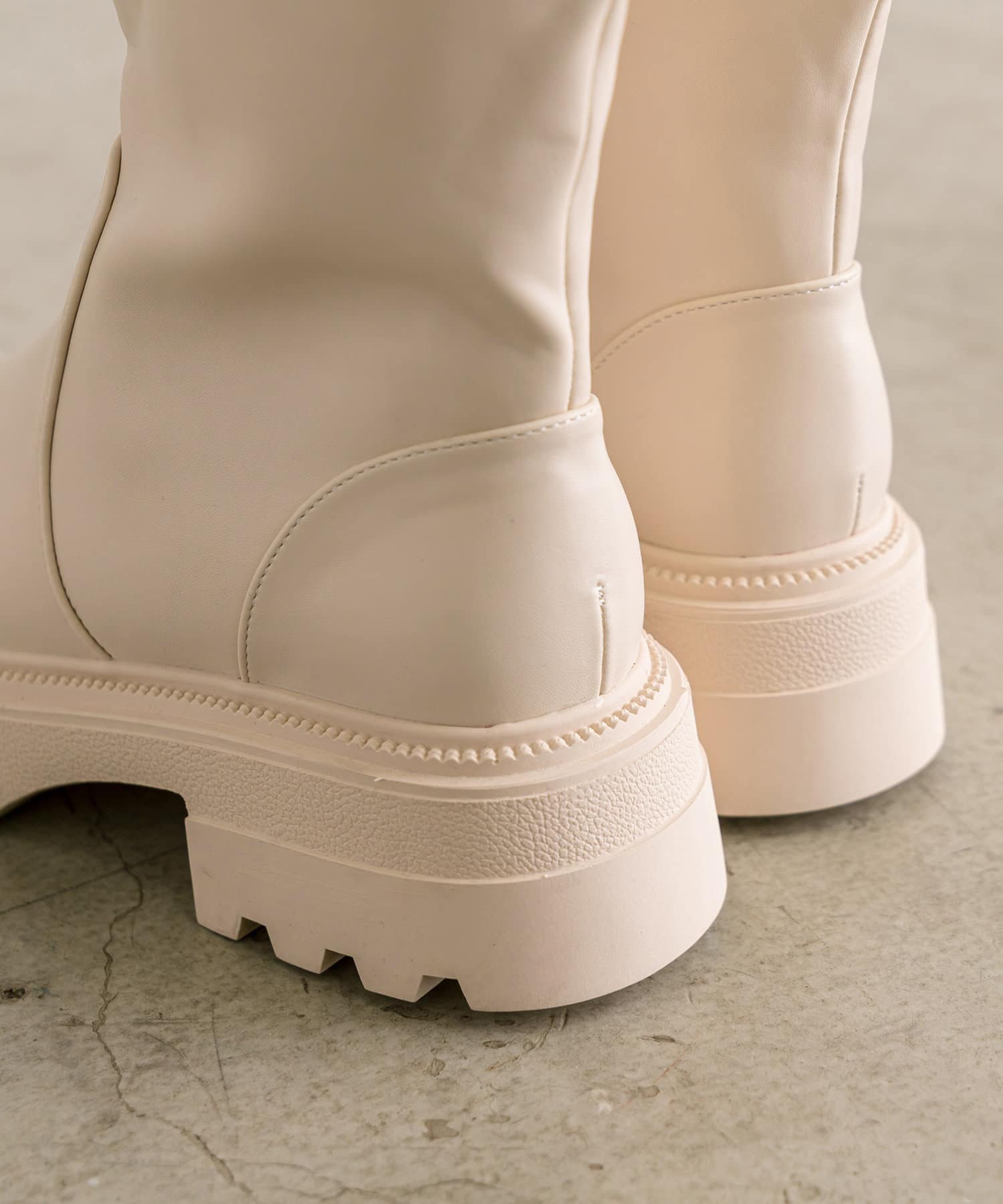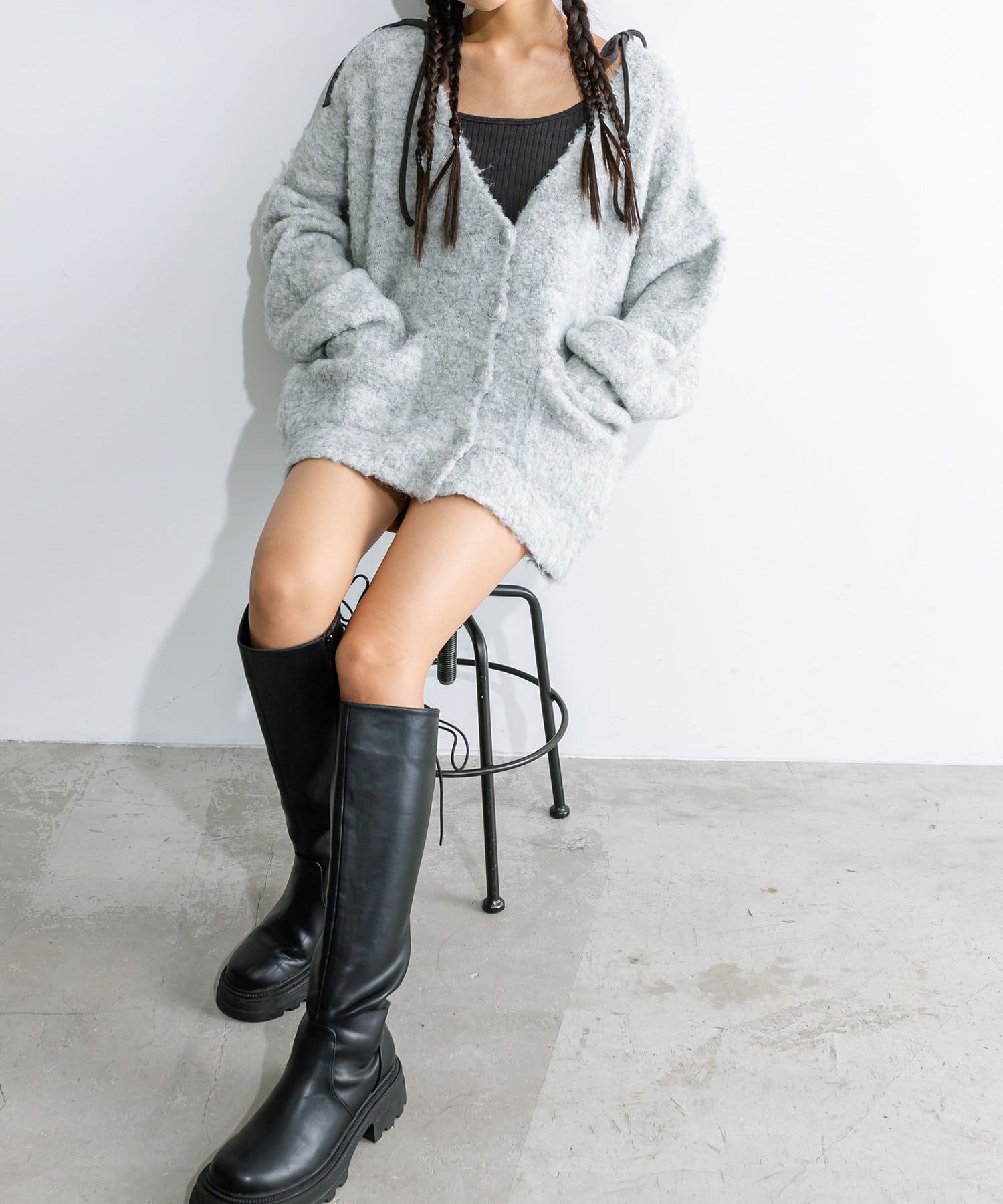 秋服、秋コーデ、冬服、冬コーデ、ロングブーツ、厚底シューズ、厚底ブーツ、タンクソール、韓国ファッション、韓国コーデ、バックリボン、レースアップ