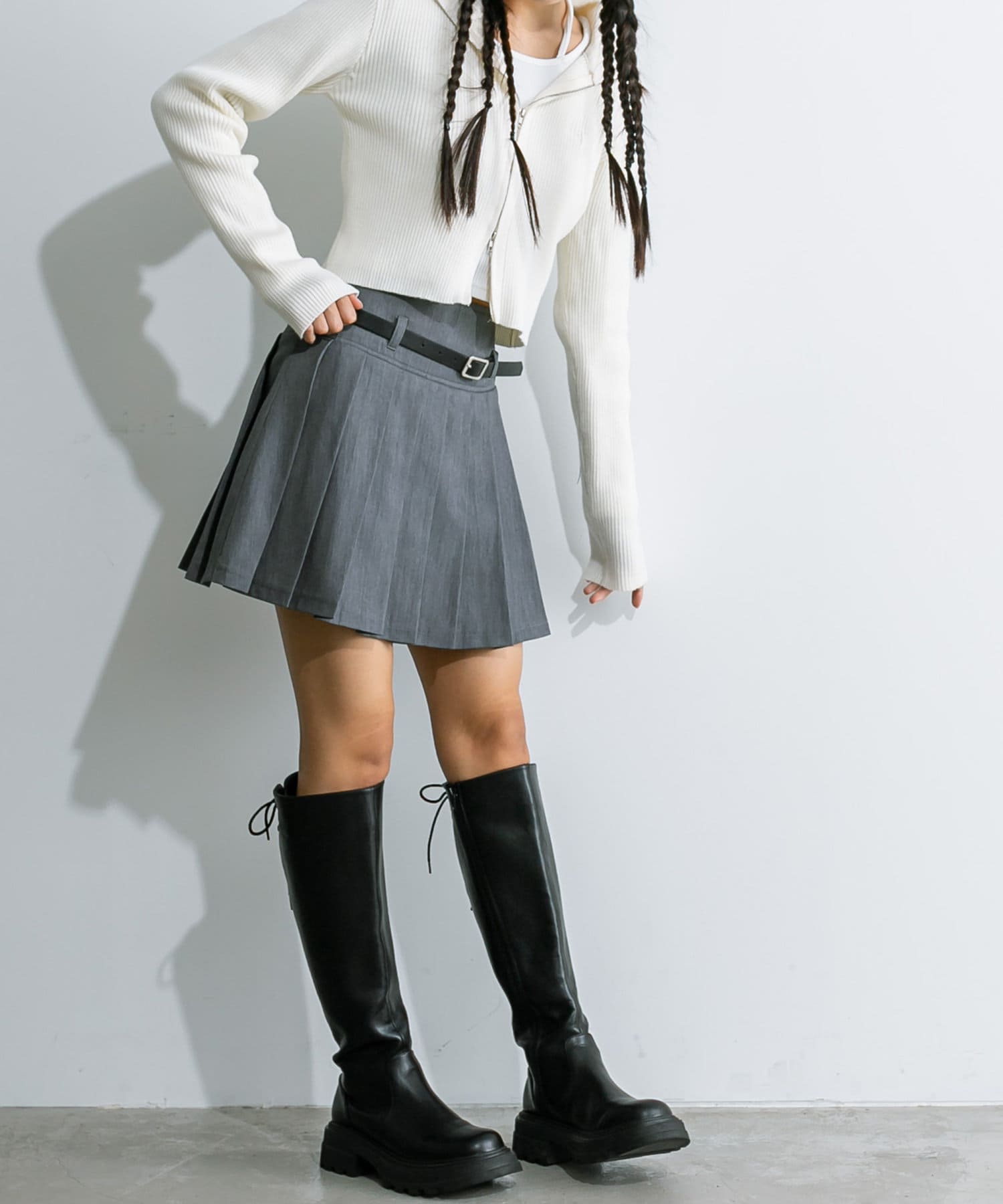 ・トレンドのミニ丈ボトムでY2Kな着こなしが今年っぽくオススメ。