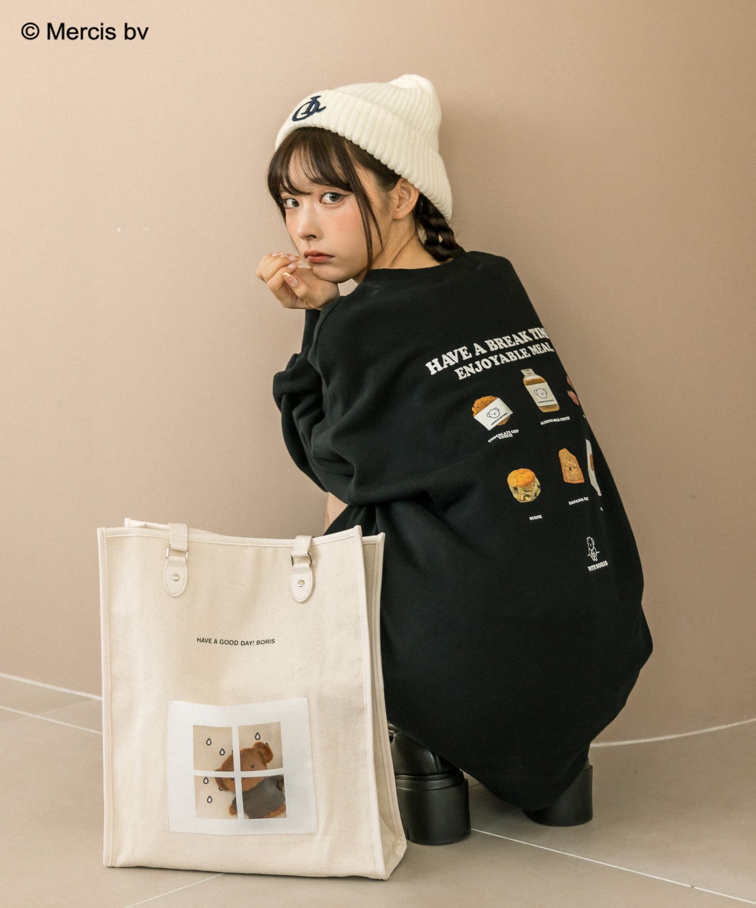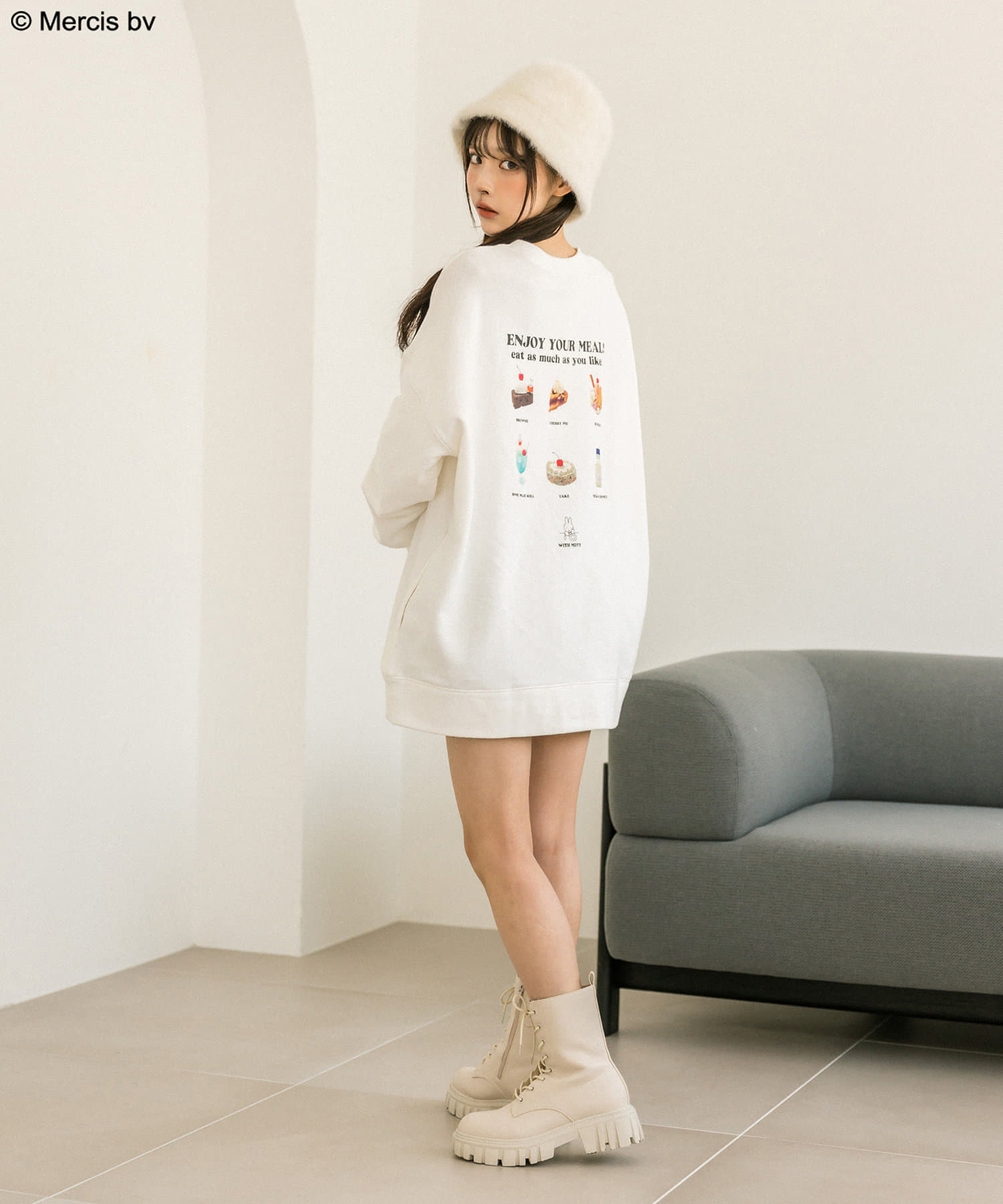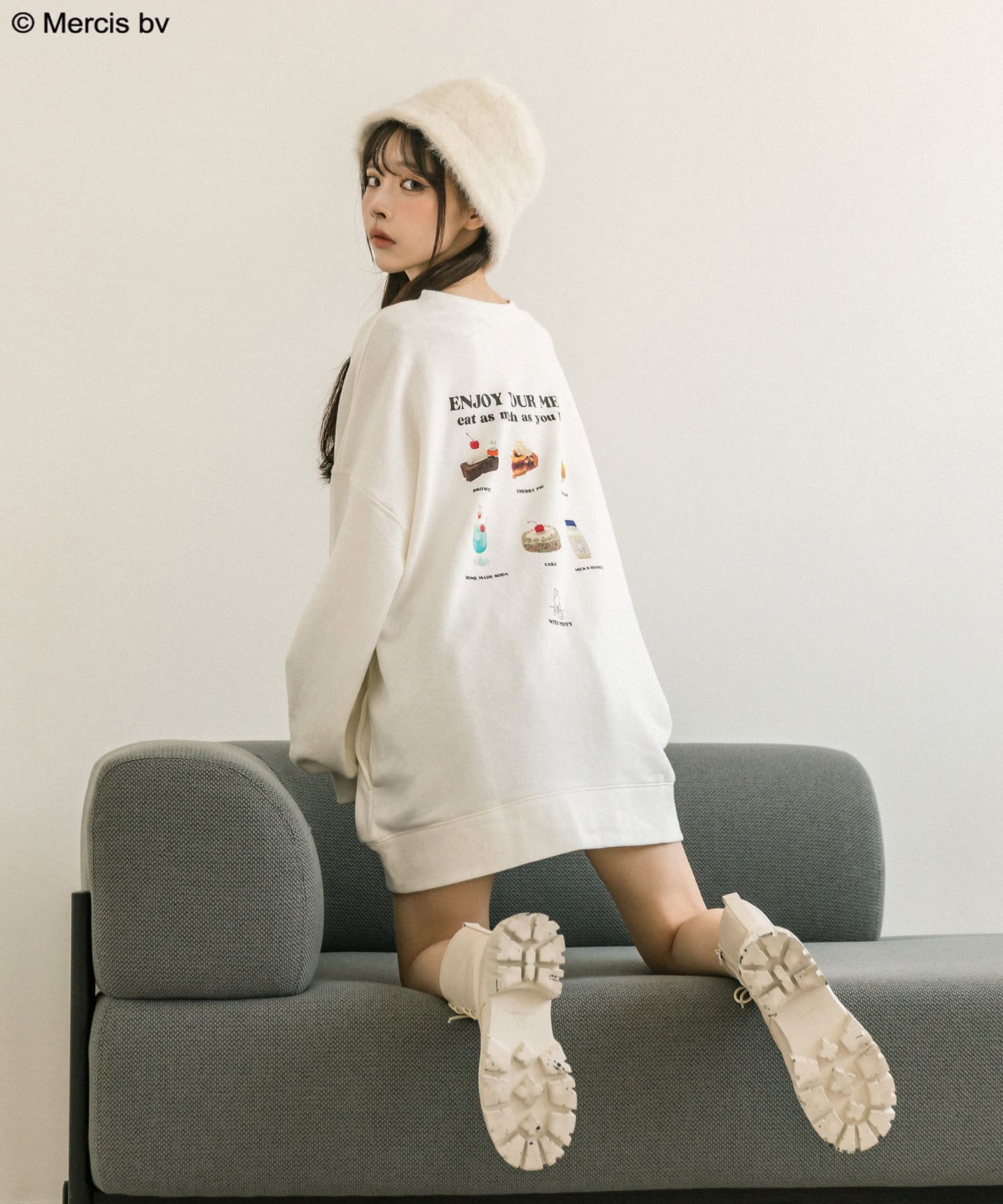 ・背中にスウィーツのフォトプリントを施した可愛いスウェット。
