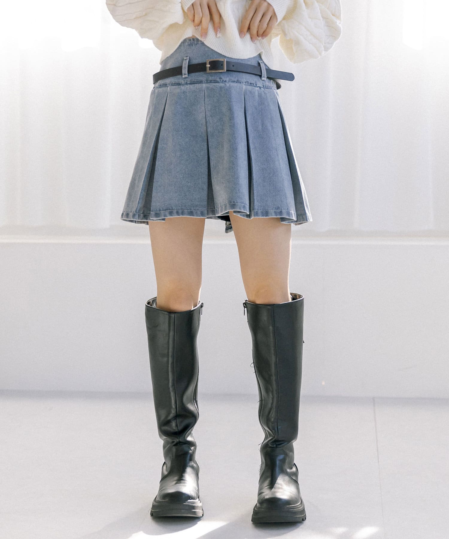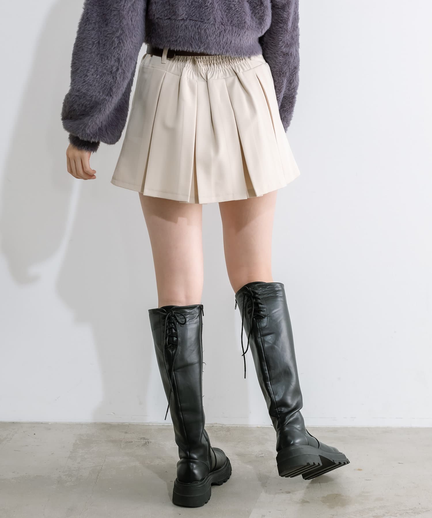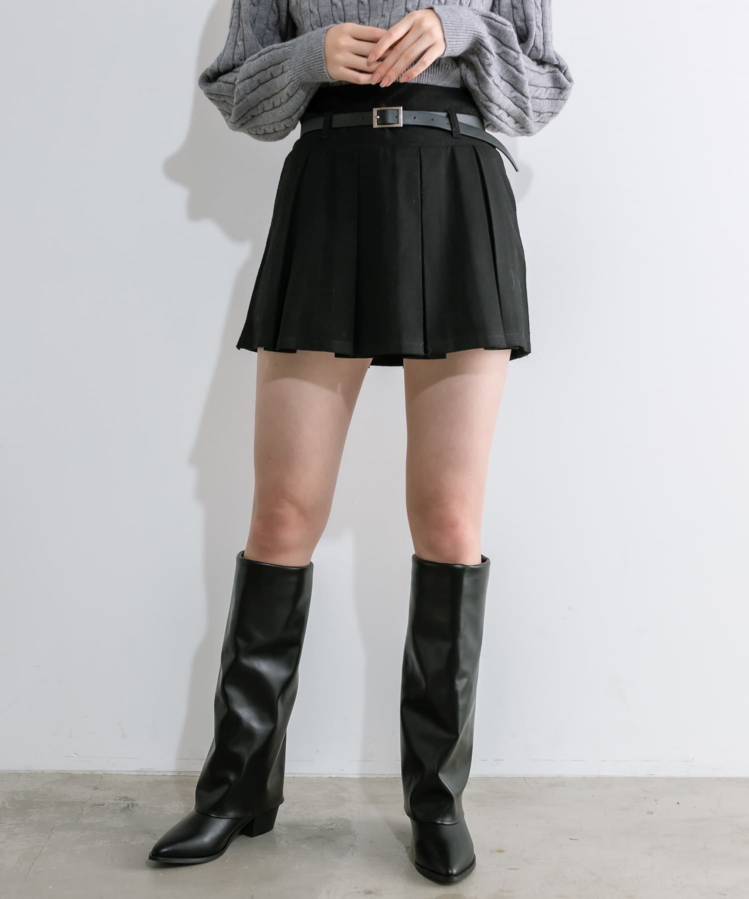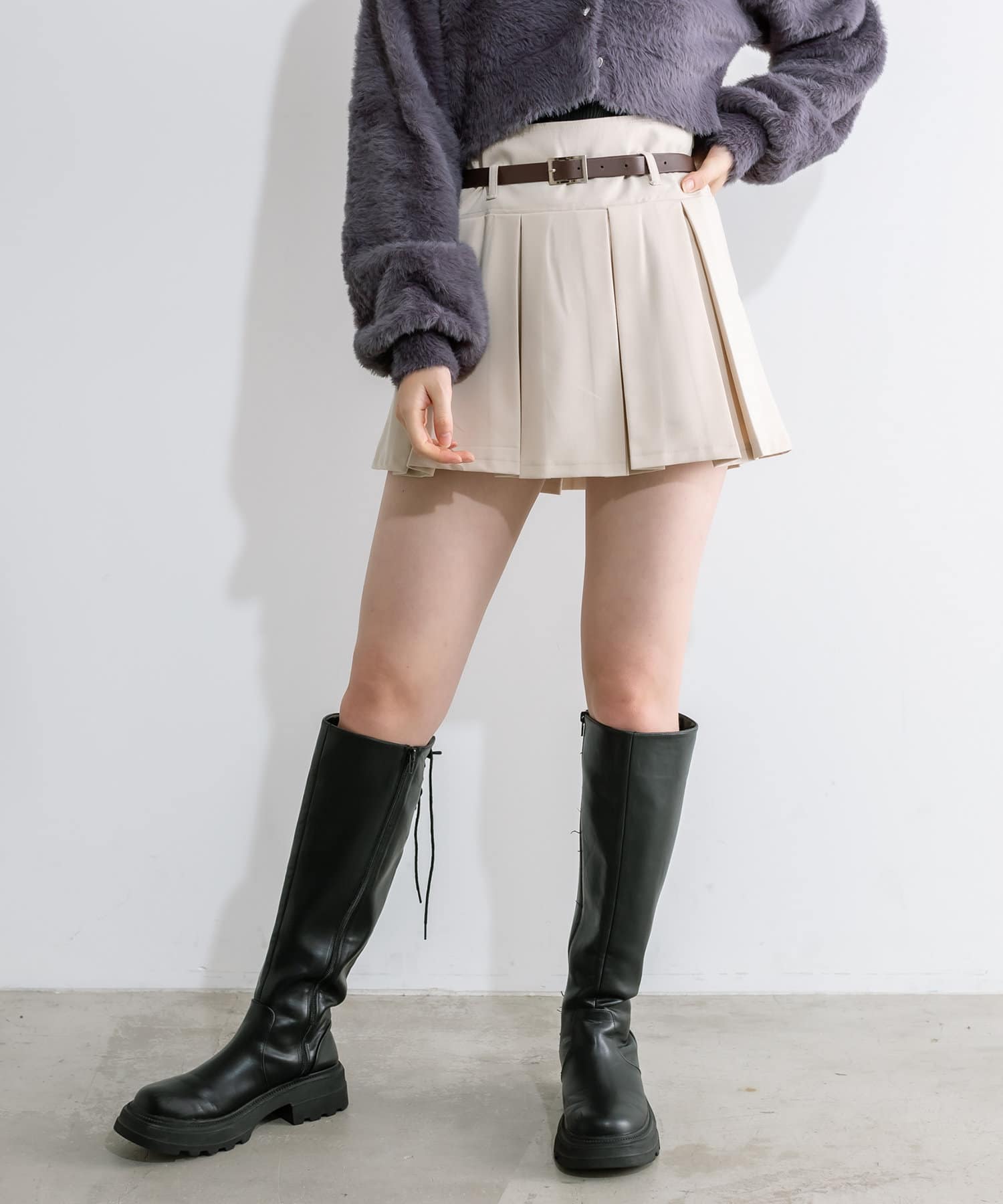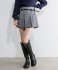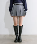 ベルト付きボックスプリーツミニスカート
