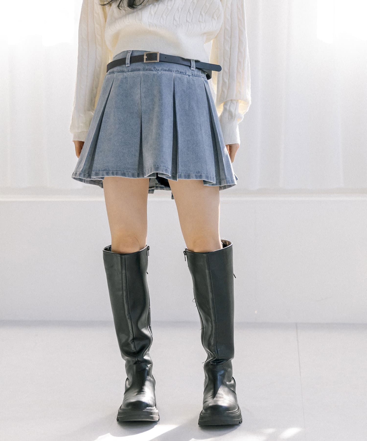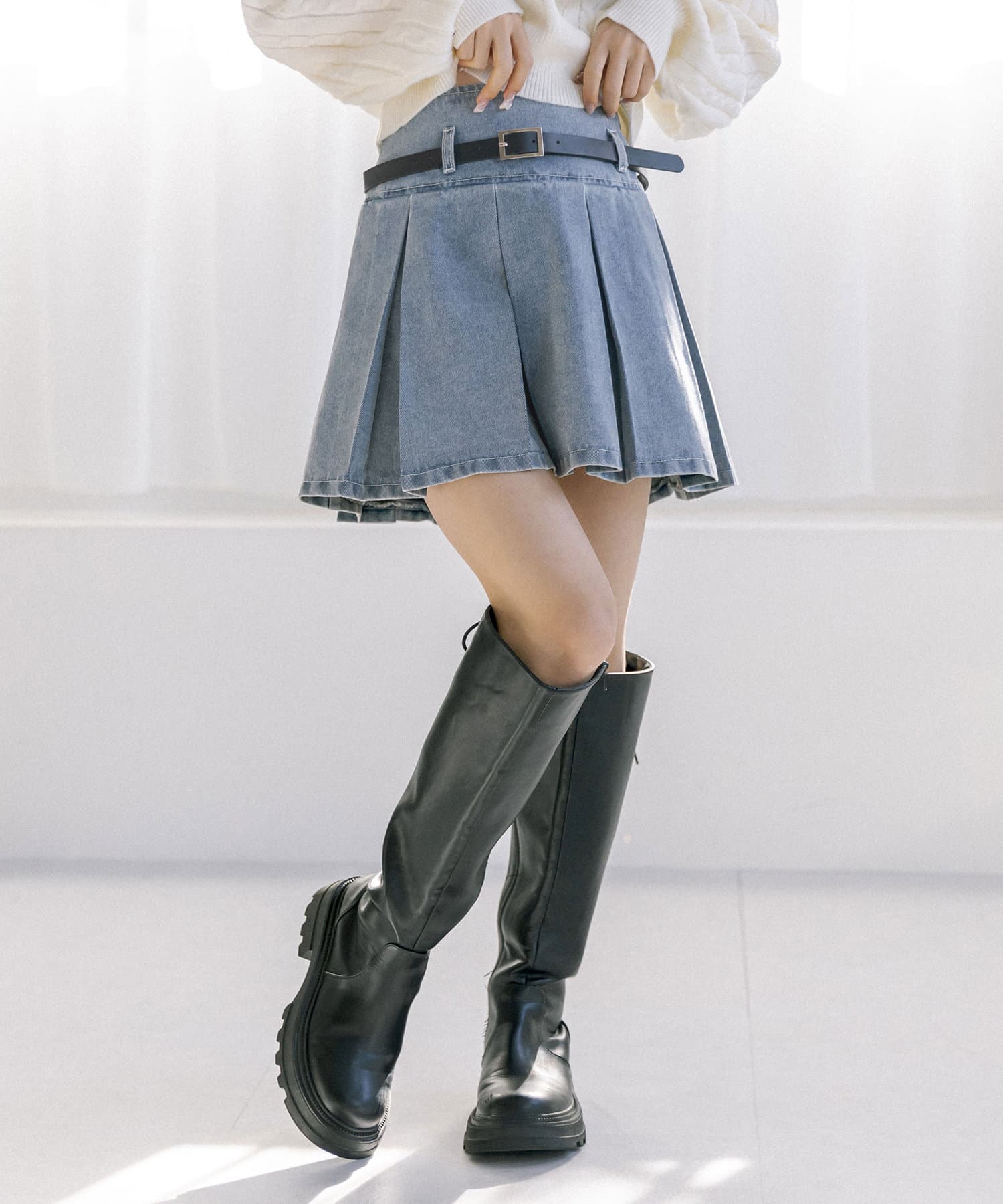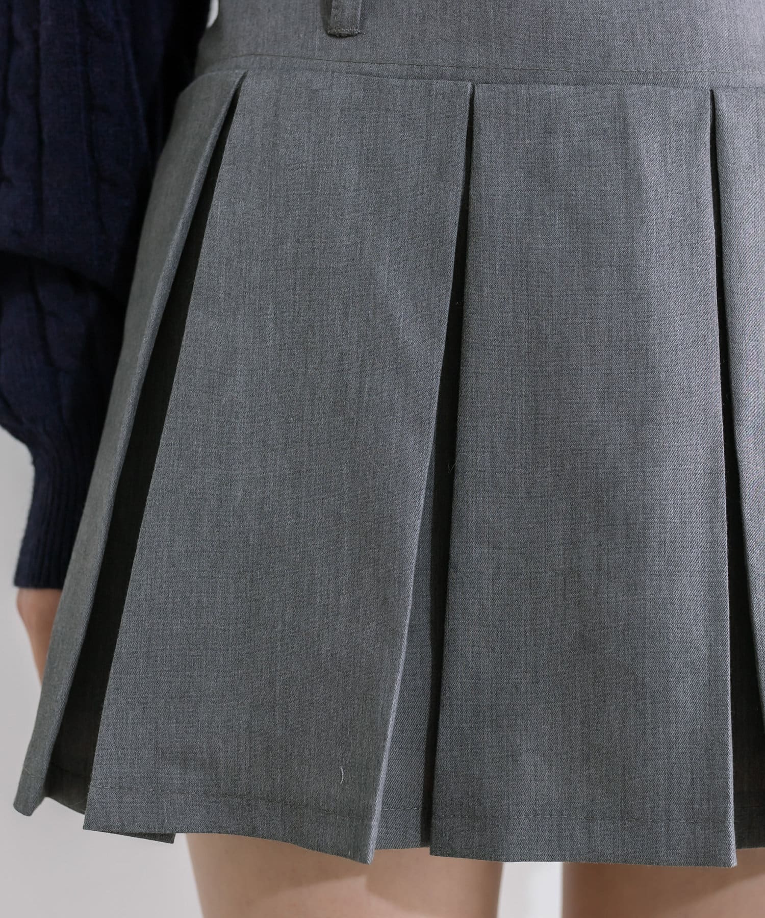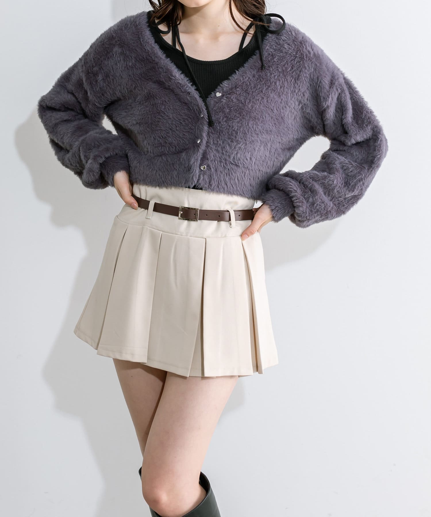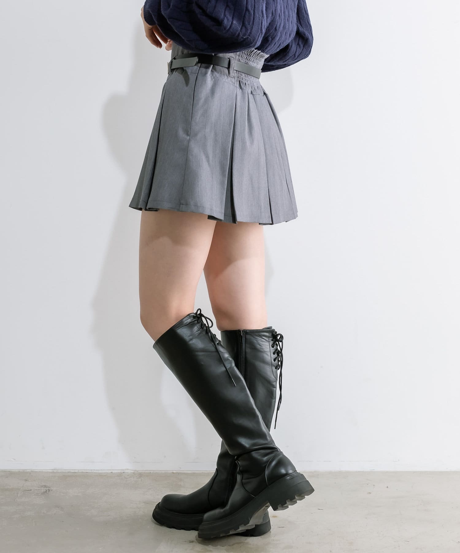 ベルト付きボックスプリーツミニスカート