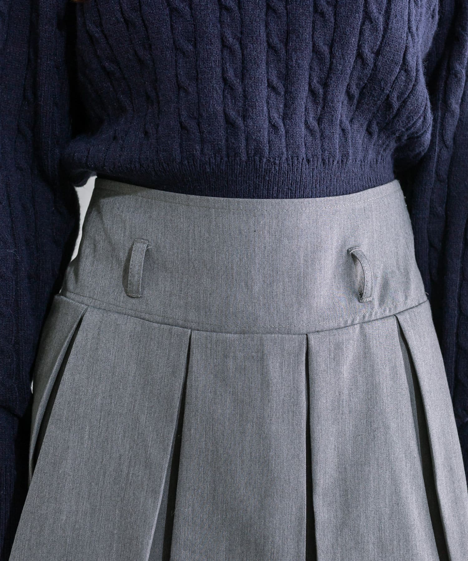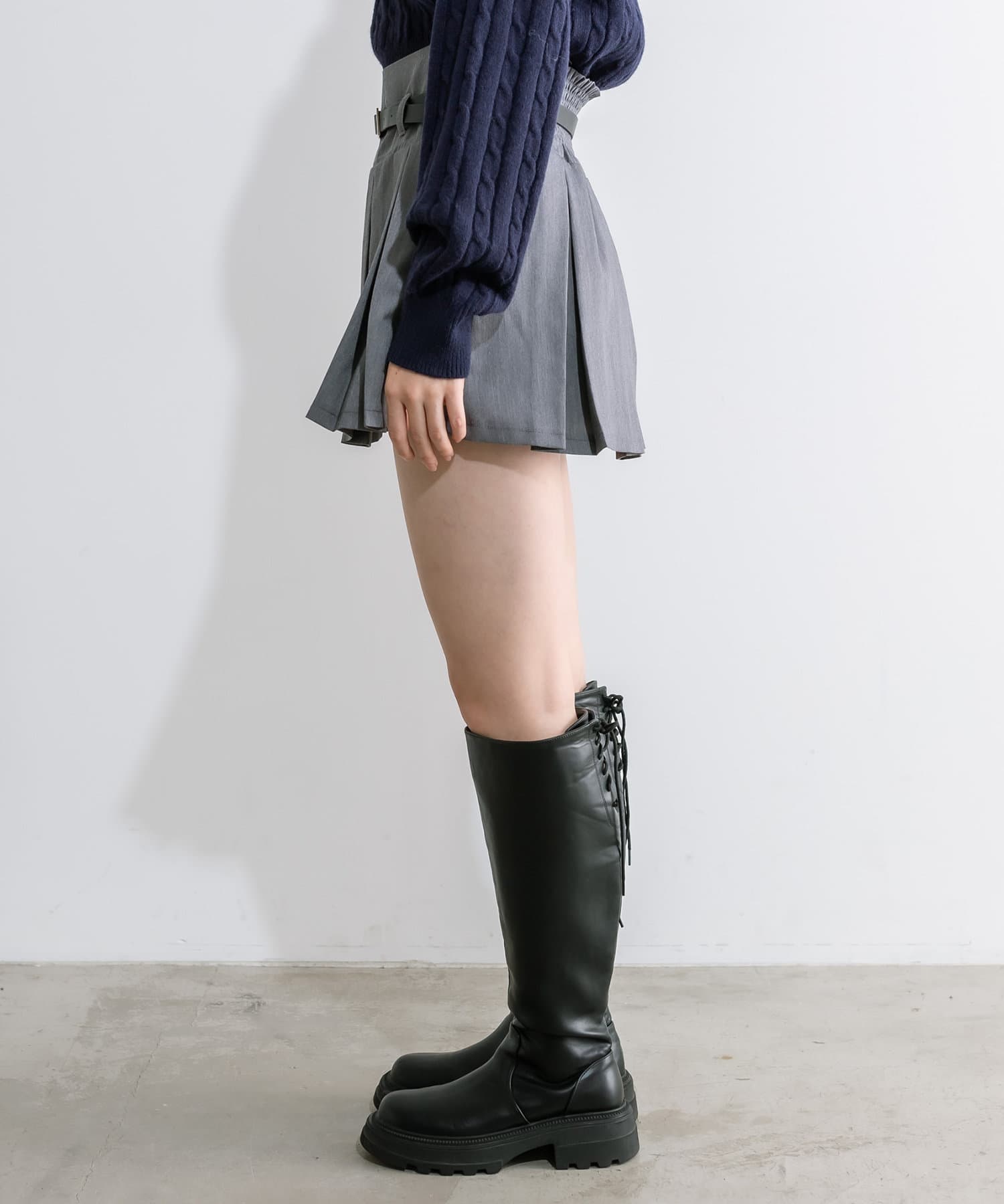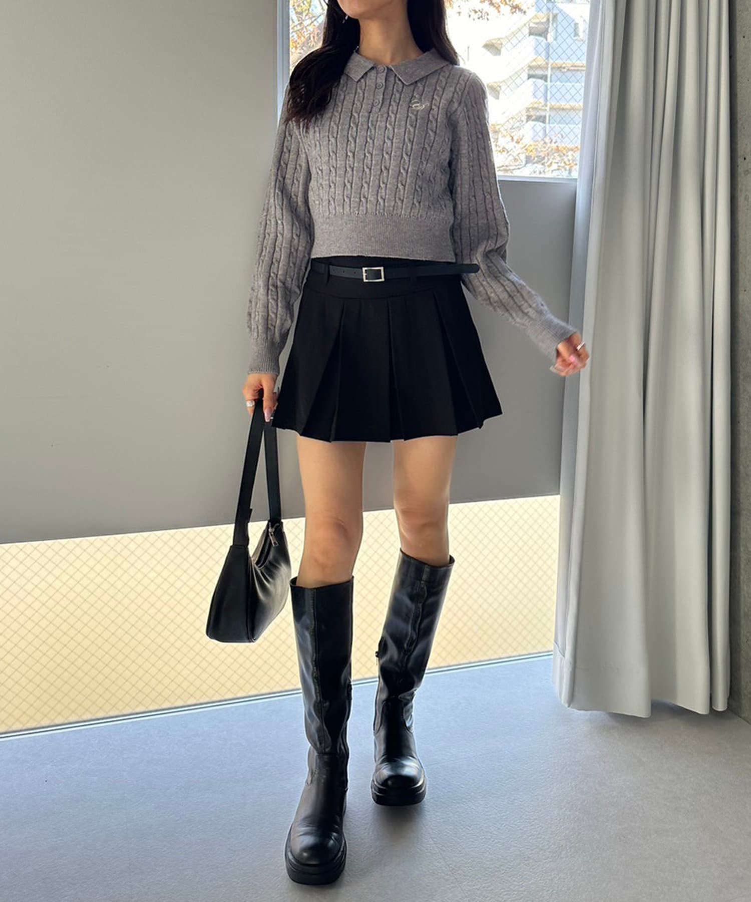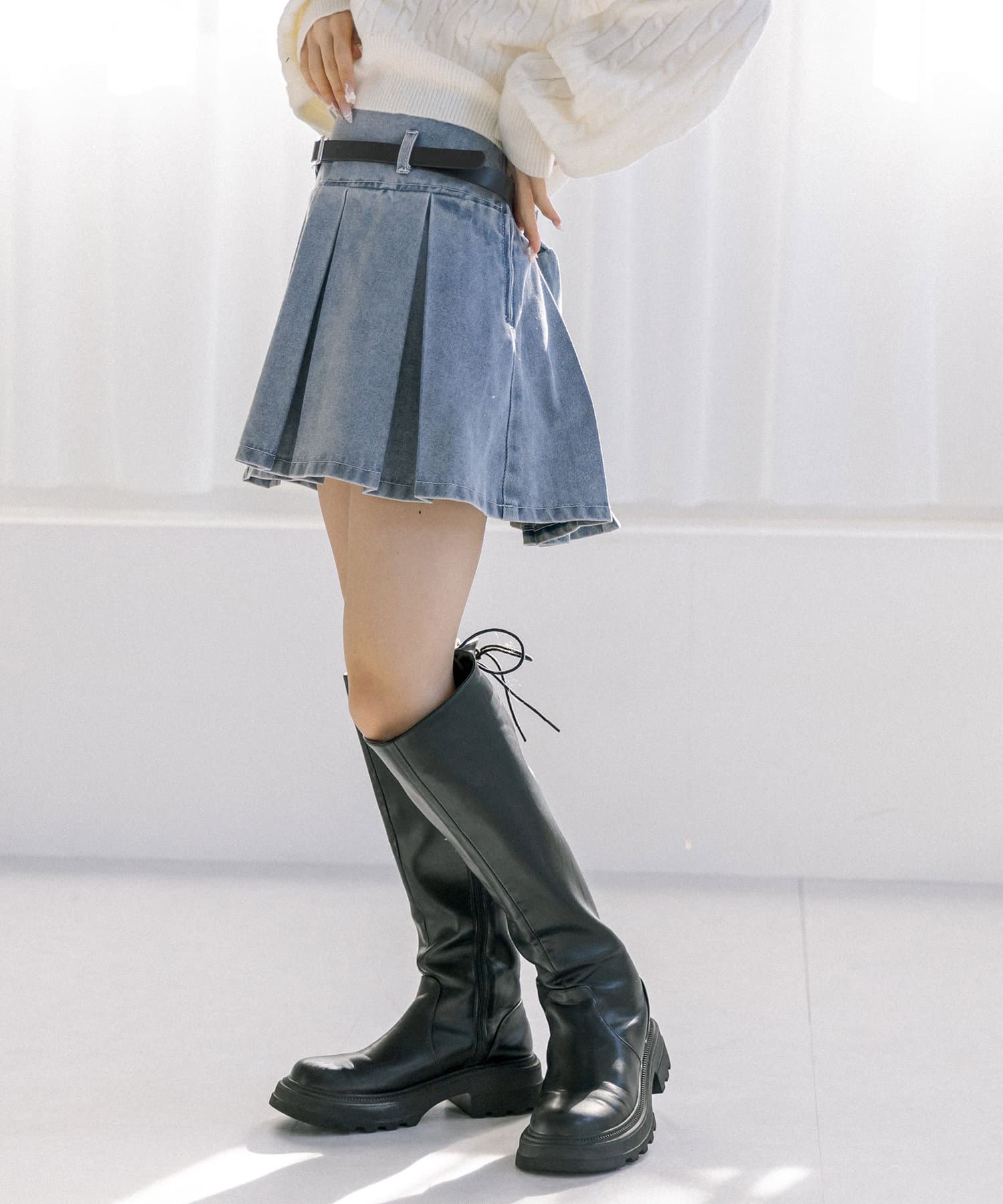 ベルト付きボックスプリーツミニスカート