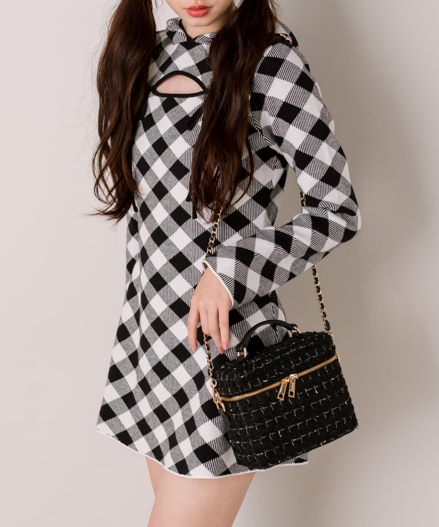 ・バニティ型のフォルムに、シーズンムードが高まるツイードとファーのバッグ。