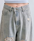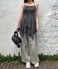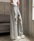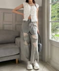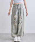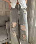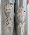 レース入りのダメージデザインが目を惹くデニムパンツ