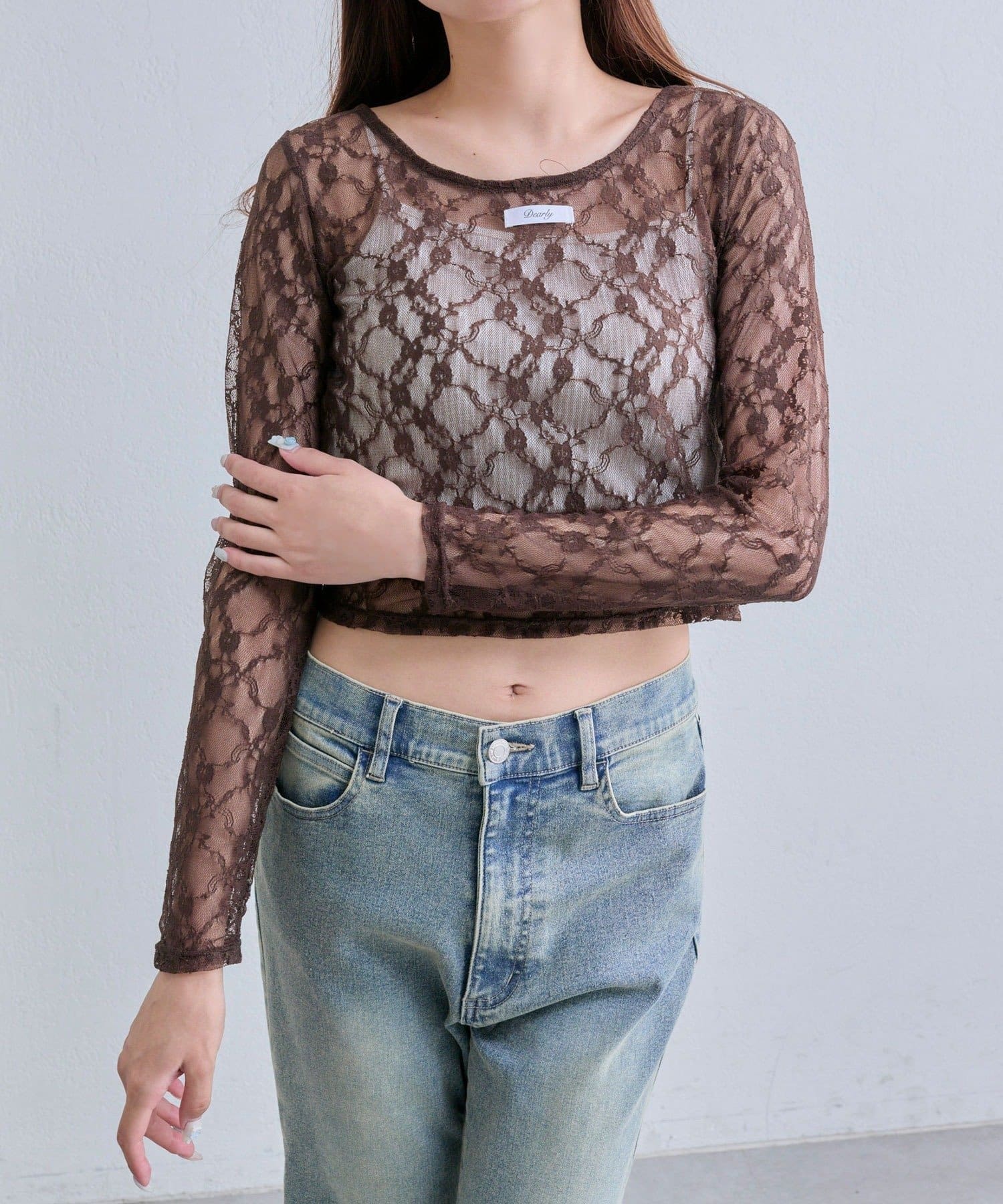 ・肌になじむ程よい透け感で、トップスとして1枚で着てもインナー感が出にくいです。