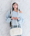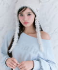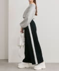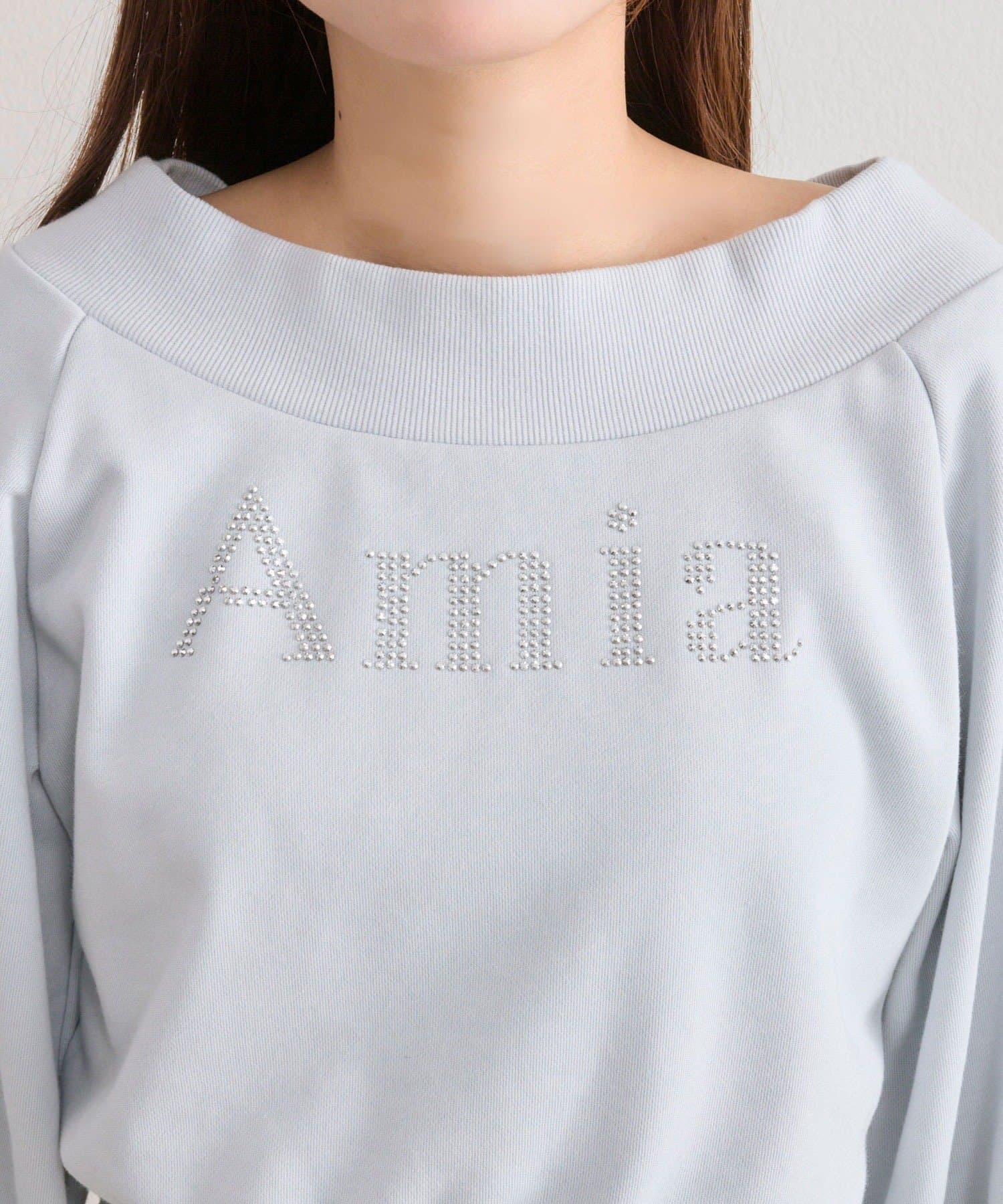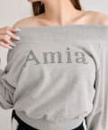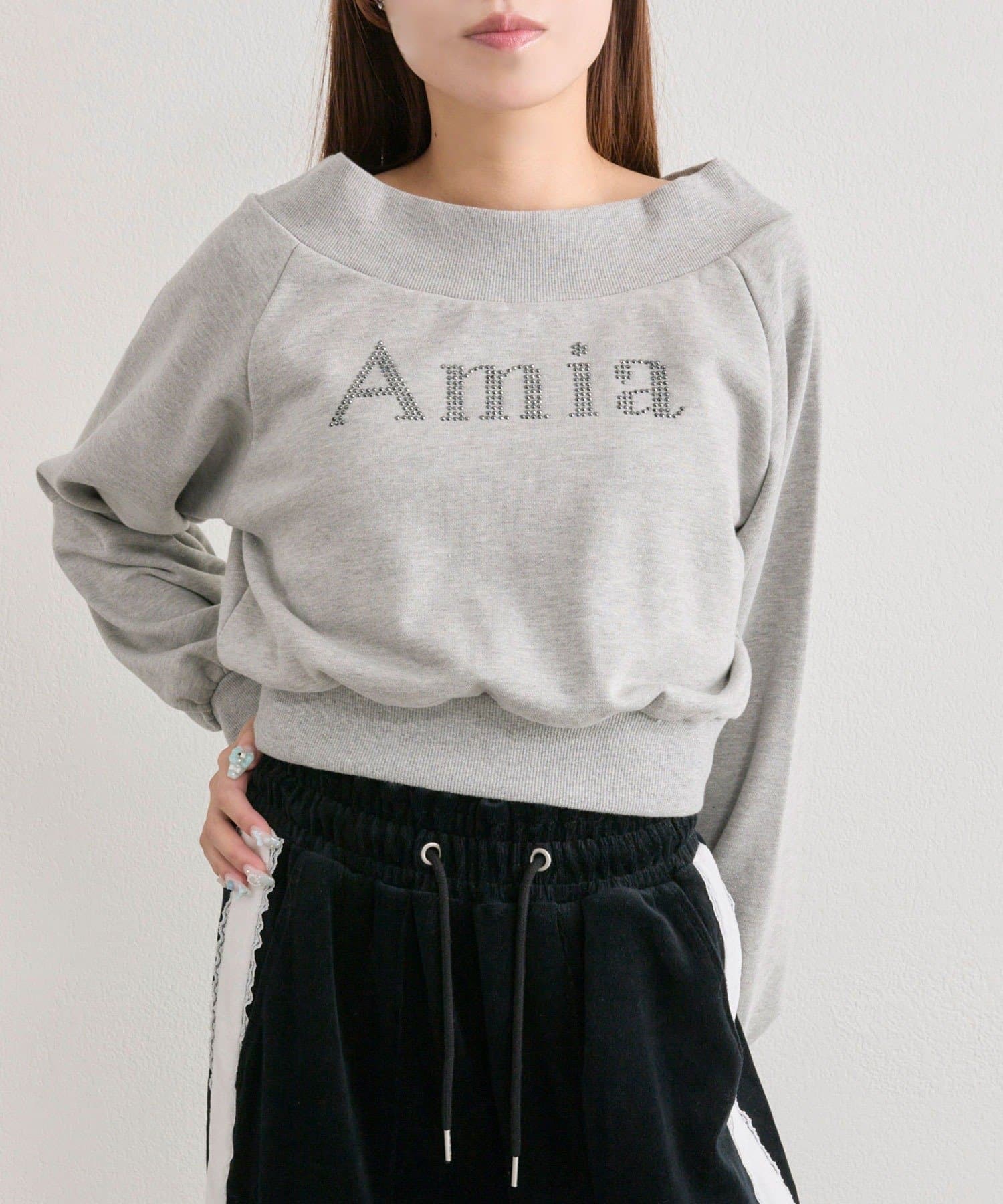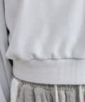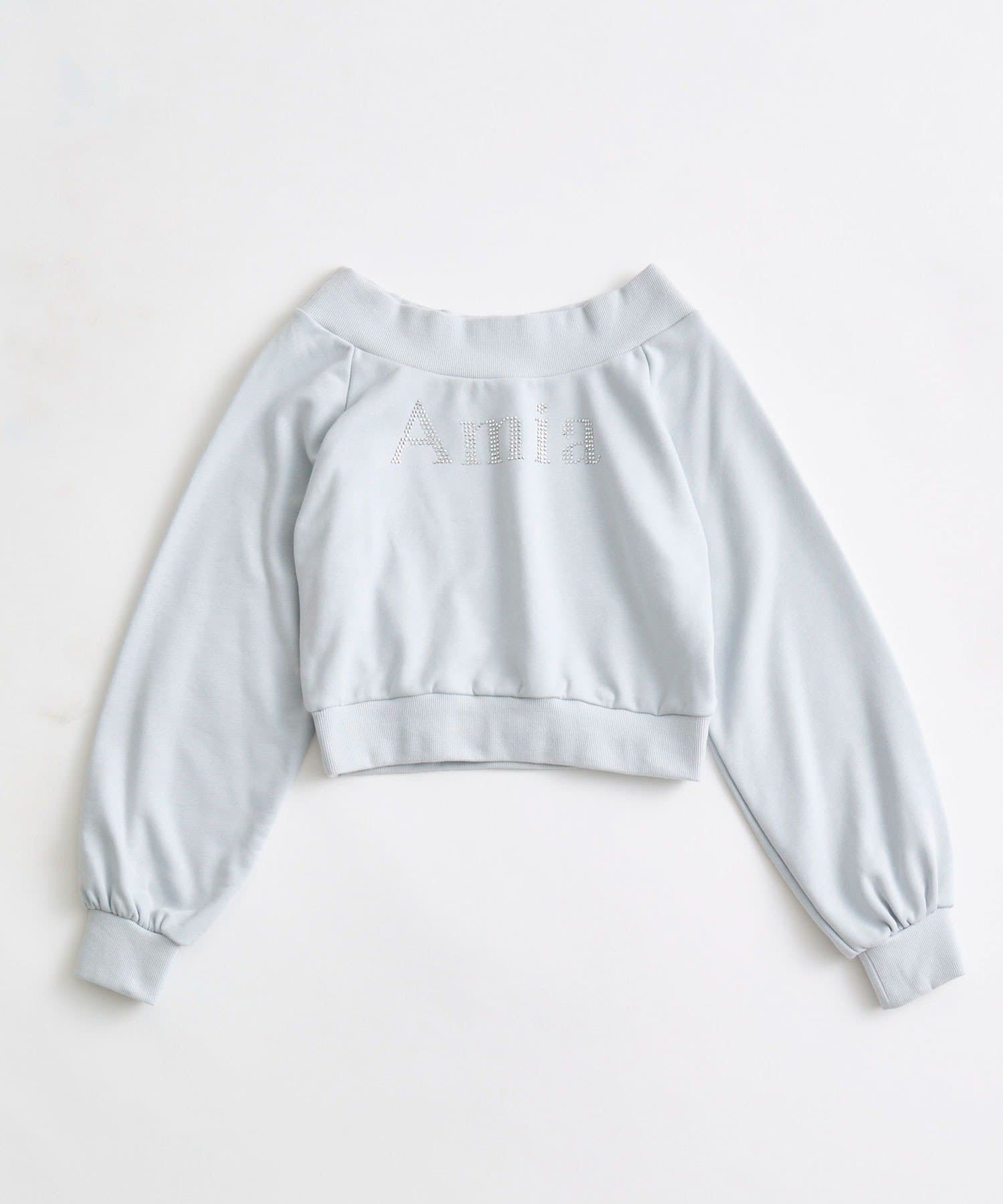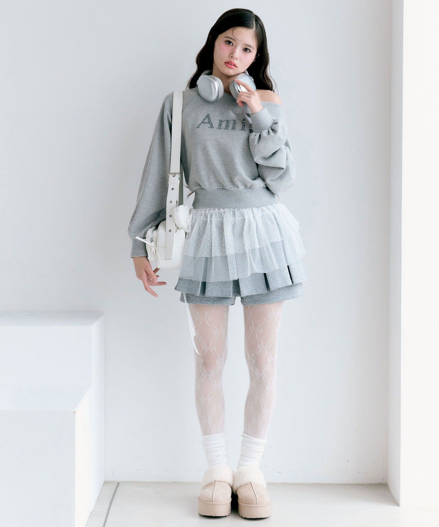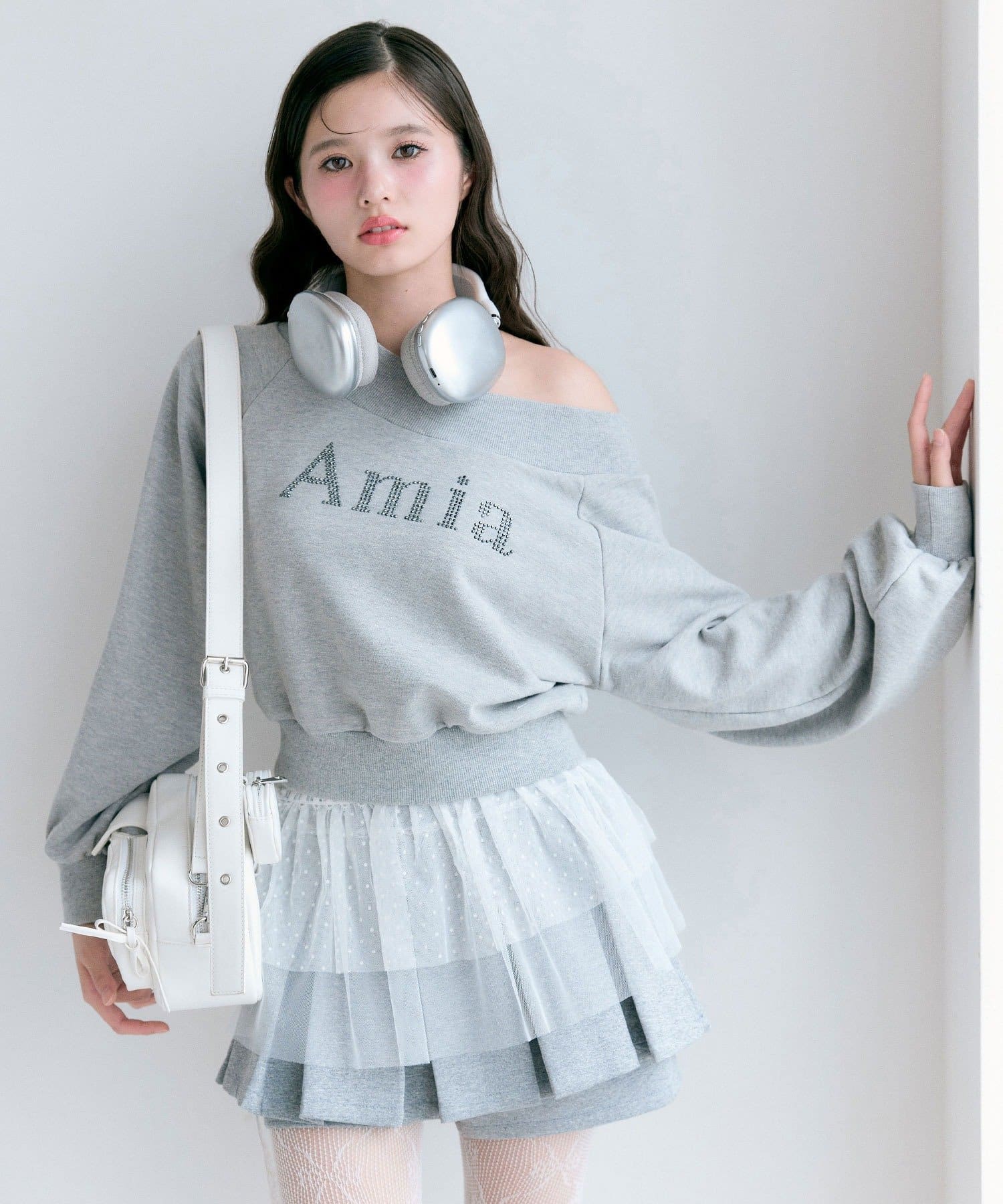 ・カジュアルなスウェットを女性らしく着こなせるオフショルデザイン。