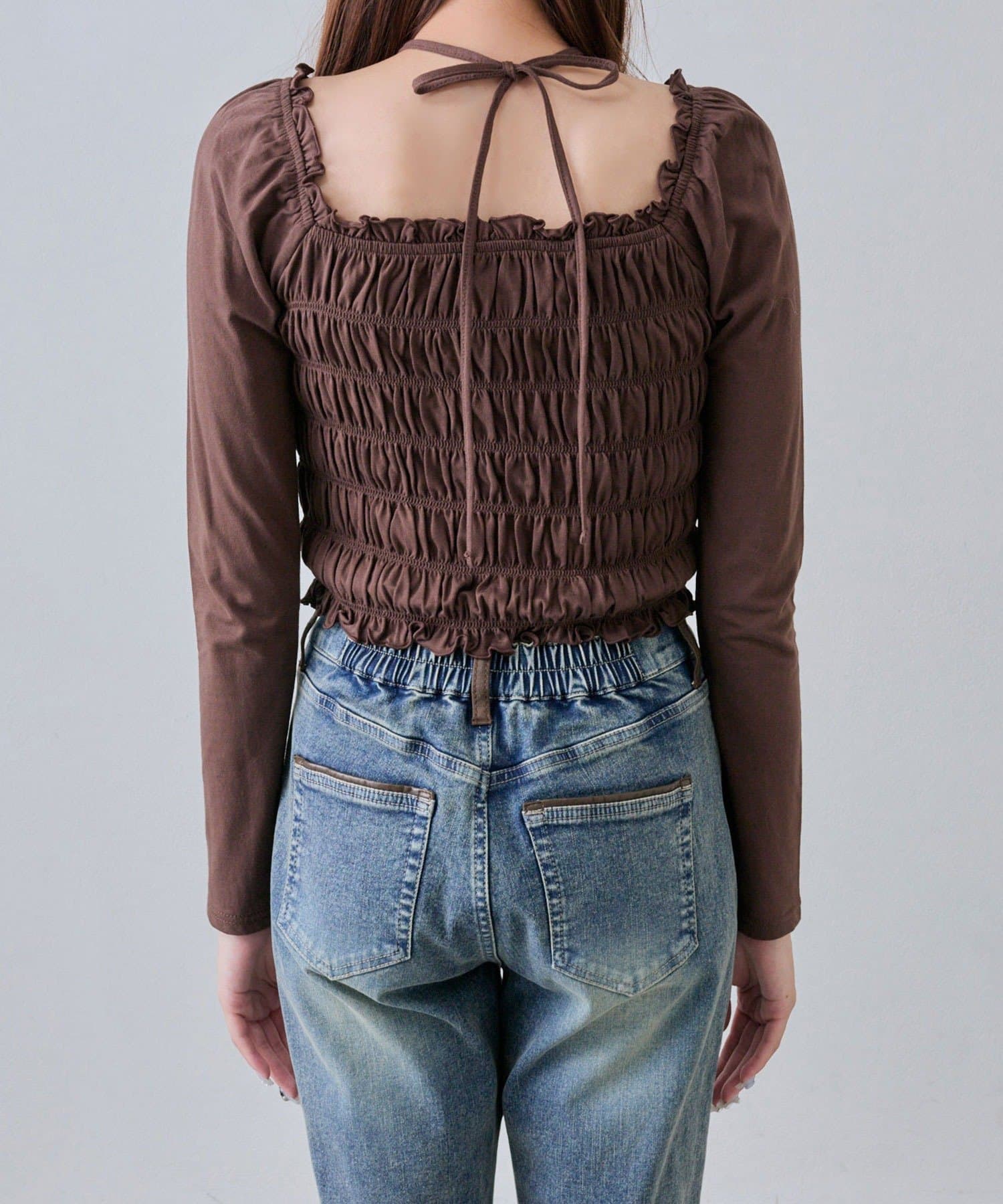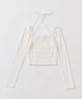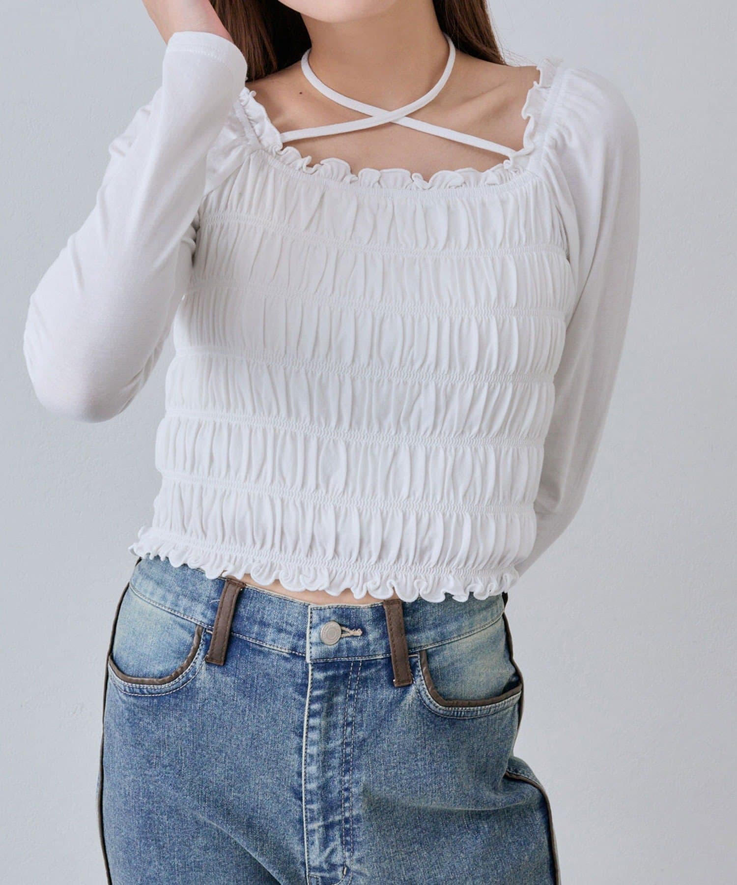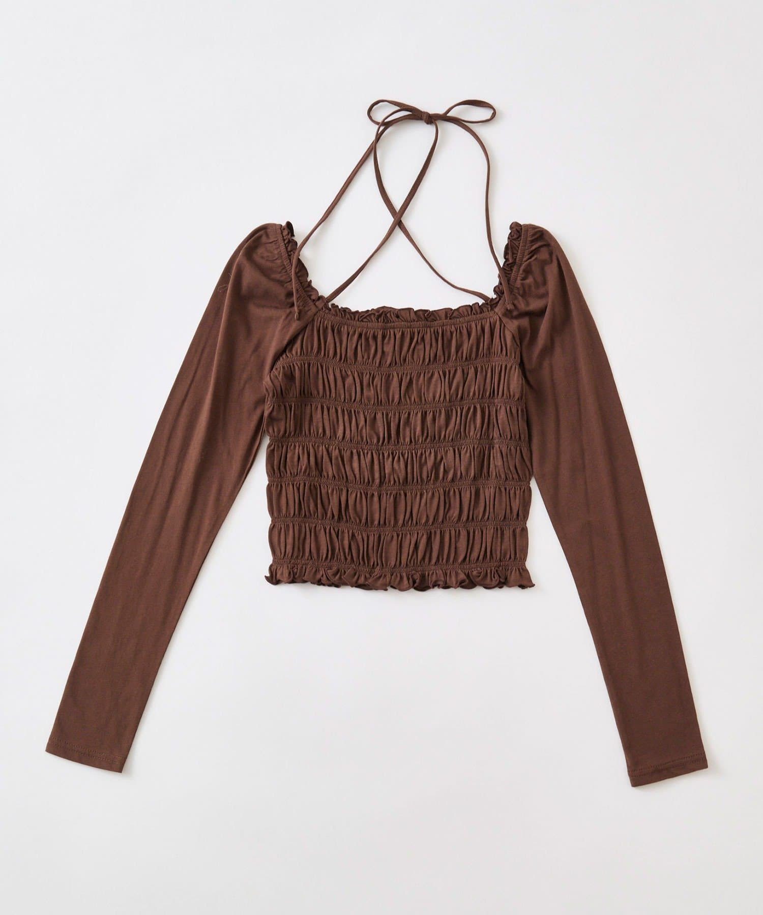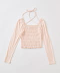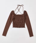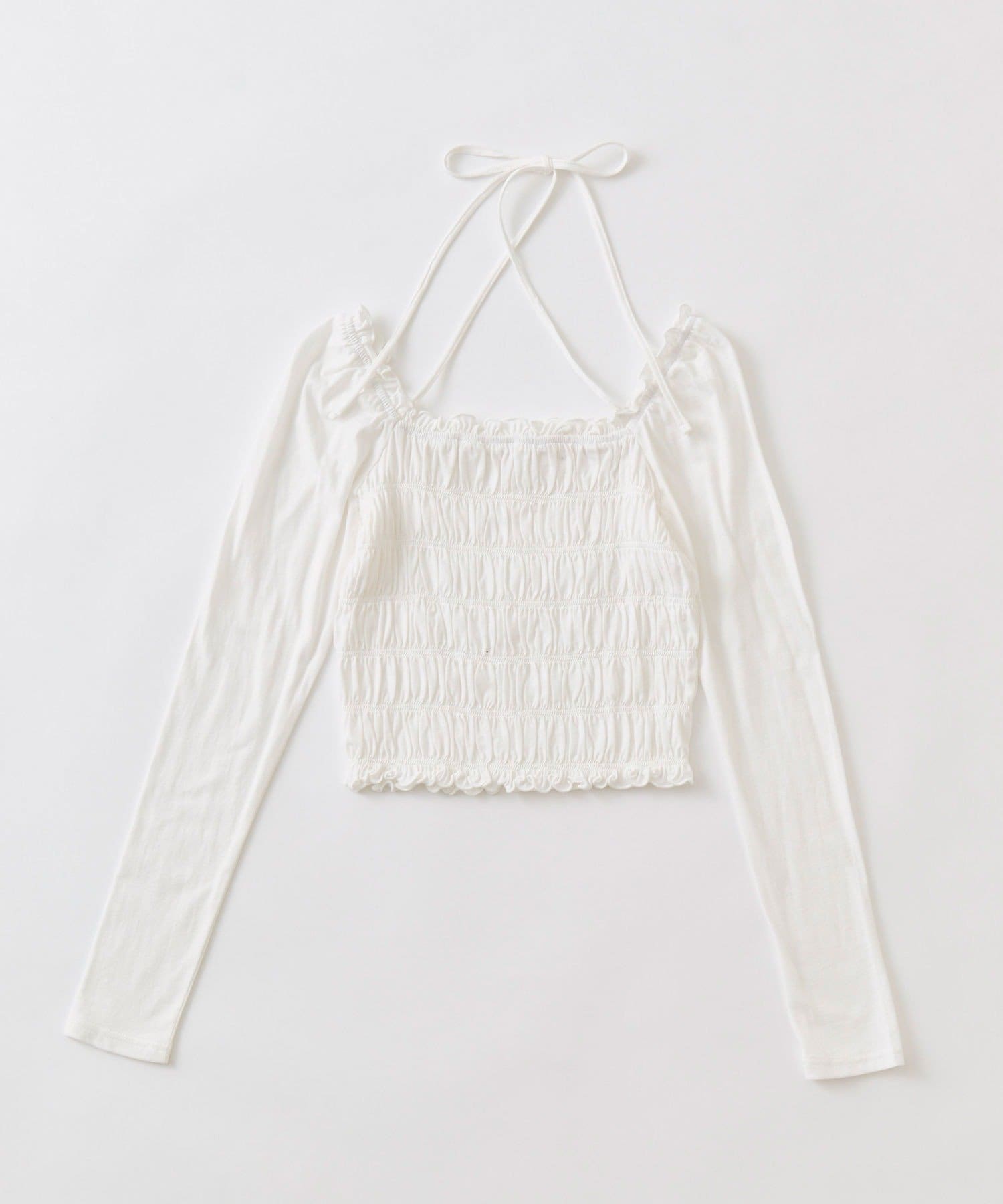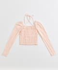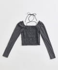 ・スクエアネックとホルターネック風ディテールで、女性らしい印象を演出します。