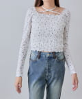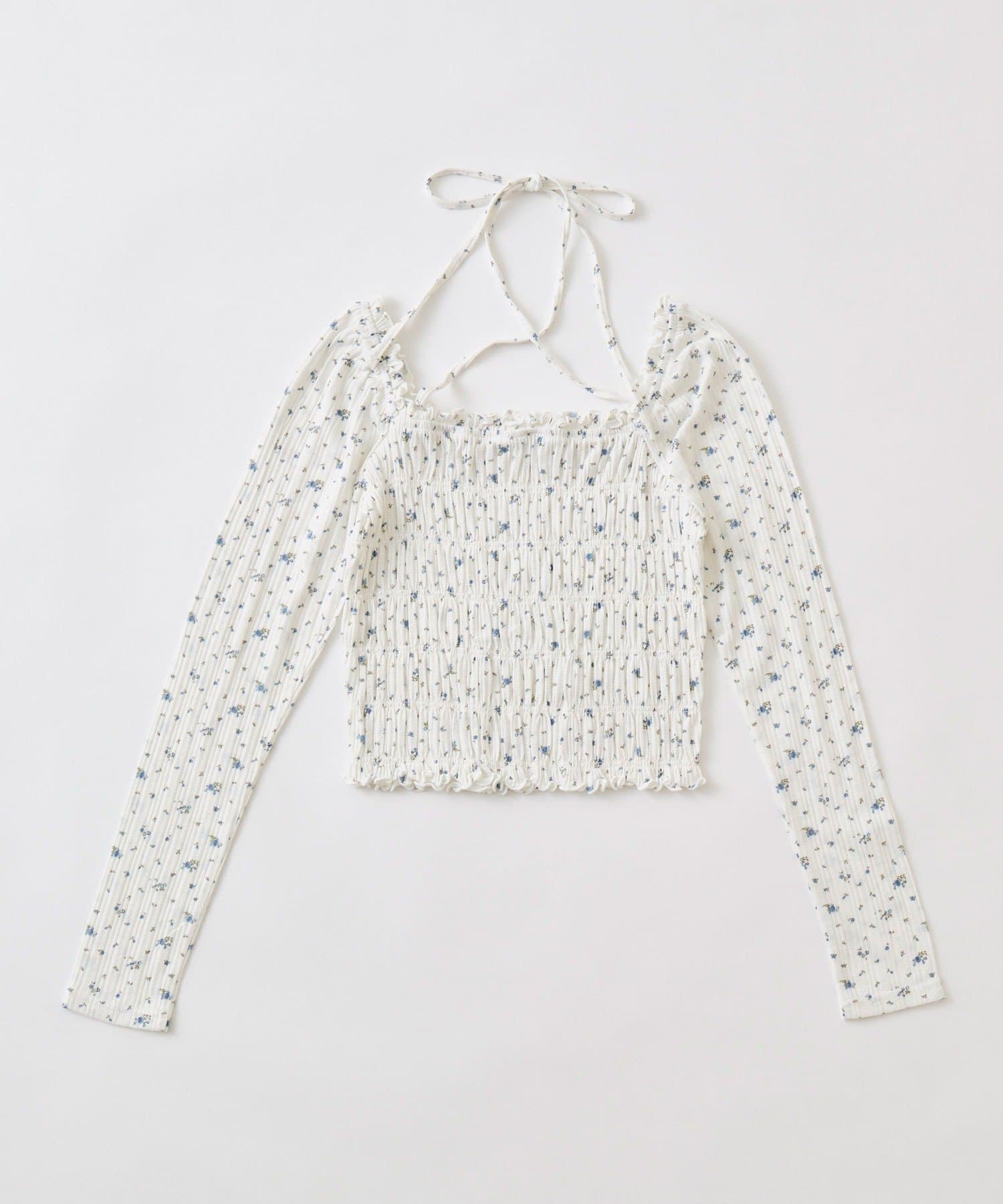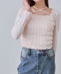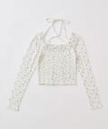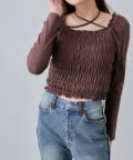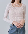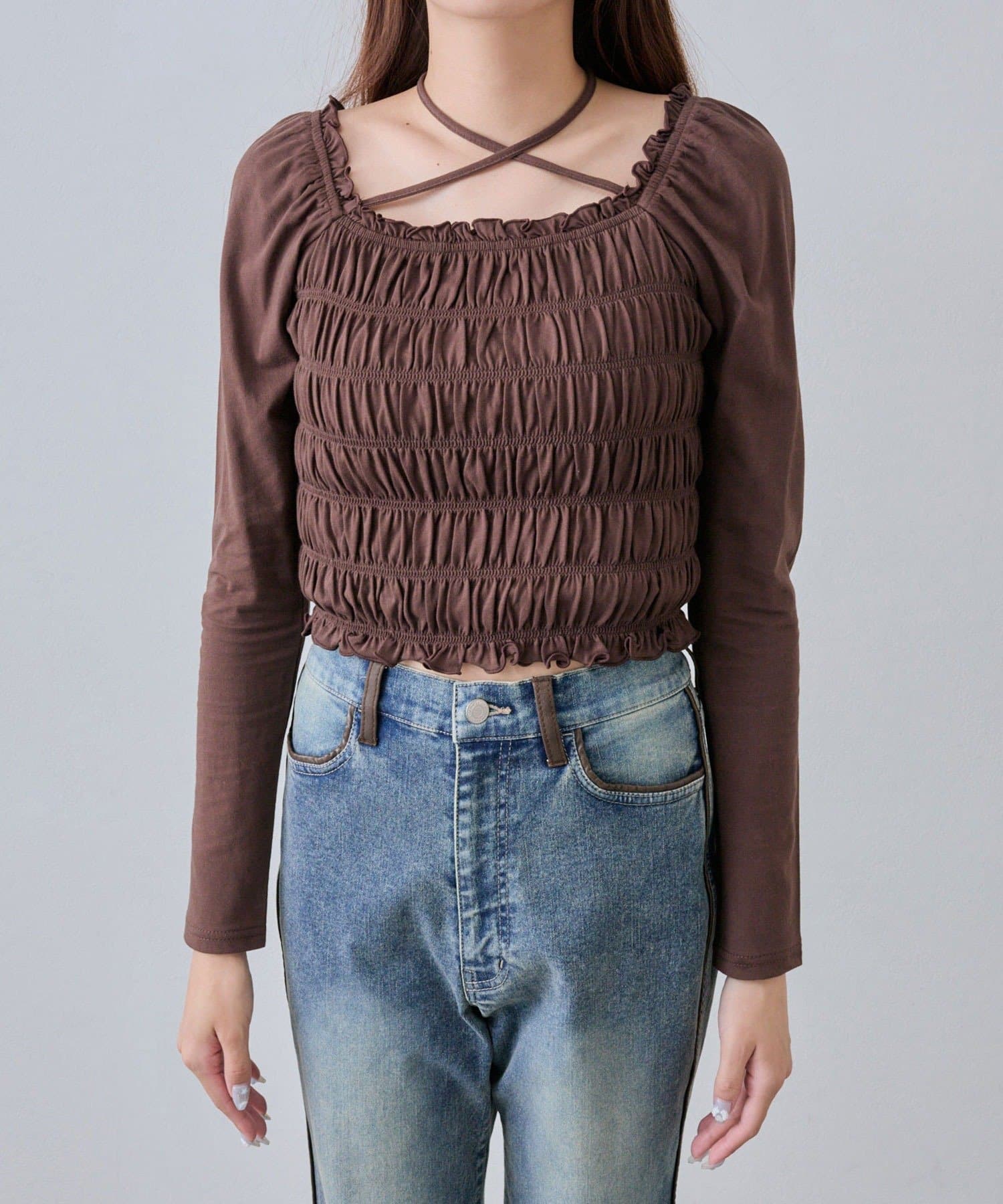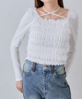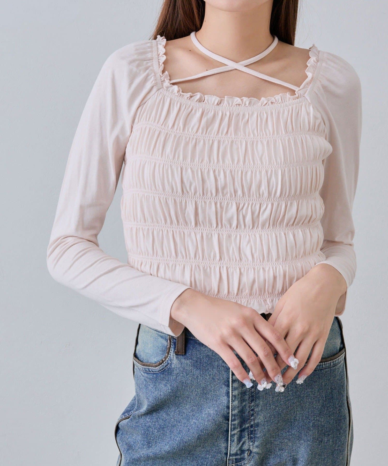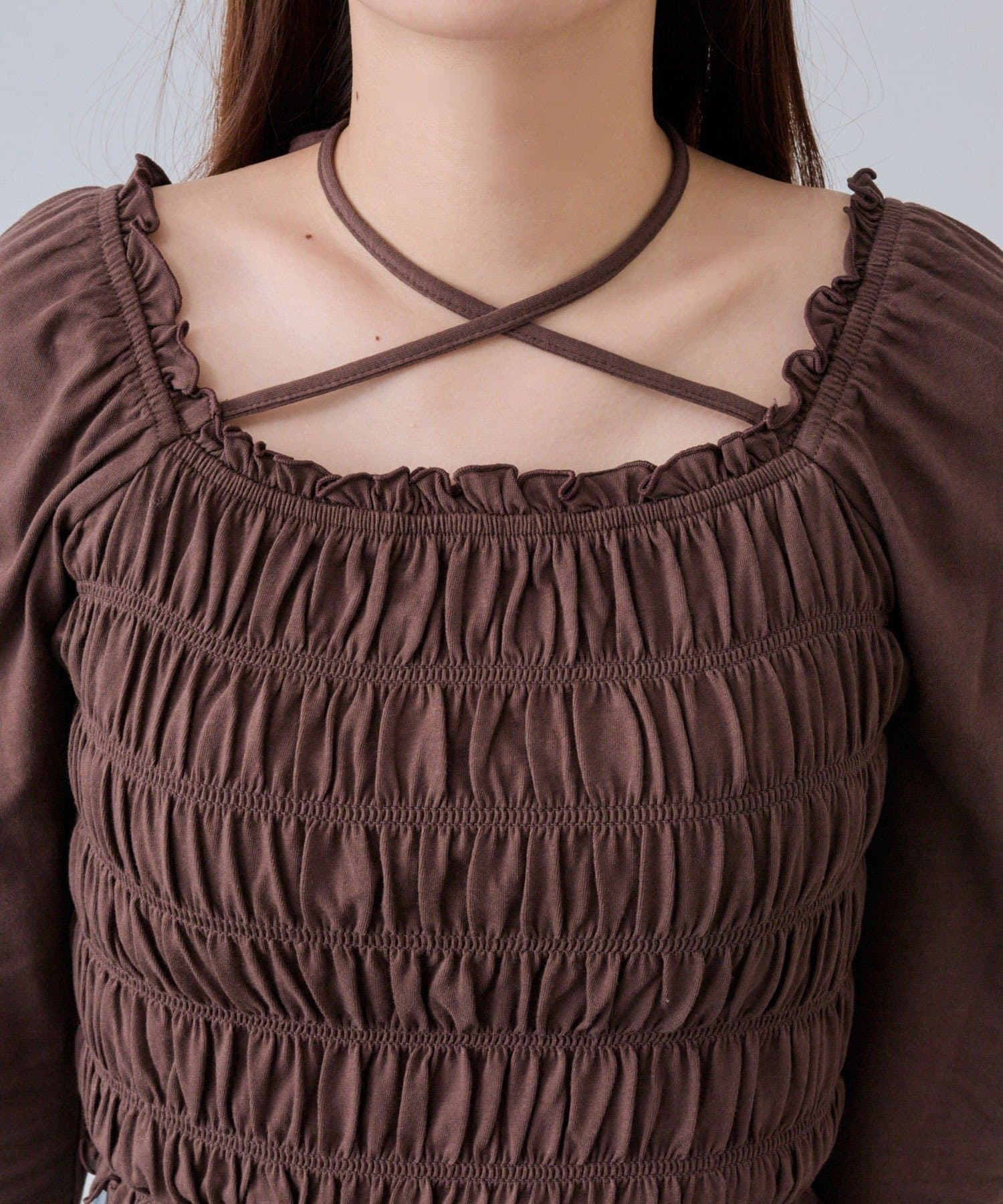 ・スクエアネックとホルターネック風ディテールで、女性らしい印象を演出します。