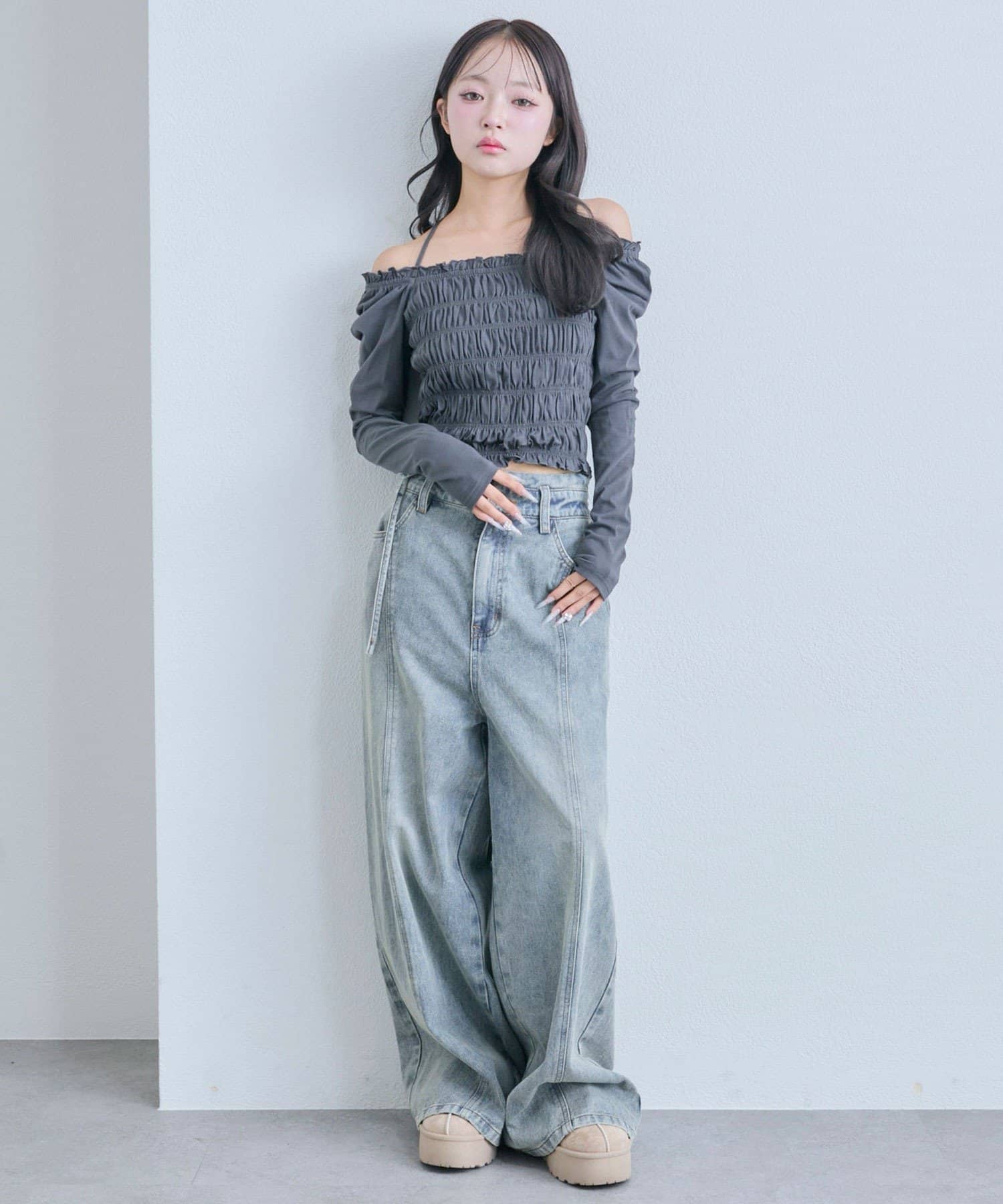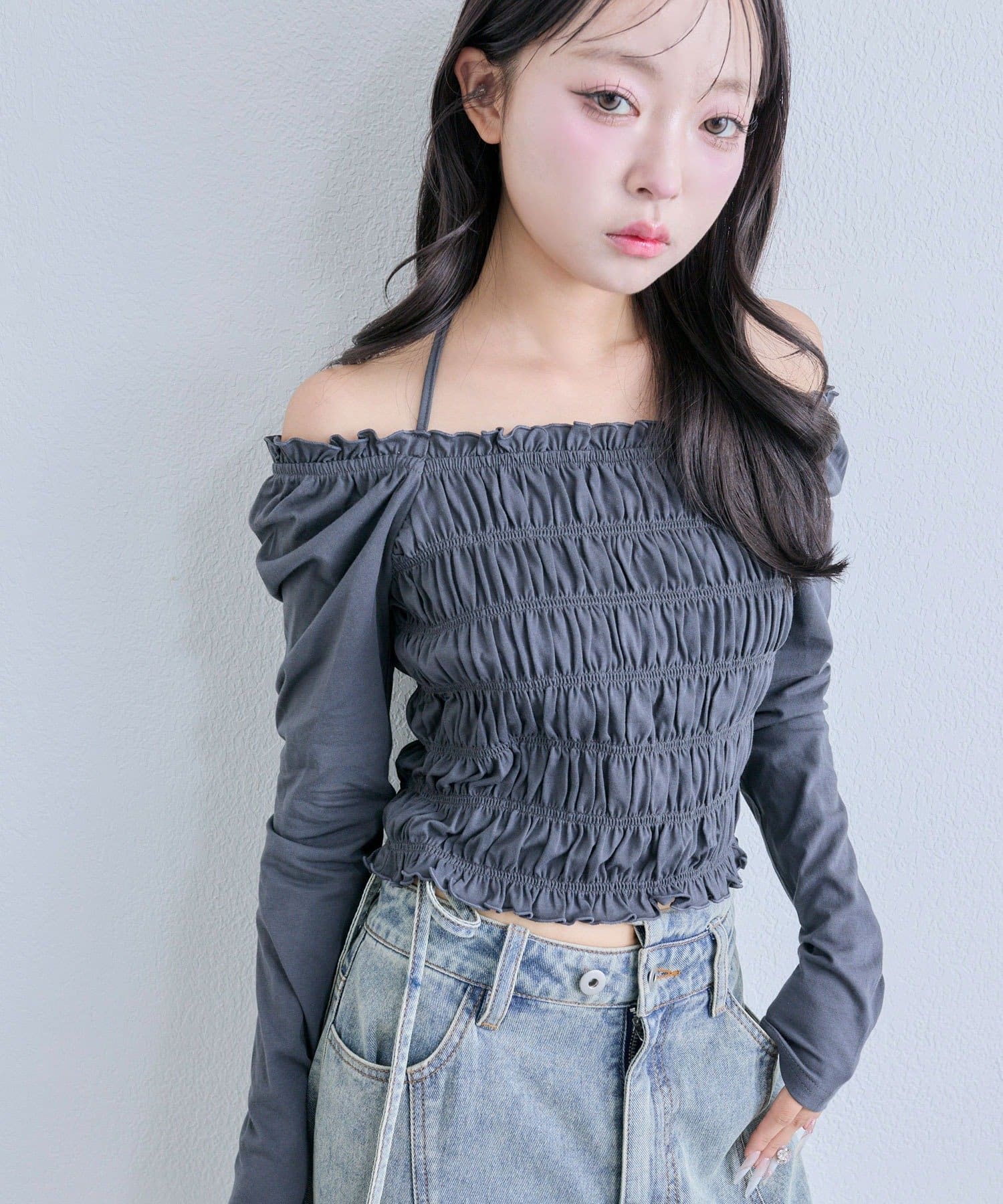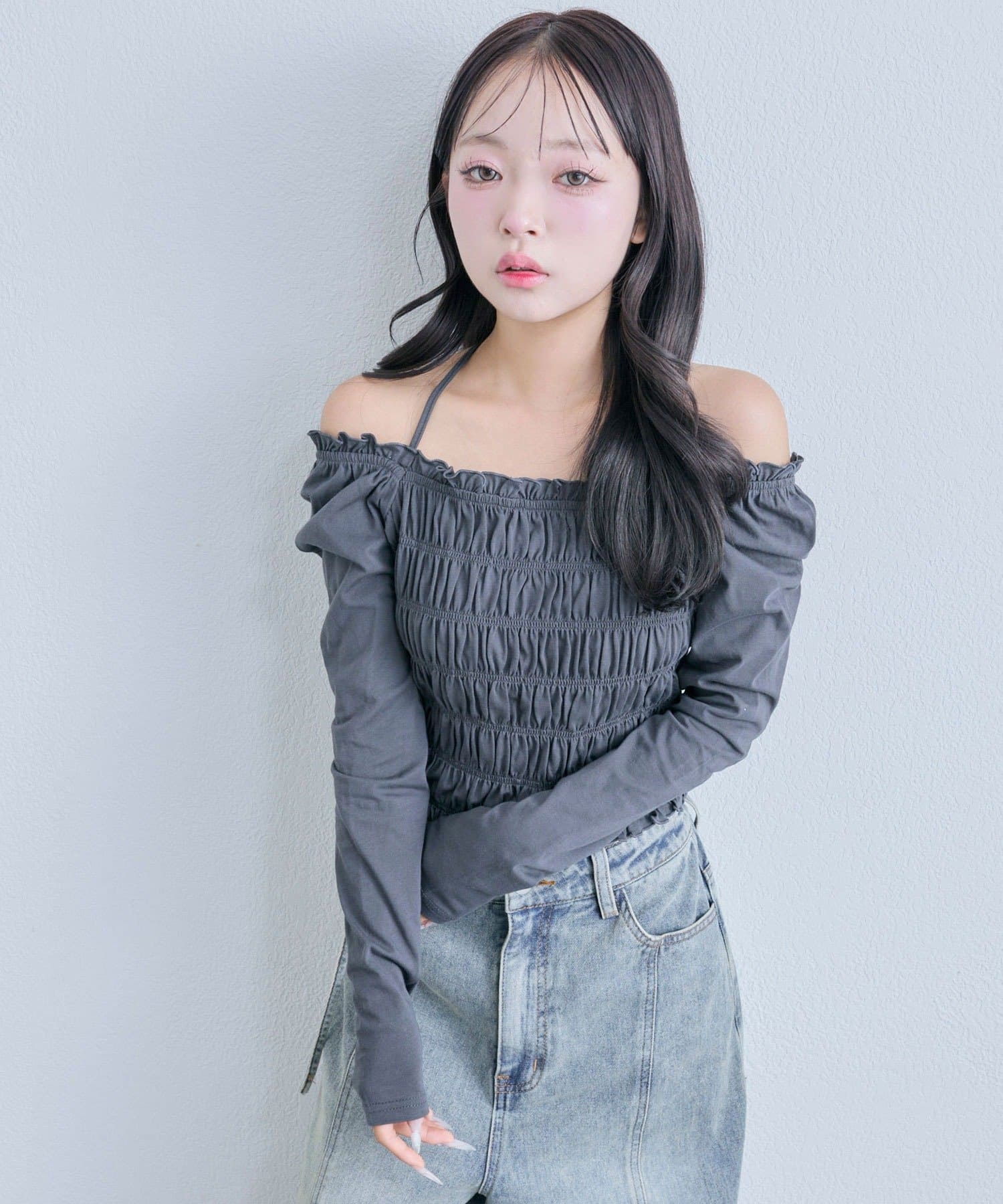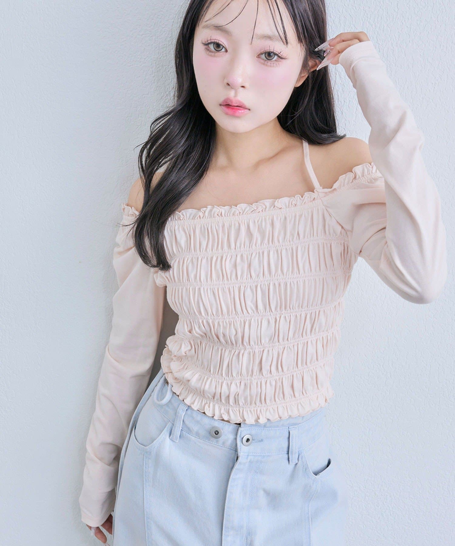 ・オフショルでも肩に乗せても着れるので、気分に合わせて着方を変えられます。