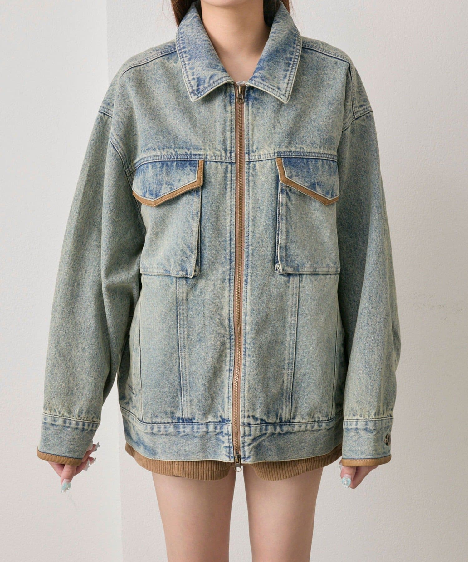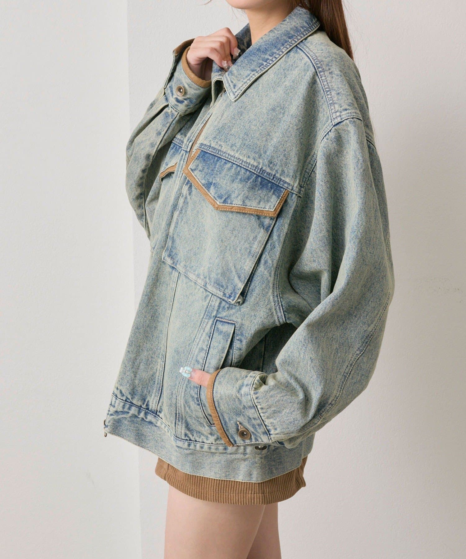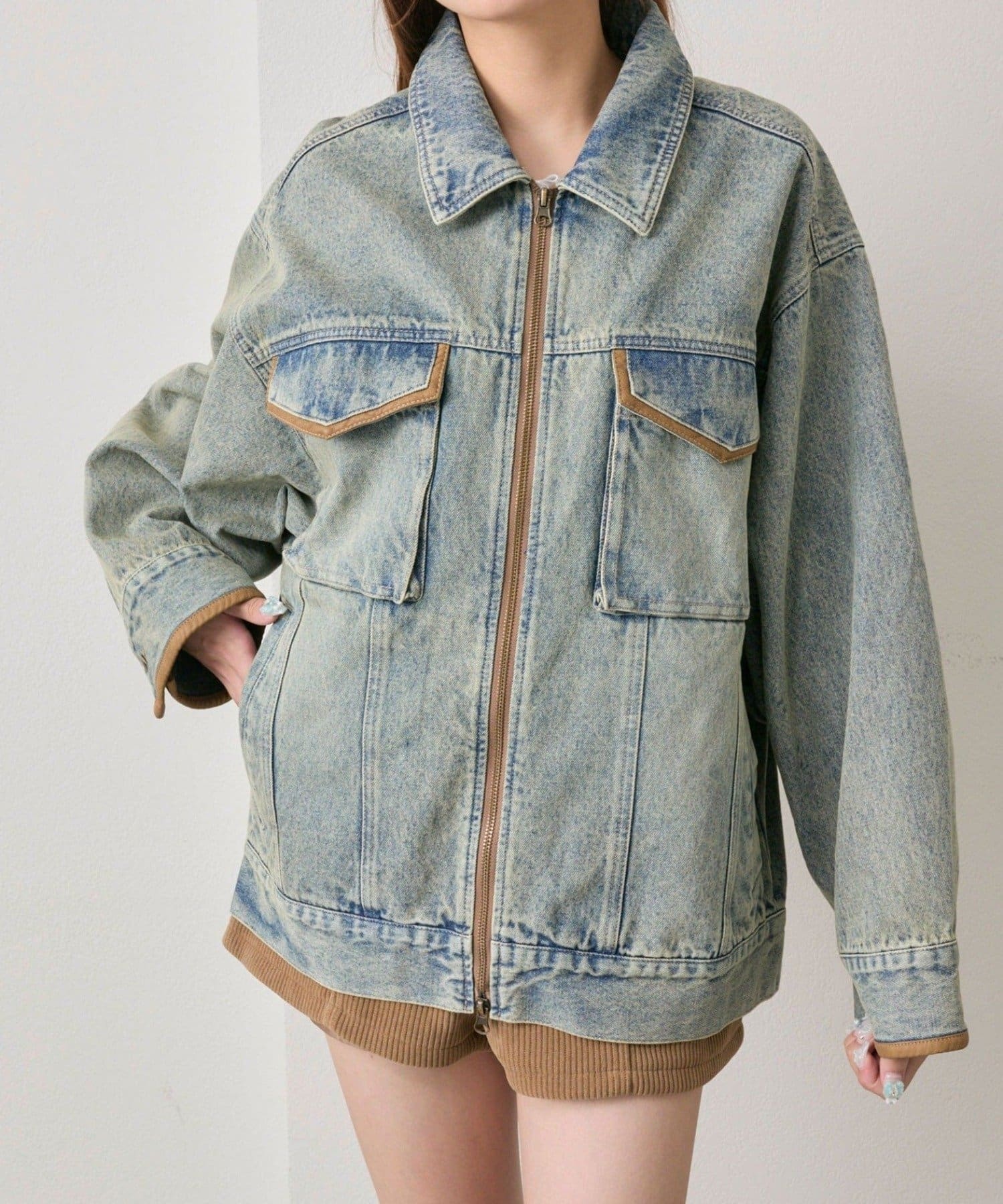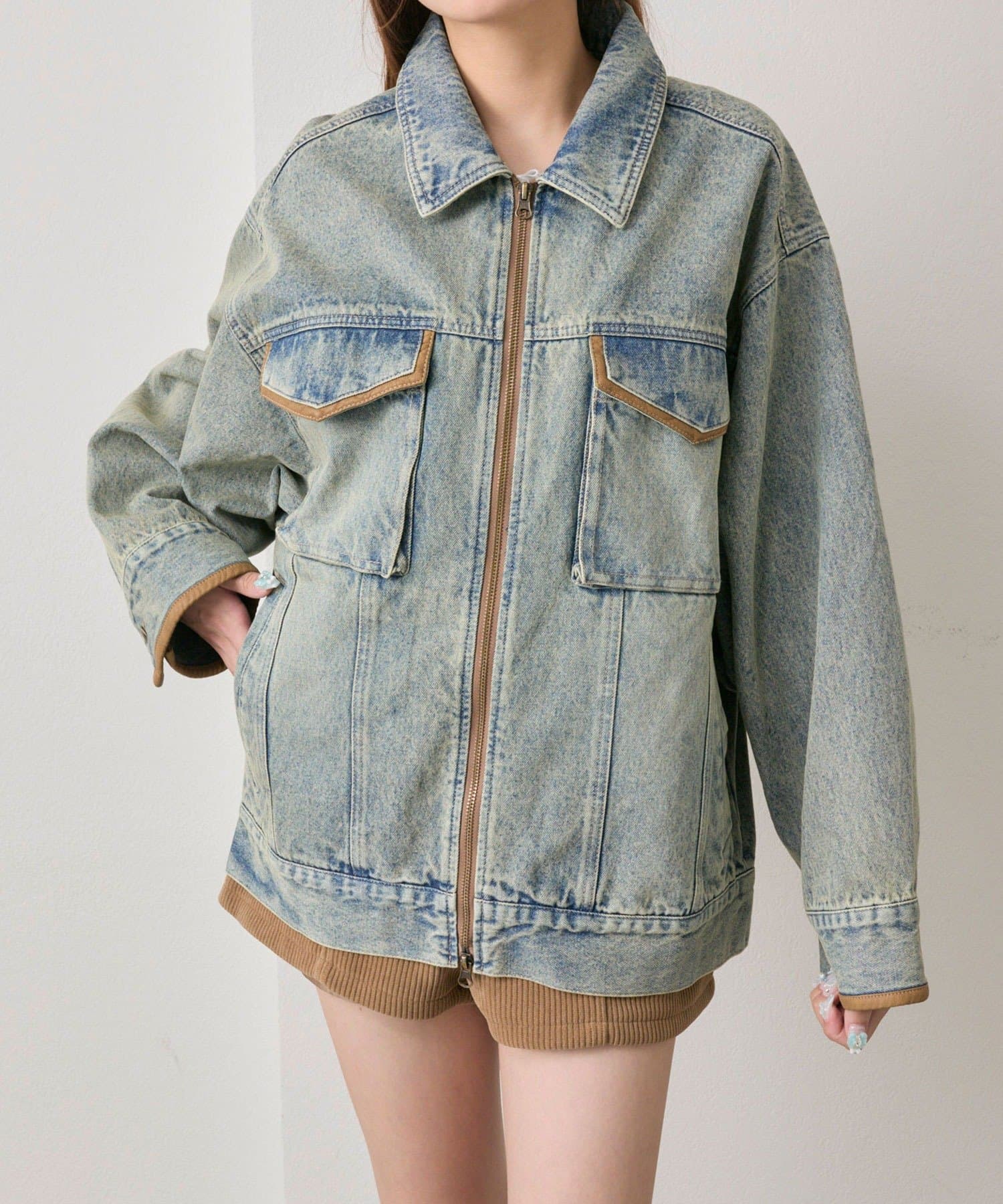 ・配色デザインがコーデのアクセントになって、こなれ感を演出してくれるデニムブルゾン。