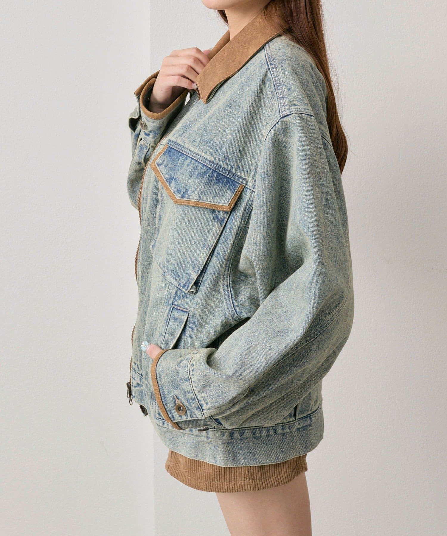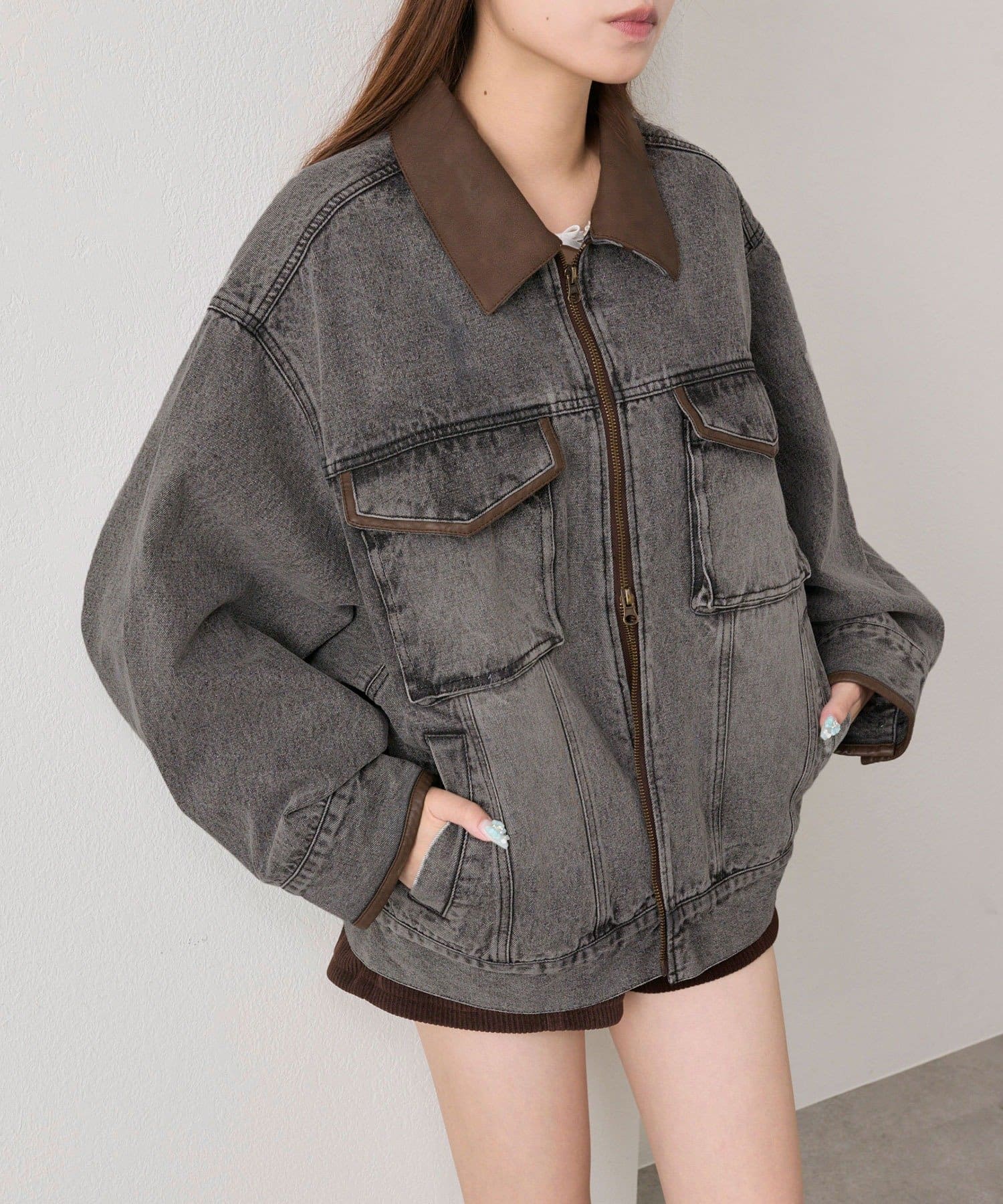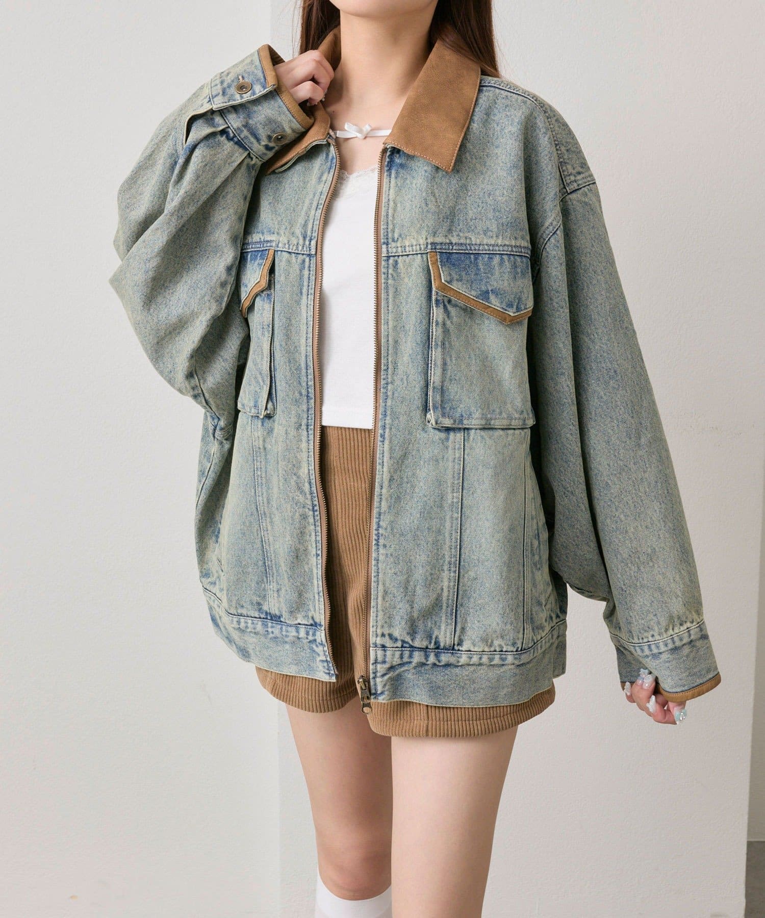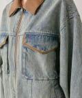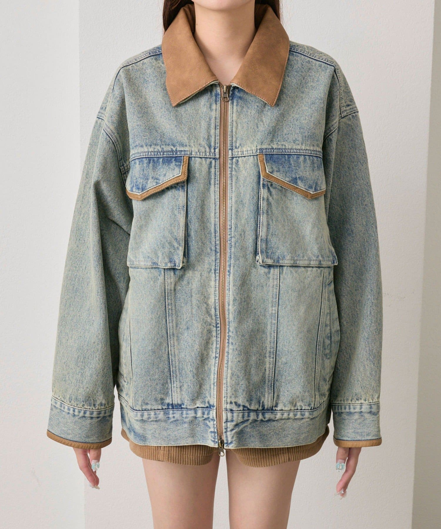 ・配色デザインがコーデのアクセントになって、こなれ感を演出してくれるデニムブルゾン。
